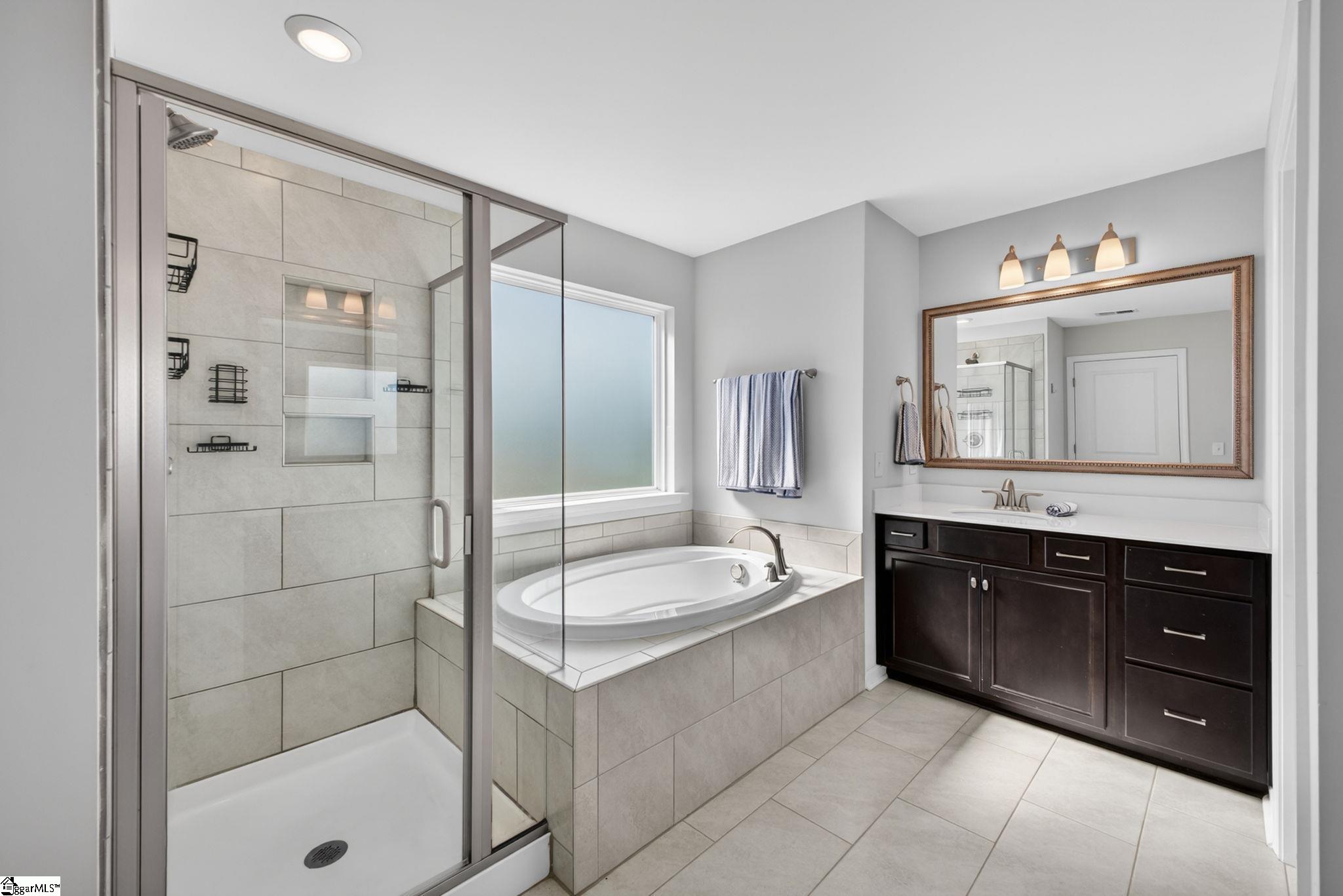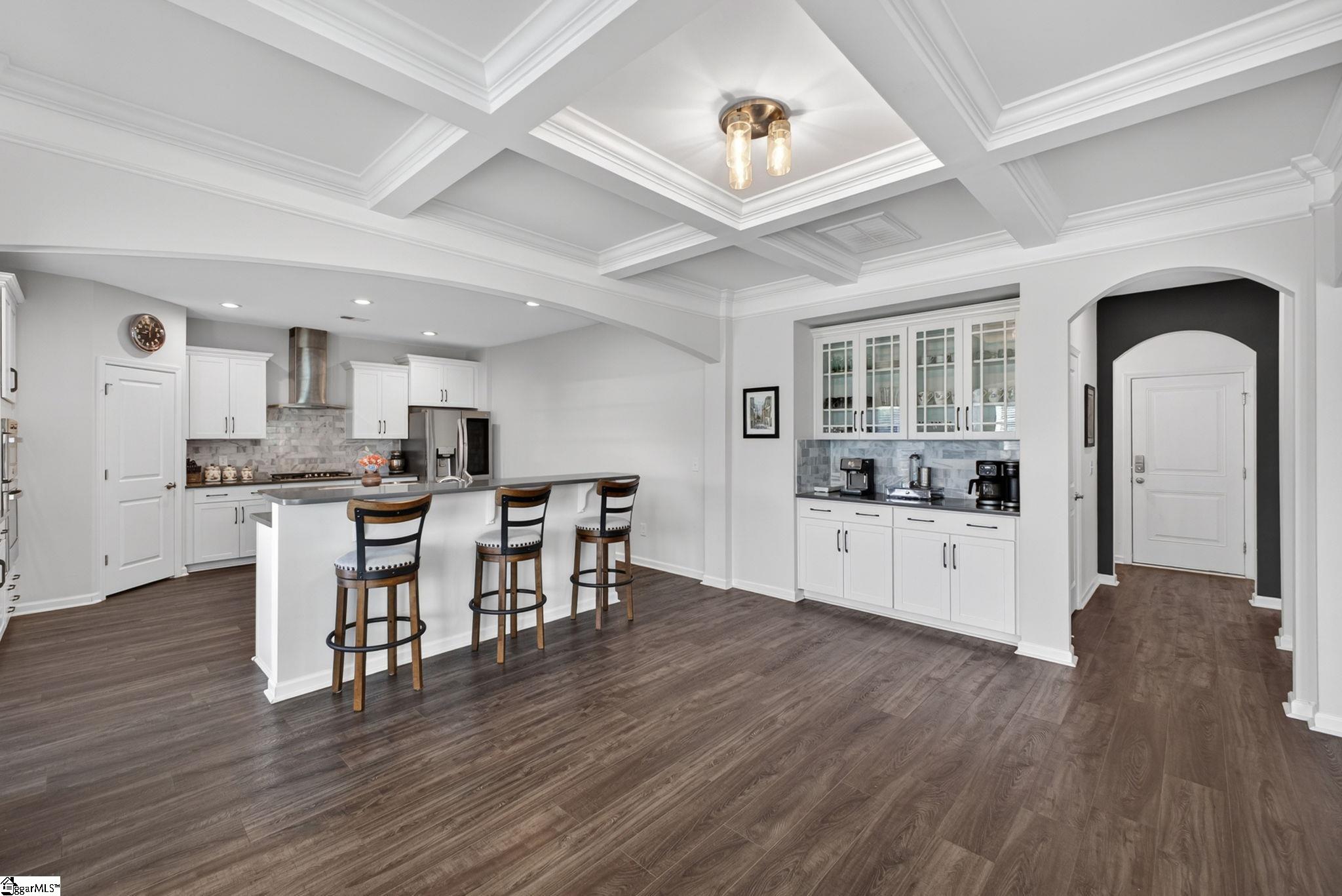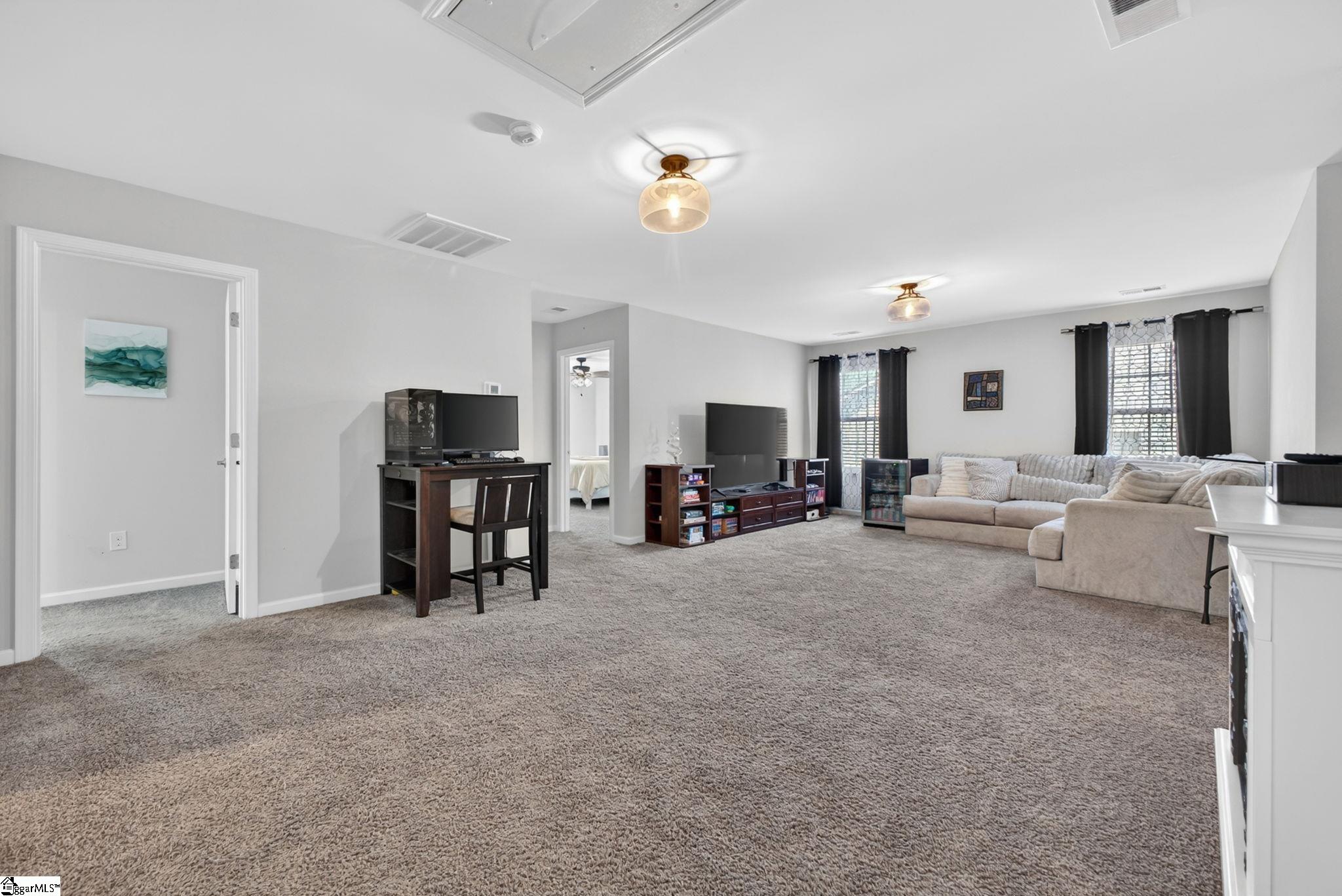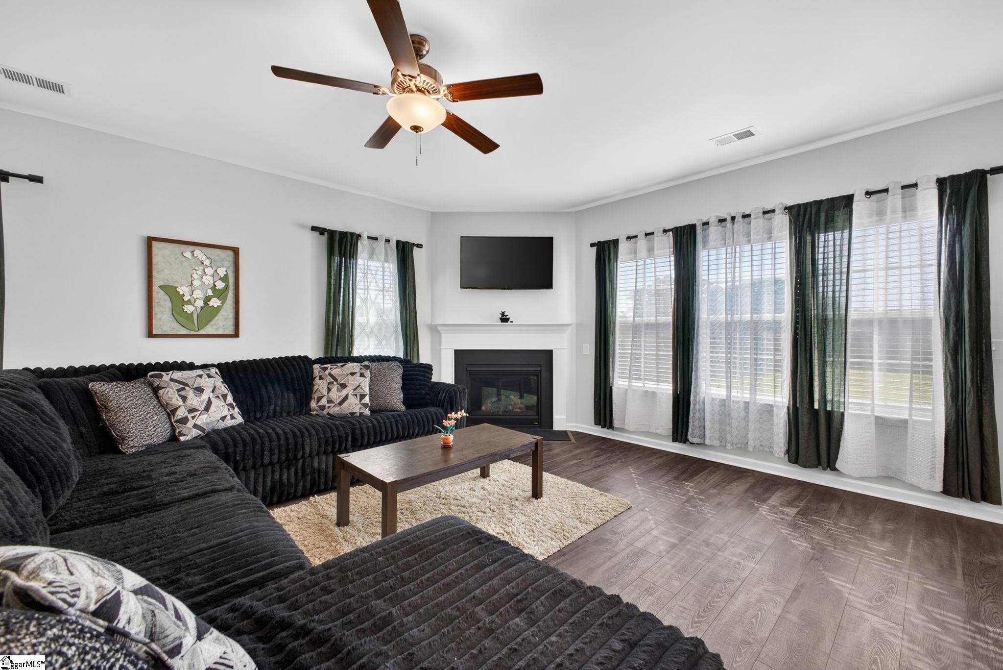 Imagine stepping into a bright two-story foyer that opens to a dream entertaining space. This stunning home offers an open-concept layout that seamlessly connects the spacious great room, dining room, sunroom, and chef’s kitchen. The gourmet kitchen is designed to impress with two islands, quartz countertops, abundant cabinet and counter space, custom tile backsplash, stainless steel appliances, gas cooktop, wall oven, built-in microwave, and a large walk-in pantry. The dining area has a coffered ceilings and comfortably seats eight, making it the heart of the home. Just off the kitchen, the sunroom, currently used as a dining area, overlooks the expansive backyard—perfect for morning coffee or relaxing at the end of the day. A main-level bedroom with access to a Jack-and-Jill-style bath offers a convenient space for guests or in-laws. Upstairs, you’ll find a large loft, walk-in laundry room, three additional bedrooms with walk-in closets, and well-appointed baths. The primary suite is a true retreat with a trey ceiling, oversized walk-in closet, double vanities, soaking tub, separate shower, and upgraded fixtures. Move-in ready and beautifully designed, this home features on-trend colors, LVP flooring, elegant archways, and upgraded lighting. Outside, enjoy a large patio, fully fenced backyard with raised garden beds, and almost a half acre. This yard is perfect for entertaining, gardening, play, pets, and more.