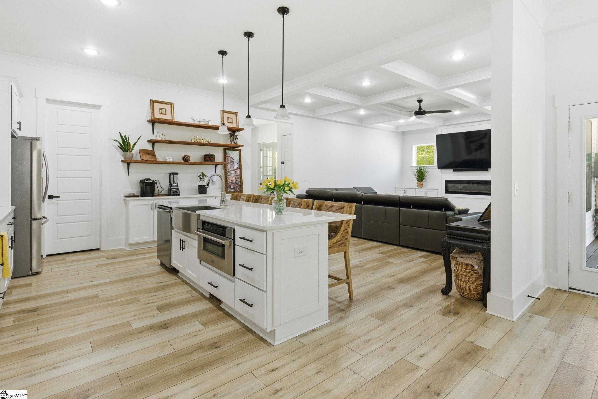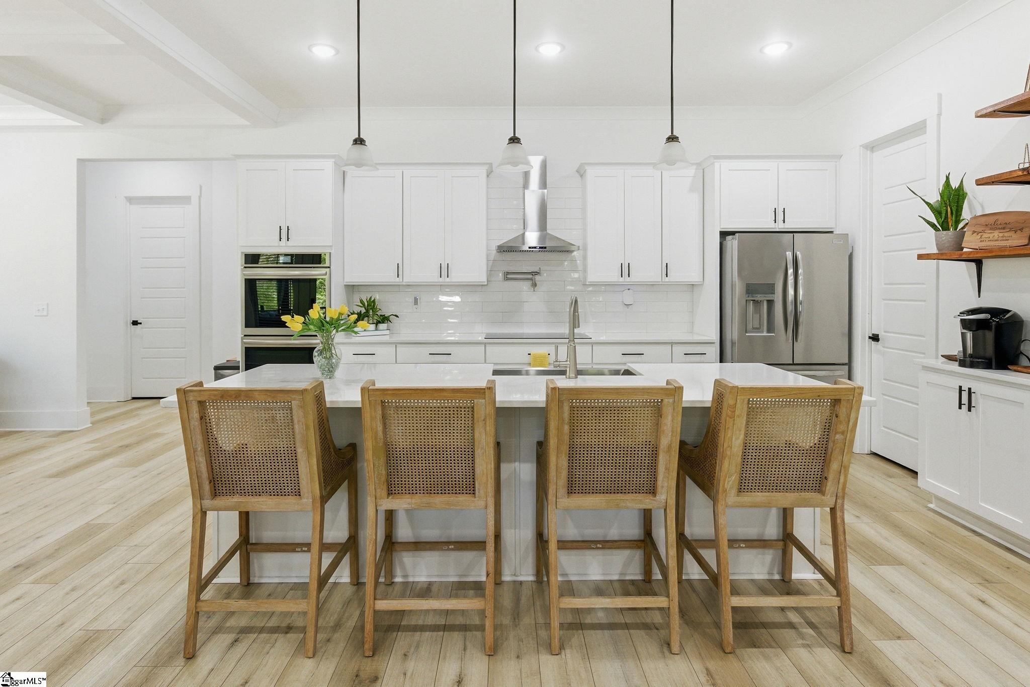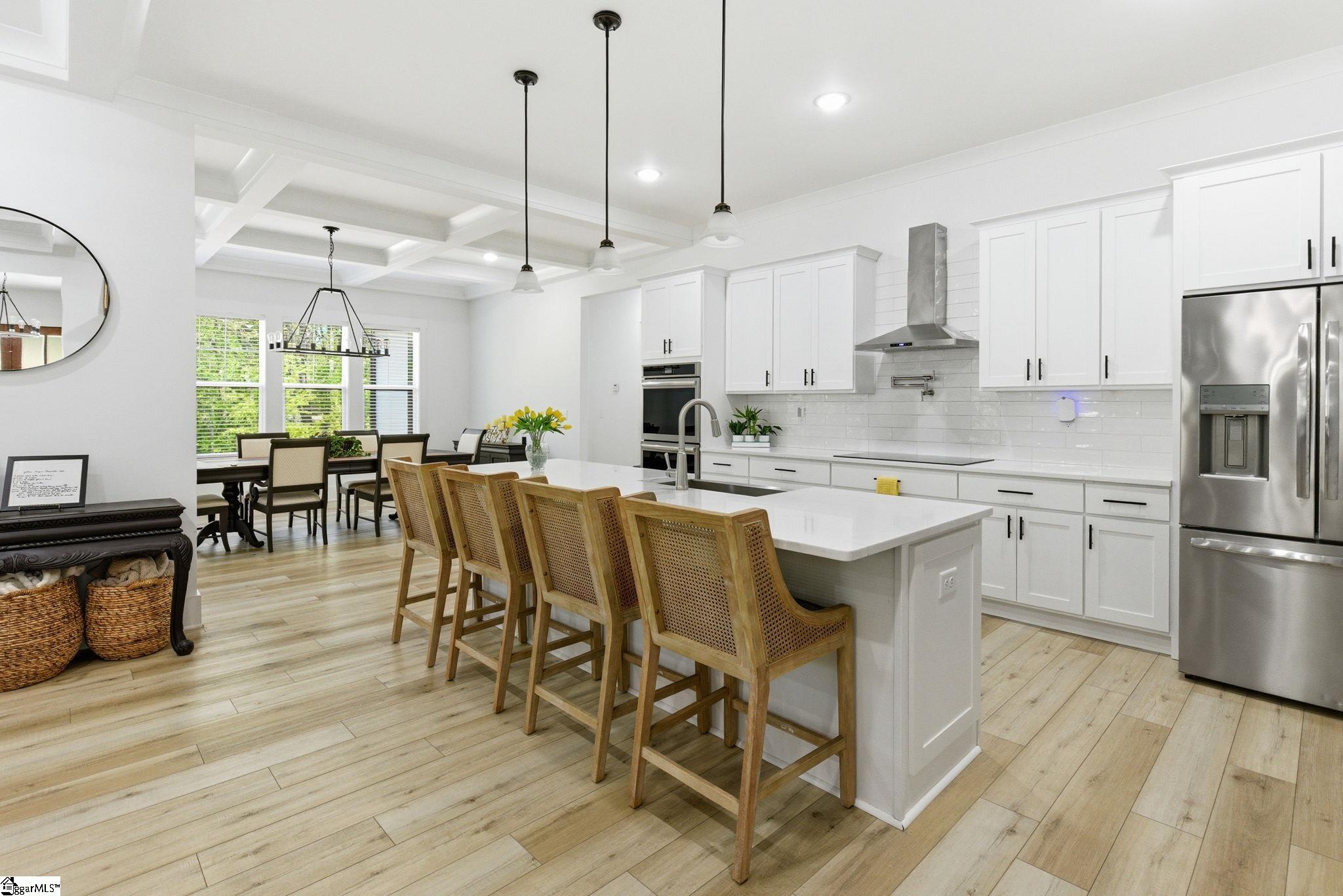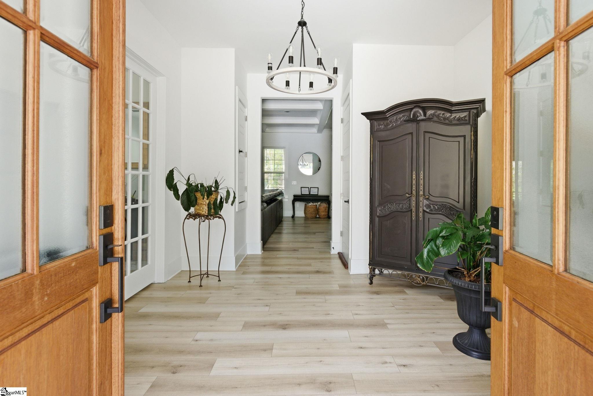 Welcome to a stunning, nearly-new Craftsman estate where timeless design meets modern luxury—perfectly positioned on a private, wooded 1.45-acre corner lot. This impressive 2-story home with a fully livable walkout basement offers over 6,200 square feet of thoughtfully designed living space. From the moment you arrive, the classic hardboard siding accented with stone and the inviting wraparound front porch set the tone for what’s inside. Step into an open-concept main level anchored by a chef’s kitchen featuring a large eat-at island, double wall ovens, and high-end appliances—ideal for entertaining or everyday living. The main-level primary suite is a true retreat, complete with a luxurious, well-appointed bath showcasing a freestanding soaking tub, oversized walk-in shower, and an expansive dressing room. A second main-level bedroom—currently used as an extension of the dressing space—offers flexibility and can easily be converted back into a sixth bedroom. A dedicated office/study and screened porch add both function and comfort. Upstairs, you’ll find three spacious bedrooms, along with a versatile loft and additional rec space—perfect for study, relaxation, or play. In addition is a finished attic storage area. The fully finished basement expands the home’s possibilities with a second primary suite, full kitchen, media room, recreation room, Den, workshop, and abundant storage with convenient garage door access. Walk out onto an impressive 43’ x 28’ patio overlooking the serene, tree-lined backyard. Additional highlights include multiple water heaters, conditioned walk-in attic storage, and a side-entry oversized two-car garage. Enjoy the best of both worlds—peaceful, nature-filled surroundings in a neighborhood known for its larger lots and privacy, while still being just 15 minutes from shopping, dining, and everyday conveniences, and approximately 30 minutes to GSP International Airport. Located near highly regarded schools, this home truly offers space, flexibility, and lifestyle without compromise. Key Features: 5 Bedrooms (potential 6) | 4 Full Baths | 2 Half Baths Over 6,200 sq ft of living space 1.45-acre private, wooded corner lot Wraparound front porch + screened porch Main-level primary suite with luxury bath & dressing room Open-concept living with high-end kitchen & large island Double wall ovens + premium appliances Dedicated office/study on main Fully finished walkout basement with: Second primary suite Full kitchen Media room + rec room Workshop + storage with garage access Expansive 43’ x 28’ outdoor patio 3 bedrooms upstairs + loft + additional rec space Side-entry 2-car garage Multiple water heaters Conditioned walk-in attic storage Quiet, wooded neighborhood with spacious homesites Convenient to shopping, dining & major routes Approx. 30 minutes to GSP International Airport