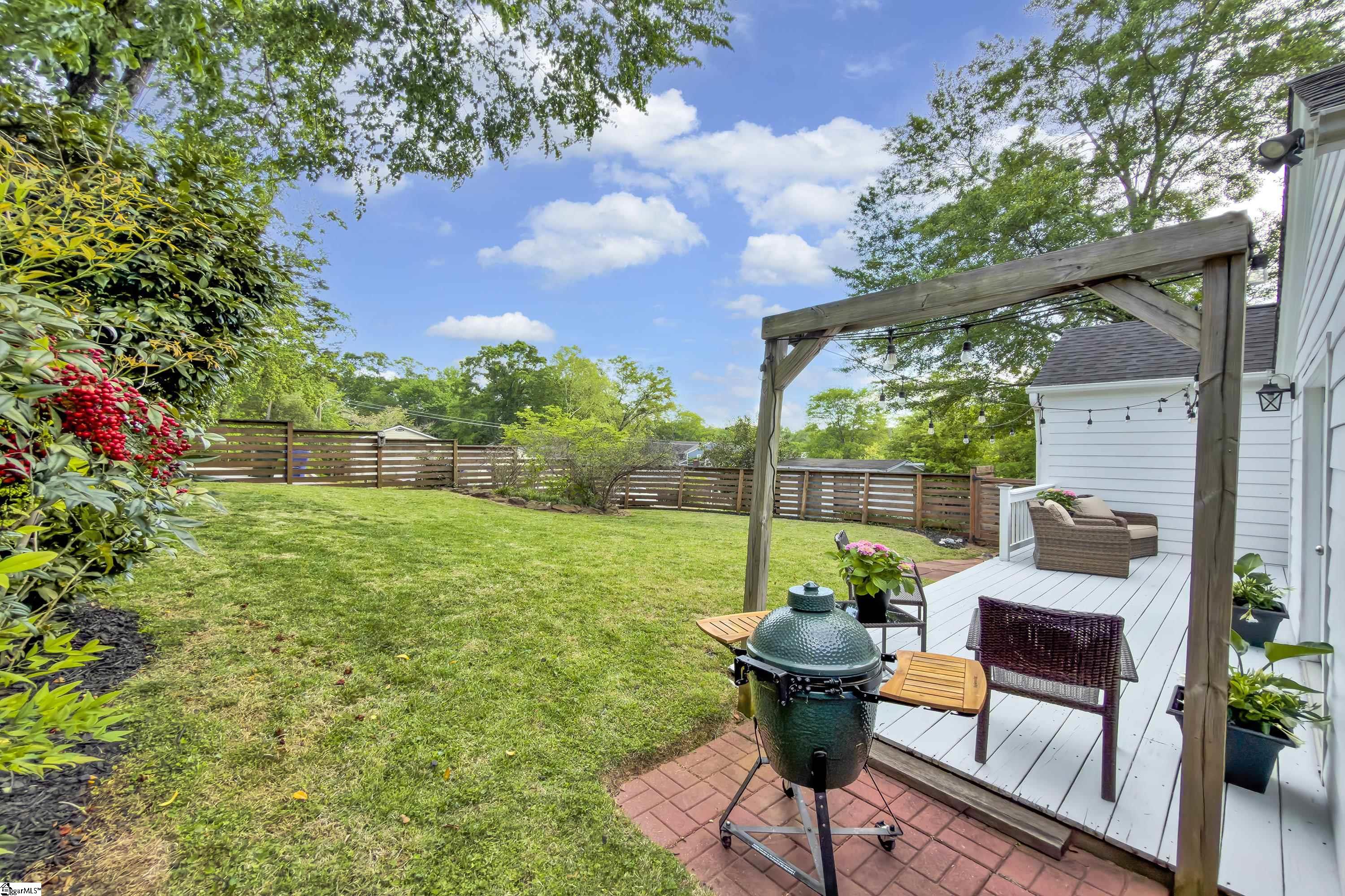 Tucked just off Augusta Road, this charming jewel box of a home offers timeless appeal, thoughtful updates, and an unbeatable location in one of Greenville’s most desirable neighborhoods. With three bedrooms and two baths all on one level, this home blends classic character with modern comfort. Inside, you’ll find beautifully maintained living spaces designed for both everyday living and entertaining, with updates that enhance functionality while preserving the home’s warmth and charm. The kitchen is both stylish and functional, featuring stainless steel appliances, a pot filler, and a gas range with range hood, and opens directly onto a lovely deck – perfect for seamless indoor-outdoor living and entertaining. The private primary bedroom features a stylishly updated bathroom that adds both comfort and convenience. Two additional bedrooms offer comfortable accommodations for family, guests, or a home office and share a well-appointed hall bath. Step outside to discover an incredible fenced backyard – perfect for gatherings, play, gardening, or simply enjoying quiet evenings at home. A detached storage shed offers added flexibility for tools, hobbies, or extra storage. The property also features additional driveway parking and convenient alley access, making daily comings and goings effortless. Ideally located within walking distance to the shops, dining, and community favorites along Augusta Road, this home is also zoned for top rated schools, including Augusta Circle Elementary School. Whether you’re enjoying the neighborhood lifestyle or relaxing in your own backyard oasis, this home offers the best of both convenience and charm. Don’t miss the opportunity to make this delightful Augusta Road gem yours!
