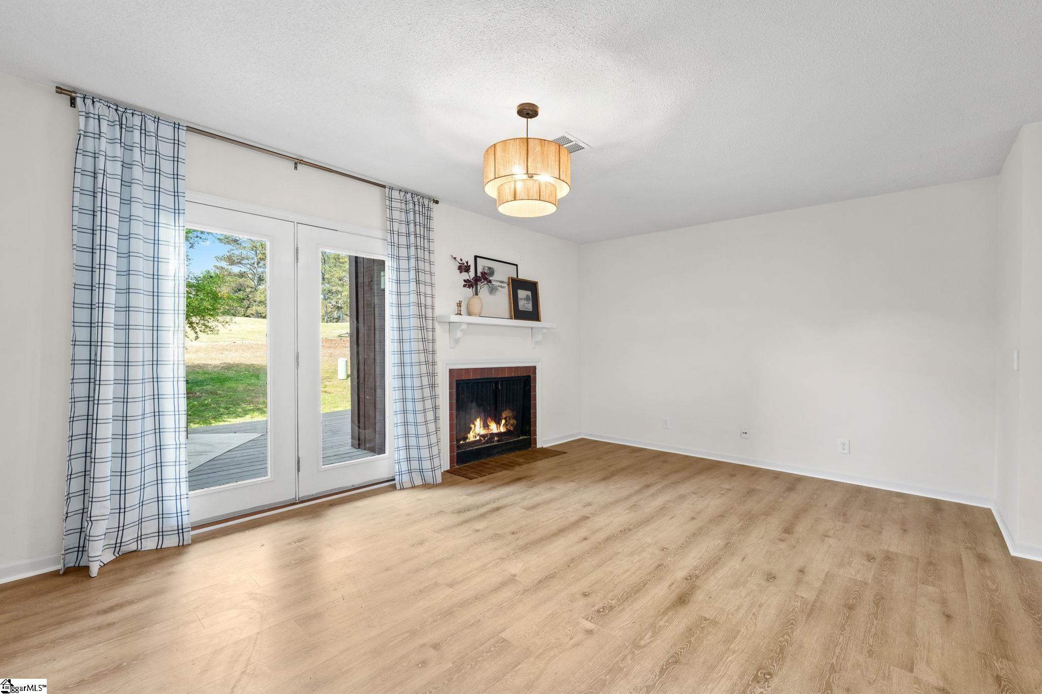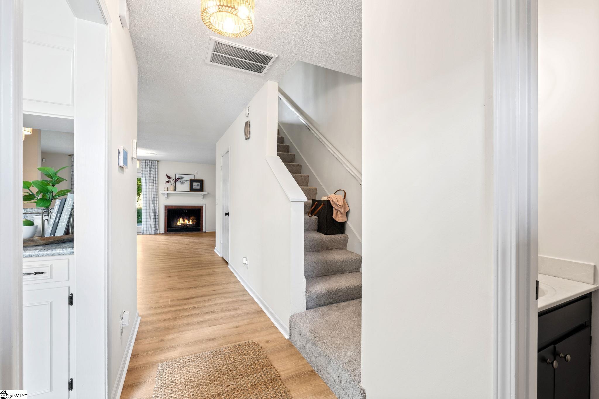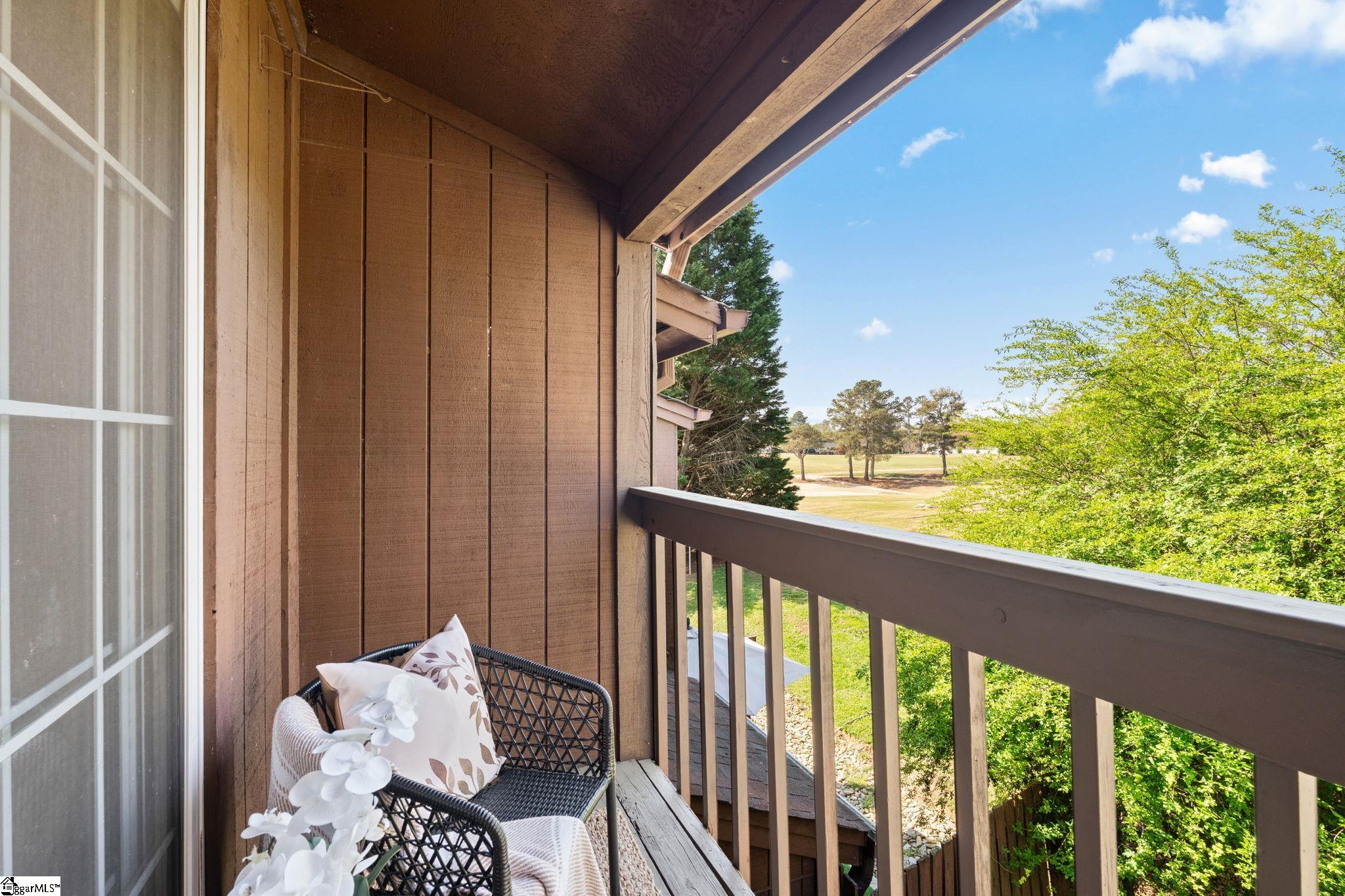 ** PRIME LOCATION | GOLF COURSE LIVING | UPDATED ** FIVE-FORKS AREA. Welcome to the sought-after Trentwood community, where golf course and scenic living meet lock-and-leave convenience. Now is your chance to get in early on the exciting revitalization all around the rustic community. The Holly Tree Golf Course is currently undergoing a transformative $5 million renovation—its first major update in over 50 years, with a Fall 2026 reopening planned to feature 18 redesigned holes by renowned designer Jeff Lawrence. This thoughtfully designed community offers tranquil views of the greens, pond, and creek, all in an unbeatable location in, just 1.6 miles from BridgeWay Station for dining, shopping, and entertainment, and only 2.5 miles from Sprouts Farmers Market, with convenient access to I-385, Hillcrest Hospital, and zoned for Mauldin High School. Inside, this move-in-ready home showcases stylish, modern upgrades including custom real wood kitchen cabinetry with crown molding, new luxury vinyl plank flooring in the main living areas, a spacious dining area perfect for entertaining, updated designer lighting, and a cozy fireplace. French doors lead to an outdoor patio with golf course views. The home features dual primary suites, each with updated en-suite bathrooms and double closets, with one offering a private balcony overlooking the greens. Additional highlights include a full walk-in laundry room with custom storage and brand-new carpet, making this a perfect blend of comfort, style, and low-maintenance living- HOA covers exterior maintenance, roof, gutters, water, newly updated clubhouse, pool, tennis courts, trash, and neighborhood landscaping. **Seller agrees to pay half of a years HOA fees.