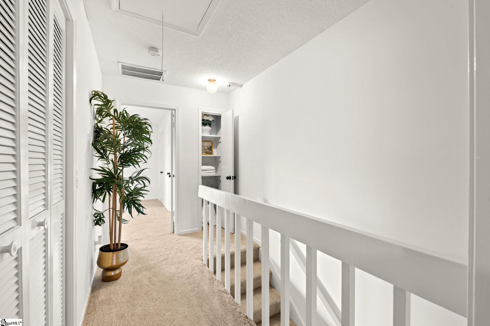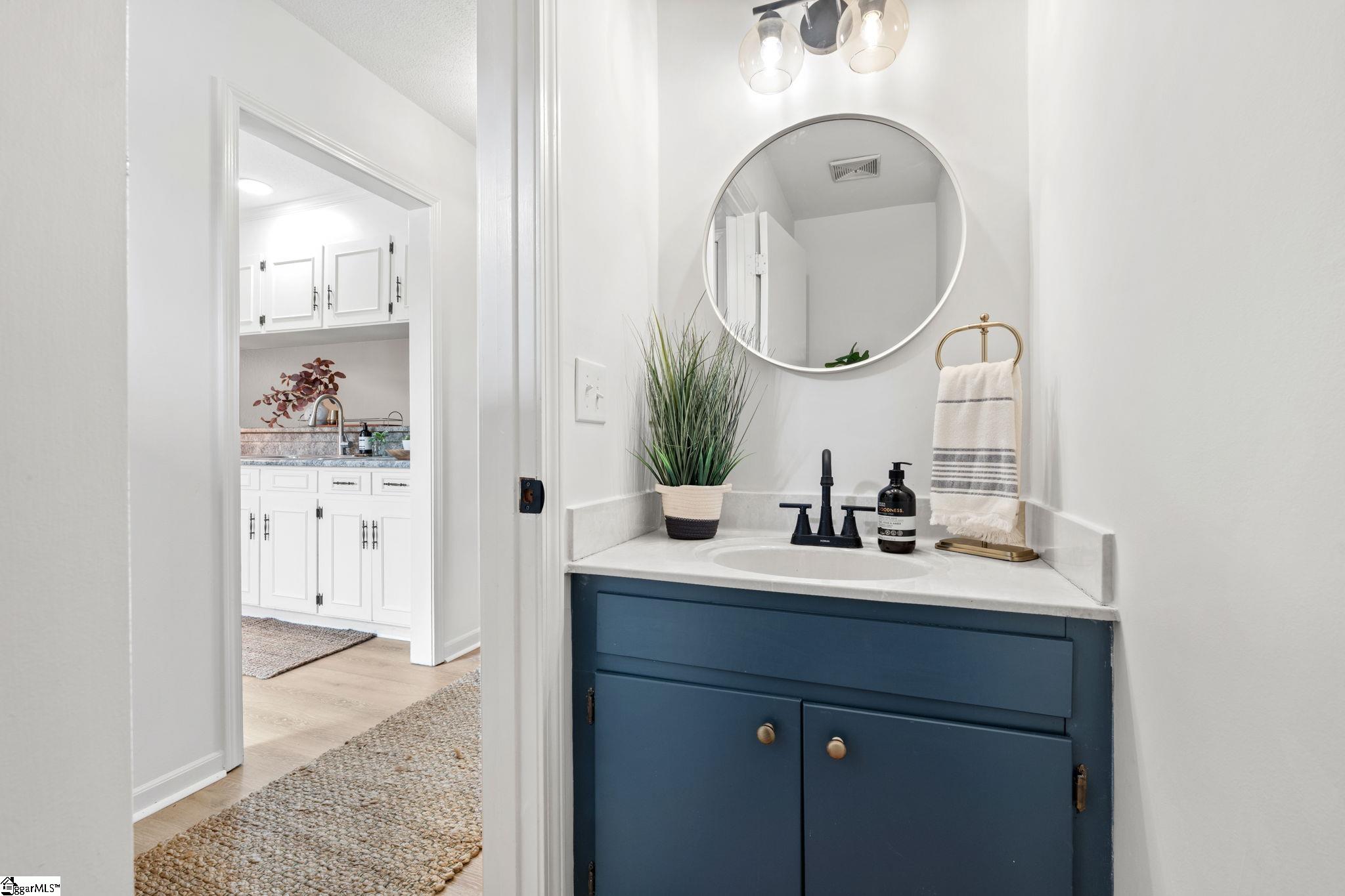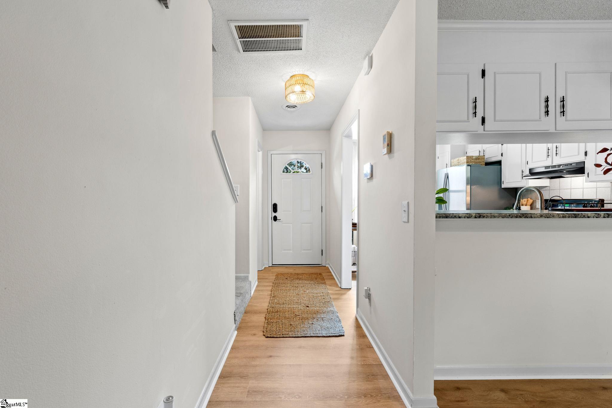 ** PRIME LOCATION | GOLF COURSE LIVING | UPDATED ** FIVE-FORKS AREA. Welcome to the sought-after Trentwood community, where golf course and scenic living meet lock-and-leave convenience. Now is your chance to get in early on the exciting revitalization all around the rustic community. The Holly Tree Golf Course is currently undergoing a transformative $5 million renovation—its first major update in over 50 years, with a Fall 2026 reopening planned to feature 18 redesigned holes by renowned designer Jeff Lawrence. This thoughtfully designed community offers tranquil views of the greens, pond, and creek, all in an unbeatable location in, just 1.6 miles from BridgeWay Station for dining, shopping, and entertainment, and only 2.5 miles from Sprouts Farmers Market, with convenient access to I-385, Hillcrest Hospital, and zoned for Mauldin High School. Inside, this move-in-ready home showcases stylish, modern upgrades including custom real wood kitchen cabinetry with crown molding, new luxury vinyl plank flooring in the main living areas, a spacious dining area perfect for entertaining, updated designer lighting, and a cozy fireplace. French doors lead to an outdoor patio with golf course views. The home features dual primary suites, each with updated en-suite bathrooms and double closets, with one offering a private balcony overlooking the greens. Additional highlights include a full walk-in laundry room with custom storage and brand-new carpet, making this a perfect blend of comfort, style, and low-maintenance living- HOA covers exterior maintenance, roof, gutters, water, newly updated clubhouse, pool, tennis courts, trash, and neighborhood landscaping. **Seller agrees to pay half of a years HOA fees.