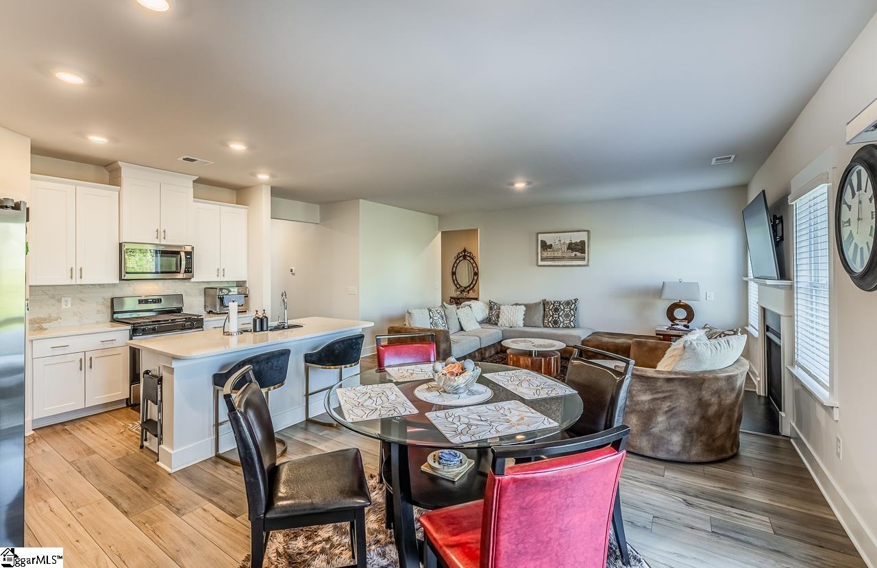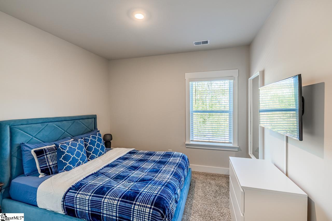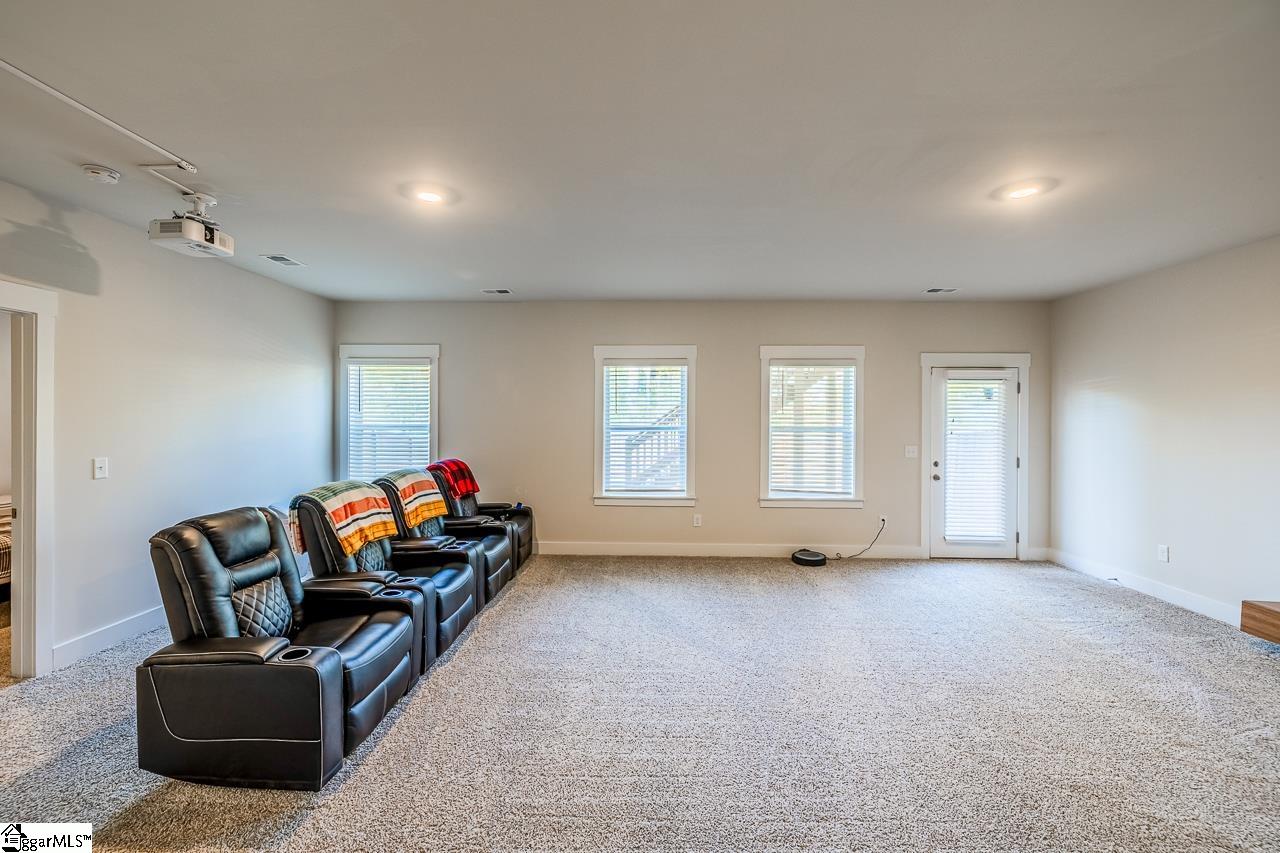 Welcome home to this impressive 6-bedroom, 4-bath energy-efficient retreat—better than new and impeccably maintained—featuring one of the area’s rare finished walkout basements, ideal for multi-generational living or ultimate entertaining. From the moment you arrive, manicured landscaping sets the tone for the quality found throughout. Step inside the inviting foyer to discover 9-foot ceilings, durable luxury vinyl plank flooring, and a spacious formal dining room perfect for hosting. The heart of the home is the stunning kitchen, complete with shaker-style cabinetry, quartz countertops, kitchen island, and stainless-steel appliances, seamlessly flowing into the bright breakfast area and welcoming living room with a cozy gas-log fireplace. A main-level full bedroom and bathroom provide the perfect setup for guests, a home office, or in-law living. Downstairs, the finished walkout basement opens a world of possibilities with a private movie theater, an additional bedroom and full bathroom, and flexible storage space that’s ideal for a home gym, studio, or hobby room. Upstairs, a versatile loft ties in four generously sized bedrooms, including the luxurious primary suite with tiled shower, double vanity, and a custom built-in closet. All bathrooms feature upgraded framed-glass enclosures, and the home has been thoughtfully enhanced with smart-home technology connecting every floor. Designed for modern efficiency and comfort, this home offers spray-foam insulation on all exterior walls and roof, LED lighting, a tankless gas water heater, and UV-treated windows—delivering noticeable monthly energy savings. Step outside to enjoy the private, fenced backyard from the elevated deck—perfect for relaxing or entertaining. The neighborhood features a dog park, playground, and walking trails—perfect for outdoor fun, exercise, and everyday enjoyment just steps from home. The location is equally impressive, with shops and restaurants just down the street, and a brand-new Food Lion currently under construction within walking distance! Additionally, you’ll appreciate the quick access to I-385 for your morning commute. Downtown Greenville and GSP Airport are both under 30 minutes away; all wrapped up in a desirable school district! Don’t miss your chance to view this incredible opportunity with space for everyone; schedule your showing today!
