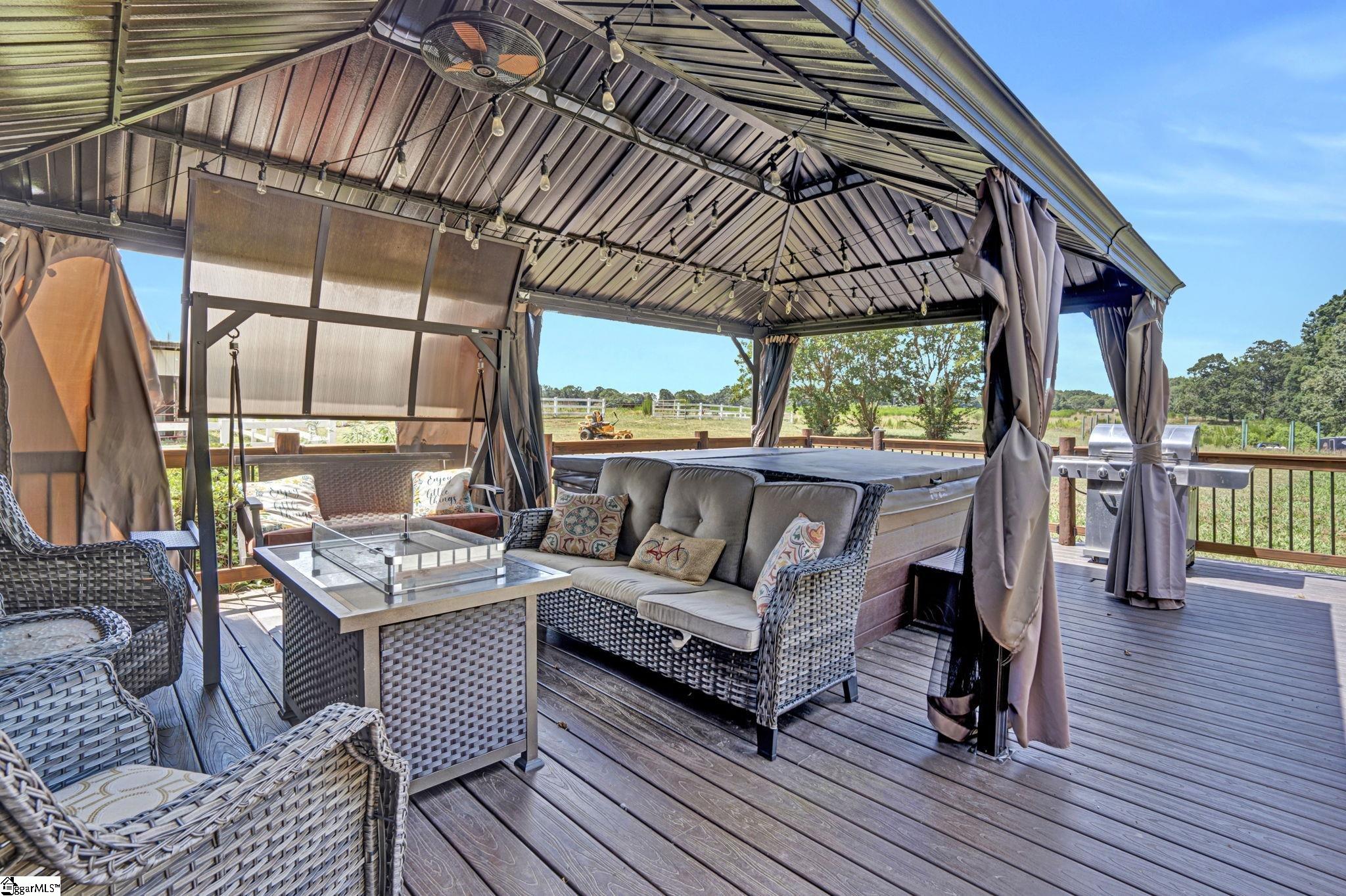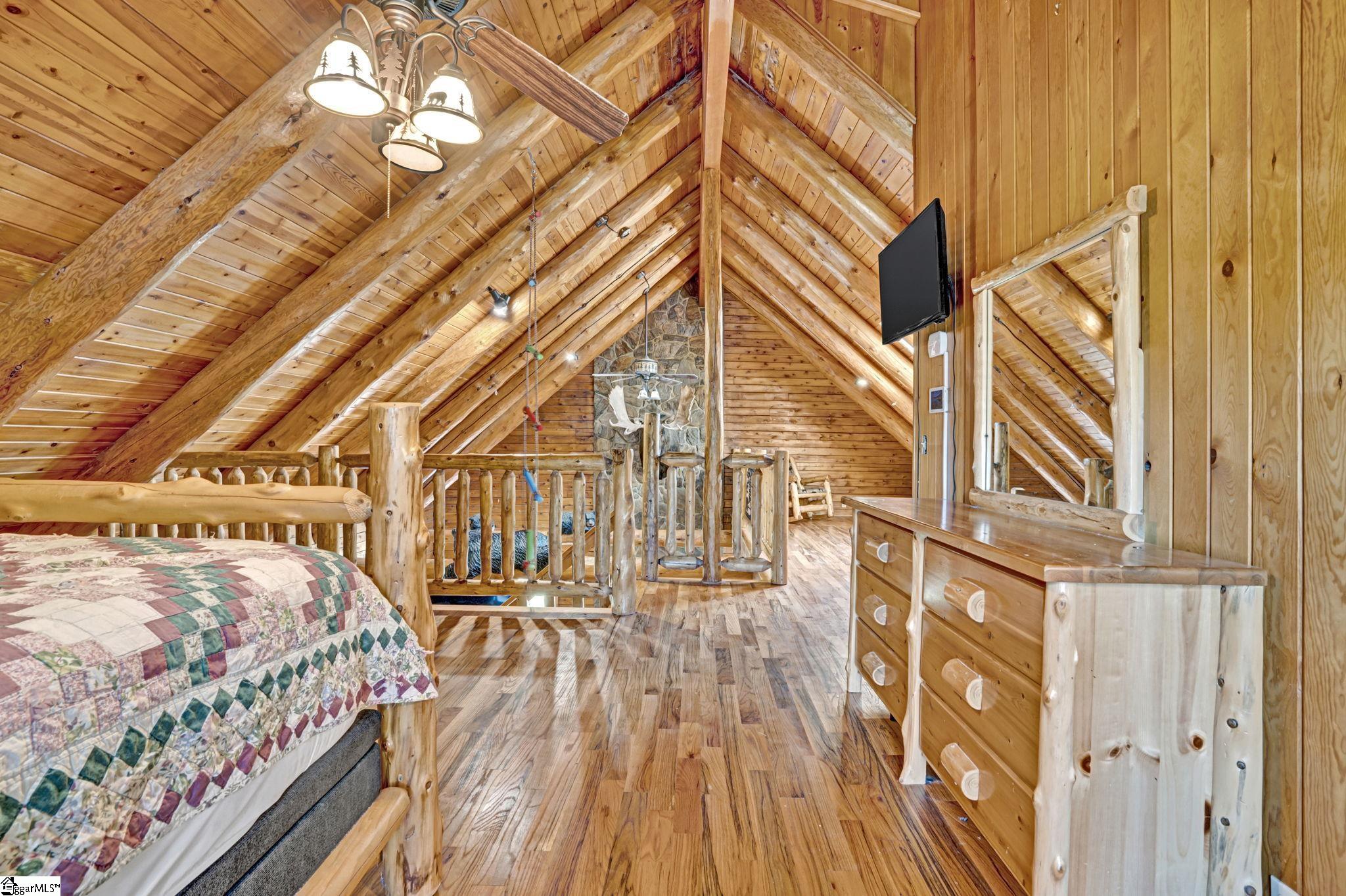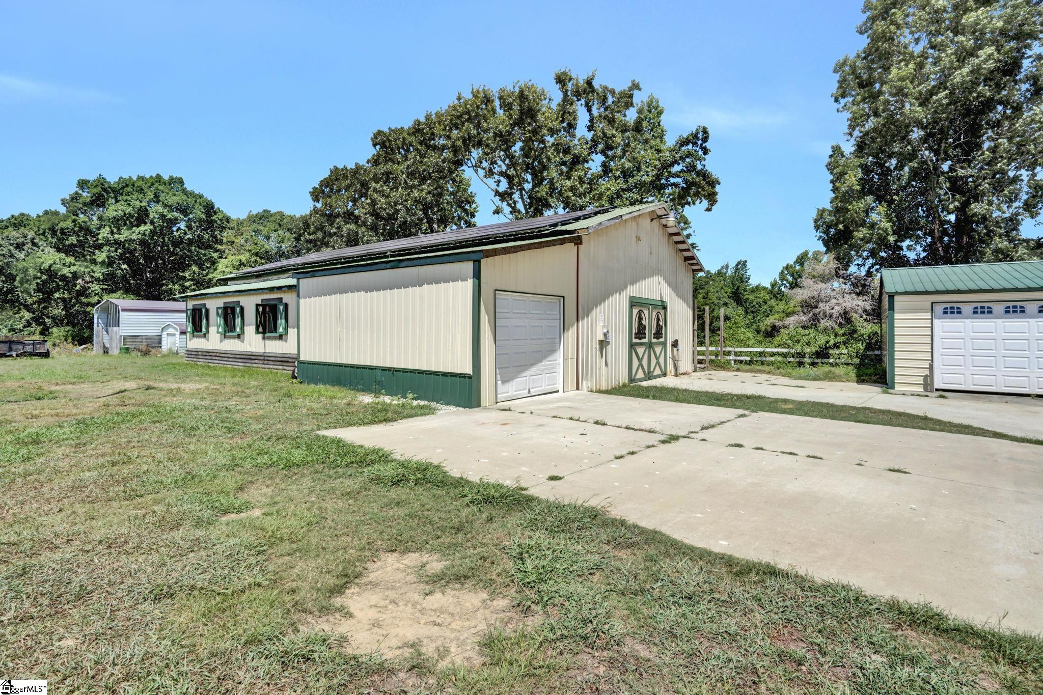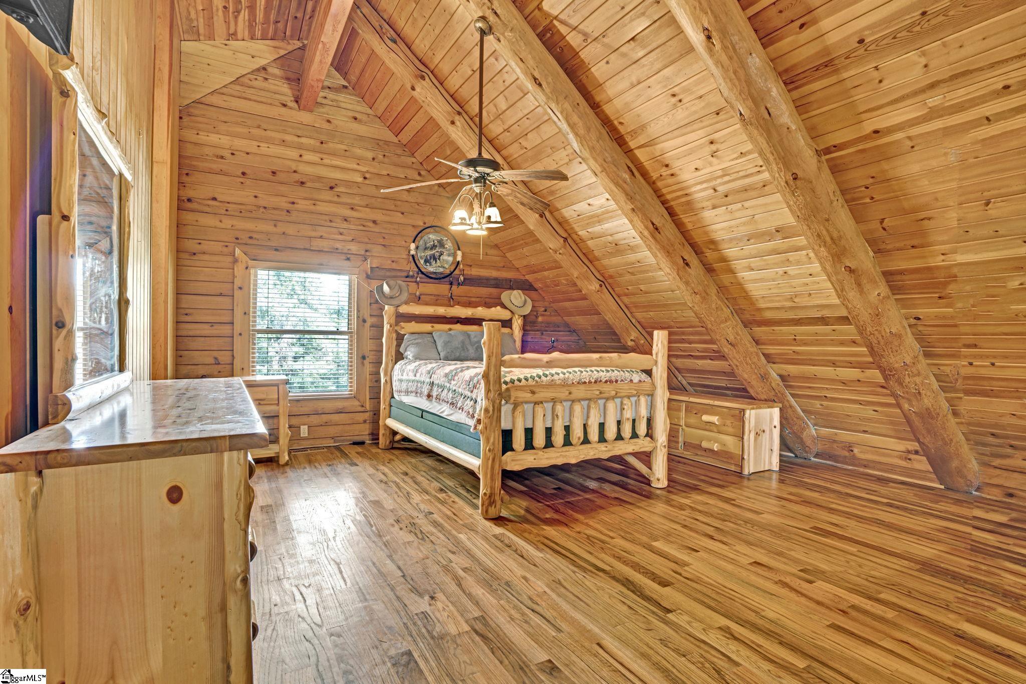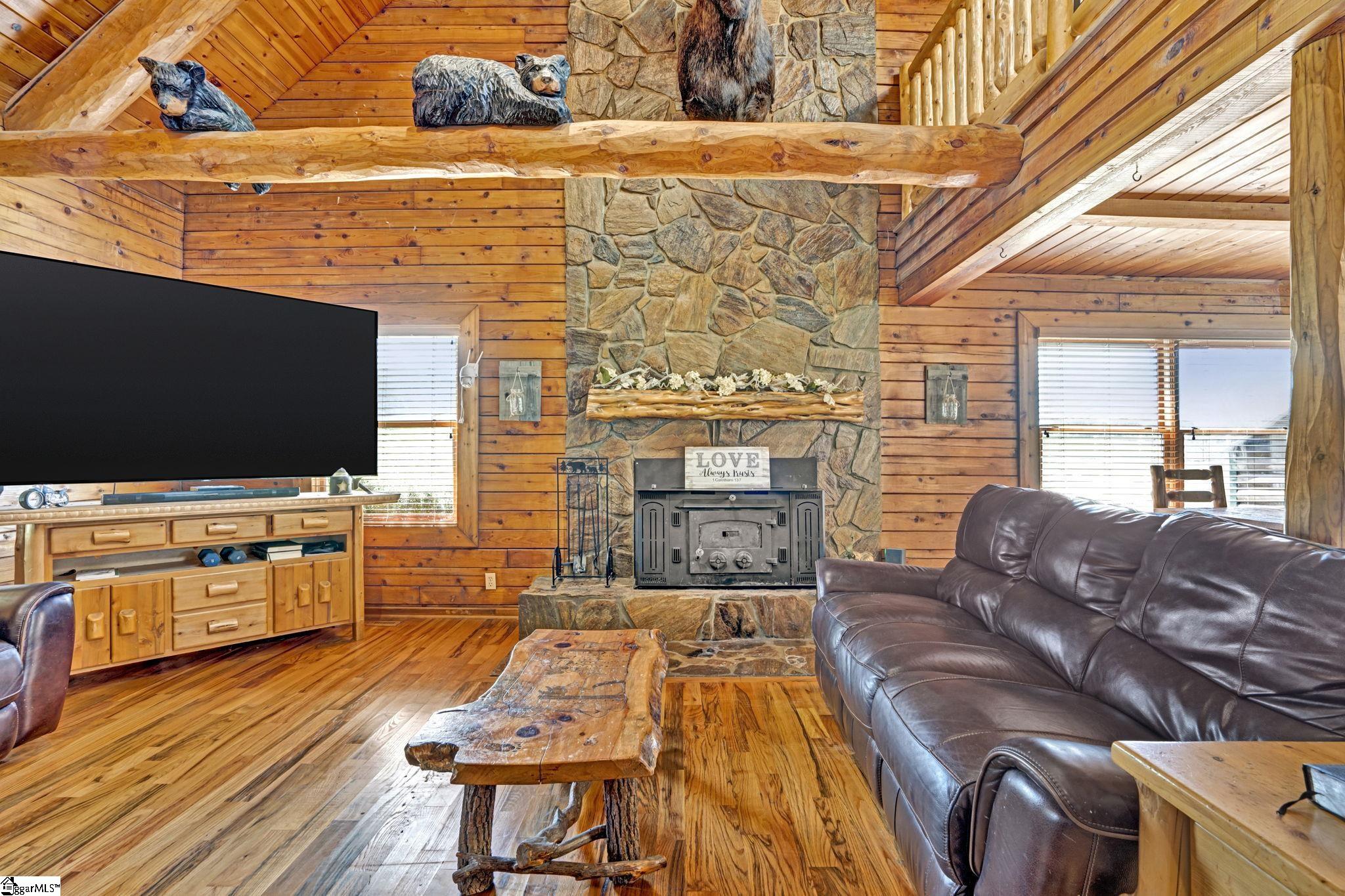 Home being Sold As-Is. Welcome to 313 Henderson Rd in Gray Court, SC—a modern rustic retreat set on approximately 5.92 acres of level, pasture-like land with a standing pond. This custom log-style home offers 3 bedrooms, 2 full baths, and approximately 2,060 sq ft of charming, energy-efficient living space. The property features excellent parking and storage, including a detached 3-car garage and an additional 1-car garage attached to the barn, providing ample space for vehicles, equipment, or hobbies. With 40 owned solar panels powering the home, barn, and detached garage, electric costs are nearly nonexistent. Inside, you’ll find vaulted ceilings, wood floors, granite countertops, and insulated windows. The cozy living room showcases cathedral-style vaulted ceilings and a wood stove, while the kitchen includes an electric cooktop, built-in microwave, and a bright breakfast nook. The spacious upstairs primary suite is a true retreat, featuring a jetted tub and a walk-in closet. Outdoor living shines with covered front and back porches, a hot tub, and a barn/stall plus multiple outbuildings, all equipped with electric and water—ideal for a mini-farm or hobby homestead. The standing pond adds to the property’s peaceful, country setting and usability. Zoned for Gray Court-Owings schools and Laurens District 55, this unique property offers privacy, sustainability, and versatility. Schedule your private showing today.