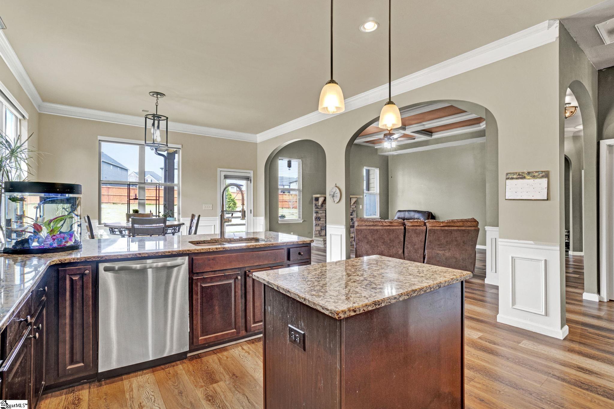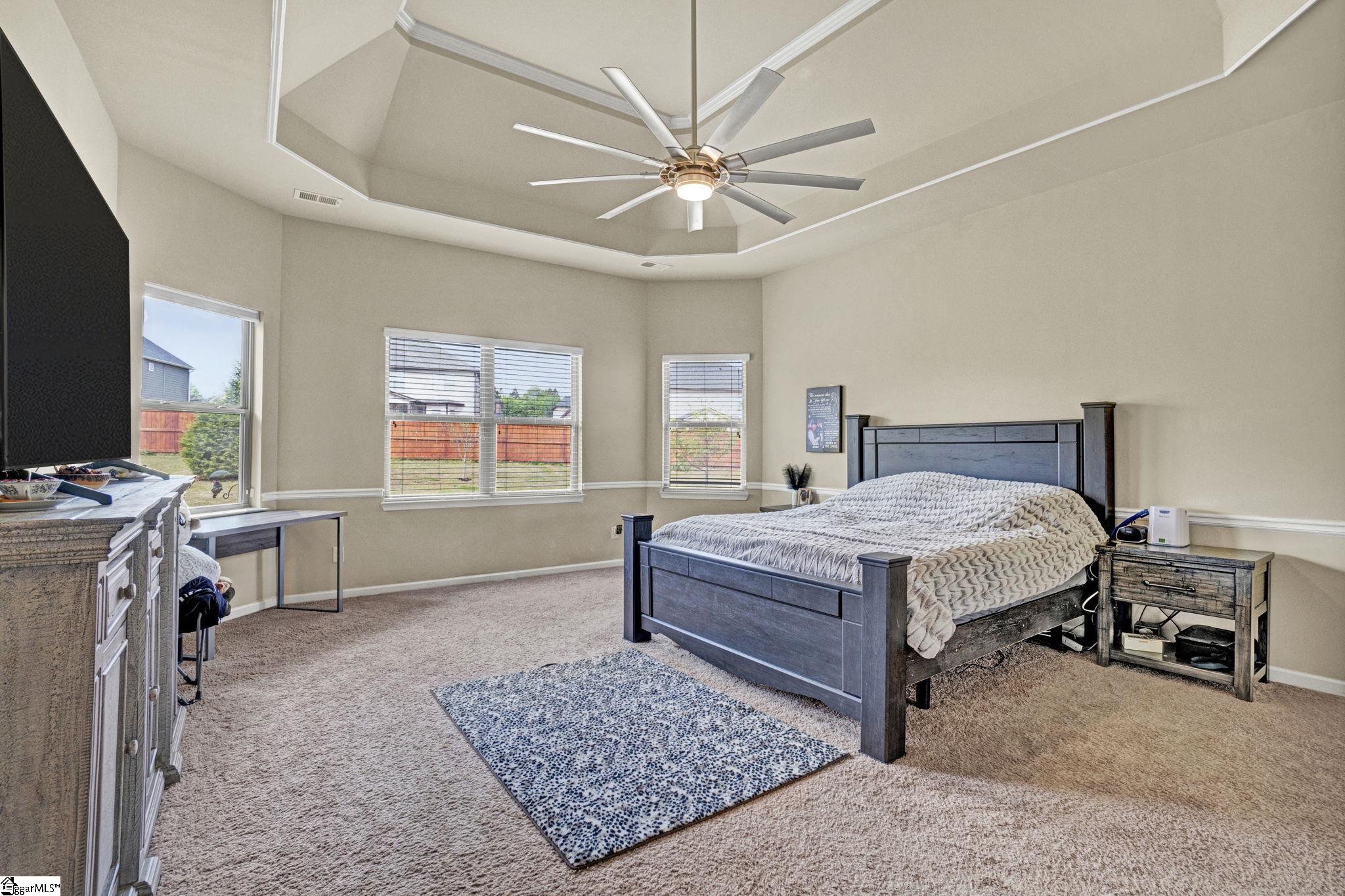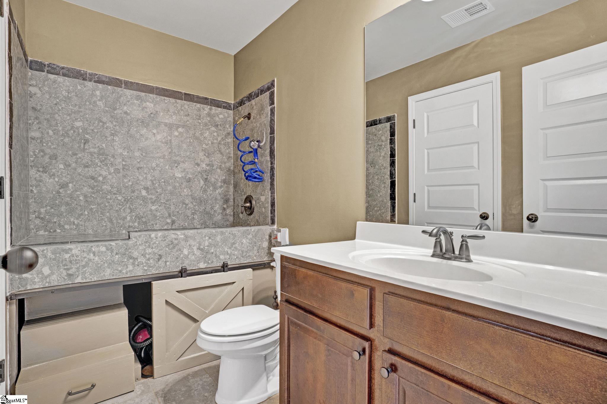 Tucked away on a quiet cul-de-sac, this spacious 4-bedroom home offers the room, layout, and features that make everyday living easy and enjoyable. With over 4,000 square feet, there is space for everyone to spread out while still feeling connected. The main level is designed for comfort and function, featuring durable LVP flooring and an open-concept layout that flows from the living area into the kitchen. The kitchen is equipped with granite countertops, stainless steel appliances, and plenty of cabinet space, making it a great spot for both daily meals and hosting gatherings. The primary suite on the main level adds convenience, complete with a large walk-in closet and a private bath. Upstairs, you’ll find additional bedrooms along with a versatile loft area that works well as a play space, media room, or second living area. One of the upstairs bathrooms is thoughtfully designed with pet washing in mind, adding a practical touch for animal lovers. Storage is not an issue here, with multiple closets and flexible spaces throughout the home. Step outside to a fenced backyard that offers privacy and room to enjoy the outdoors. The outbuilding, already equipped with electricity, provides a great option for a workshop, hobby space, or extra storage. Built in 2018, this home blends modern features with a functional layout, all set in a quiet location in Woodruff. Whether you’re hosting, relaxing, or simply enjoying day-to-day life, this home offers the space and flexibility to make it your own.