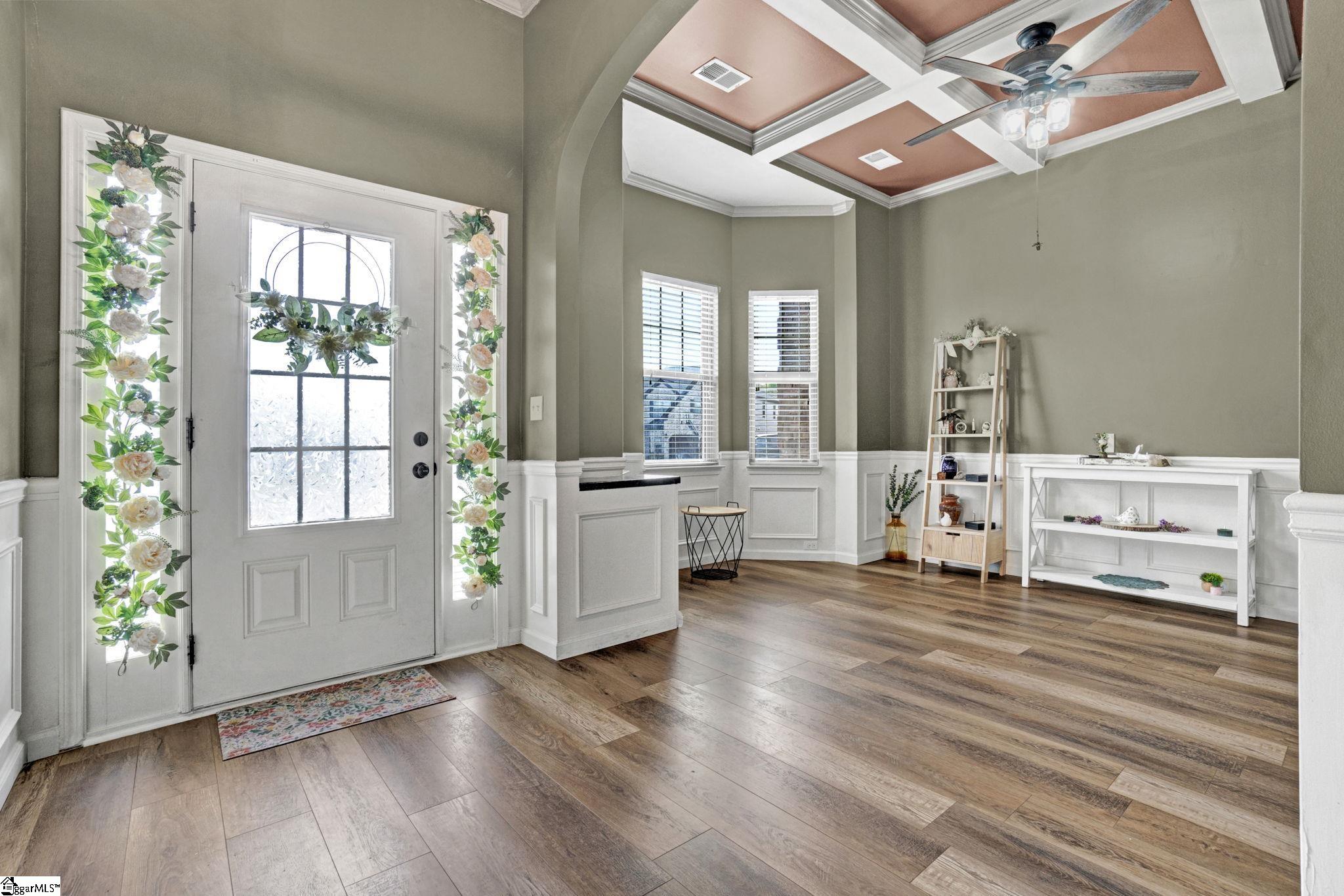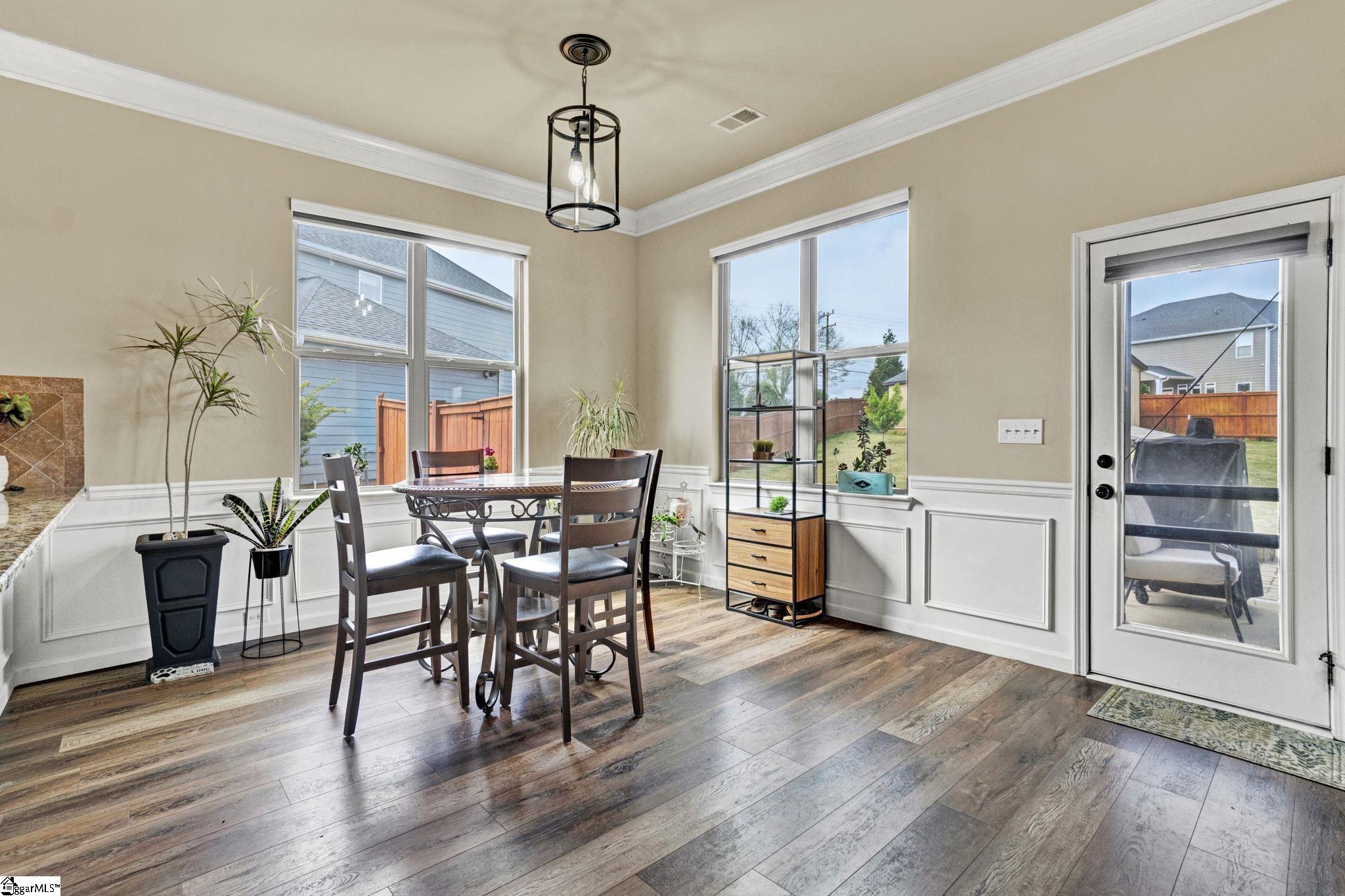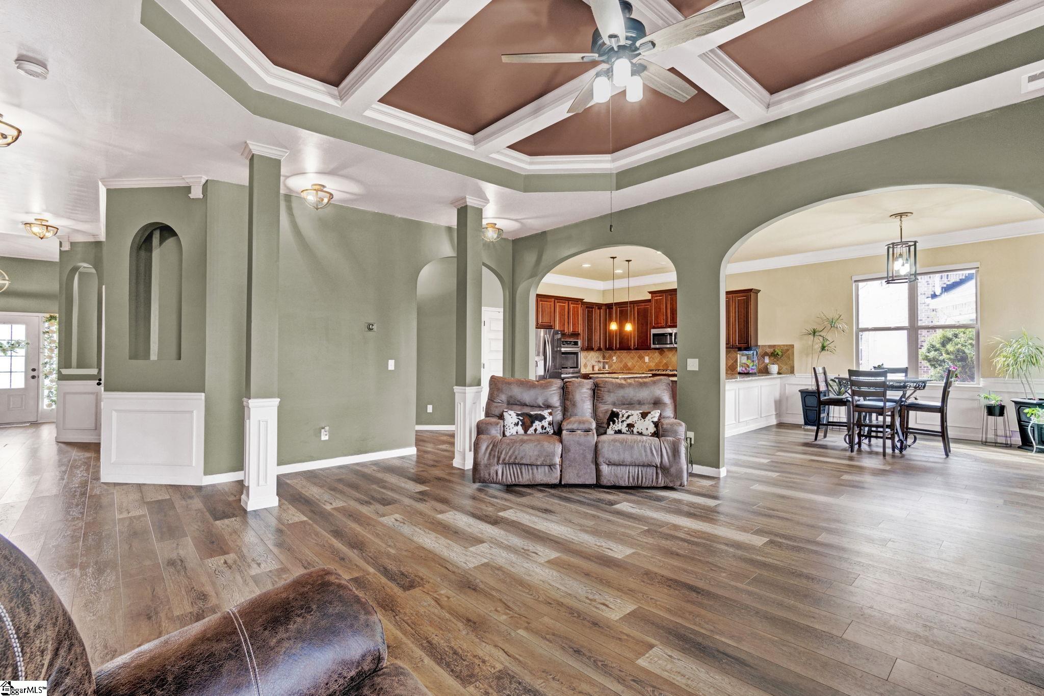 Tucked away on a quiet cul-de-sac, this spacious 4-bedroom home offers the room, layout, and features that make everyday living easy and enjoyable. With over 4,000 square feet, there is space for everyone to spread out while still feeling connected. The main level is designed for comfort and function, featuring durable LVP flooring and an open-concept layout that flows from the living area into the kitchen. The kitchen is equipped with granite countertops, stainless steel appliances, and plenty of cabinet space, making it a great spot for both daily meals and hosting gatherings. The primary suite on the main level adds convenience, complete with a large walk-in closet and a private bath. Upstairs, you’ll find additional bedrooms along with a versatile loft area that works well as a play space, media room, or second living area. One of the upstairs bathrooms is thoughtfully designed with pet washing in mind, adding a practical touch for animal lovers. Storage is not an issue here, with multiple closets and flexible spaces throughout the home. Step outside to a fenced backyard that offers privacy and room to enjoy the outdoors. The outbuilding, already equipped with electricity, provides a great option for a workshop, hobby space, or extra storage. Built in 2018, this home blends modern features with a functional layout, all set in a quiet location in Woodruff. Whether you’re hosting, relaxing, or simply enjoying day-to-day life, this home offers the space and flexibility to make it your own.