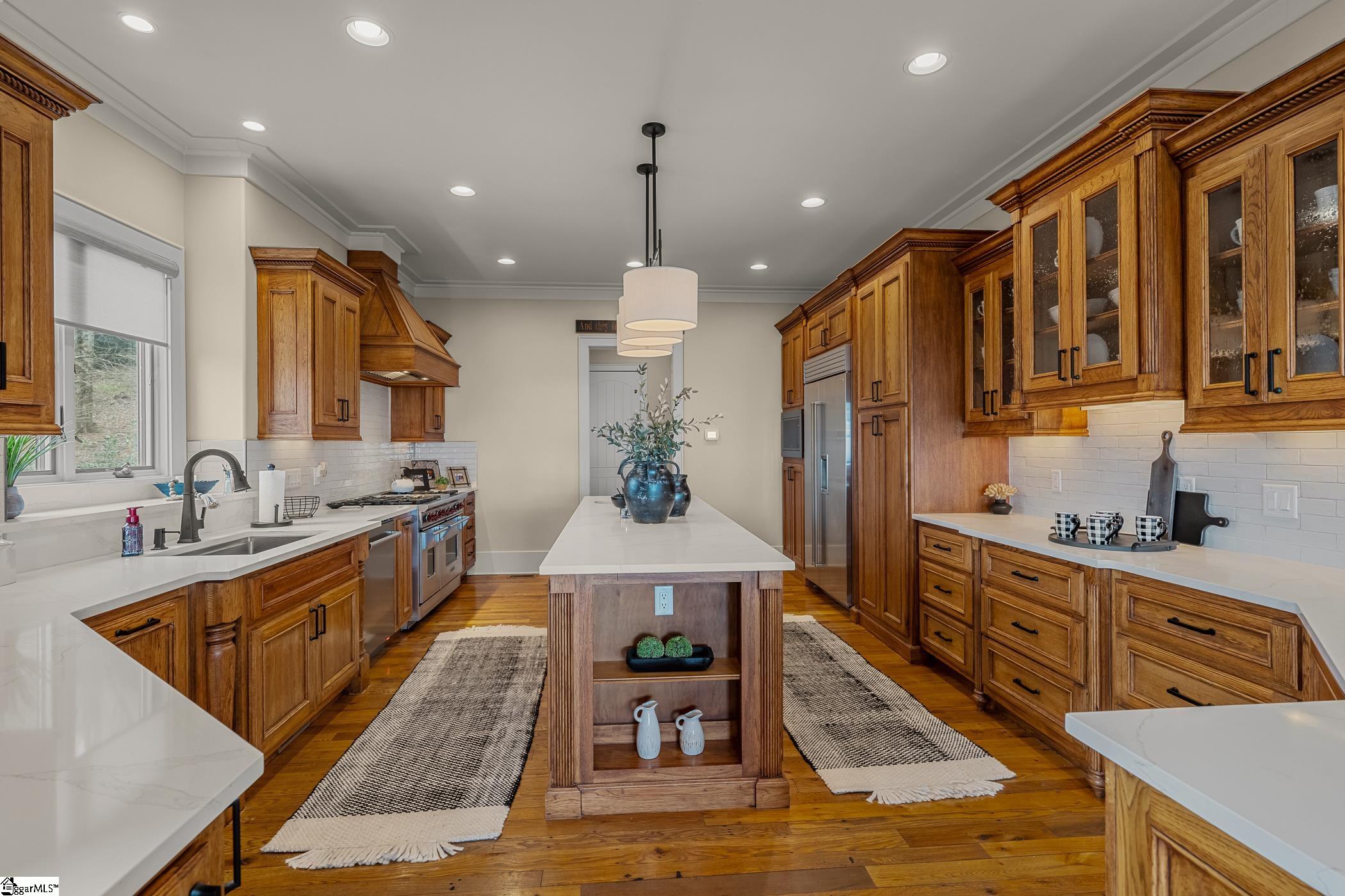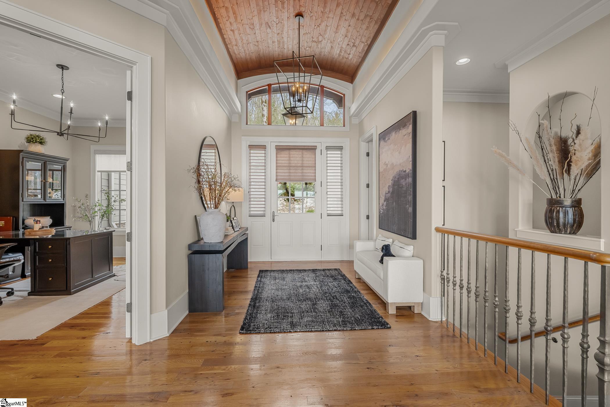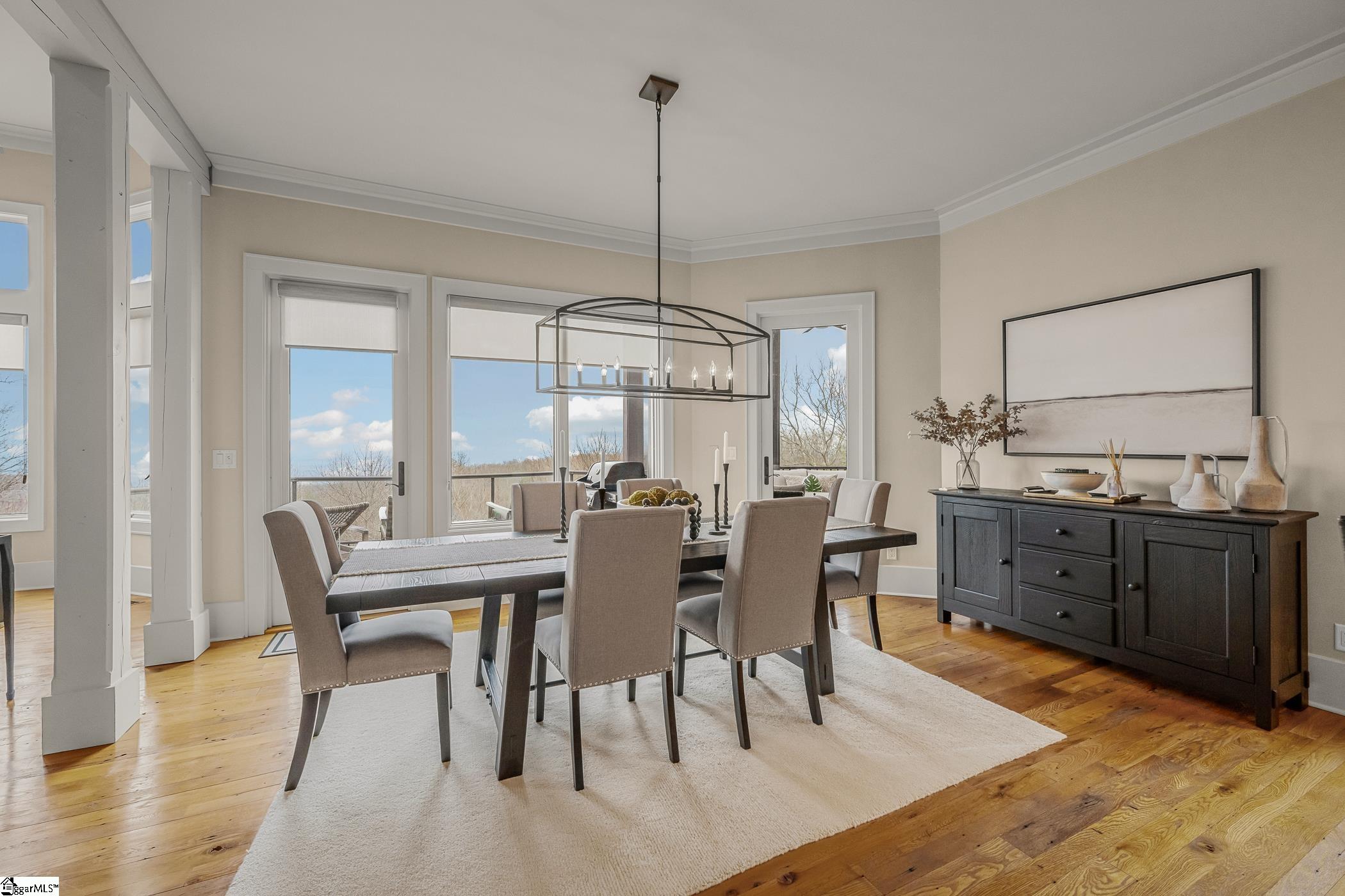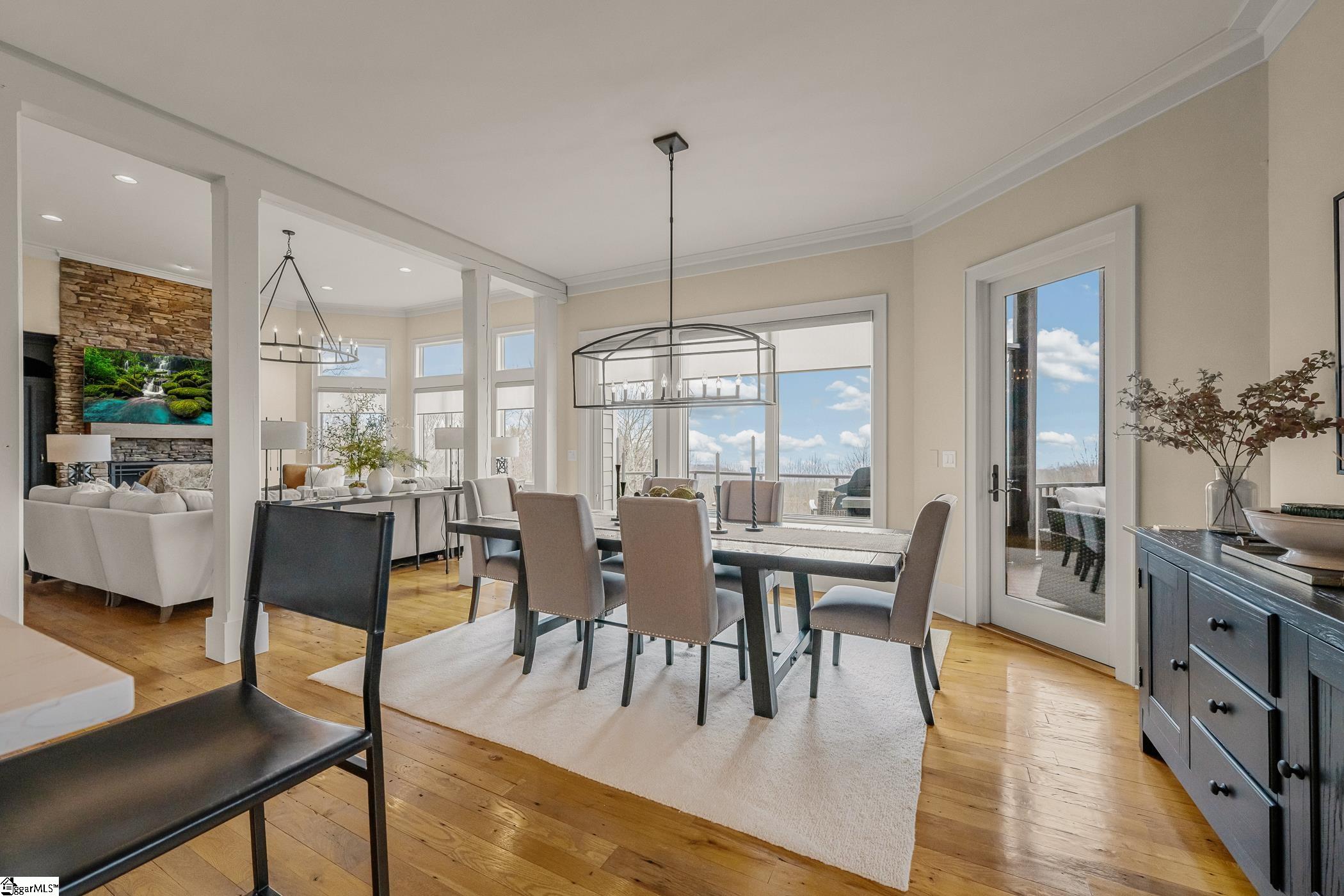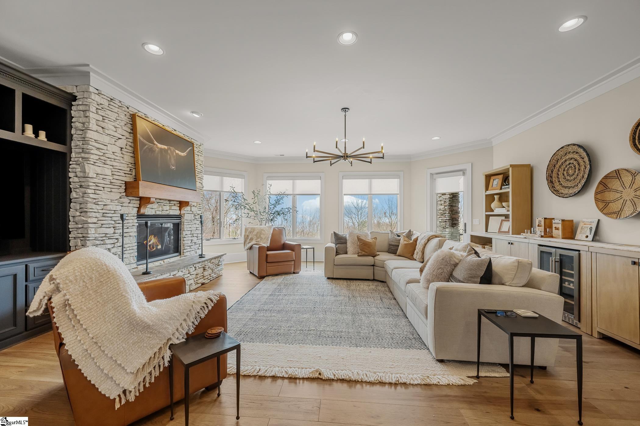 Welcome to 315 Blazing Star Trail, a custom designed, fully furnished, mountain retreat offering long range southeast facing views from nearly every window. Situated on nearly four private acres at an elevation of approximately 3,000 feet, this exceptional property delivers cooler summer temperatures, serene surroundings, and unmatched privacy. Built in 2006 by Bergeron Custom Homes, the residence showcases quality craftsmanship and refined finishes throughout, including mahogany double front doors, extensive crown molding, distressed oak flooring, and floor-to-ceiling Andersen windows that frame the sweeping mountain vistas and flood the home with natural light. The open floor plan flows effortlessly from the foyer, highlighted by a custom barrel oak ceiling with uplighting, into the great room, dining area, and chef’s kitchen. The kitchen is well appointed with a large island featuring a prep sink, a Wolf 6-burner gas cooktop with griddle and vent hood, Sub-Zero refrigerator, Asko dishwasher, custom cabinetry with convenient spice pull-outs, and new quartz countertops. The great room impresses with soaring 10+ foot ceilings, exposed cedar beams, and a dramatic floor-to-ceiling stacked stone gas fireplace with a forged iron screen, creating a warm and inviting gathering space. The main level owner’s suite offers a tray ceiling with cove lighting, an oversized walk-in closet, and a luxurious bath with custom oak vanities, jetted tub, and a spacious walk in shower with designer tile. Outdoor living is equally exceptional, featuring a low-maintenance composite deck and a large octagonal screened porch with a wood burning fireplace, perfect for year round enjoyment while taking in panoramic views. Additional main level features include a private study, central vacuum system, and a custom staircase railing. The lower level is designed for comfort and flexibility, offering a spacious den with a gas fireplace, three ensuite bedrooms with large walk in closets. A lower level mechanics room is easily accessible and includes a very large storage area. Notably, all three lower level bathrooms have been expertly remodeled, enhancing both style and functionality. The lower level outdoor space includes a flagstone patio with a Hot Springs spa featuring six jetted seats, along with a covered deck complete with an under mount drainage system for all weather enjoyment. The fenced side yard is ideal for pets, while the backyard’s natural rock outcropping adds to the home’s distinctive mountain character. The landscaping has been meticulously maintained, further elevating the property’s curb appeal. This offering also includes the adjacent 1.6-acre homesite at 309 Blazing Star Trail (tax id 0646140104400), providing additional privacy or future building potential. Recent updates include new furnishings, lighting, and décor throughout creating a true turn-key opportunity. Additional improvements include a newer HVAC system for the main level as well as a rescreened and refinished porch. A Cliffs Club membership is available to purchase with this property, granting access to all seven Cliffs communities and their world-class amenities.