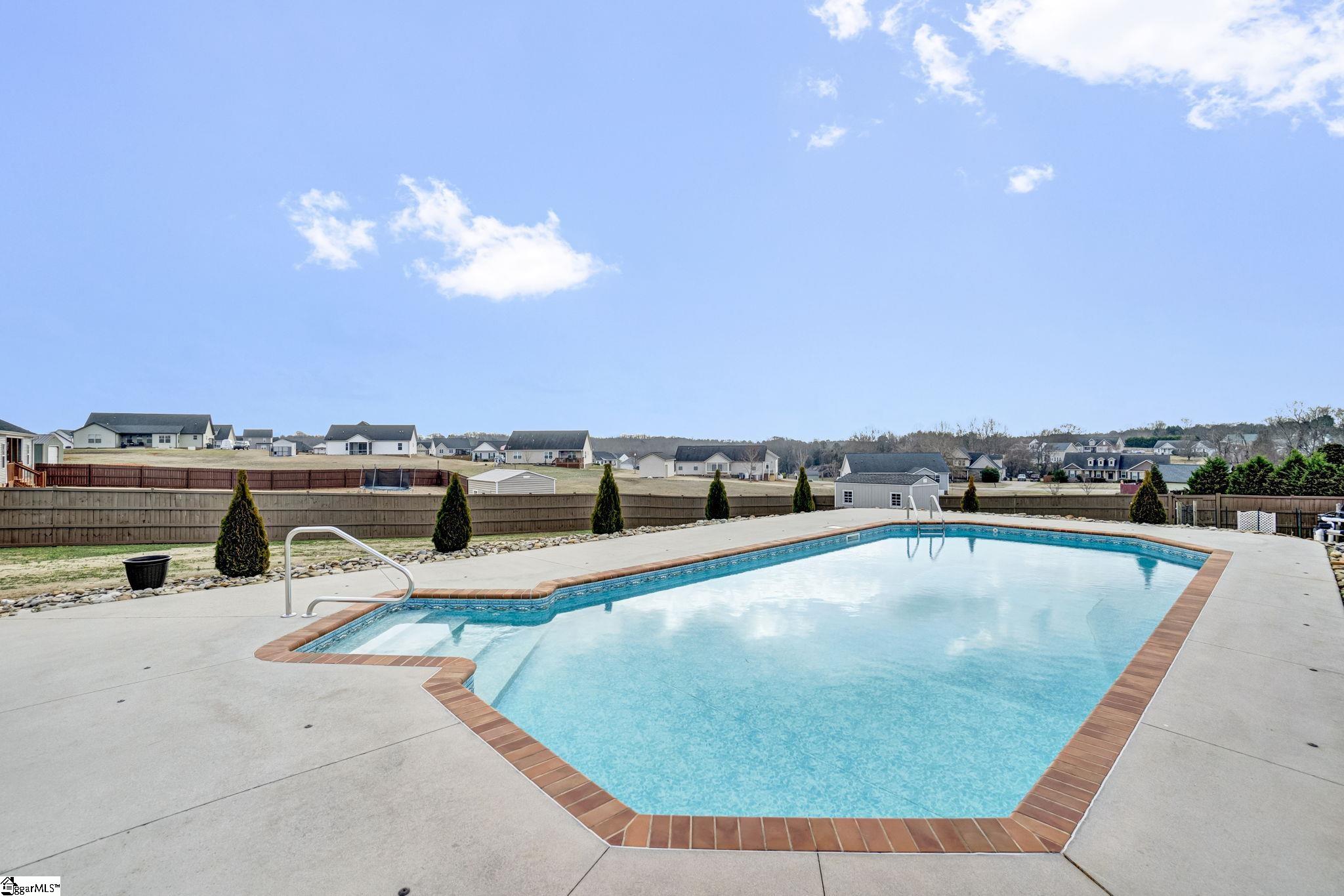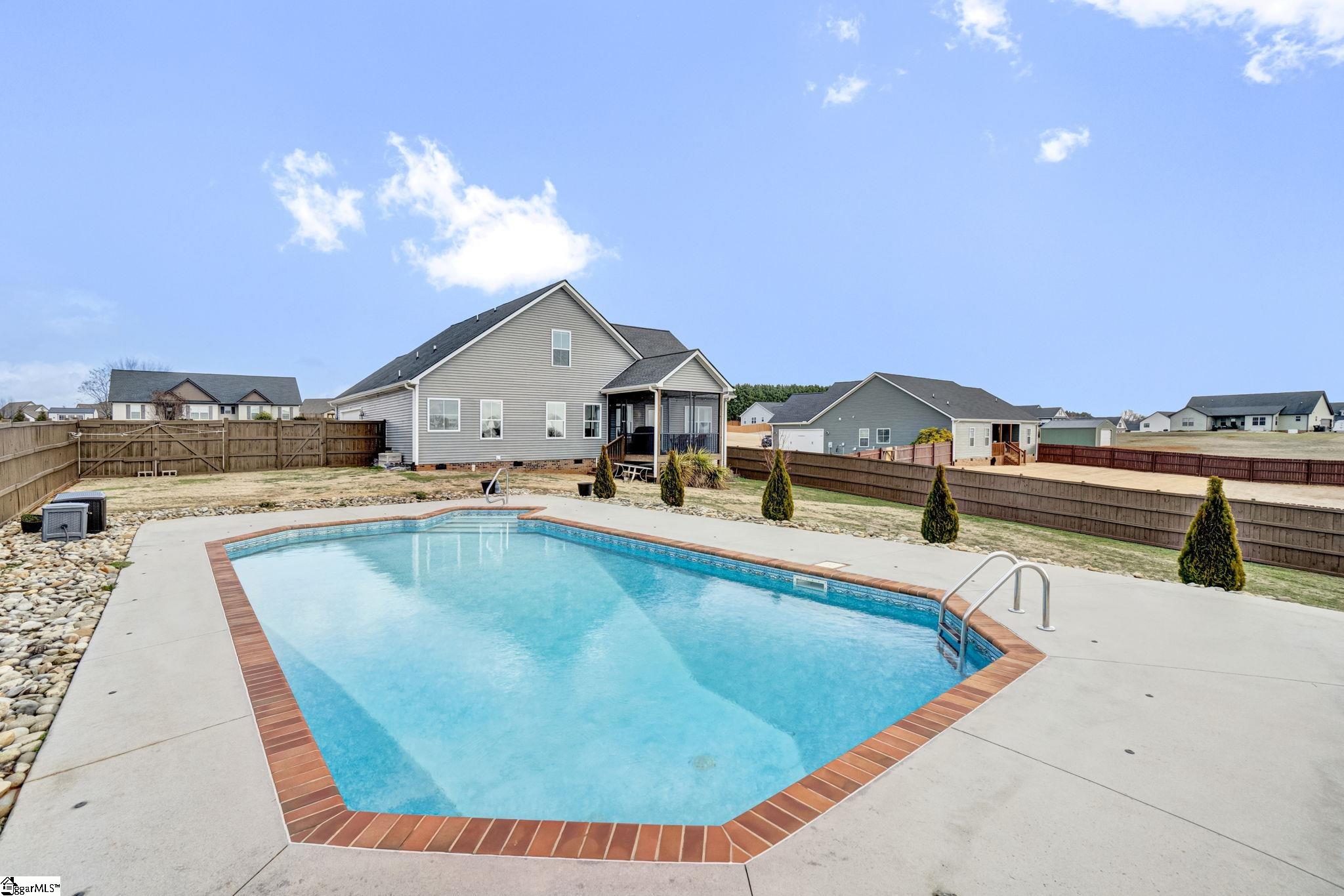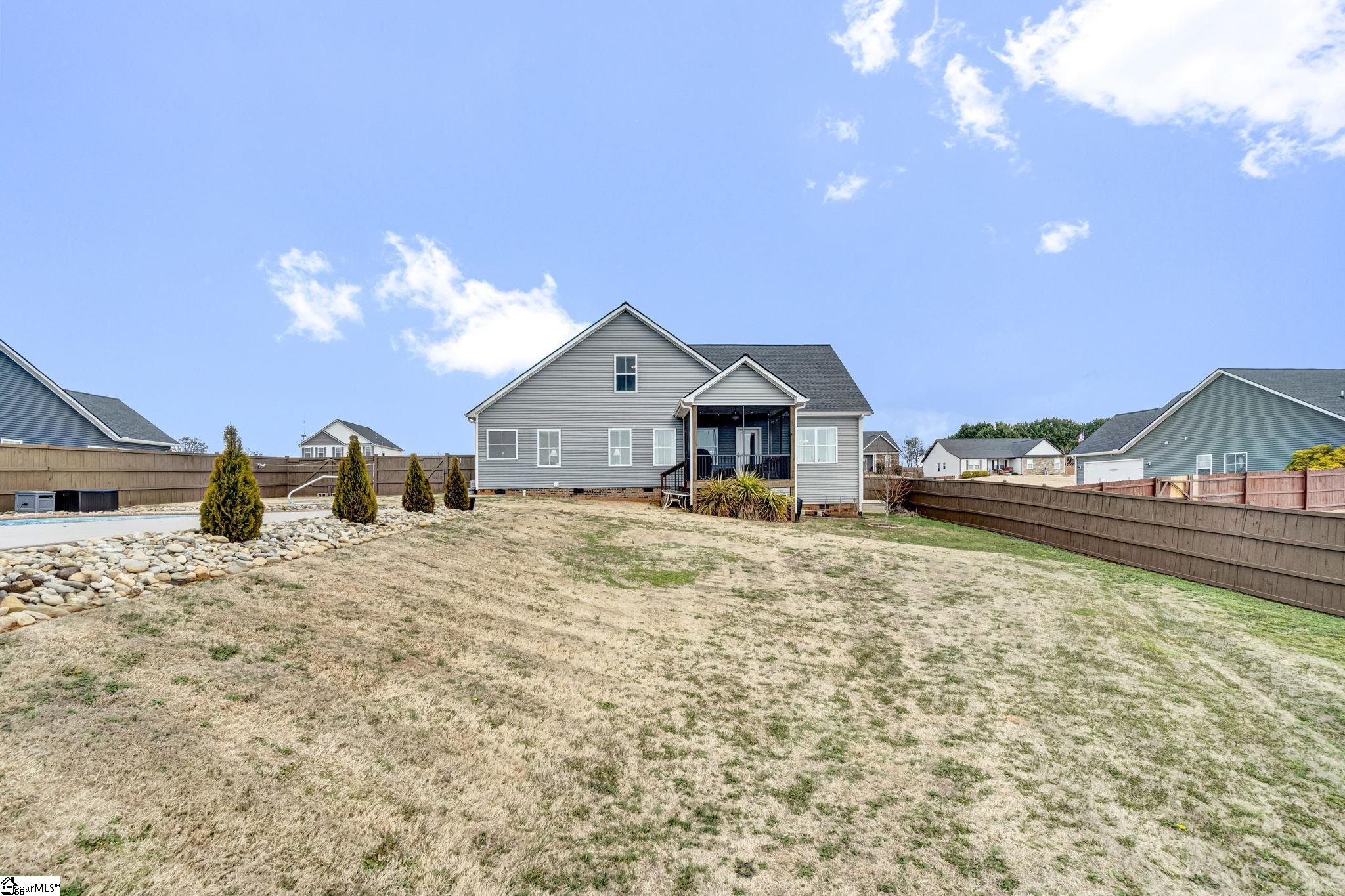 Welcome to 316 Terra Plains Drive, where space, comfort, and exceptional outdoor living come together on a beautifully maintained ¾-acre lot. Ideally located just minutes from Five Forks, Woodruff Road, Interstate 85, and BMW Manufacturing, this home offers both peaceful surroundings and everyday convenience. Inside, you’ll find over 2,000 square feet of thoughtfully designed living space with a bright, open floor plan that easily adapts to your lifestyle. The spacious kitchen is the heart of the home, featuring abundant counter space, extensive cabinetry, double pantries, and a sunny breakfast area, while the formal dining room provides the perfect setting for gatherings both large and small. The generous great room invites you to relax, entertain, and create lasting memories. The main-level primary suite serves as a private retreat, complete with double sinks, a custom tile shower, soaking tub, and a large walk-in closet. A second main-level bedroom offers flexibility as a guest room, home office, or hobby space. Upstairs, two additional bedrooms share a full hall bath, creating comfortable accommodations for family or visitors. Storage is abundant, with two floored walk-in attic spaces offering incredible room for organization and seasonal items. Step outside and discover your personal backyard oasis. Enjoy warm summer days in the 36×16 in-ground saltwater pool, unwind on the screened porch, or entertain in the large fenced backyard designed for relaxation and fun. Garden enthusiasts will appreciate the raised garden beds, and the 16×10 storage shed provides convenient space for tools and equipment. This exceptional property offers the perfect blend of space, functionality, and lifestyle amenities—all in a prime location. Come experience everything this home has to offer and make it yours. Preferred lender offering closing cost assistance—making your move even more attainable!