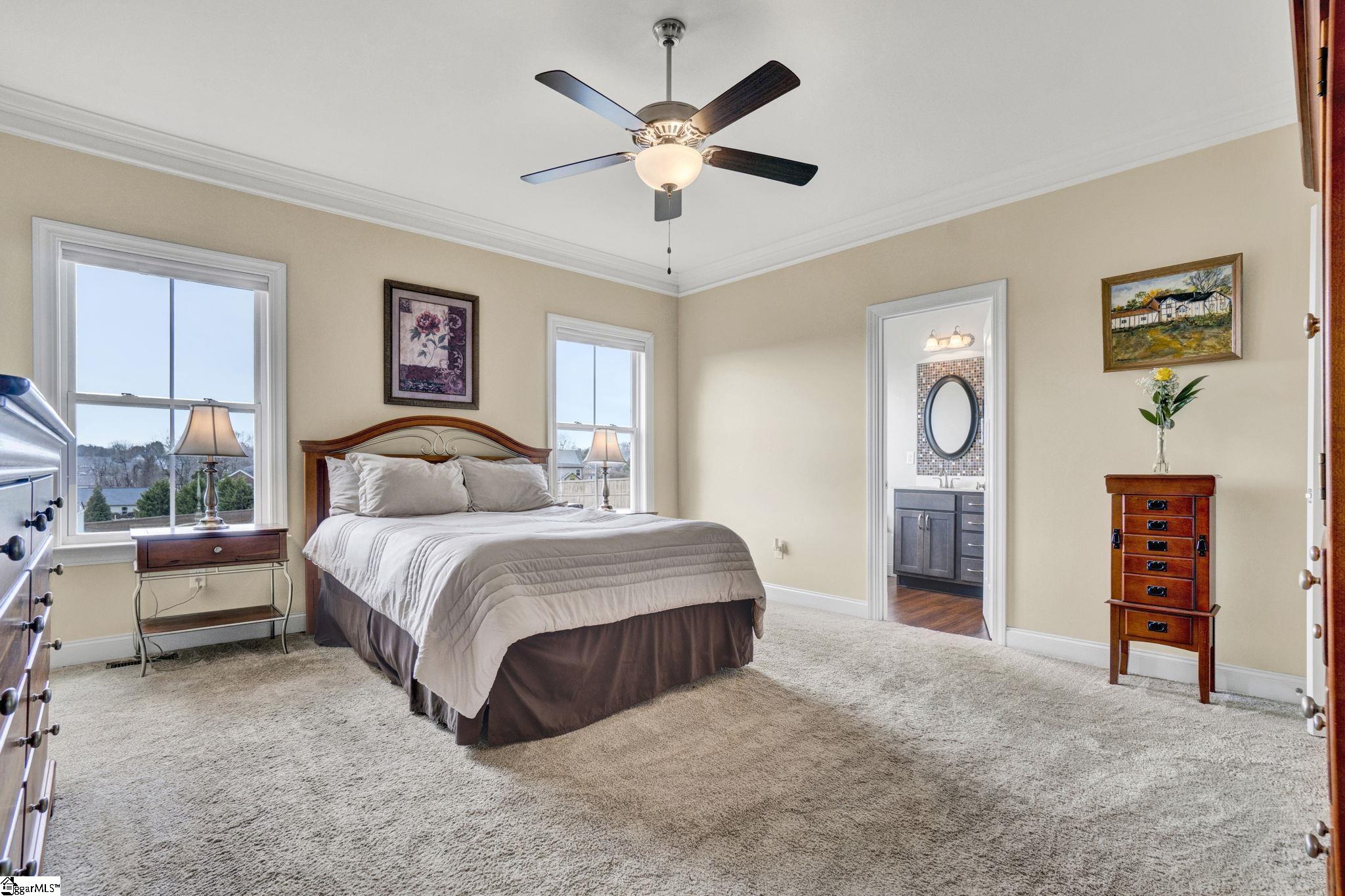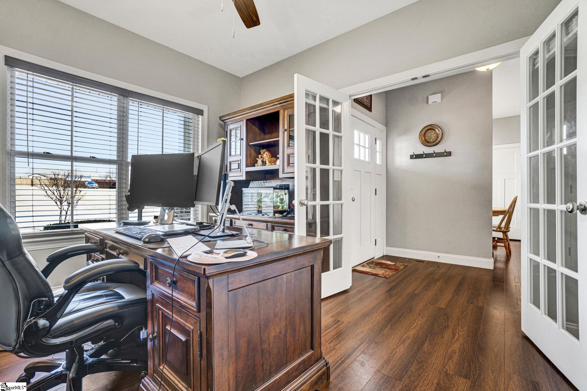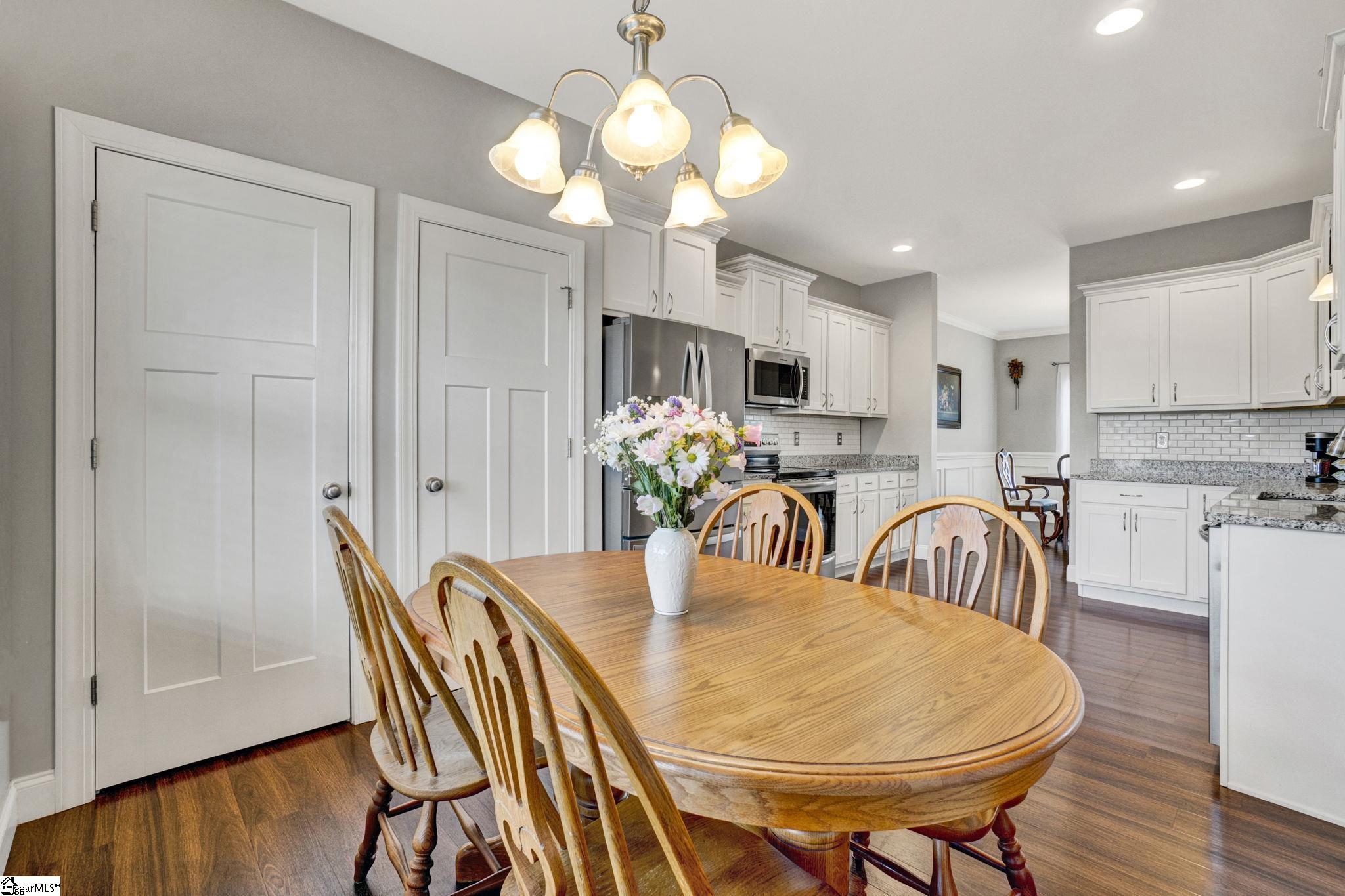 Welcome to 316 Terra Plains Drive, where space, comfort, and exceptional outdoor living come together on a beautifully maintained ¾-acre lot. Ideally located just minutes from Five Forks, Woodruff Road, Interstate 85, and BMW Manufacturing, this home offers both peaceful surroundings and everyday convenience. Inside, you’ll find over 2,000 square feet of thoughtfully designed living space with a bright, open floor plan that easily adapts to your lifestyle. The spacious kitchen is the heart of the home, featuring abundant counter space, extensive cabinetry, double pantries, and a sunny breakfast area, while the formal dining room provides the perfect setting for gatherings both large and small. The generous great room invites you to relax, entertain, and create lasting memories. The main-level primary suite serves as a private retreat, complete with double sinks, a custom tile shower, soaking tub, and a large walk-in closet. A second main-level bedroom offers flexibility as a guest room, home office, or hobby space. Upstairs, two additional bedrooms share a full hall bath, creating comfortable accommodations for family or visitors. Storage is abundant, with two floored walk-in attic spaces offering incredible room for organization and seasonal items. Step outside and discover your personal backyard oasis. Enjoy warm summer days in the 36×16 in-ground saltwater pool, unwind on the screened porch, or entertain in the large fenced backyard designed for relaxation and fun. Garden enthusiasts will appreciate the raised garden beds, and the 16×10 storage shed provides convenient space for tools and equipment. This exceptional property offers the perfect blend of space, functionality, and lifestyle amenities—all in a prime location. Come experience everything this home has to offer and make it yours. Preferred lender offering closing cost assistance—making your move even more attainable!