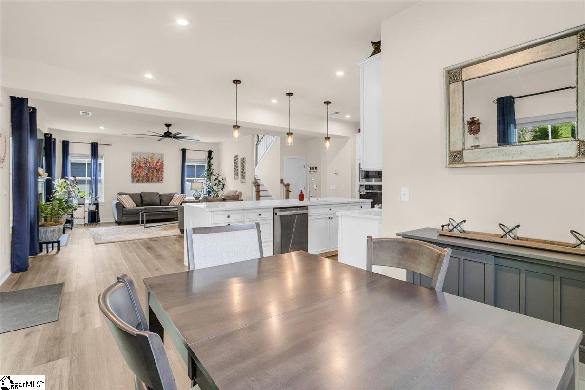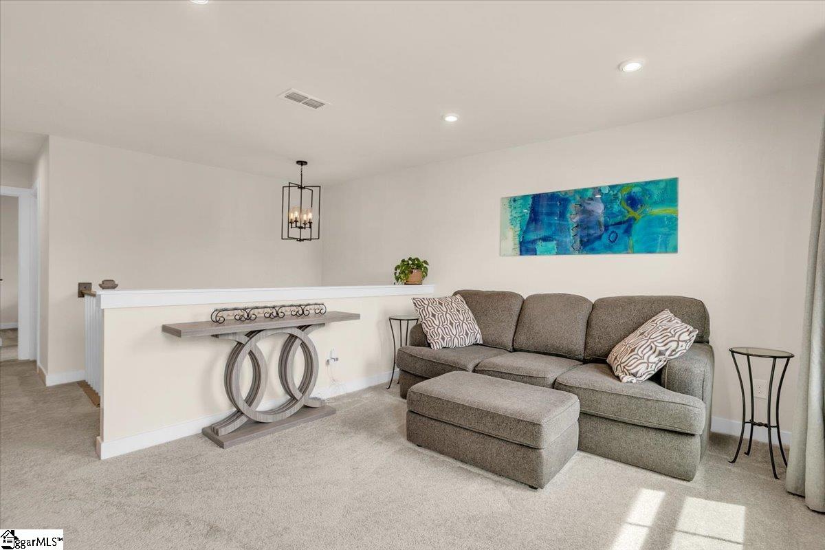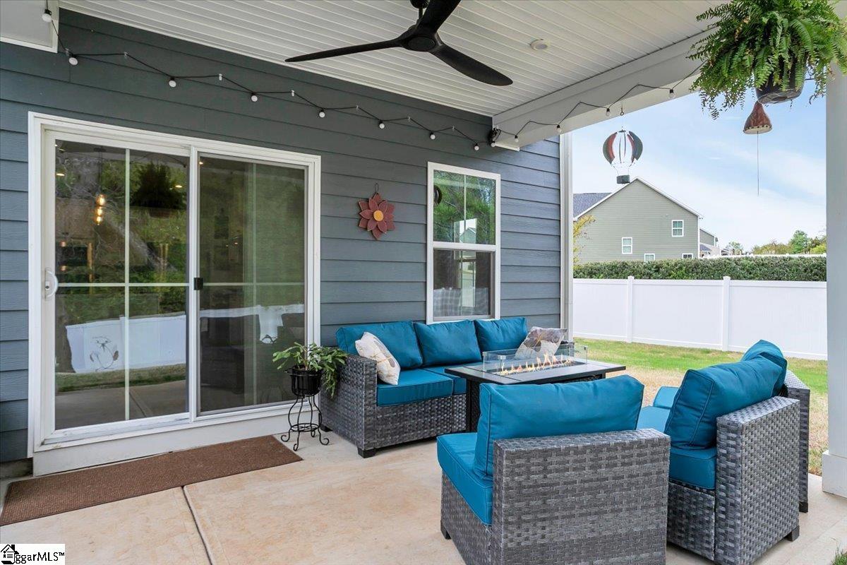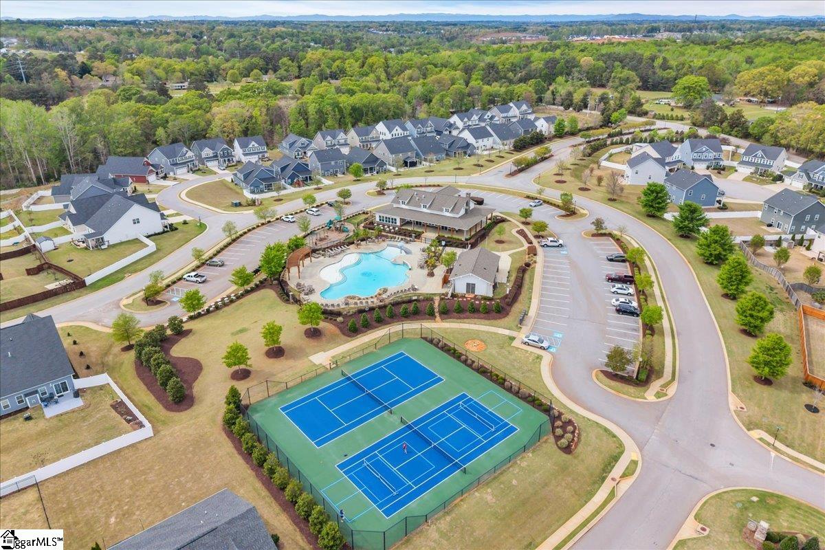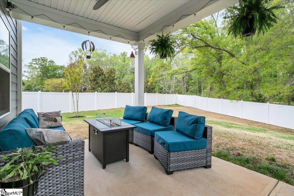 Welcome to Riverstone—where newer construction meets an unbeatable lifestyle in one of the area’s most sought-after communities. This beautifully designed home built in 2023 offers 3 bedrooms, 2.5 baths, plus a dedicated flex/office space and a generously sized loft, giving you the versatility to fit your lifestyle. The main level features wide-plank LVP flooring and hardwood stairs, creating a seamless, polished look throughout. At the heart of the home is an impressive kitchen built for both everyday living and entertainment. Enjoy a massive 10-foot island, quartz countertops, custom tile backsplash, gas cooktop, double ovens, 42″ cabinetry, and the rare bonus of two pantries—providing exceptional storage. The kitchen flows effortlessly into the breakfast area and spacious living room, anchored by a beautiful gas log fireplace. A private flex/office with French doors on the main level offers the perfect space for working from home or quiet retreat. Upstairs, you will find all three bedrooms along with a versatile loft area. The primary suite is truly expansive, featuring a closet so large it feels like an additional room. The en-suite bath includes a double vanity and a stunning tiled walk-in shower with dual shower heads and a built-in bench for a spa-like experience. Step outside to enjoy a private, fully fenced backyard with a large, covered patio—perfect for relaxing or entertaining. With no rear neighbors and a peaceful wooded backdrop, this outdoor space offers rare privacy. Riverstone residents enjoy an exceptional amenity package including a pool, tennis and pickleball courts, playground, fitness facility, and scenic walking trails leading to a pavilion and picnic area by the river. All of this in a prime location just minutes from shopping, dining, and convenient access to I-385—offering the perfect blend of tranquility and accessibility.