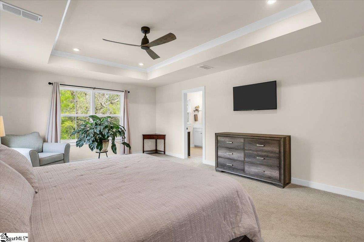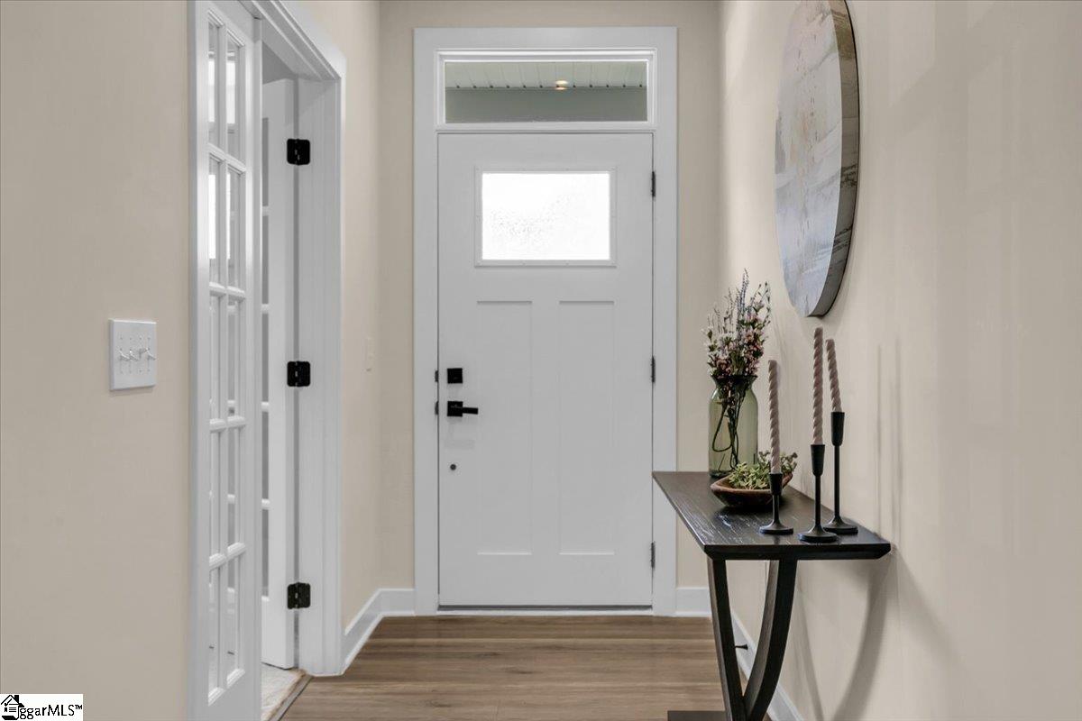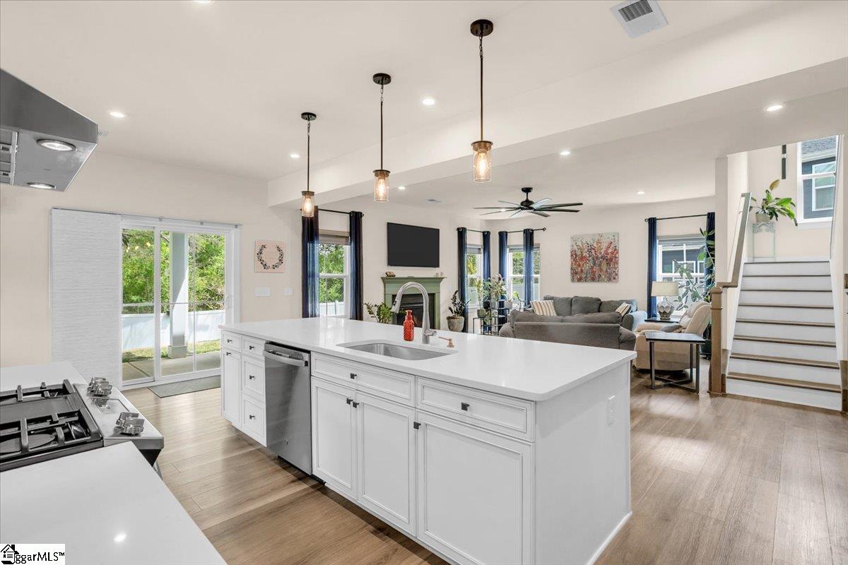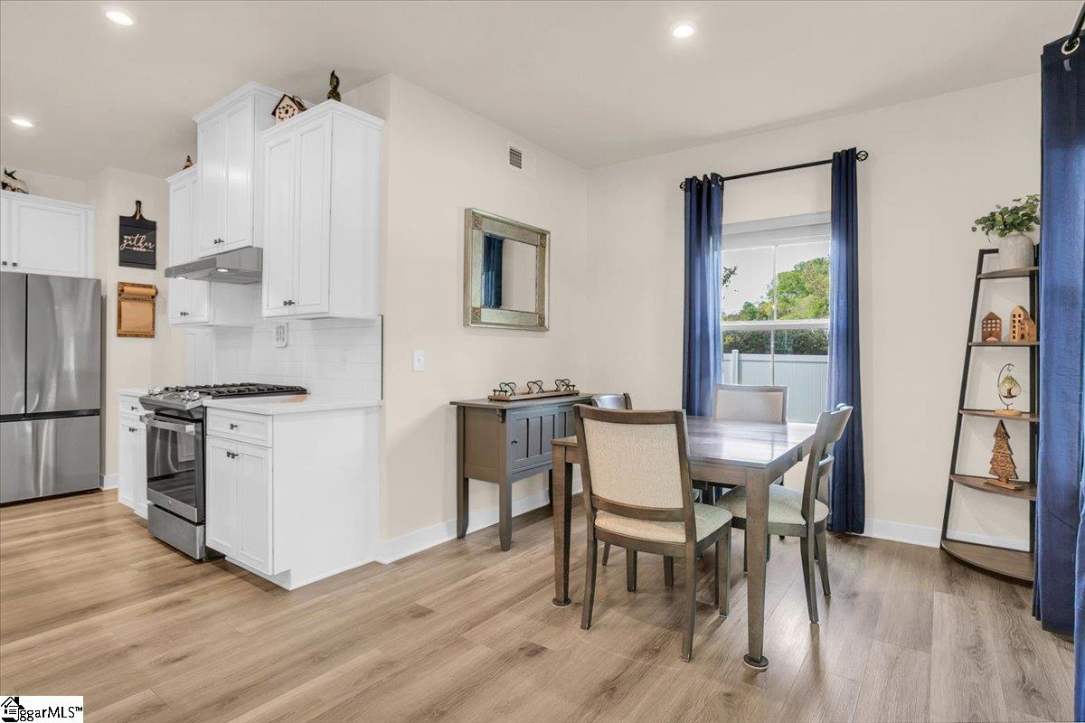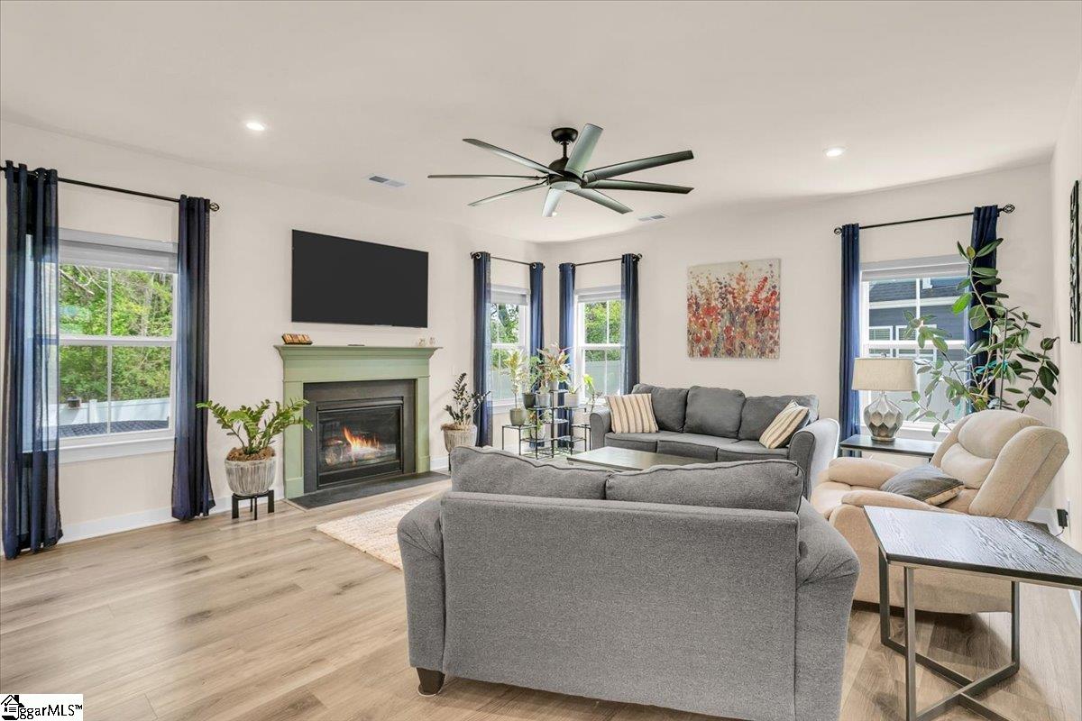 Welcome to Riverstone—where newer construction meets an unbeatable lifestyle in one of the area’s most sought-after communities. This beautifully designed home built in 2023 offers 3 bedrooms, 2.5 baths, plus a dedicated flex/office space and a generously sized loft, giving you the versatility to fit your lifestyle. The main level features wide-plank LVP flooring and hardwood stairs, creating a seamless, polished look throughout. At the heart of the home is an impressive kitchen built for both everyday living and entertainment. Enjoy a massive 10-foot island, quartz countertops, custom tile backsplash, gas cooktop, double ovens, 42″ cabinetry, and the rare bonus of two pantries—providing exceptional storage. The kitchen flows effortlessly into the breakfast area and spacious living room, anchored by a beautiful gas log fireplace. A private flex/office with French doors on the main level offers the perfect space for working from home or quiet retreat. Upstairs, you will find all three bedrooms along with a versatile loft area. The primary suite is truly expansive, featuring a closet so large it feels like an additional room. The en-suite bath includes a double vanity and a stunning tiled walk-in shower with dual shower heads and a built-in bench for a spa-like experience. Step outside to enjoy a private, fully fenced backyard with a large, covered patio—perfect for relaxing or entertaining. With no rear neighbors and a peaceful wooded backdrop, this outdoor space offers rare privacy. Riverstone residents enjoy an exceptional amenity package including a pool, tennis and pickleball courts, playground, fitness facility, and scenic walking trails leading to a pavilion and picnic area by the river. All of this in a prime location just minutes from shopping, dining, and convenient access to I-385—offering the perfect blend of tranquility and accessibility.