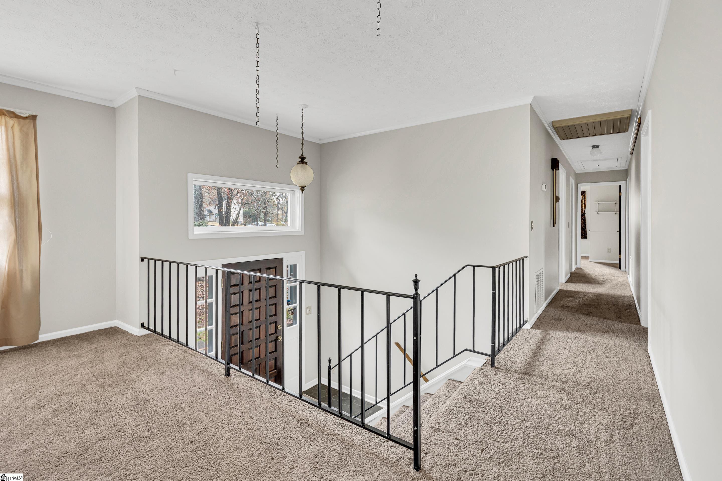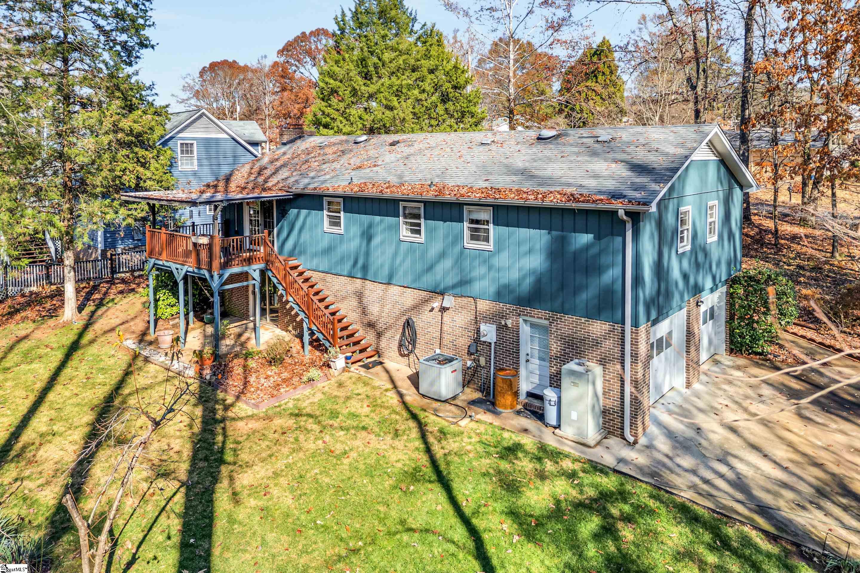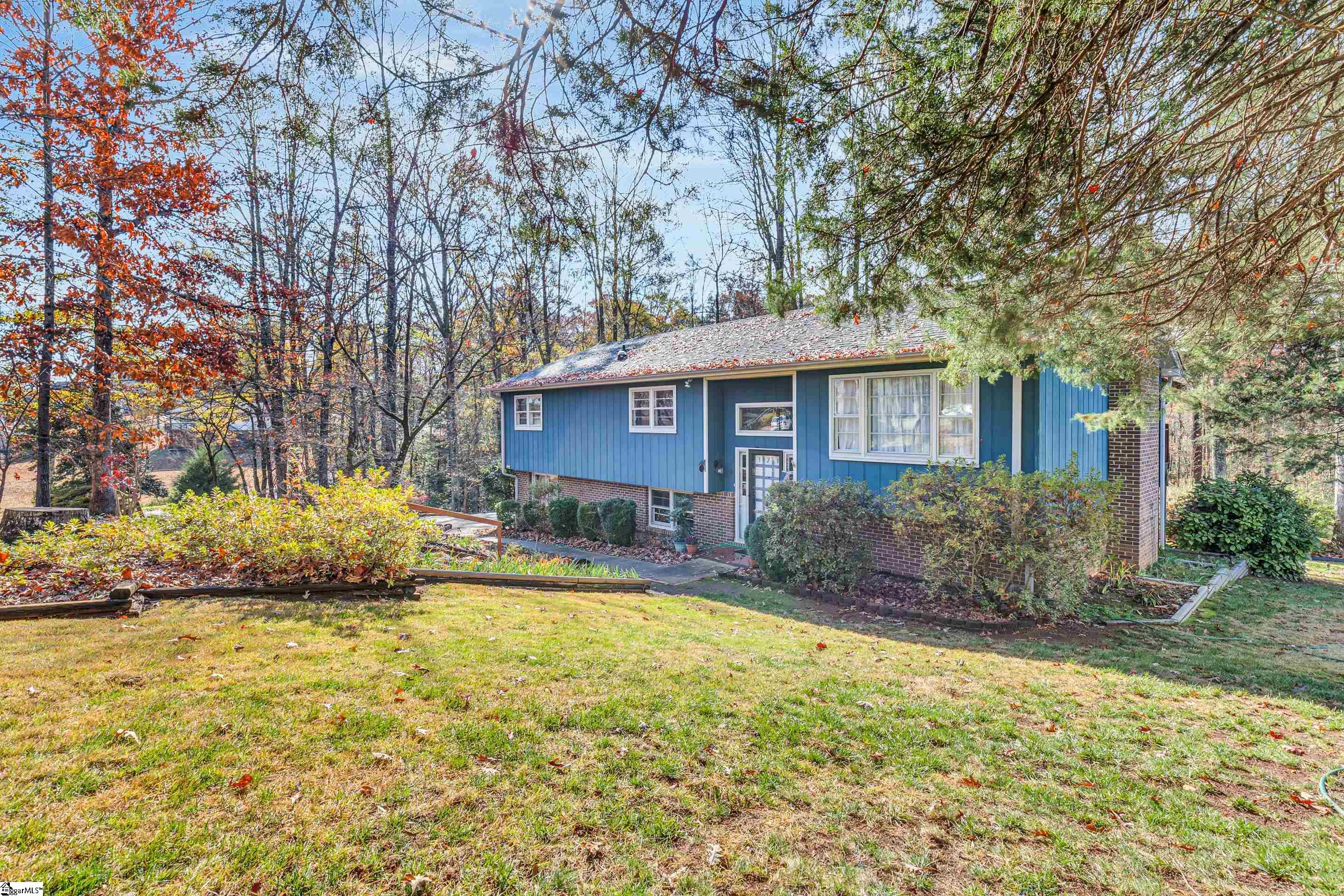 Welcome to this spacious 4-bedroom, 2.5-bath split-level home offering comfort, versatility, and room to grow—all set on over an acre of beautifully wooded land. With just under 2,600 sq. ft., this property blends classic charm with functional living spaces. The main level features a bright living area, the spacious kitchen includes quartz countertops, smooth top stove w/ convection oven, refrigerator and dishwasher and is open to the ding area. Off this area is a covered deck overlooking a private, tree-lined backyard, perfect for quiet mornings or gatherings with friends. Great for gilling your favorite meals. The lower level opens to a large Recreation room with a cozy gas-log fireplace, plus an adjoining office area ideal for remote work or hobbies. A covered patio extends your living space outdoors. New carpet installed and freshly painted on the main level. Exterior details include brick and wood siding, a side-entry two-car garage, and generous outdoor space that offers both shade and privacy. Located near the popular Doodlebug Trail—a local favorite similar to the Swamp Rabbit Trail—you’ll enjoy easy access to scenic walking, running, and biking. The home is also conveniently close to parks, shopping, numerous grocery options, major highways, and top-rated schools, making this an ideal location for everyday living. A rare combination of space, convenience, and natural surroundings—come see what this home has to offer.