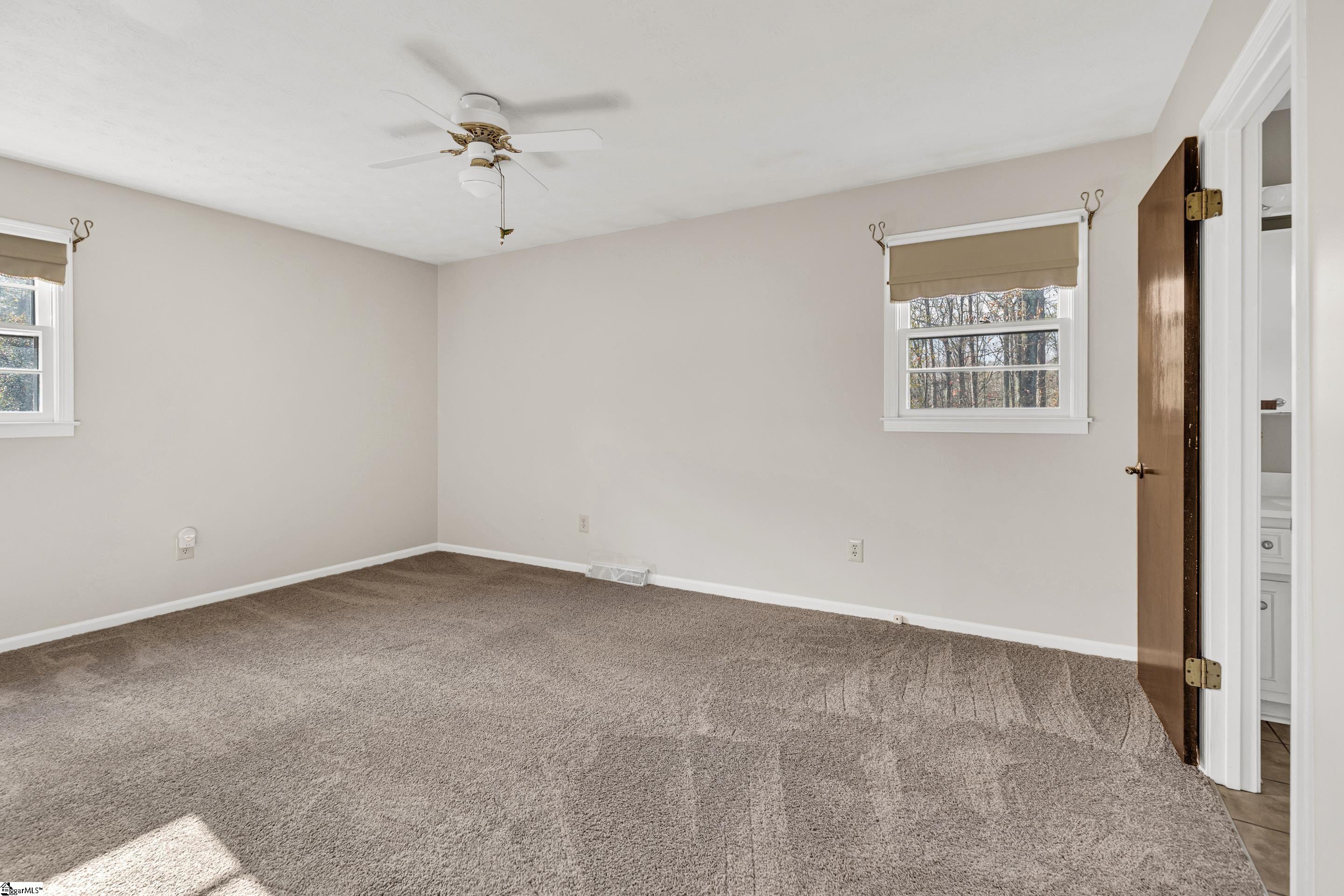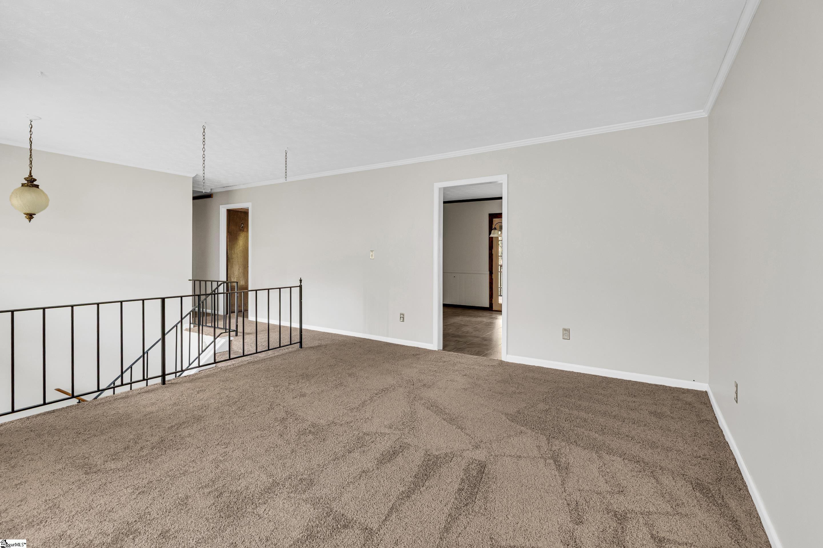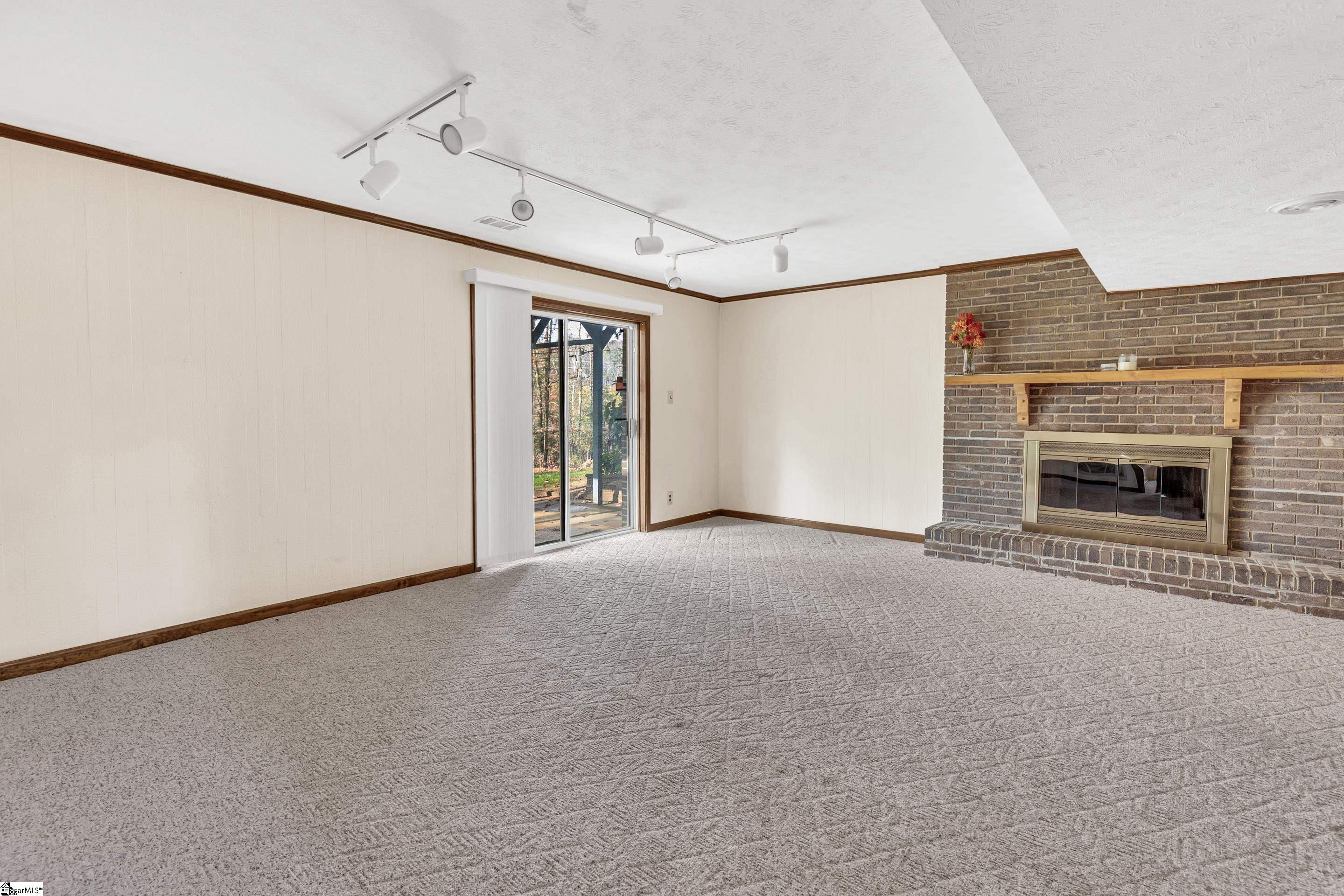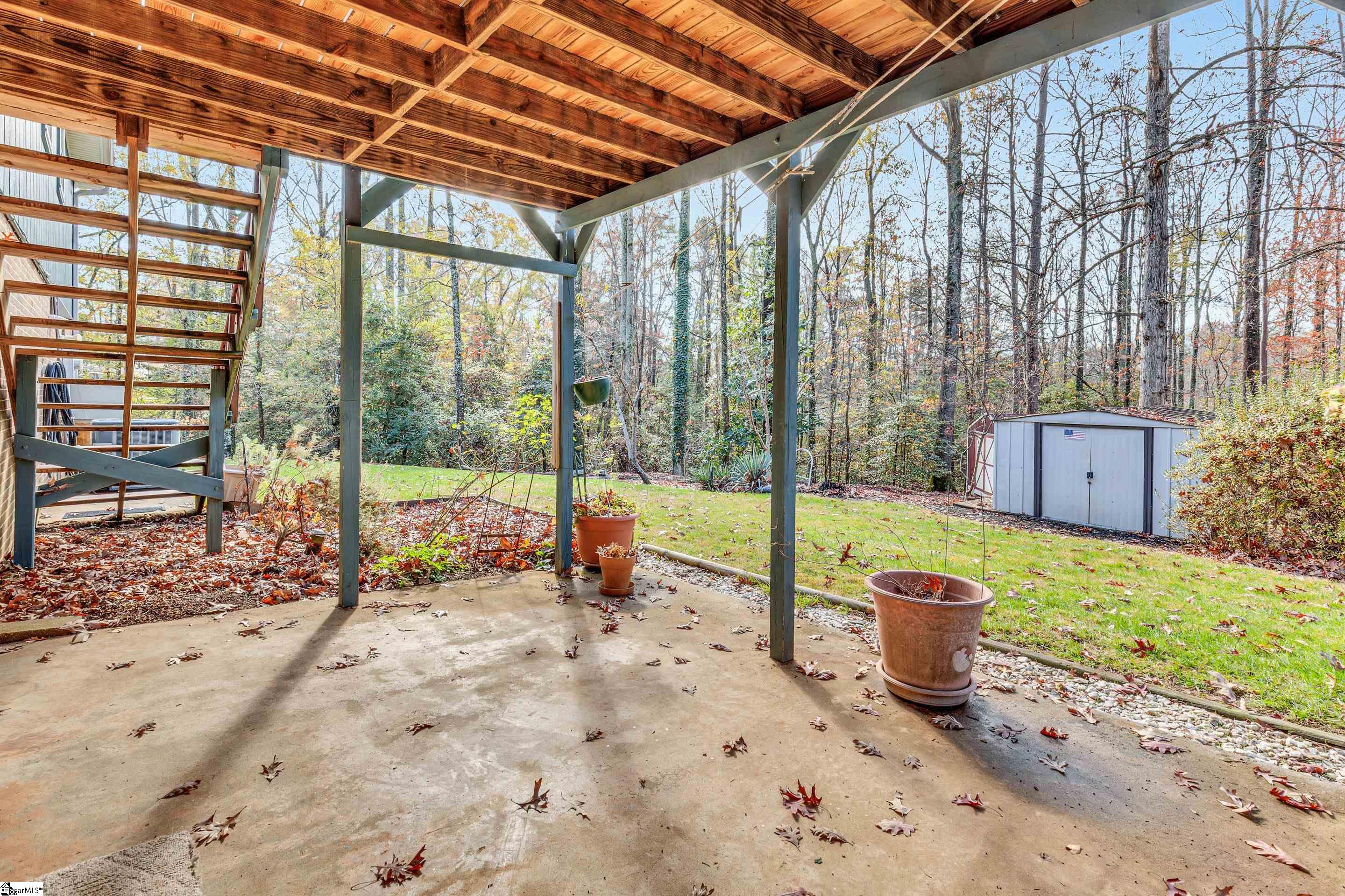 Welcome to this spacious 4-bedroom, 2.5-bath split-level home offering comfort, versatility, and room to grow—all set on over an acre of beautifully wooded land. With just under 2,600 sq. ft., this property blends classic charm with functional living spaces. The main level features a bright living area, the spacious kitchen includes quartz countertops, smooth top stove w/ convection oven, refrigerator and dishwasher and is open to the ding area. Off this area is a covered deck overlooking a private, tree-lined backyard, perfect for quiet mornings or gatherings with friends. Great for gilling your favorite meals. The lower level opens to a large Recreation room with a cozy gas-log fireplace, plus an adjoining office area ideal for remote work or hobbies. A covered patio extends your living space outdoors. New carpet installed and freshly painted on the main level. Exterior details include brick and wood siding, a side-entry two-car garage, and generous outdoor space that offers both shade and privacy. Located near the popular Doodlebug Trail—a local favorite similar to the Swamp Rabbit Trail—you’ll enjoy easy access to scenic walking, running, and biking. The home is also conveniently close to parks, shopping, numerous grocery options, major highways, and top-rated schools, making this an ideal location for everyday living. A rare combination of space, convenience, and natural surroundings—come see what this home has to offer.