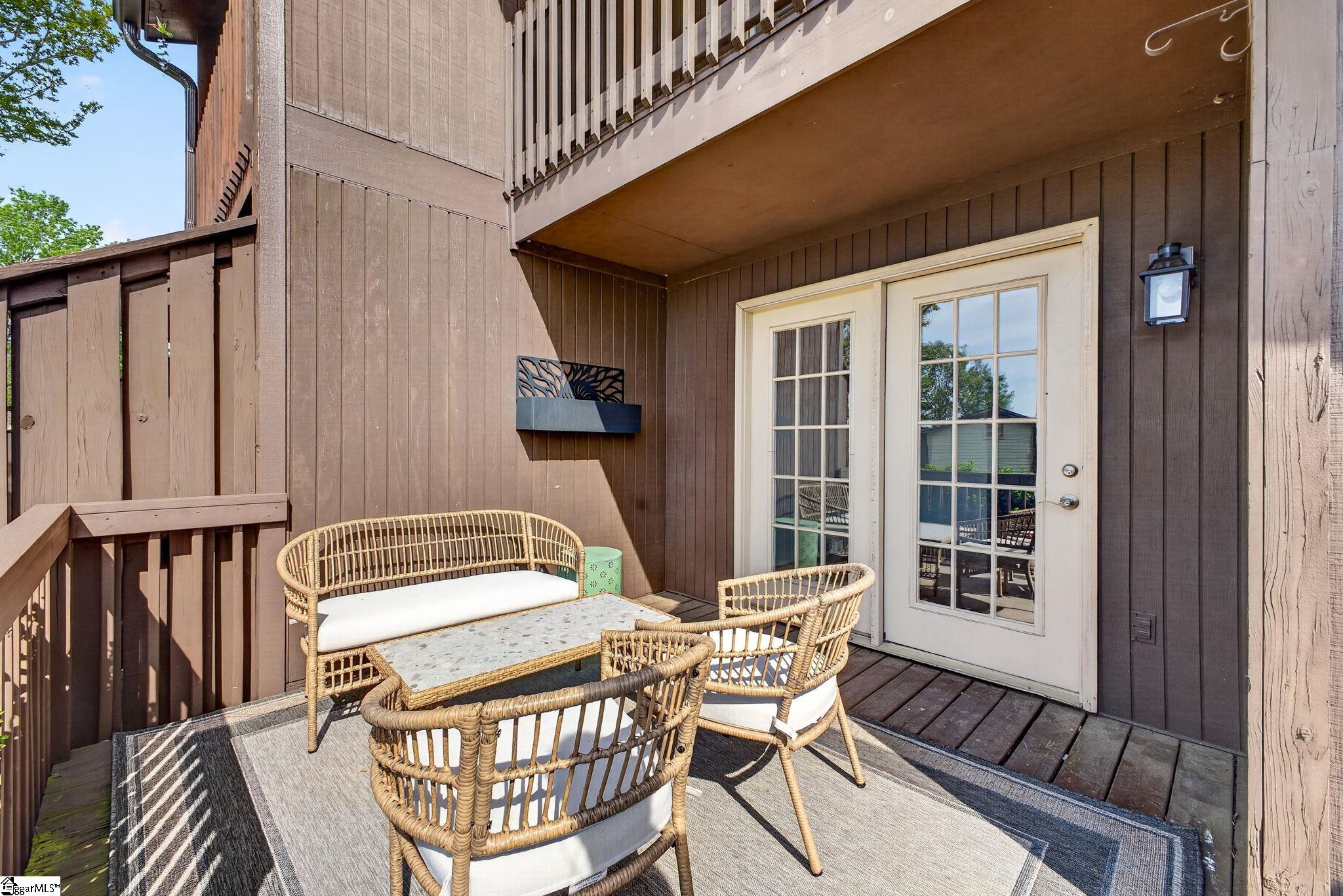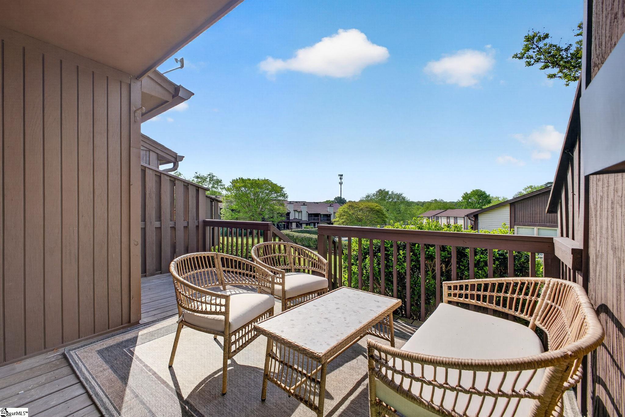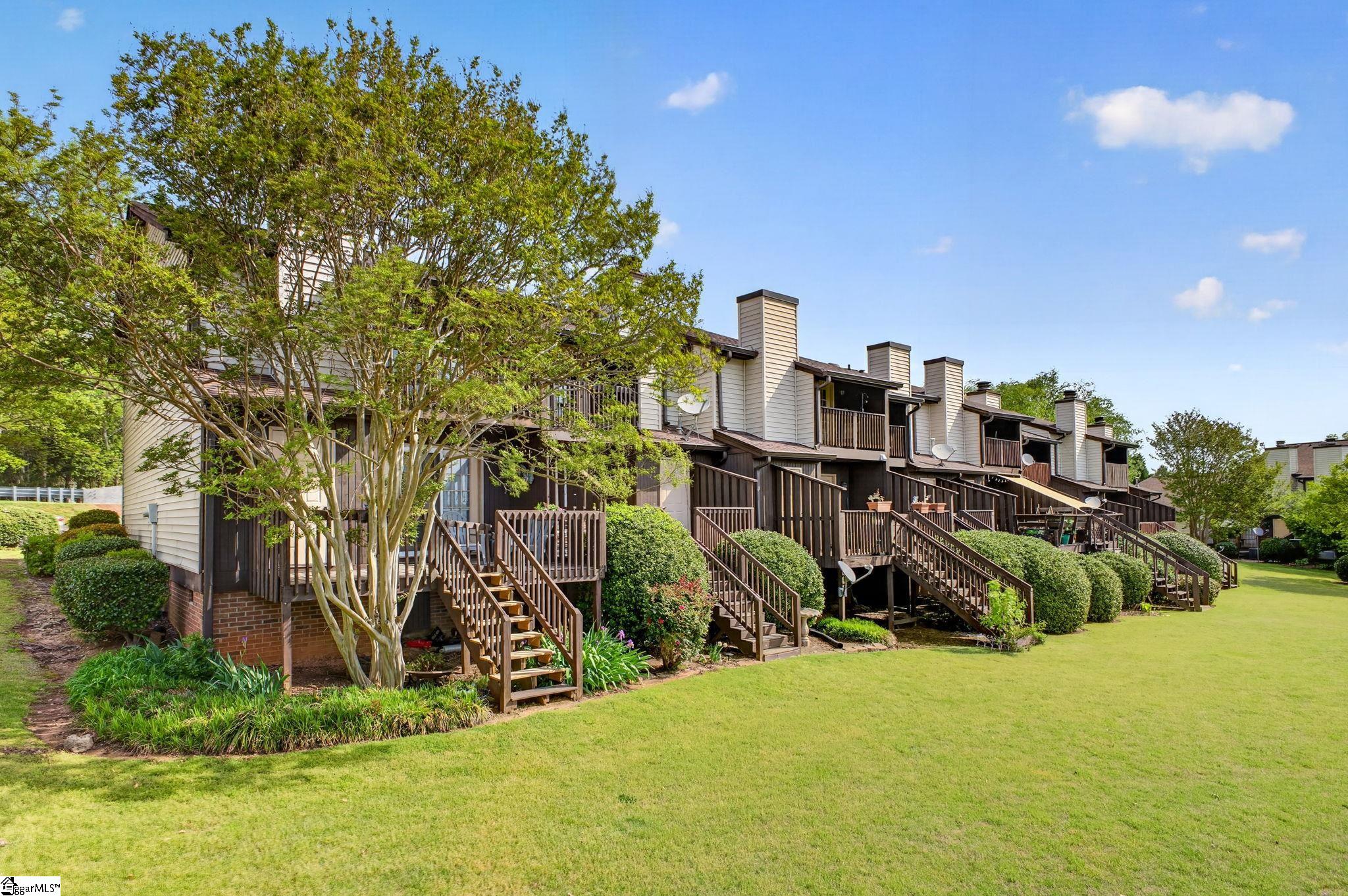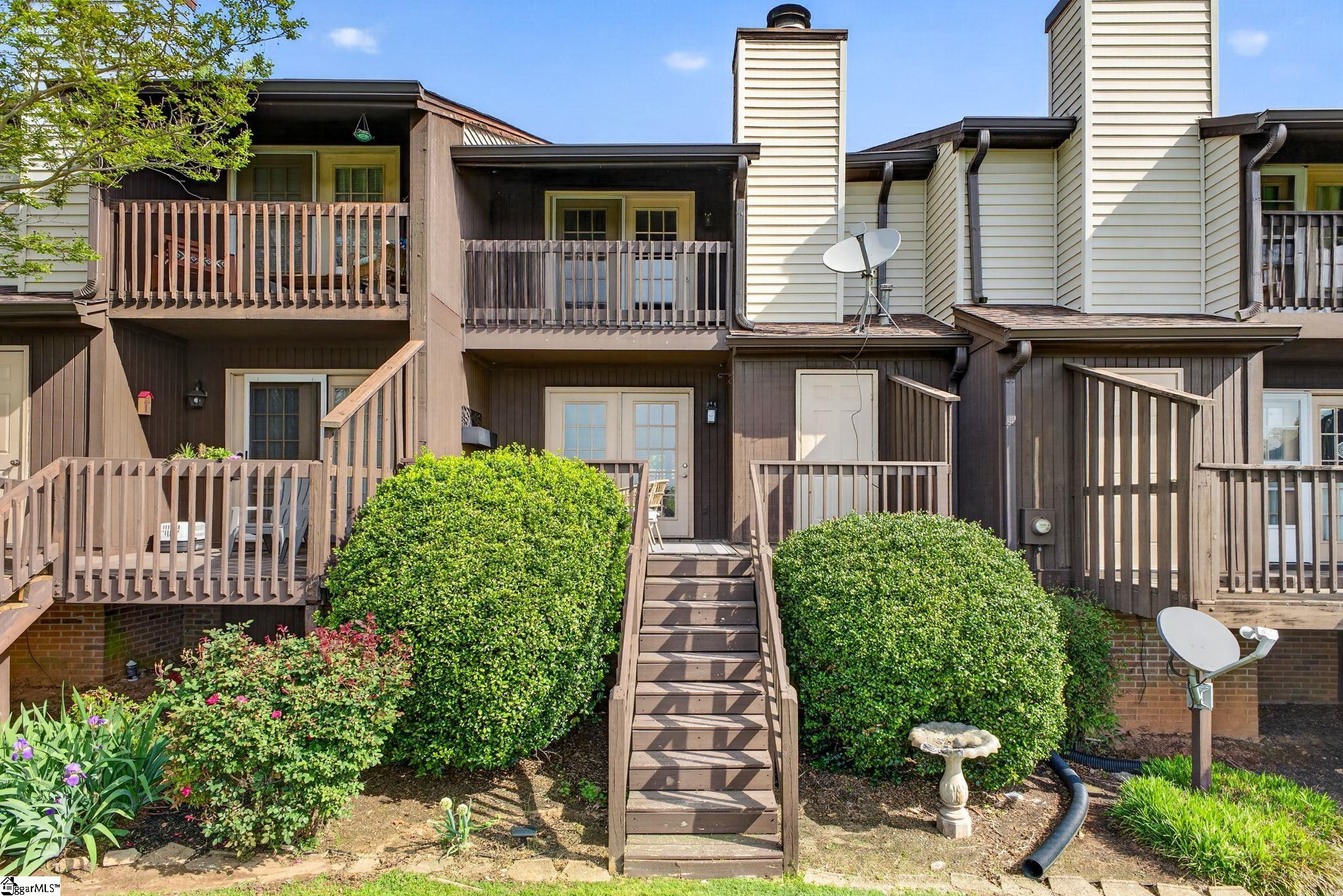 Chic Simpsonville condo at an incredible value! This freshly renovated home offers incredible sophistication and style you must see to believe. Fresh paint and flooring, updated kitchen and bathrooms and brand new HVAC system with ductwork for peace of mind. Thoughtfully selected designer lighting and fixtures elevate every corner of this home. Entering the foyer, the newly renovated kitchen is the focal point, appointed with new sleek countertops, new counter to ceiling backsplash and stainless steel appliances—perfectly blending the beauty and function. The kitchen, living and dining spaces flow nicely for stylish entertaining and extend onto the back deck. The deck is partially covered so you can enjoy the flexibility of use whether you are taking in some sunshine or reading a good book in the shade. You will want to spend quiet mornings with your coffee and a nightcap every evening here. The main level also features one full bathroom which is great for guests or convenient access after a day at the pool. Upstairs you will find two impressive fully updated bedroom/full bathroom suites, one of which has a private balcony, offering views of the community amenities- your own private retreat. The laundry is conveniently located in the hallway between the two bedrooms for easy access. Located in the desirable Holly Townes community, this home is positioned on the corner of Bethel and hwy 14 in Simpsonville and backs up to Holly Tree golf course. Fabulous location convenient to Bridgeway Station, Swamp Rabbit Trail, Five Forks and just 20 minutes to downtown Greenville. Even more exciting, Holly Tree country club is currently undergoing a major $5 Million Dollar improvement project scheduled for completion later this year. So now is the perfect time to invest in this area! Golf enthusiasts will appreciated the option for membership , with additional details available in the associated documents. Style, location and value-this one truly has it all.