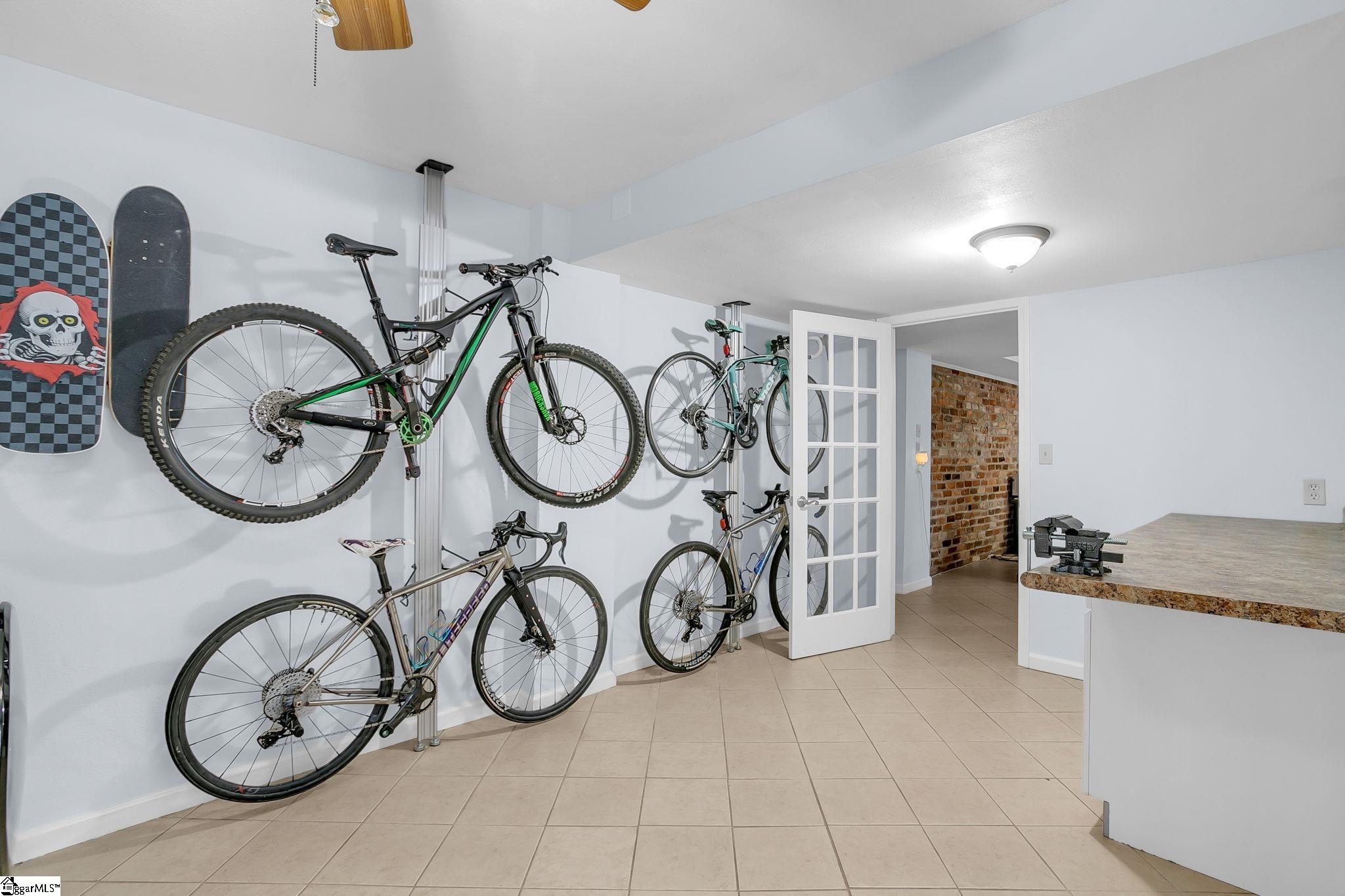 Welcome to 323 Chick Springs Rd – A Turnkey Ranch that is a 20-minute walk to Downtown Greenville on brand new sidewalks! Nestled on a private, tree-lined drive, this lovingly maintained 1950s ranch blends timeless charm with modern updates. With 3 bedrooms and 2.5 baths, including a primary on the main level, this home offers comfort, style, and versatility. Original hardwood floors flow throughout the main living areas, while the decorative brick fireplace in the living room creates the perfect gathering spot. The completely updated kitchen (2020) features high-end GE Cafe appliances, including an induction range and convection microwave with Bluetooth “Chef Connect”, granite countertops, and a large island with seating. All appliances are included, making this kitchen as functional as it is beautiful. The fully finished lower level boasts a private entrance, exposed brick, a second fireplace, a bedroom, large storage room/workshop, full bath, wet bar with room for an under-counter refrigerator, and an oversized laundry/pantry. This space could easily be converted into a kitchenette, offering flexibility for an in-law suite, home office, media room, gym, or playroom. Step outside to your tree-lined backyard oasis with an oversized patio and huge outdoor brick fireplace—perfect for entertaining—or take a stroll down to the peaceful creek. The home also features ample parking, PEX plumbing throughout, pre-wired ADT, a waterproofed basement, fresh paint, a hand-painted bathroom backsplash, new backyard irrigation, a new concrete pad, existing storage building, and a generator that connects directly to the house. Located just a short walk or bike ride from grocery stores, restaurants, coffee shops, and breweries, this turnkey home offers move-in ready comfort with endless possibilities. Don’t miss your chance—schedule your private showing today!