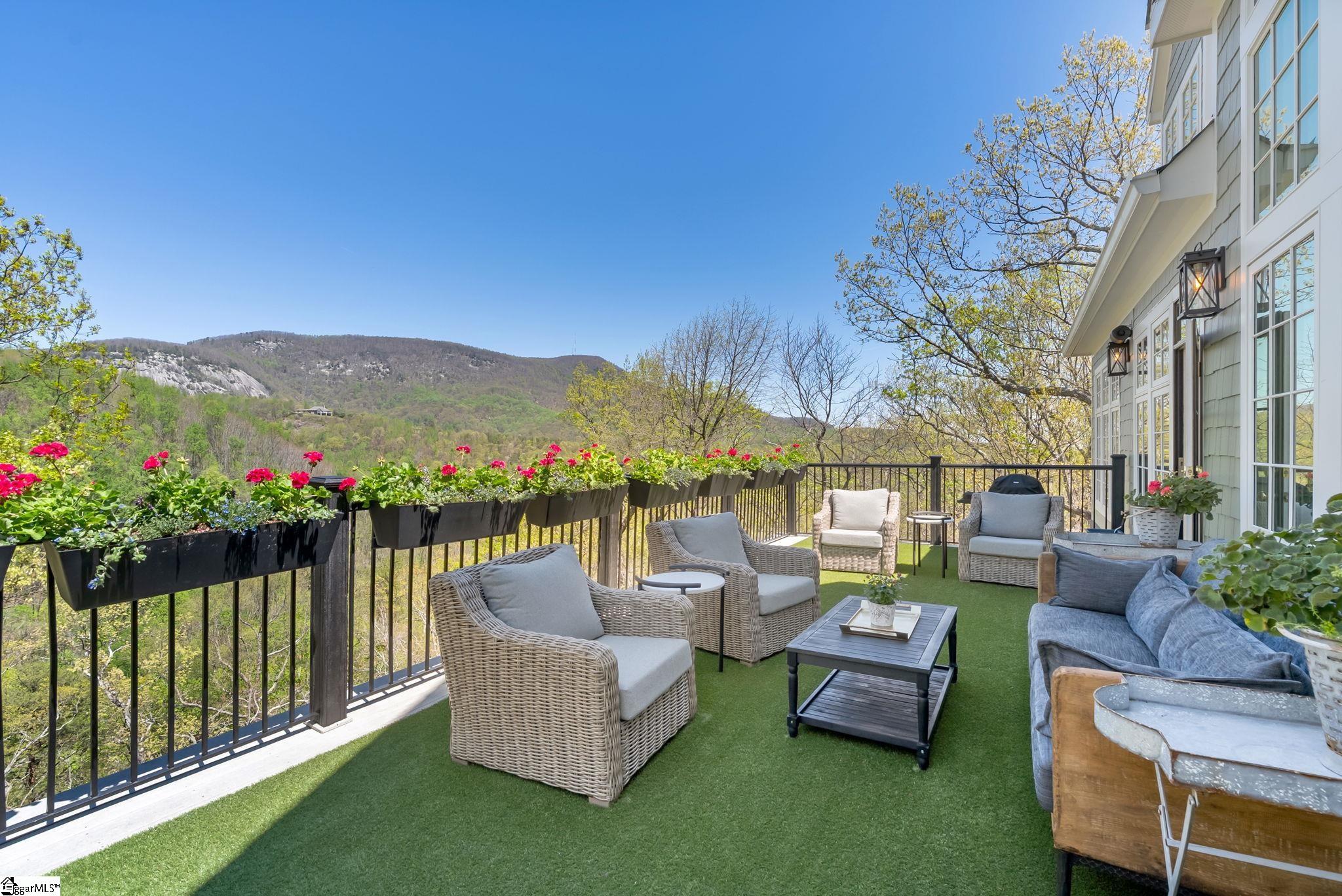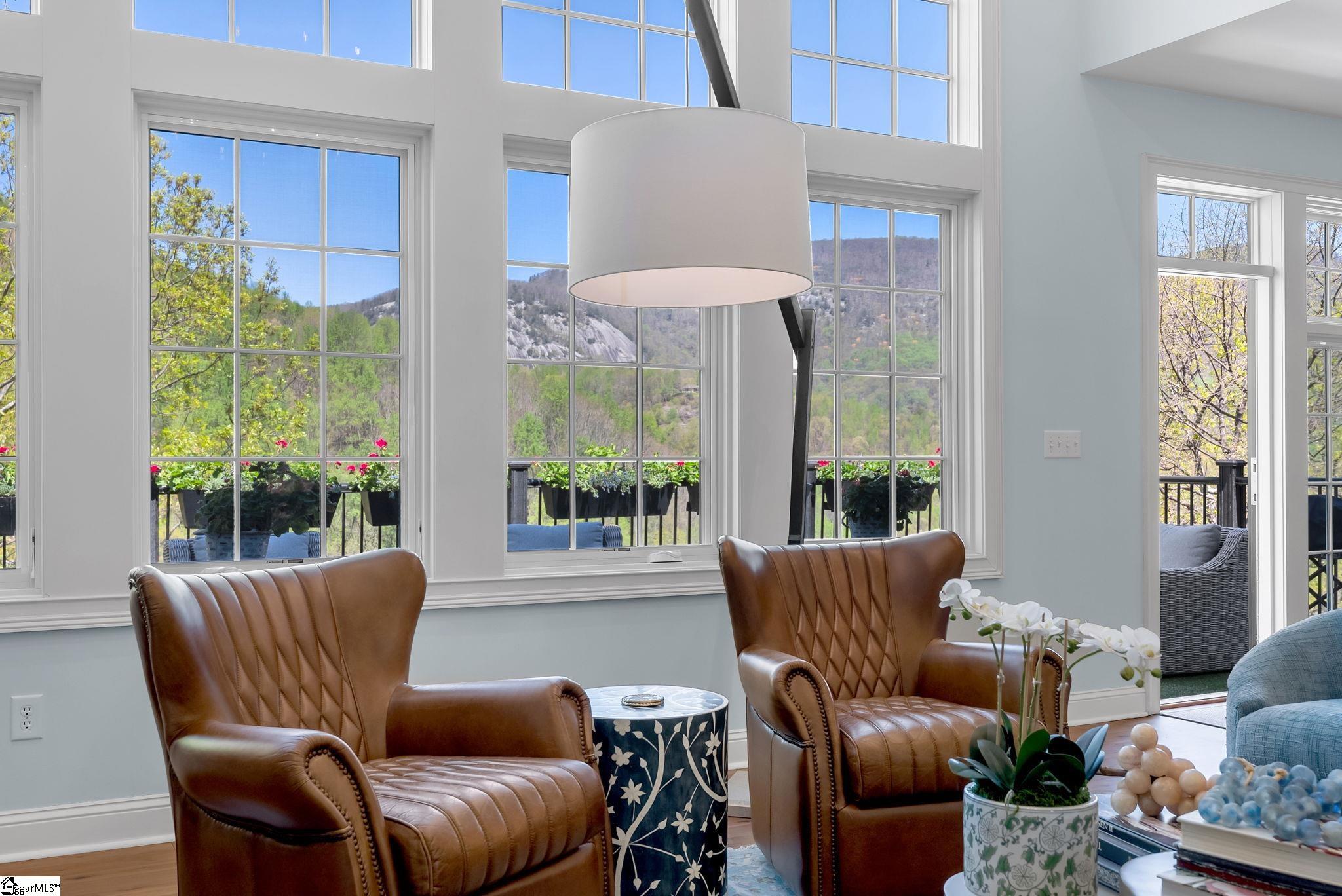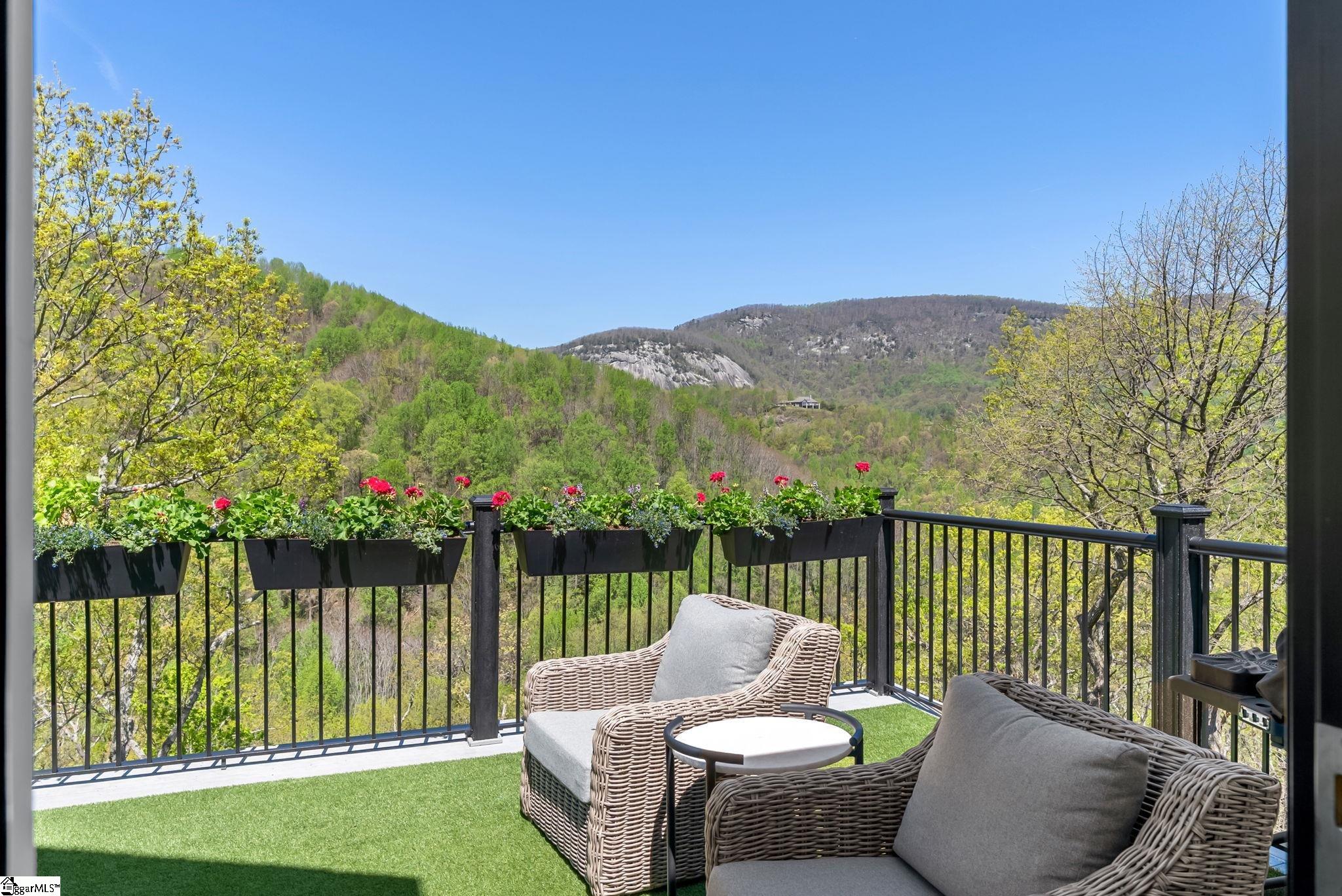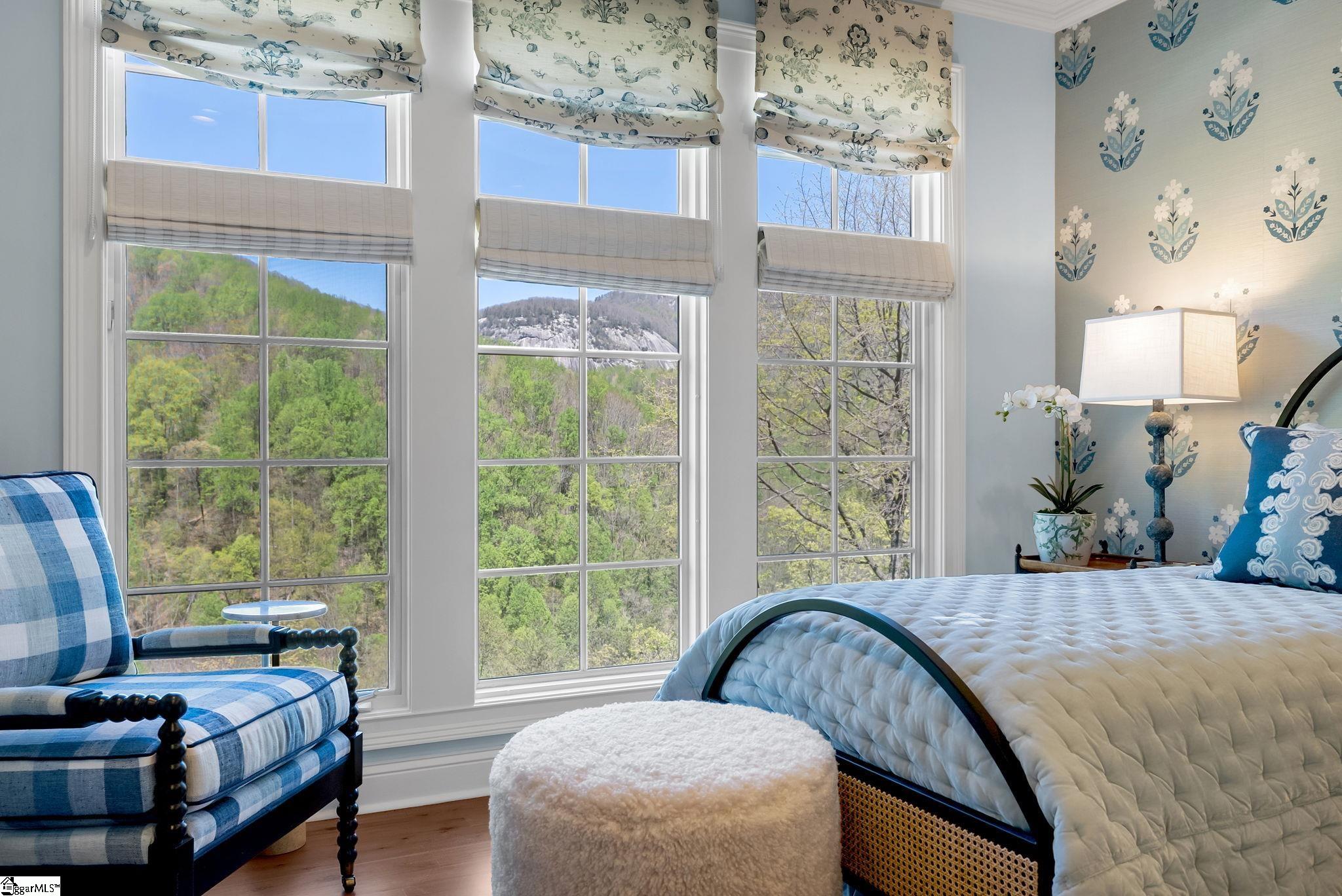Perched at approximately 1,700 feet elevation, this beautifully reimagined mountain residence welcomes you with a light-filled, open floor plan and expansive views of sculptural rock formations and a natural cascading waterfall—an exceptional backdrop rarely found. The views extend from northwest to northeast, with layered long-range vistas taking center stage the moment you step through the front door. The adjoining Chestnut Ridge Preserve enhances the sense of privacy, offering an unspoiled natural setting behind the home. At the heart of the residence, the newly installed chef’s kitchen by Mason Elliott Designs was thoughtfully created for entertaining & effortless everyday living. Custom cabinetry crafted in High Point, NC, features a durable baked-on finish for low-maintenance performance. Quartz countertops with the timeless look of soapstone & low-maintenance durability pair beautifully with LG Monogram Pro appliances, including an induction cooktop with downdraft, paneled refrigerator, 5-in-1 French door oven, wine fridge, beverage drawers, & a Lefton waterfall sink with a dedicated glass-washing station. Deep storage drawers, custom spice & cutlery inserts, a thoughtfully designed coffee & tea bar, & a striking crystal light fixture complete this exceptional kitchen. Every interior and exterior surface has been repainted in a soft, serene palette inspired by the surrounding landscape. High-end designer lighting from Visual Comfort, John Richard, Global Views, Michael Aram, and Curry & Co. has been installed throughout, complemented by new LED recessed lighting, updated ceiling fans, wall sconces and bathroom mirrors. Select spaces feature designer wallpaper, adding curated, art-like texture & depth. The 2.3-acre property was transformed by a landscape architect and Red Elm Landscaping, creating exceptional curb appeal. New flagstone & terraced hardscaping, retaining walls, & meandering stone steps connect the drive to Eagle Rock Road with both function & beauty. A newly added front-yard waterfall feature, bubbling stream, & seasonal winter views of a natural waterfall create year-round visual interest. The grounds are richly planted with 75 rhododendrons, more than 2000 spring and summer perennial bulbs, & flowering shrubs selected to provide continuous blooms from early spring through late fall. Inside, generously sized rooms are complemented by abundant storage & refined architectural details throughout. This thoughtfully designed home offers 3 bedrooms, 4 baths, a large office, loft space, & a spacious den, creating flexibility for everyday living & entertaining. The upgraded primary suite is a true retreat, featuring a trey ceiling, new soaking tub, private water closet, & stunning long-range mountain views. The large laundry & mudroom has been renovated with custom built-ins, & a striking composite walnut butcher block workspace. The oversized garage has been enhanced with arched doors, a pergola, utility sink, & an EV charger. Below, the once unfinished basement has been transformed into a recreation space featuring a golf simulator, white oak LVP, bar area & storage, adjacent to a workshop complete with a built-in workbench. Additional upgrades include a new HVAC unit, encapsulated crawl space with heavy-duty vapor barrier and radon mitigation, leaf guard gutters with drainage piping, upgraded smoke & CO2 detection systems, replaced thermostats, enhanced door hardware, renovated bathrooms, newly installed Berber carpet upstairs, & extensive removal of damaged trees to further open the landscape & enhance views. A designated outdoor area for pet use offers convenience & function within the natural surroundings. This is a rare opportunity to own a meticulously upgraded mountain retreat where luxury, craftsmanship, & natural beauty come together in exceptional harmony. A Club membership at The Cliffs is available with this property giving you access to all seven communities.