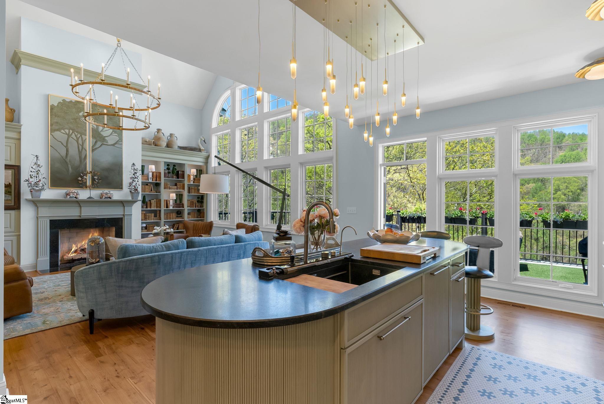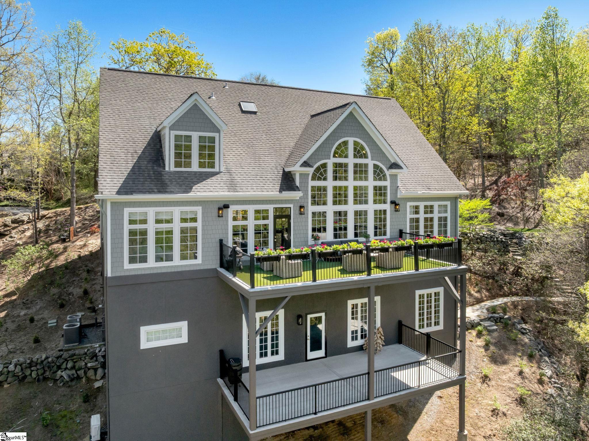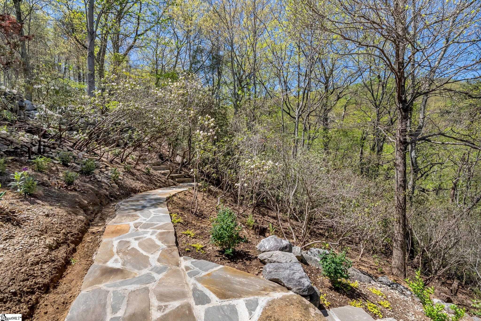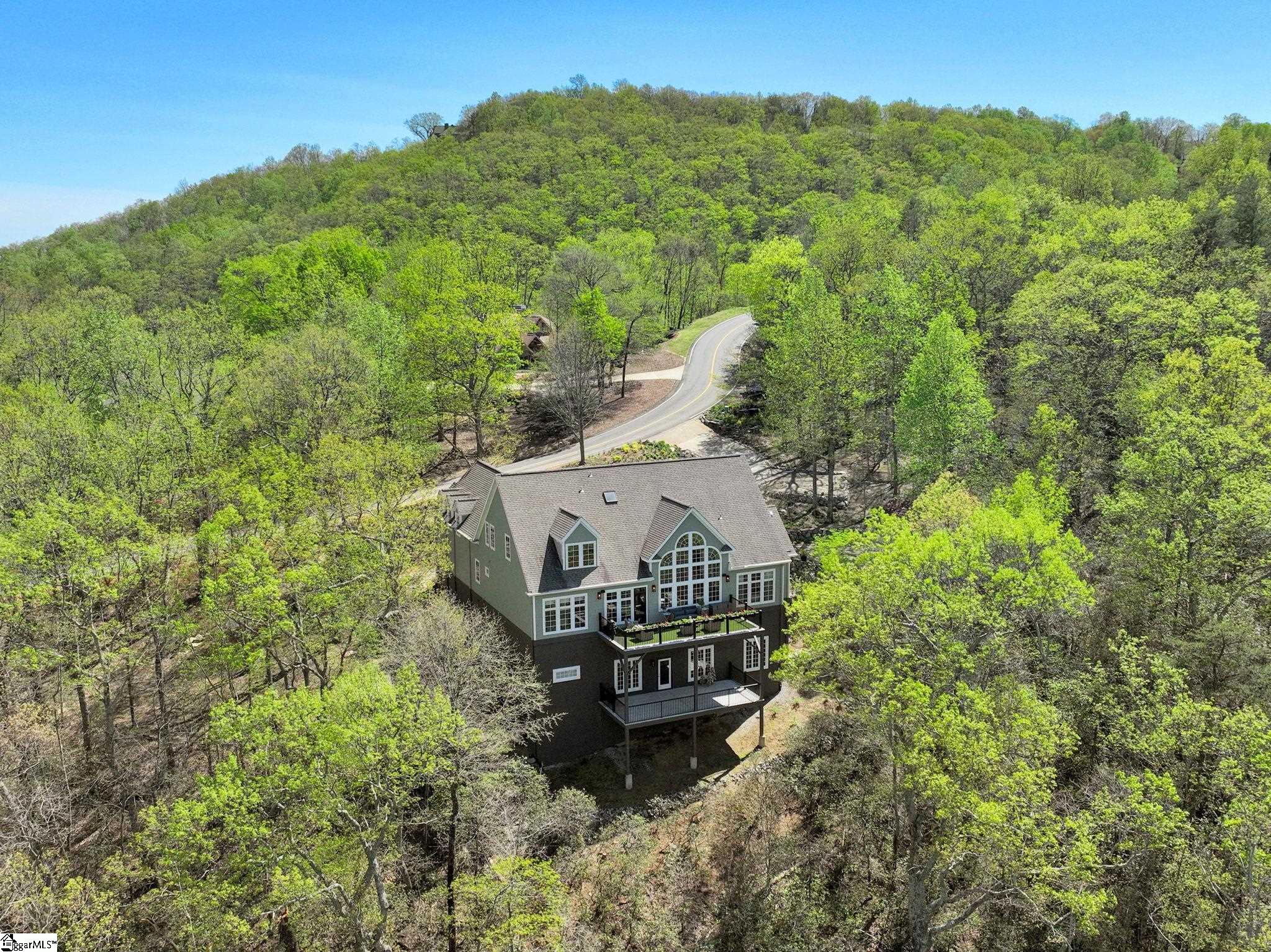 Perched at approximately 1,700 feet elevation, this beautifully reimagined mountain residence welcomes you with a light-filled, open floor plan and expansive views of sculptural rock formations and a natural cascading waterfall—an exceptional backdrop rarely found. The views extend from northwest to northeast, with layered long-range vistas taking center stage the moment you step through the front door. The adjoining Chestnut Ridge Preserve enhances the sense of privacy, offering an unspoiled natural setting behind the home. At the heart of the residence, the newly installed chef’s kitchen by Mason Elliott Designs was thoughtfully created for entertaining & effortless everyday living. Custom cabinetry crafted in High Point, NC, features a durable baked-on finish for low-maintenance performance. Quartz countertops with the timeless look of soapstone & low-maintenance durability pair beautifully with LG Monogram Pro appliances, including an induction cooktop with downdraft, paneled refrigerator, 5-in-1 French door oven, wine fridge, beverage drawers, & a Lefton waterfall sink with a dedicated glass-washing station. Deep storage drawers, custom spice & cutlery inserts, a thoughtfully designed coffee & tea bar, & a striking crystal light fixture complete this exceptional kitchen. Every interior and exterior surface has been repainted in a soft, serene palette inspired by the surrounding landscape. High-end designer lighting from Visual Comfort, John Richard, Global Views, Michael Aram, and Curry & Co. has been installed throughout, complemented by new LED recessed lighting, updated ceiling fans, wall sconces and bathroom mirrors. Select spaces feature designer wallpaper, adding curated, art-like texture & depth. The 2.3-acre property was transformed by a landscape architect and Red Elm Landscaping, creating exceptional curb appeal. New flagstone & terraced hardscaping, retaining walls, & meandering stone steps connect the drive to Eagle Rock Road with both function & beauty. A newly added front-yard waterfall feature, bubbling stream, & seasonal winter views of a natural waterfall create year-round visual interest. The grounds are richly planted with 75 rhododendrons, more than 2000 spring and summer perennial bulbs, & flowering shrubs selected to provide continuous blooms from early spring through late fall. Inside, generously sized rooms are complemented by abundant storage & refined architectural details throughout. This thoughtfully designed home offers 3 bedrooms, 4 baths, a large office, loft space, & a spacious den, creating flexibility for everyday living & entertaining. The upgraded primary suite is a true retreat, featuring a trey ceiling, new soaking tub, private water closet, & stunning long-range mountain views. The large laundry & mudroom has been renovated with custom built-ins, & a striking composite walnut butcher block workspace. The oversized garage has been enhanced with arched doors, a pergola, utility sink, & an EV charger. Below, the once unfinished basement has been transformed into a recreation space featuring a golf simulator, white oak LVP, bar area & storage, adjacent to a workshop complete with a built-in workbench. Additional upgrades include a new HVAC unit, encapsulated crawl space with heavy-duty vapor barrier and radon mitigation, leaf guard gutters with drainage piping, upgraded smoke & CO2 detection systems, replaced thermostats, enhanced door hardware, renovated bathrooms, newly installed Berber carpet upstairs, & extensive removal of damaged trees to further open the landscape & enhance views. A designated outdoor area for pet use offers convenience & function within the natural surroundings. This is a rare opportunity to own a meticulously upgraded mountain retreat where luxury, craftsmanship, & natural beauty come together in exceptional harmony. A Club membership at The Cliffs is available with this property giving you access to all seven communities.
