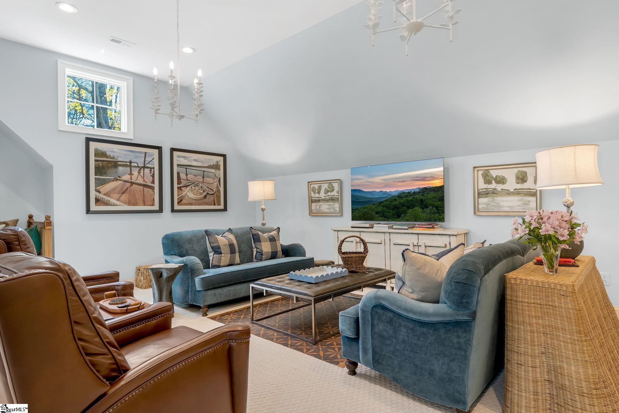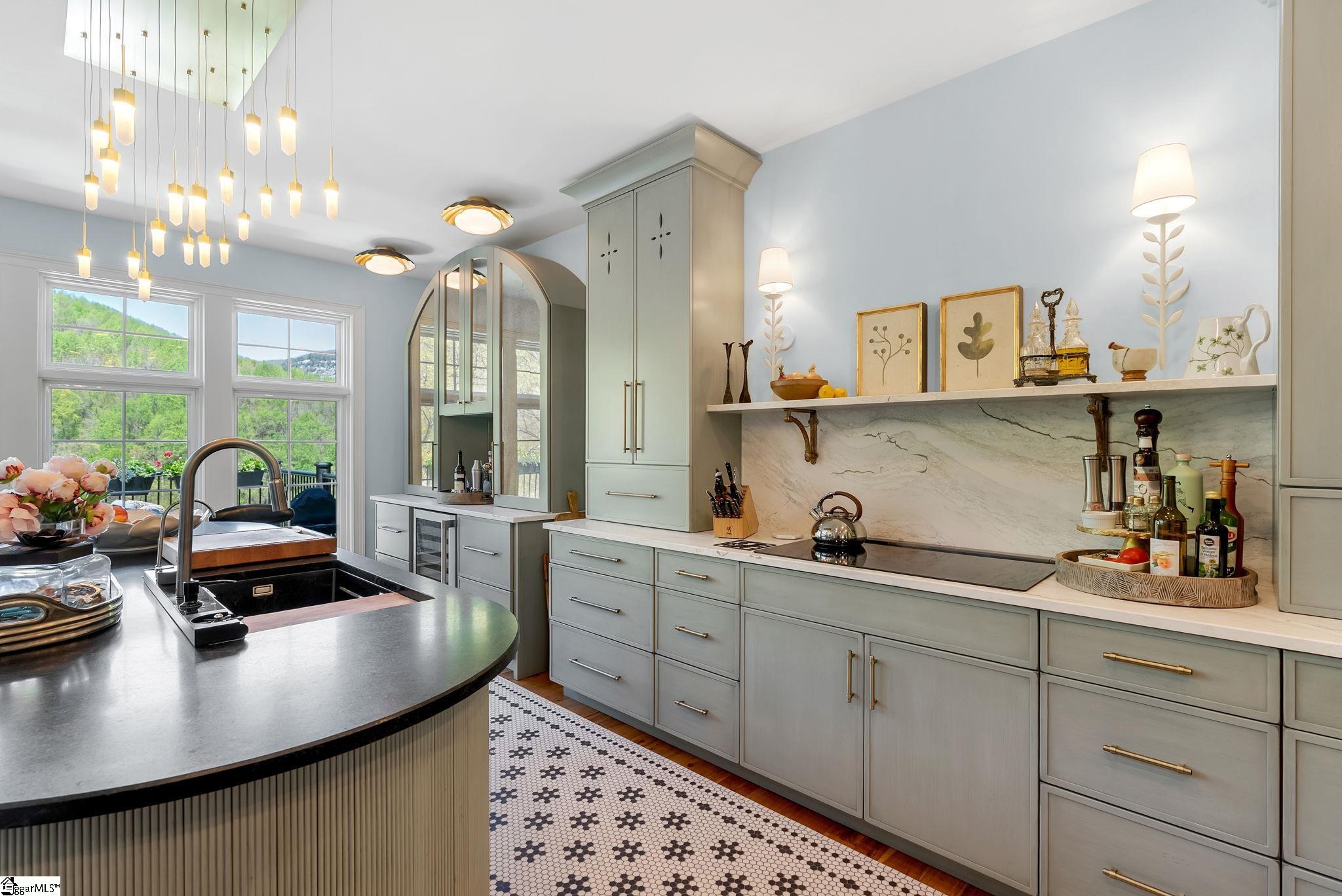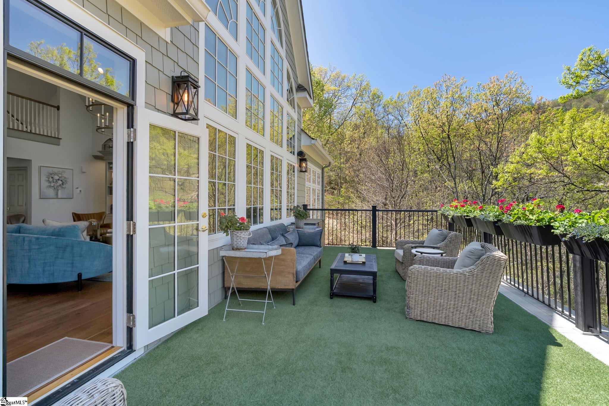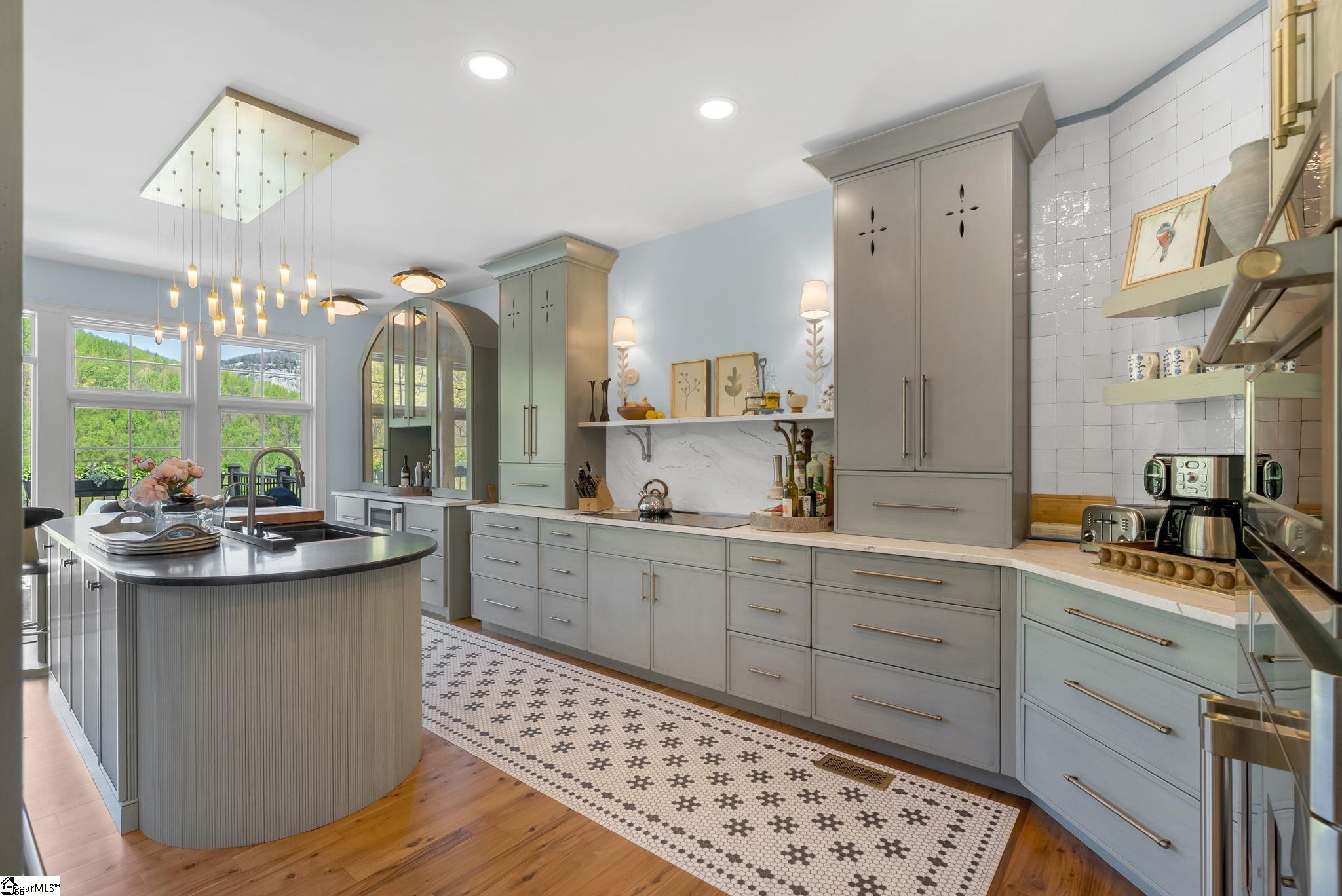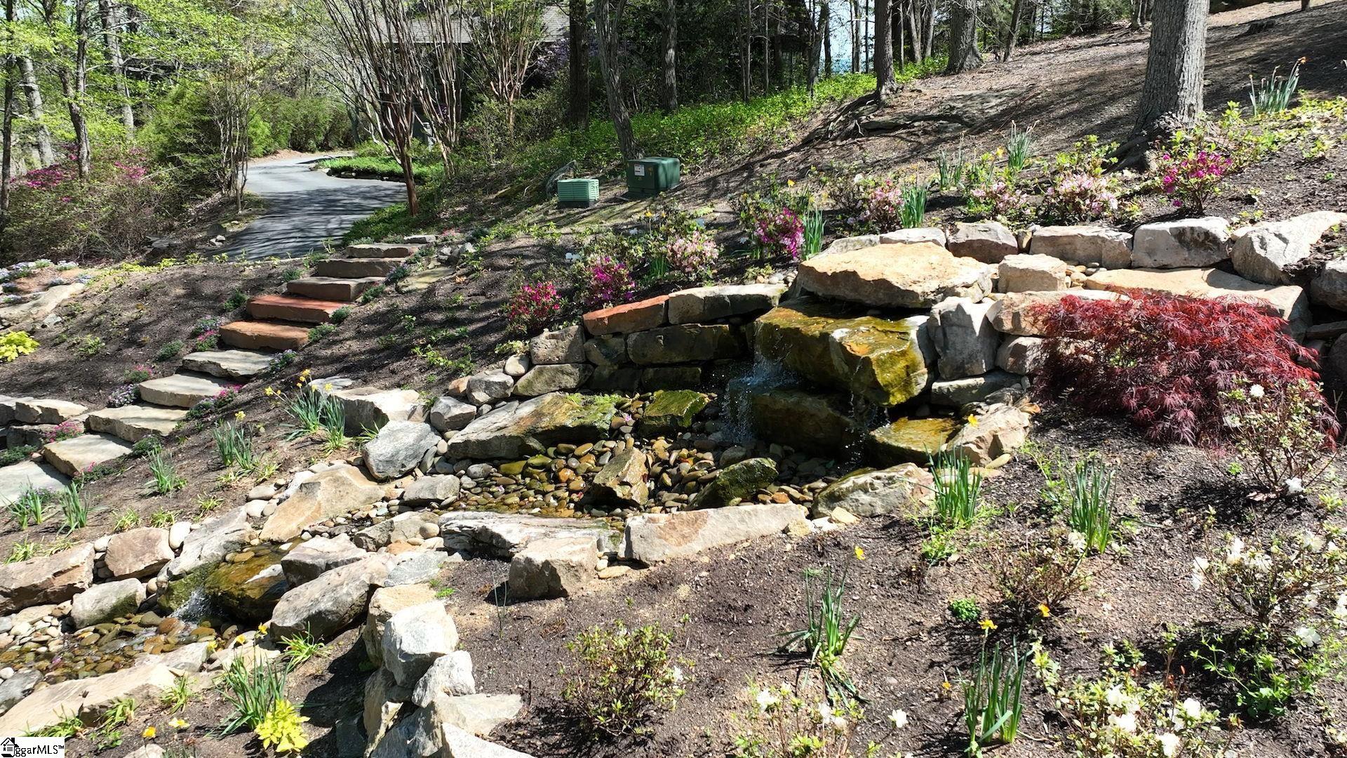 Perched at approximately 1,700 feet elevation, this beautifully reimagined mountain residence welcomes you with a light-filled, open floor plan and expansive views of sculptural rock formations and a natural cascading waterfall—an exceptional backdrop rarely found. The views extend from northwest to northeast, with layered long-range vistas taking center stage the moment you step through the front door. The adjoining Chestnut Ridge Preserve enhances the sense of privacy, offering an unspoiled natural setting behind the home. At the heart of the residence, the newly installed chef’s kitchen by Mason Elliott Designs was thoughtfully created for entertaining & effortless everyday living. Custom cabinetry crafted in High Point, NC, features a durable baked-on finish for low-maintenance performance. Quartz countertops with the timeless look of soapstone & low-maintenance durability pair beautifully with LG Monogram Pro appliances, including an induction cooktop with downdraft, paneled refrigerator, 5-in-1 French door oven, wine fridge, beverage drawers, & a Lefton waterfall sink with a dedicated glass-washing station. Deep storage drawers, custom spice & cutlery inserts, a thoughtfully designed coffee & tea bar, & a striking crystal light fixture complete this exceptional kitchen. Every interior and exterior surface has been repainted in a soft, serene palette inspired by the surrounding landscape. High-end designer lighting from Visual Comfort, John Richard, Global Views, Michael Aram, and Curry & Co. has been installed throughout, complemented by new LED recessed lighting, updated ceiling fans, wall sconces and bathroom mirrors. Select spaces feature designer wallpaper, adding curated, art-like texture & depth. The 2.3-acre property was transformed by a landscape architect and Red Elm Landscaping, creating exceptional curb appeal. New flagstone & terraced hardscaping, retaining walls, & meandering stone steps connect the drive to Eagle Rock Road with both function & beauty. A newly added front-yard waterfall feature, bubbling stream, & seasonal winter views of a natural waterfall create year-round visual interest. The grounds are richly planted with 75 rhododendrons, more than 2000 spring and summer perennial bulbs, & flowering shrubs selected to provide continuous blooms from early spring through late fall. Inside, generously sized rooms are complemented by abundant storage & refined architectural details throughout. This thoughtfully designed home offers 3 bedrooms, 4 baths, a large office, loft space, & a spacious den, creating flexibility for everyday living & entertaining. The upgraded primary suite is a true retreat, featuring a trey ceiling, new soaking tub, private water closet, & stunning long-range mountain views. The large laundry & mudroom has been renovated with custom built-ins, & a striking composite walnut butcher block workspace. The oversized garage has been enhanced with arched doors, a pergola, utility sink, & an EV charger. Below, the once unfinished basement has been transformed into a recreation space featuring a golf simulator, white oak LVP, bar area & storage, adjacent to a workshop complete with a built-in workbench. Additional upgrades include a new HVAC unit, encapsulated crawl space with heavy-duty vapor barrier and radon mitigation, leaf guard gutters with drainage piping, upgraded smoke & CO2 detection systems, replaced thermostats, enhanced door hardware, renovated bathrooms, newly installed Berber carpet upstairs, & extensive removal of damaged trees to further open the landscape & enhance views. A designated outdoor area for pet use offers convenience & function within the natural surroundings. This is a rare opportunity to own a meticulously upgraded mountain retreat where luxury, craftsmanship, & natural beauty come together in exceptional harmony. A Club membership at The Cliffs is available with this property giving you access to all seven communities.