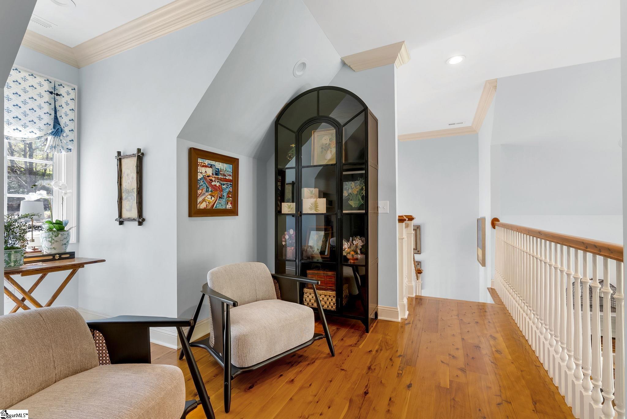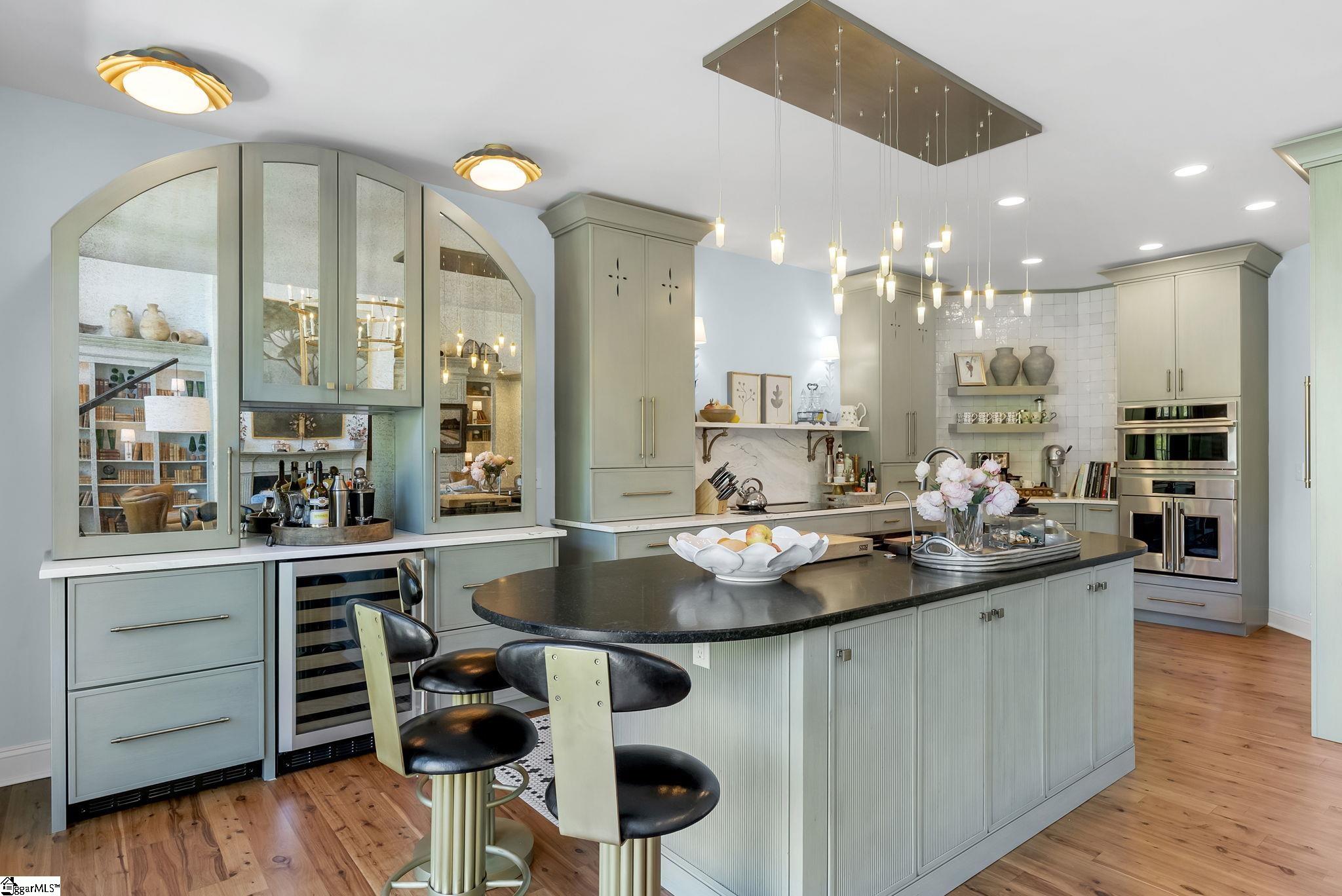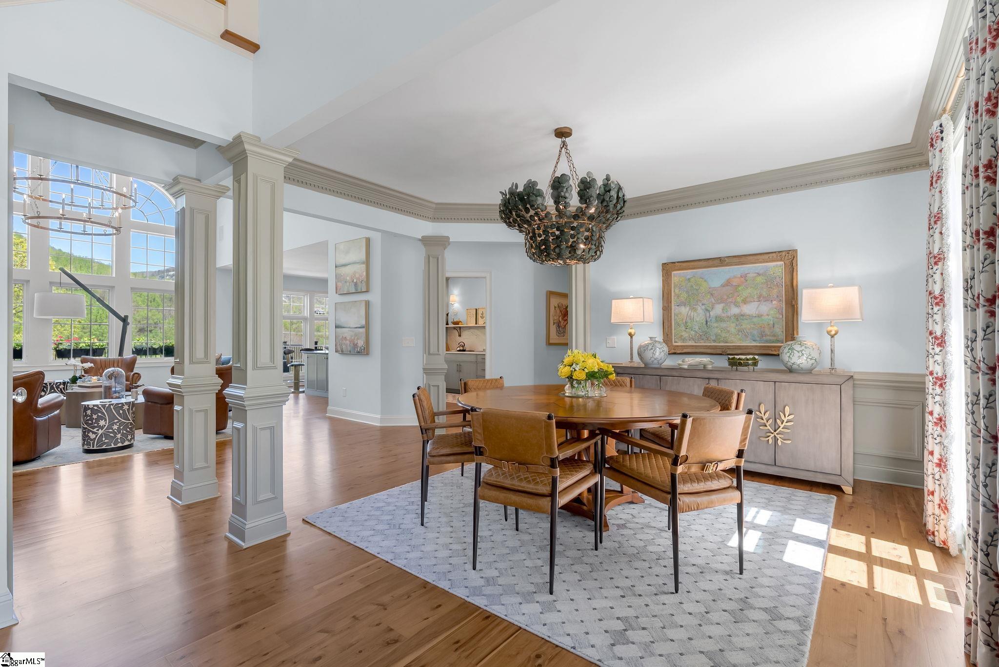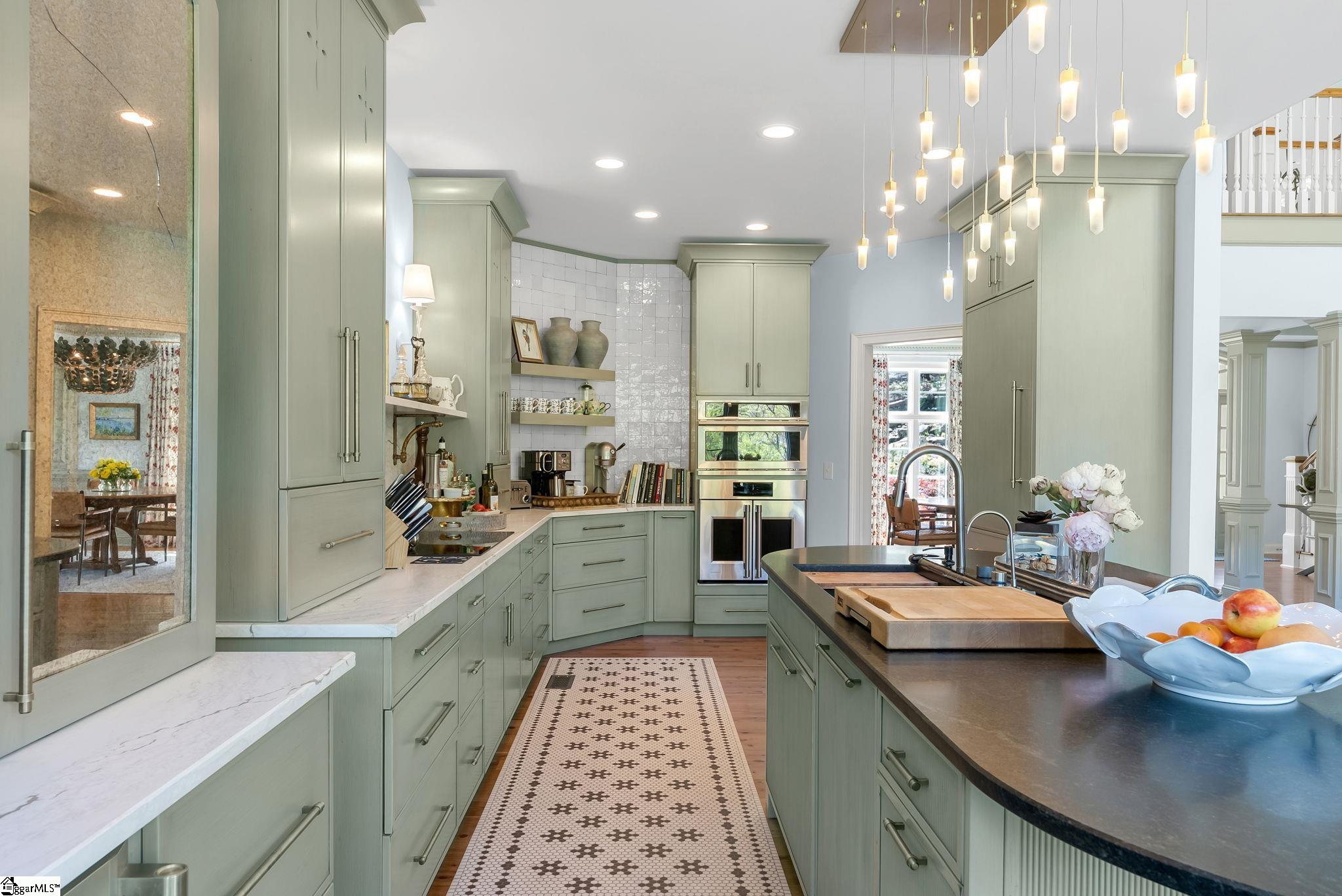 Perched at approximately 1,700 feet elevation, this beautifully reimagined mountain residence welcomes you with a light-filled, open floor plan and expansive views of sculptural rock formations and a natural cascading waterfall—an exceptional backdrop rarely found. The views extend from northwest to northeast, with layered long-range vistas taking center stage the moment you step through the front door. The adjoining Chestnut Ridge Preserve enhances the sense of privacy, offering an unspoiled natural setting behind the home. At the heart of the residence, the newly installed chef’s kitchen by Mason Elliott Designs was thoughtfully created for entertaining & effortless everyday living. Custom cabinetry crafted in High Point, NC, features a durable baked-on finish for low-maintenance performance. Quartz countertops with the timeless look of soapstone & low-maintenance durability pair beautifully with LG Monogram Pro appliances, including an induction cooktop with downdraft, paneled refrigerator, 5-in-1 French door oven, wine fridge, beverage drawers, & a Lefton waterfall sink with a dedicated glass-washing station. Deep storage drawers, custom spice & cutlery inserts, a thoughtfully designed coffee & tea bar, & a striking crystal light fixture complete this exceptional kitchen. Every interior and exterior surface has been repainted in a soft, serene palette inspired by the surrounding landscape. High-end designer lighting from Visual Comfort, John Richard, Global Views, Michael Aram, and Curry & Co. has been installed throughout, complemented by new LED recessed lighting, updated ceiling fans, wall sconces and bathroom mirrors. Select spaces feature designer wallpaper, adding curated, art-like texture & depth. The 2.3-acre property was transformed by a landscape architect and Red Elm Landscaping, creating exceptional curb appeal. New flagstone & terraced hardscaping, retaining walls, & meandering stone steps connect the drive to Eagle Rock Road with both function & beauty. A newly added front-yard waterfall feature, bubbling stream, & seasonal winter views of a natural waterfall create year-round visual interest. The grounds are richly planted with 75 rhododendrons, more than 2000 spring and summer perennial bulbs, & flowering shrubs selected to provide continuous blooms from early spring through late fall. Inside, generously sized rooms are complemented by abundant storage & refined architectural details throughout. This thoughtfully designed home offers 3 bedrooms, 4 baths, a large office, loft space, & a spacious den, creating flexibility for everyday living & entertaining. The upgraded primary suite is a true retreat, featuring a trey ceiling, new soaking tub, private water closet, & stunning long-range mountain views. The large laundry & mudroom has been renovated with custom built-ins, & a striking composite walnut butcher block workspace. The oversized garage has been enhanced with arched doors, a pergola, utility sink, & an EV charger. Below, the once unfinished basement has been transformed into a recreation space featuring a golf simulator, white oak LVP, bar area & storage, adjacent to a workshop complete with a built-in workbench. Additional upgrades include a new HVAC unit, encapsulated crawl space with heavy-duty vapor barrier and radon mitigation, leaf guard gutters with drainage piping, upgraded smoke & CO2 detection systems, replaced thermostats, enhanced door hardware, renovated bathrooms, newly installed Berber carpet upstairs, & extensive removal of damaged trees to further open the landscape & enhance views. A designated outdoor area for pet use offers convenience & function within the natural surroundings. This is a rare opportunity to own a meticulously upgraded mountain retreat where luxury, craftsmanship, & natural beauty come together in exceptional harmony. A Club membership at The Cliffs is available with this property giving you access to all seven communities.
