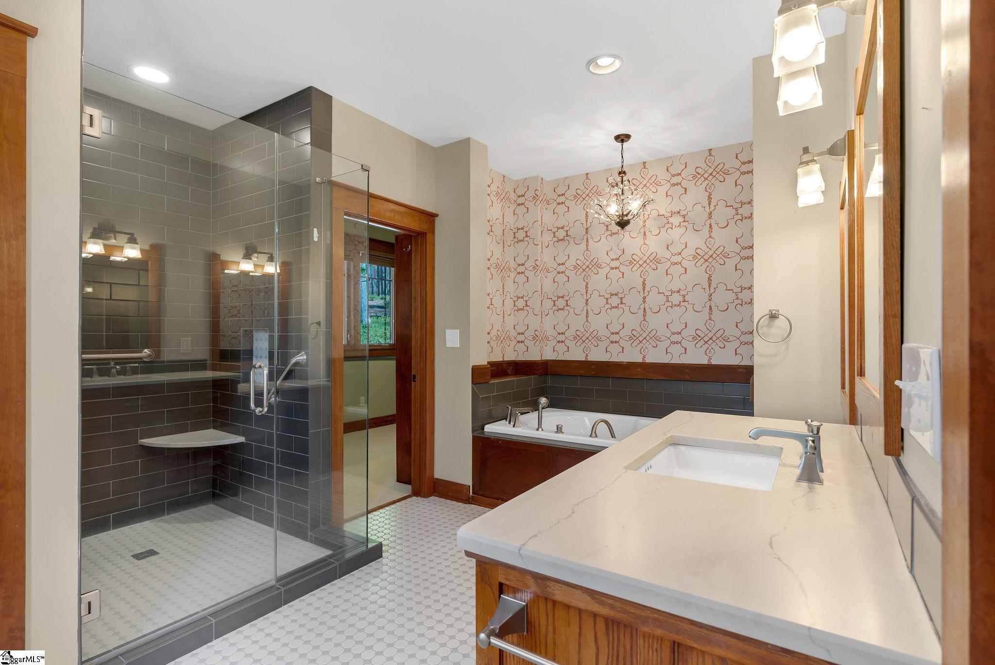 Welcome to a distinctive mountain retreat at 33 Witch Hazel Trail in The Cliffs at Glassy, where timeless character, exceptional functionality, and elevated living come together at approximately 2,800 feet. Privately positioned on a quiet drive just moments from the clubhouse, this thoughtfully designed residence captures seasonal southeast-facing views, abundant natural light, and a remarkable sense of warmth throughout. Rich in architectural detail and full of personality, the home offers a rare blend of refined craftsmanship and inviting everyday livability. A flagstone front porch creates a memorable arrival, setting the tone for the home’s charm. Inside, transom windows, curated glass art details, and thoughtfully layered finishes lend visual interest and reflect the region’s Arts and Crafts-era architecture. Spacious interiors and generous storage solutions make the home as practical as it is beautiful. The main living spaces are designed for effortless gathering, with seamless flow into a temperature-controlled sunroom featuring screened windows and a slate fireplace, creating the perfect indoor-outdoor moment in every season. The kitchen is both beautifully appointed and highly functional, anchored by a large center island with built-in storage and an area for bar stools, ideal for casual dining and entertaining alike. High-end stainless steel appliances include a four-burner Wolf cooktop with integrated grill top, pot filler, and separate hot water faucet, while extensive cabinetry, quartz countertops and thoughtful prep space support effortless hosting. The main-level primary suite serves as a private retreat, complete with a generous walk-in closet, a well-appointed bath, and a private water closet for added comfort. Throughout the home, oversized walk-in closets provide exceptional storage rarely found in mountain properties. The upper level adds both charm and versatility, featuring a thoughtfully designed gallery-style loft space that creates an ideal secondary lounge, reading nook, or overflow gathering area. Built-in window seat beds in both bedrooms further enhance the functionality, making these spaces especially well suited for hosting family and guests with ease and comfort. The walk-out lower level expands the home’s versatility with expansive living and lounge spaces anchored by a thoughtfully placed wet bar, creating an inviting setting for entertaining, extended stays, or everyday relaxation. Generously sized guest bedrooms provide comfortable accommodations, including one enhanced by built-in shelving that lends itself beautifully to a private office, craft room, or library. A built-in desk within the main lower living area adds yet another flexible workspace, while abundant storage, including an oversized walk-in linen closet, continues the home’s thoughtful balance of comfort and functionality. Elevator access from the main floor to the walk-out lower level enhances long-term ease and accessibility. Utility spaces are equally elevated. The mudroom and laundry area offers abundant counter space, built-ins, extensive storage, and a beautiful copper sink, functioning as an ideal drop zone from the garage or second entryway. Additional conveniences include a whole-home generator, built-in pet door, and exceptional built-in storage throughout. Outdoor living is a standout feature, with large decks on both the main and lower levels, a private patio just off the mudroom and sunroom, beautifully designed garden bed areas, and expansive gathering spaces that invite year-round enjoyment. Rich with character, architectural warmth, and thoughtfully integrated functionality, this one-of-a-kind Glassy residence offers an exceptional opportunity to enjoy elevated mountain living just moments from club amenities. A Club membership at The Cliffs is available for purchase, providing access to all seven communities.