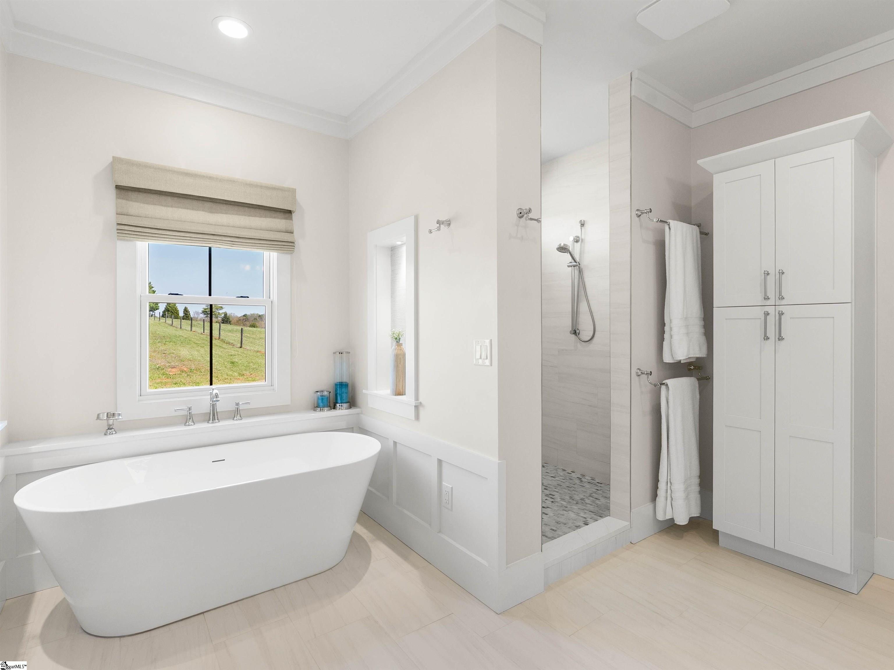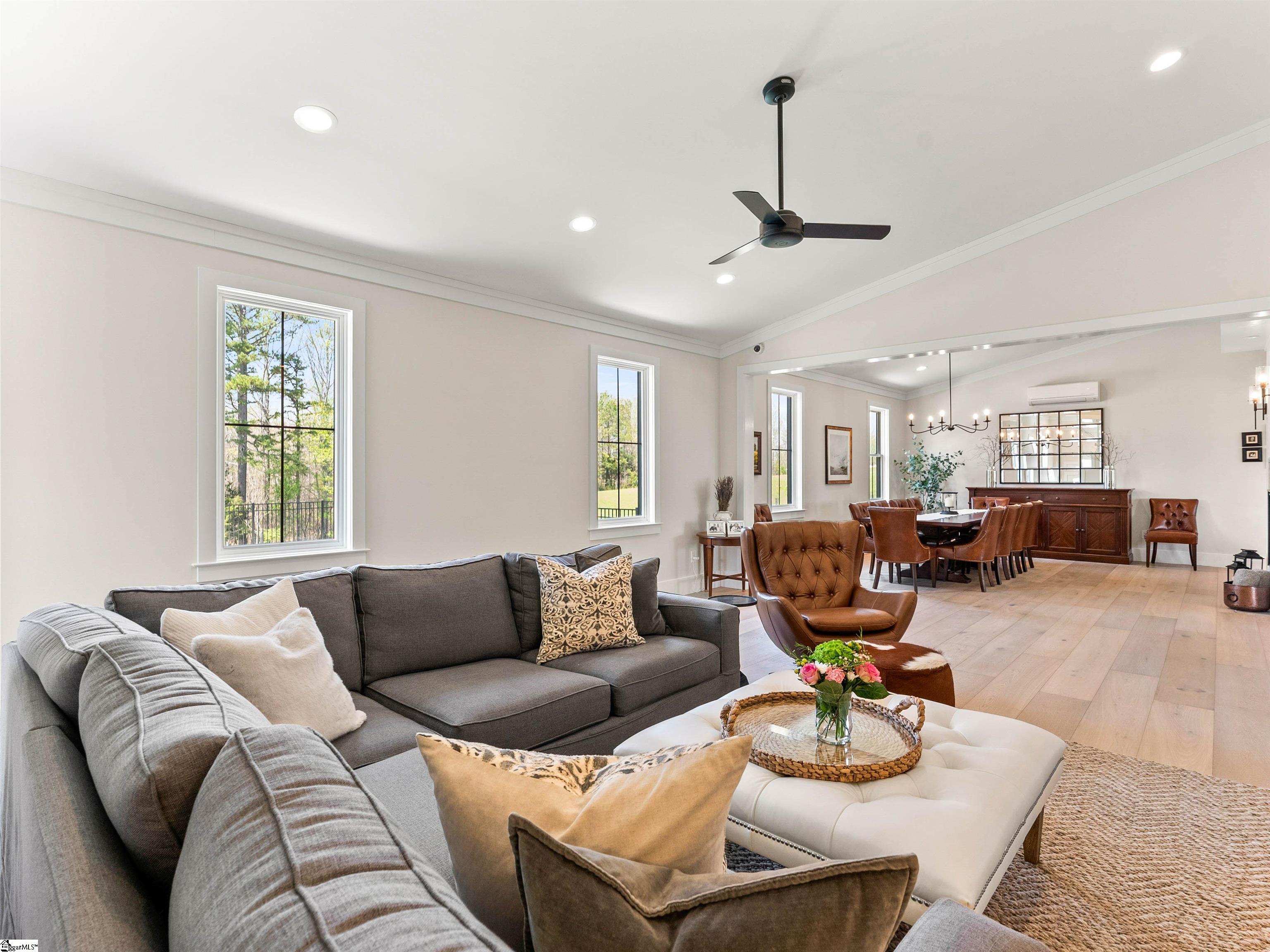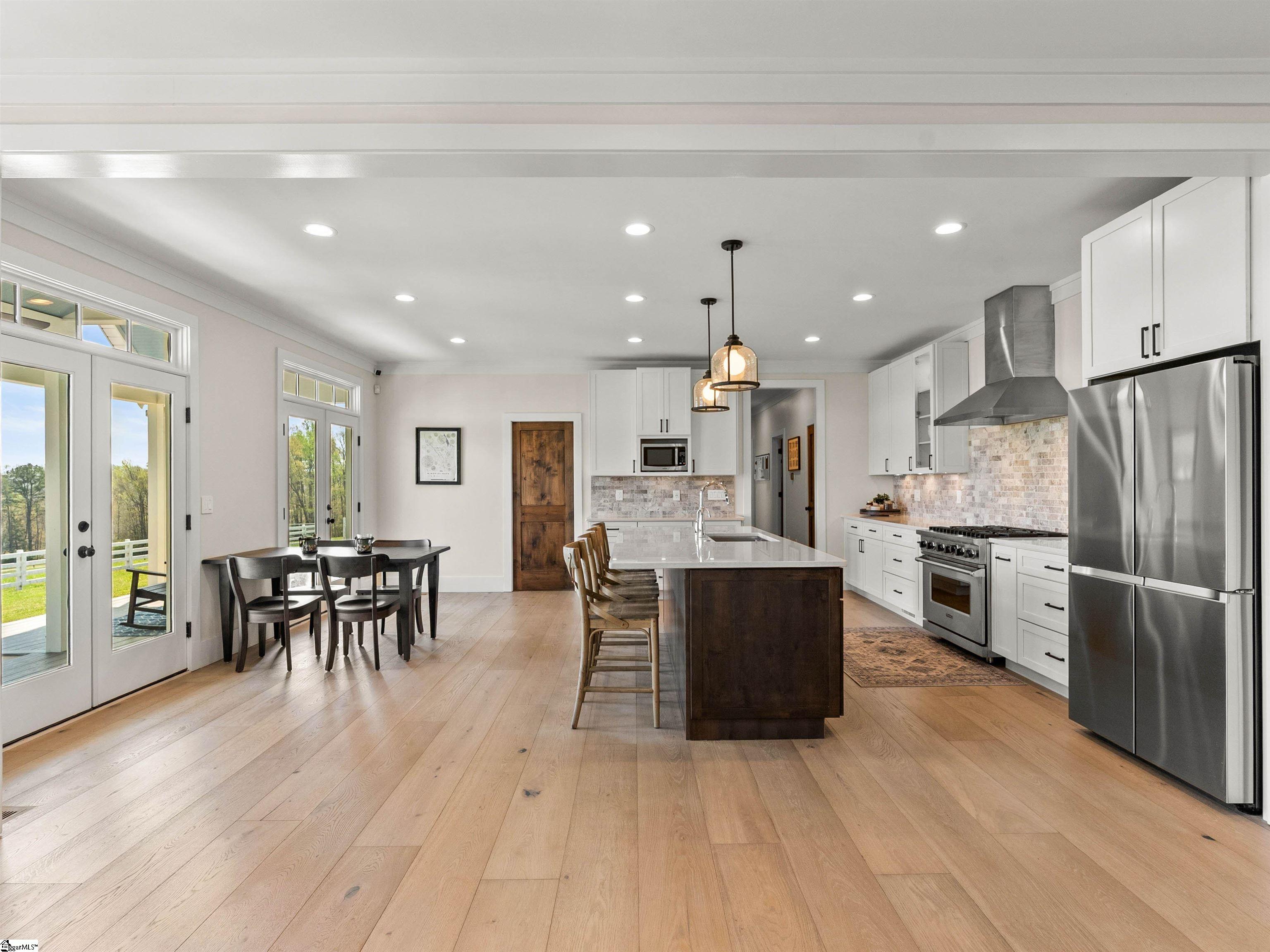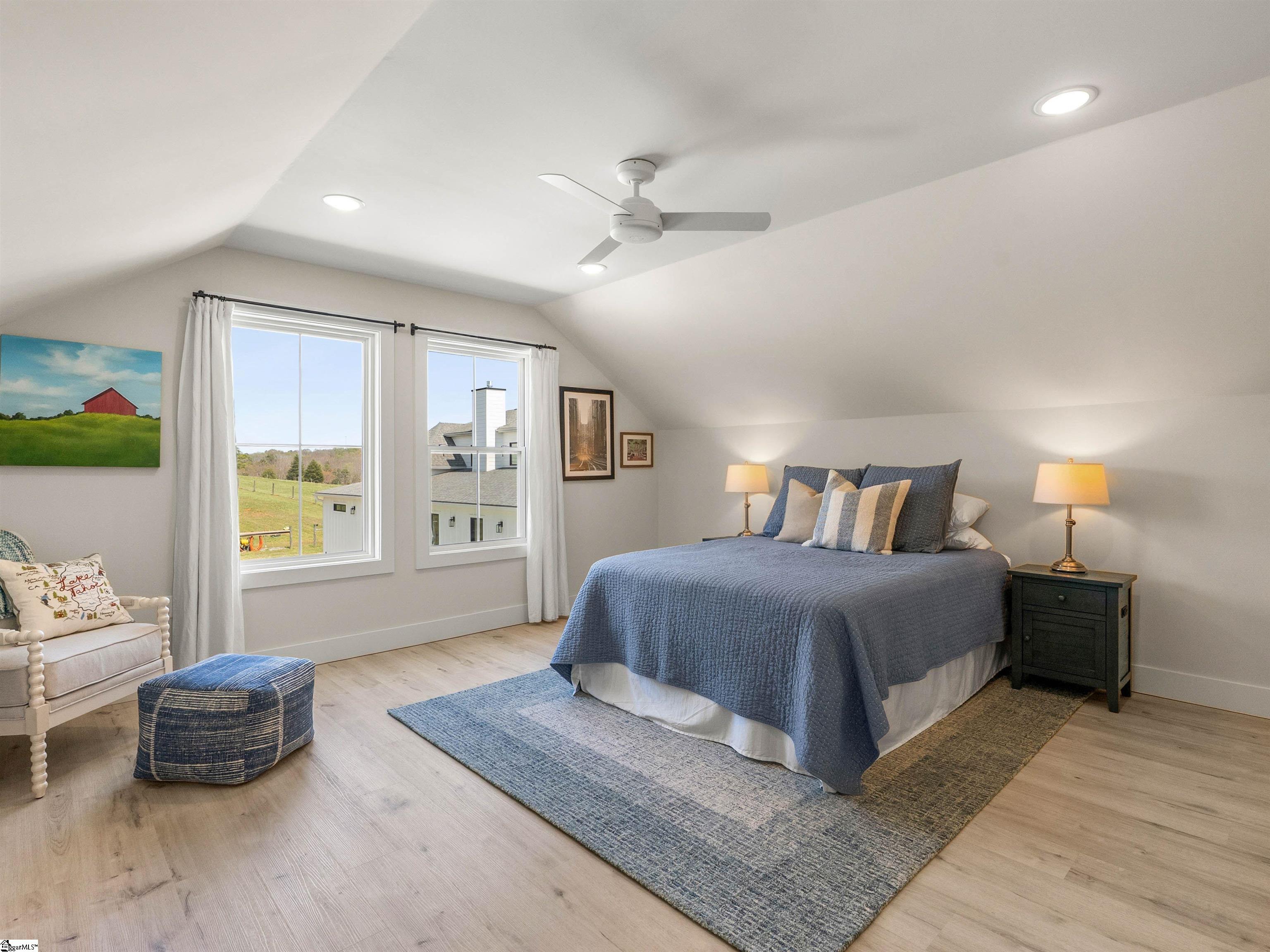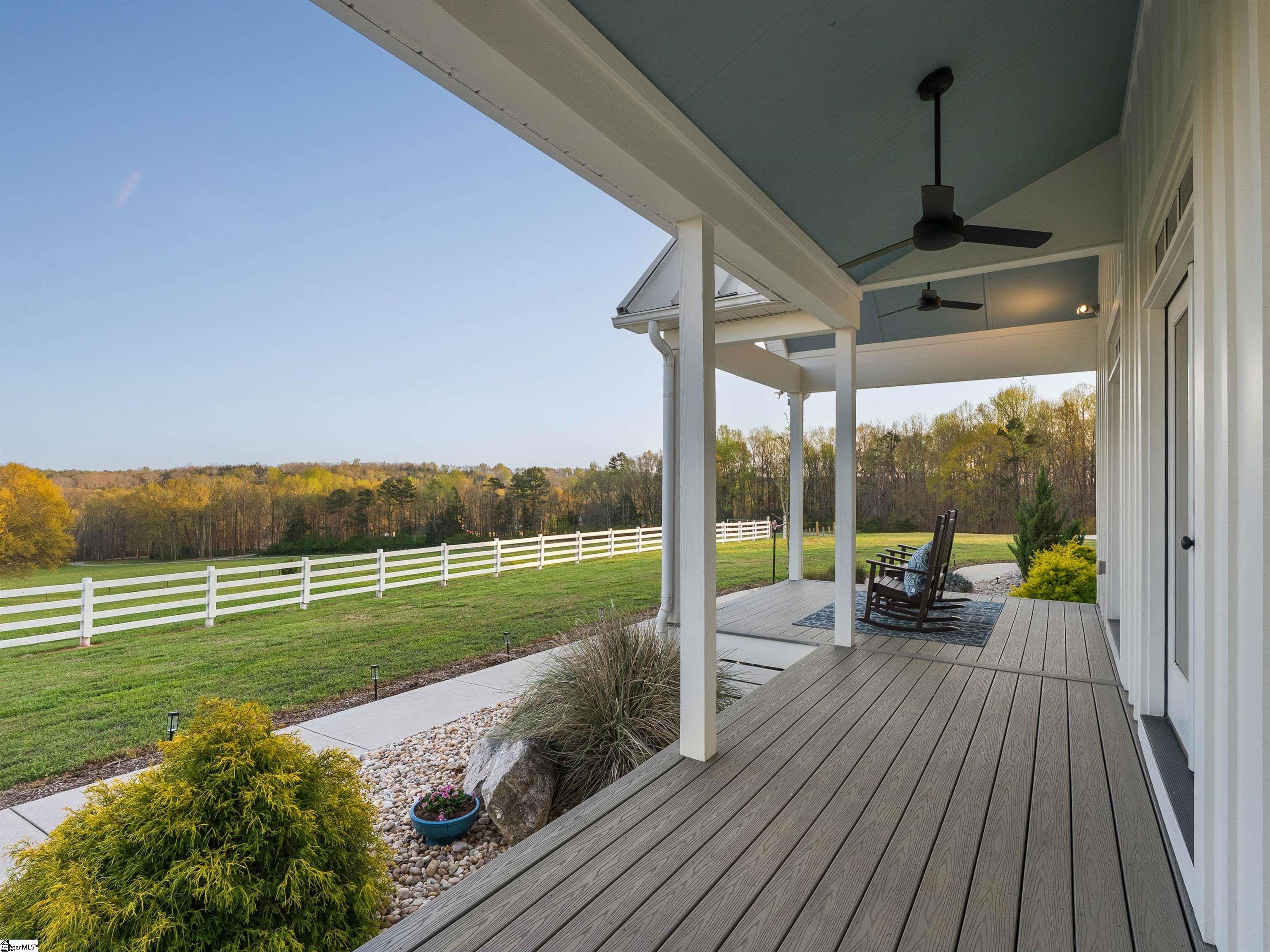 Welcome to the privacy and quiet beauty of this secure 50-acre country estate, Bellevue Acres, an extraordinary modern farmhouse completely reimagined in 2025 to rival the finest new construction in the Upstate. Located 20 minutes from Greenville and Clemson, and ~10 minutes from shopping, dining, medical facilities, and the interstate, this private oasis is a rare find offering both country living at its best and convenient city amenities. Perched on a hilltop, this expansive property boasts over 7,000 square-feet of luxurious living and entertainment space incorporating a main residence, which spans approximately 4,500 square feet, and a 2,800+ square-foot guest house, garage and outdoor kitchen. Light-filled spaces captivate with premium finishes such as soaring ceilings, generous moldings, new wide-plank French oak flooring, custom solid knotty alder doors, quartz countertops, all-new tile, and a gourmet kitchen outfitted with Viking gas range, Dacor French-door refrigerator, and Thermador dishwasher. A two-sided gas fireplace anchors the first floor living and dining areas, while the main-level primary suite features a spa-inspired bath with freestanding soaking tub, dual vanities, separate shower, watercloset and a custom his-and-hers walk-in closet with quartz island and safe-room features. Four bedrooms upstairs include walk-in closets and offer abundant guest or family accommodations. Step outside to a resort-style oasis completed in 2025: showcasing a 35’ saltwater pool with tanning ledge, custom waterfall, and underwater lighting; an expansive covered pool-side patio with integrated outdoor kitchen and sound system; sporting turf for your choice of games; and a large porcelain-tile fire pit capturing sweeping pastoral views of the property. The showpiece detached garage and guest house is a bespoke haven for avid entertainers and tinkerers. The ~1,300 climate-controlled square foot garage/workshop includes three 10×10 RV-height doors, 12-foot ceilings, and 32-foot-deep bays with extensive shelving. The stunning 1,500 square foot guest house features a full kitchenette, two baths, a spacious bedroom and a bonus flex space (office/gym/second bedroom), with independent mini-split HVAC zones. Additional garage highlights include 200-Amp service (x2), 60-Amp EV charging circuits (x2), covered RV parking with full hookups (50A electric, water, sewer), and professionally landscaped grounds with 16 raised garden beds and a 200-yard shooting range. The property’s setting is singularly beautiful: approximately 28 acres of open pasture with board fencing with gated enclosures perfect for horses or livestock, 20+ acres of hardwoods offering a privacy buffer, and a serene 2-acre pond. Two separate gated entries offer future development or estate-split potential. State-of-the-art security includes 4K cameras, motion sensors, electronic locks, and perimeter lighting. Bellevue Acres delivers modern luxury, ultimate privacy and unmatched versatility, whether you envision equestrian living, a multi-generational compound, a car-collector’s paradise, or gentlemen’s farm. Home website: https://sites.listvt.com/331bakervillerd