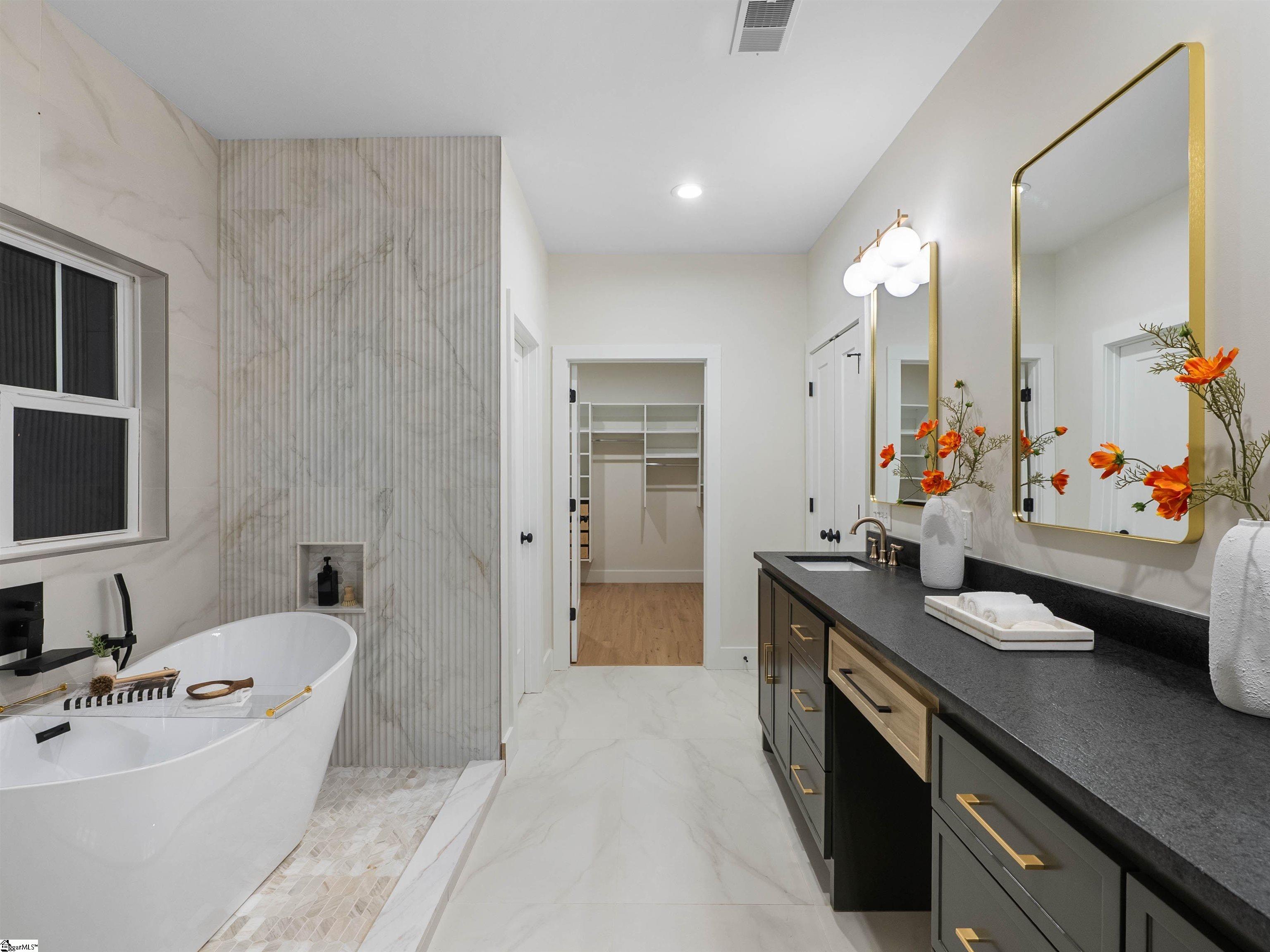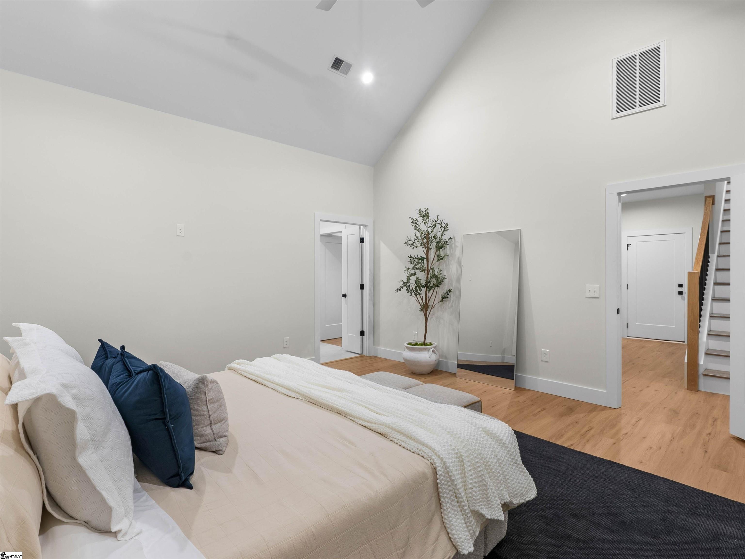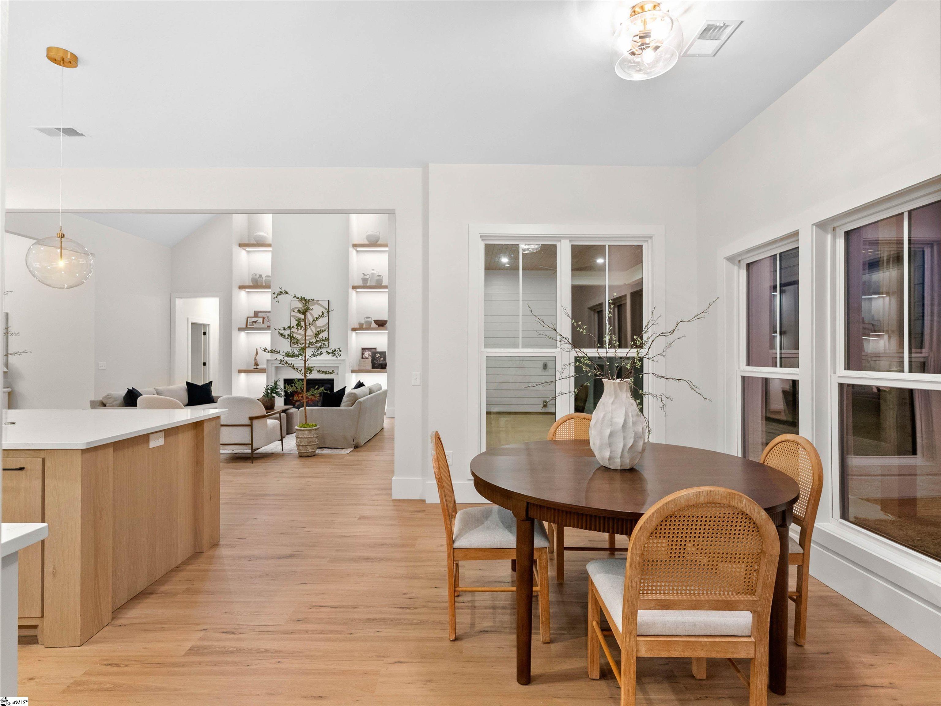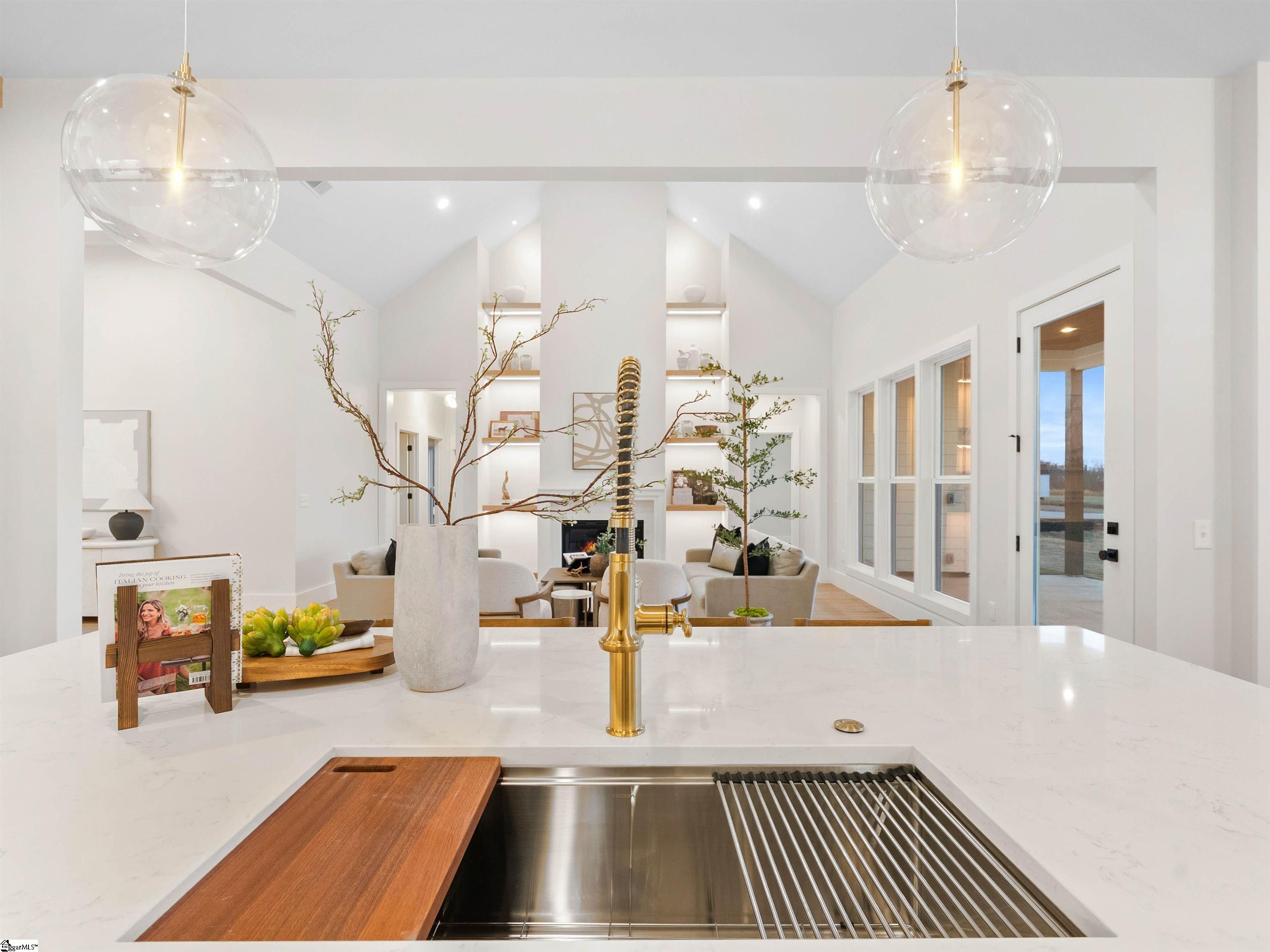 Welcome home to Sunset Acres, a residence that brings multiple generations together. This newly crafted farmhouse stands tall as you pull in to the long paved driveway, occupying 2 acres. Drawing near the entrance, a deep stained tongue and groove patio with a copper gas lantern ushers your arrival. Inside, a foyer draws you into a layout that lives mostly on one level, where movement feels natural and unhurried. Coffered ceilings at twelve feet create a subtle frame for the formal dining. A great room opens wide with vaulted ceilings climbing up to twenty feet. A fireplace lined with custom shelves holds books or treasures under soft, integrated lighting. The kitchen stands as the heart, centered around a quartz island and wrapped in two-tone cabinetry. A built-in refrigerator and concealed microwave hide seamlessly, while a large hood hangs over a ZLINE 8 burner range, a double oven, and a pot filler, ready for any recipe. A café bar with prep sink ready for quick pours in the morning and afternoon pick-me-ups. Beyond, a scullery tucks away everyday messes, keeping the rhythm smooth in the kitchen. Four bedrooms anchor the main floor, including one ensuite for added seclusion. The primary bedroom echoes the home’s airy feel with its own vaulted ceiling and a built-in closet system that organizes life neatly. A discreet closet door connects directly to the laundry room, simplyfing daily flow. After a long day, the primary bath offers a sancuary esape with a freestanding tub and a cascading rainfall shower. A dedicated makeup station built into the vanity with an adjoining linen storage is practical for everyday life. Upstairs, a fifth bedroom transforms into a self-contained retreat. Ideal for an elder, guest or returning family member, with its own kitchenette and full bath, fostering independence. This setup nurtures a multigenerational concept, creating a household that feels both united and respectful of individual needs. Out back, a dark stained tongue-and-groove ceiling hovers over a 24×14 patio, ready for an outdoor kitchen. This 2 acre parcel allows for a variety of recreational hobbies, a garden bed turning soil to blooms, or even a pool to bring the family together for summer BBQs. As day fades, the backyard turns westward, where sunsets unfold in the horizon. Minutes away, Fountain Inn and Simpsonville shops and restaurants add convenience without crowding the peace. Equestrian centers, recently renovated gyms, and local farmer boutiques create an organic lifestyle. At Sunset Acres, your story is yet to be written.
