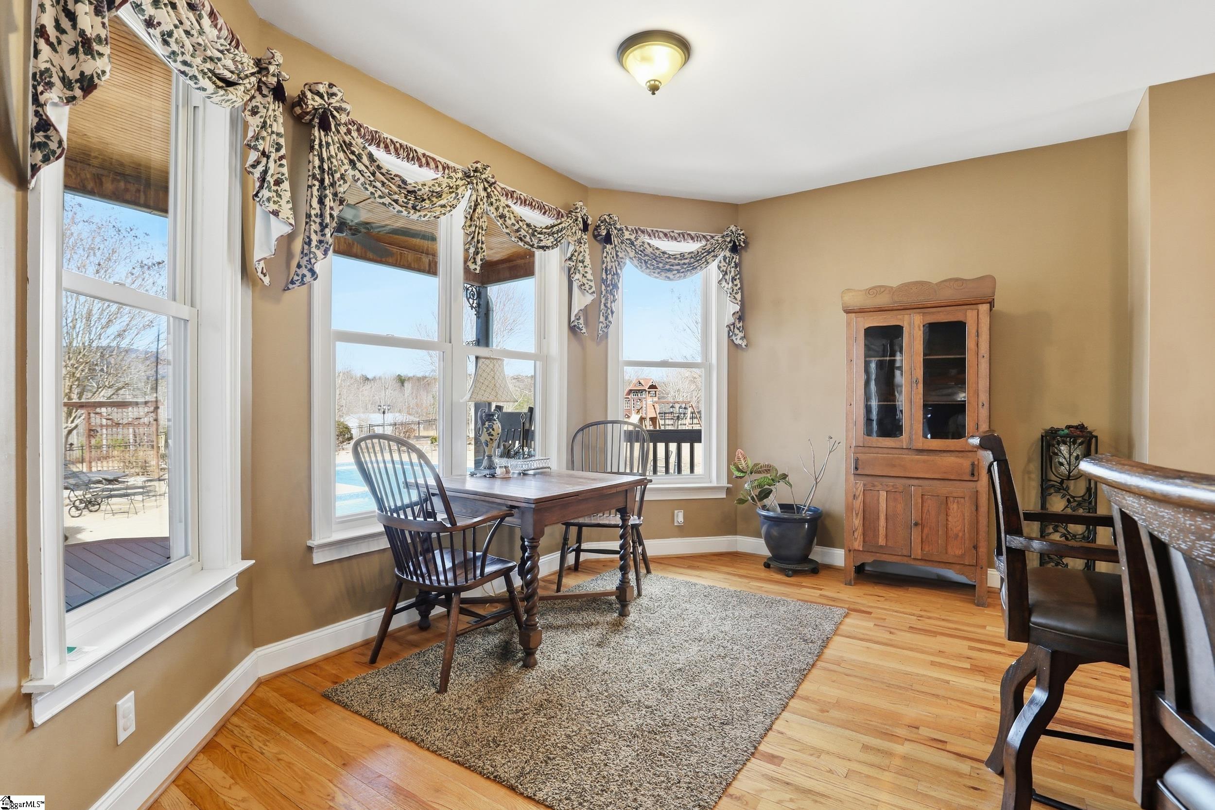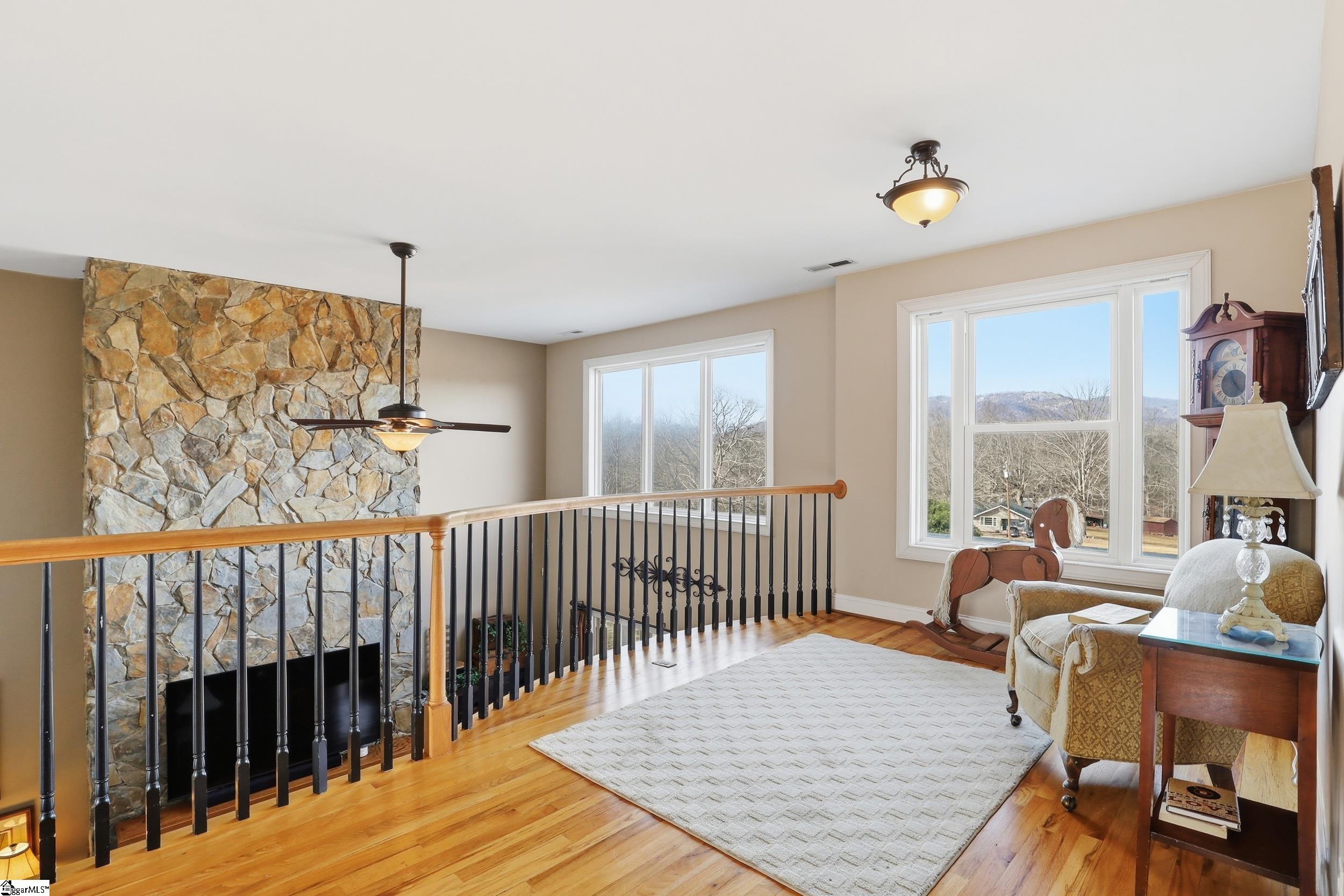 Views, location, no HOA, inground pool and a magnificent home…Need we say more? Located at 3449 SC Hwy 414 in Landrum, SC thisamazing property gives SO MUCH more. First, enjoy outdoor living at it’s finest on your 2 acres (and the opportunity to purchase additionalacreage, if desired). This 2 level residence with a full finished basement, boasts a wrap around rocking chair front porch. At the back of thehome is an incredible screened in back porch allowing prime views of an amazing pool and patio area as well as the pièce de résistance: a viewof Glassy Mountain that looks close enough to touch! (Back porch swing and furniture will not convey with home.) Entering the front door, thestaircase soars above you and you get your first sight of that amazing mountain. The lovely living room has a wall of windows to give you a 2story, unfettered view that changes with every season and grows more beautiful everyday. The rest of the main floor provides an owner’s suitewith a full bath (separate shower and tub) and dual vanities. Completing this level is another bedroom/office as well as a large kitchen, breakfastnook, dining room and half bath putting all the necessary rooms in this easily accessible area. Two staircases provide access to the upstairswhere 3 generously sized bedrooms and 2 baths are located. Additionally, a large bonus room, and another study are located here. A panoramic loft area is located outside the bedrooms providing superb views of Glassy Mountain as well as the Living Room below it! Continuing the tour of this massive house takes you to a completely finished basement. Another fireplace here in the second living area can be utilized however the owner would like…think game room or media room. There is another bedroom in this basement area as well as a full bath. This area could be utilized as a second living space with its kitchenette. There are also several storage rooms here available for all your necessities. Additionally, a large walk out storage area leads to a roofed area perfect for boat storage or your latest project.