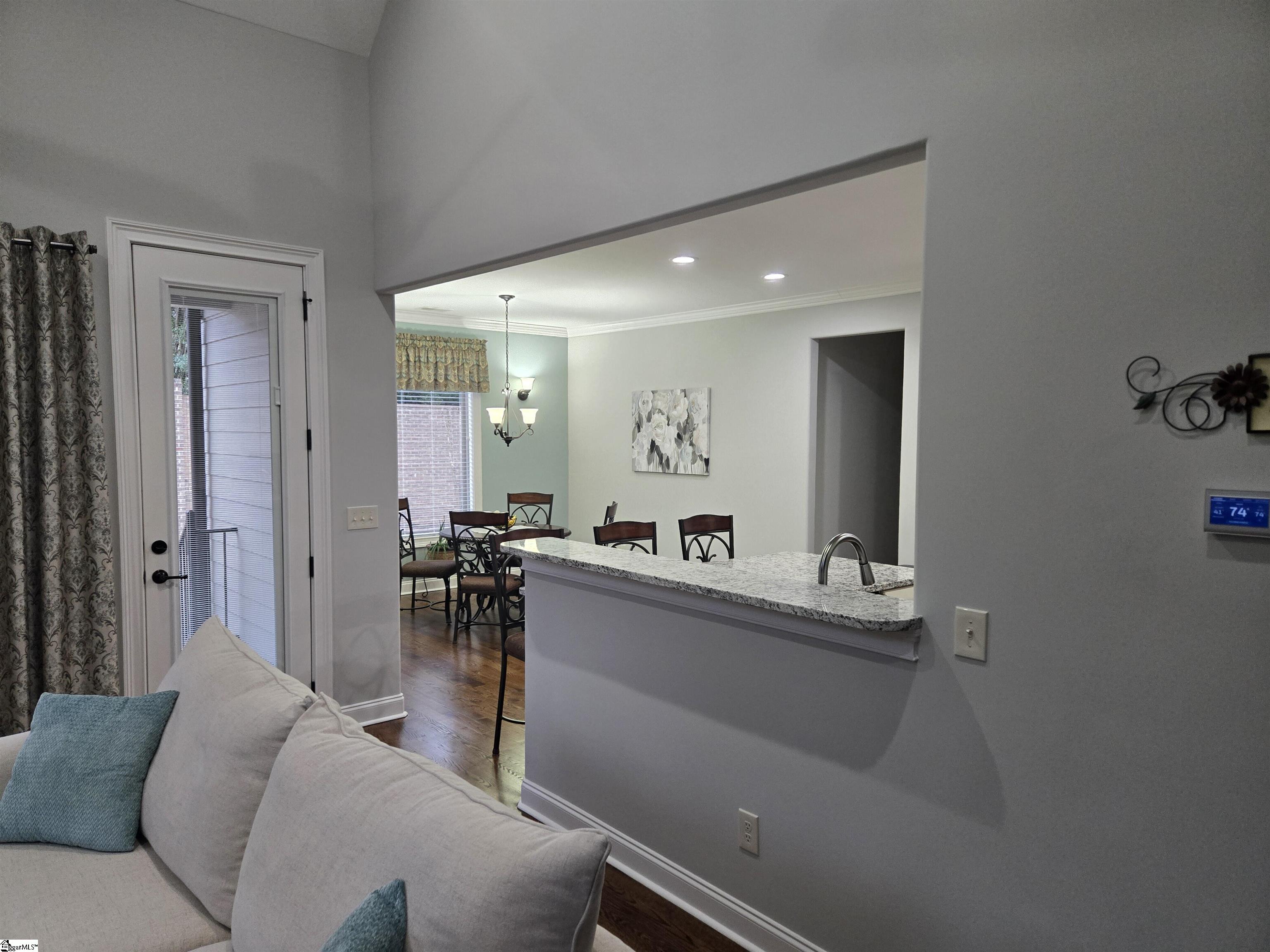 Immaculate 4BR / 3BA home, in The Courtyards on West Georgia Road. There is a grand 2-story entry that opens to a cathedral ceiling in the Great Room and a beautiful floor to ceiling stone fireplace. Which can be enjoyed from the open chef’s kitchen equipped with high-end stainless appliances, pot filler for the Jenn-Air induction cooktop, custom tile and granite countertops. The ample cabinet space and butler’s pantry, provides plenty of room for all your cooking essentials. The main level Master Suite also features a tall cathedral ceiling and large custom designed closet. An elegant Master bath has a large soaking tub, with overhead chandelier and gorgeous ceramic tile walk-in shower with seat area. This home has lots of crown molding and beautiful oak hardwood floors, finished in French Provincial color. All of the main level is oak hardwood flooring, except the front bedroom (or office), which has plush carpeting same as second floor bedrooms and large multipurpose room above garage. This multipurpose room was finished in 2020 and added 437 sq. ft. living space to the home. There is plenty of storage available with the walk-in attic area and two additional lighted areas on each side of the multipurpose room. The plush premium grade Lucaya Best carpeting with Napa Cushion padding is in all carpeted areas, new in 2021. Additional improvements include a new CertainTeed Landmark 30-year architectural roof, all exterior painted, and new LED flood lights installed on the back of the house, these were done in 2023. A Navien tankless water heater provides an abundance of hot water, so no one with have a cold shower. The oversized two-car garage with epoxy coated floor is deep enough to fit a full-size pickup truck and has cabinets with workbench already installed. The backyard is one of the largest in the neighborhood, and totally tranquil since the house is located at the end of the street. With the brick wall fence enclosed around the back yard, it provides a wonderfully private and quite outdoor place. This sub-division is one of the best in the Simpsonville area, conveniently close to many stores and restaurants and has easy access to HW 385.