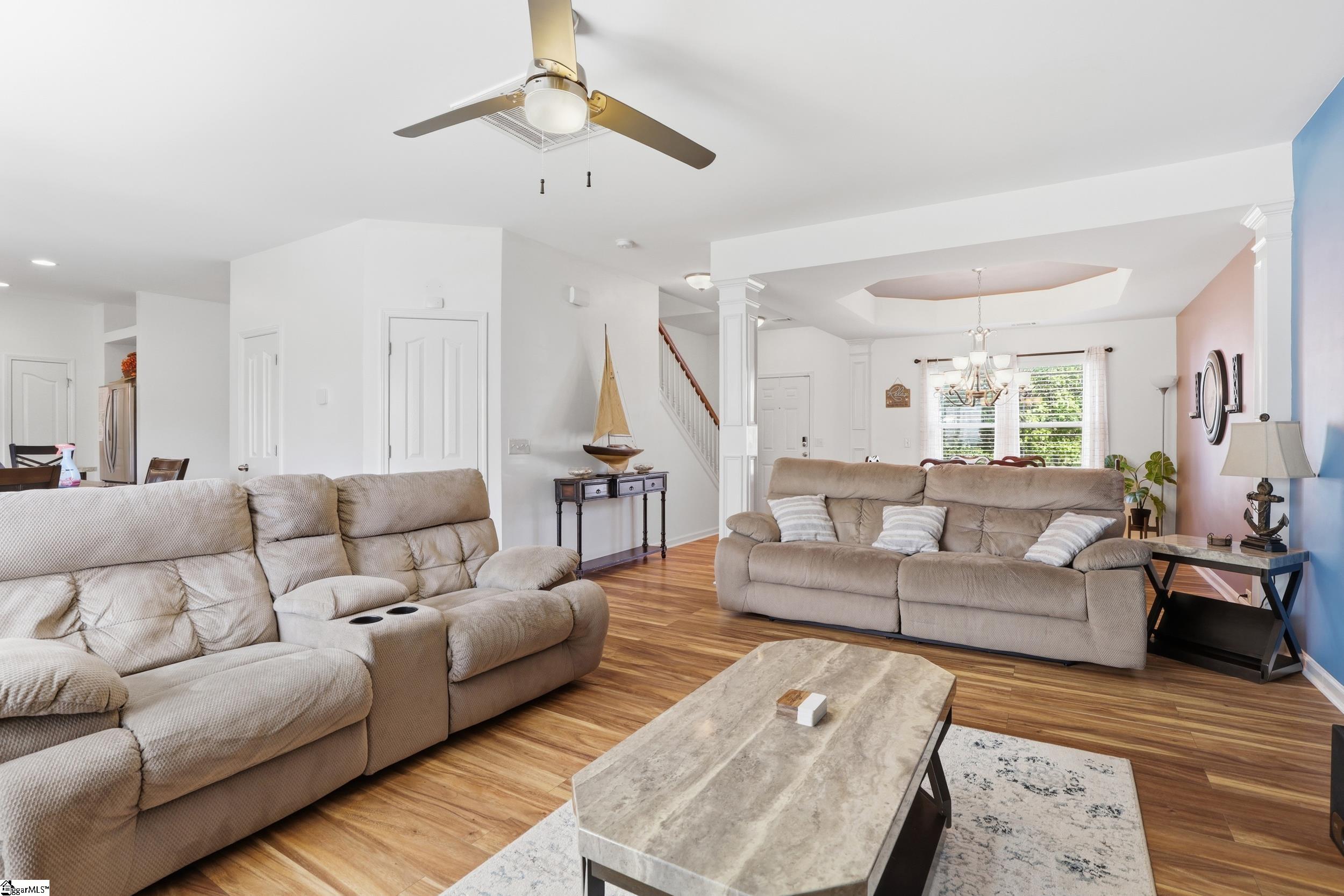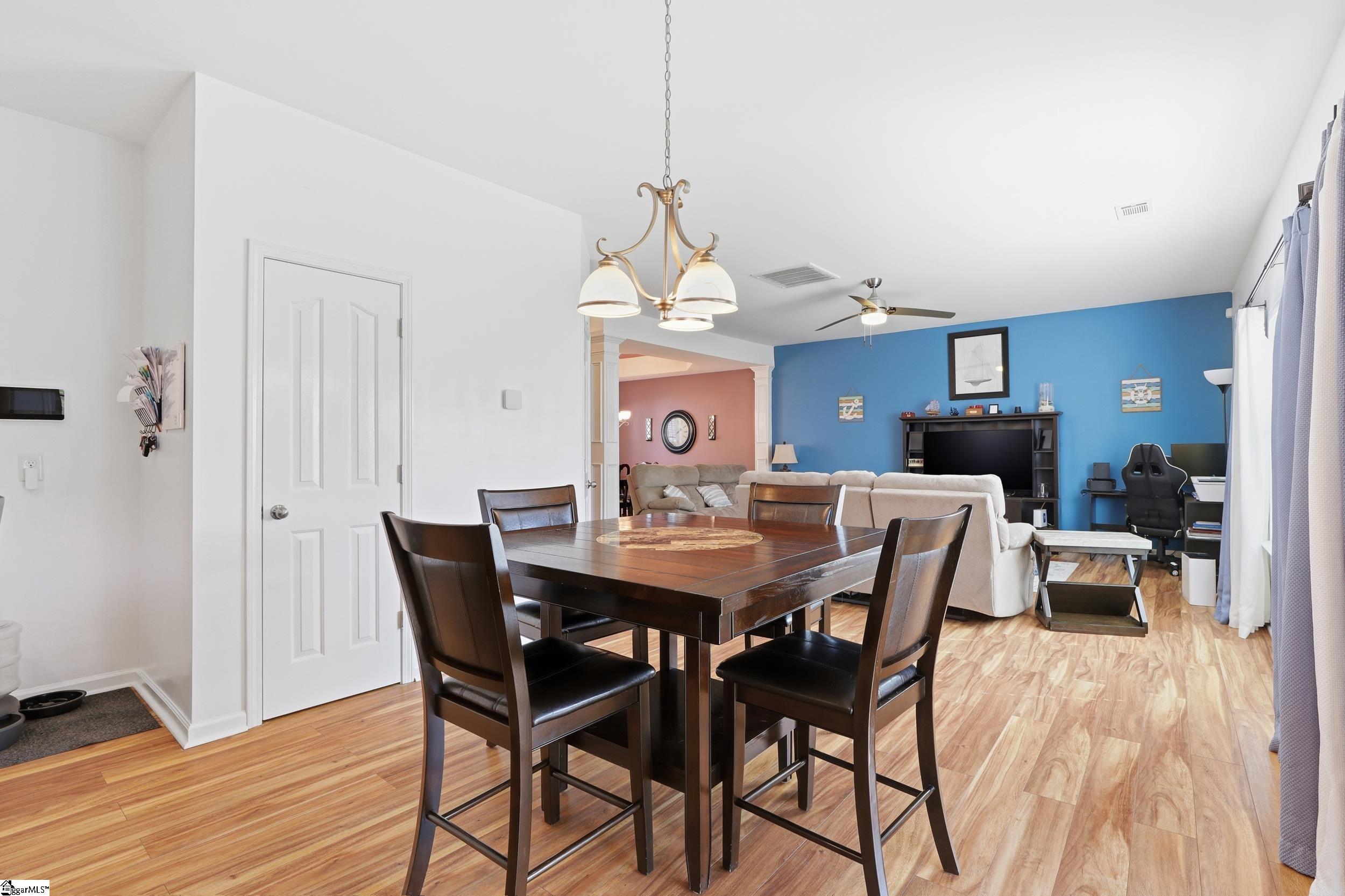 Nestled within the established Watermill Pond community, this well-maintained home offers a thoughtful layout, inviting living spaces, and a backyard designed for everyday enjoyment. From the moment you step inside, you’re welcomed by an open main level where beautiful updated flooring and defined yet connected spaces create both comfort and functionality. A formal dining area sits just off the entry, while the spacious living room flows seamlessly into the kitchen and eat-in area, ideal for both daily living and hosting. The kitchen features ample cabinetry, a pantry closet, and easy access to the screened-in porch, extending your living space outdoors. Upstairs, all three bedrooms are thoughtfully positioned, including a generous primary suite with a walk-in closet, dual sinks, garden tub, separate shower, and a small sitting area. A large bonus room offers flexibility for a game room, home gym, office, or additional living space, and a designated laundry room adds everyday convenience. Outside, the fully fenced backyard offers room to relax or entertain, complete with a screened-in porch and a recently added storage shed. Recent updates include a new roof (2022), HVAC (2019), and flooring and carpet (2021), offering peace of mind for years to come. Located in Simpsonville, this home offers convenient access to everyday shopping and dining, is just about 15 minutes to Cedar Falls Park, and approximately 25 minutes to downtown Greenville, offering a setting that feels comfortably suburban while keeping you close to it all.
