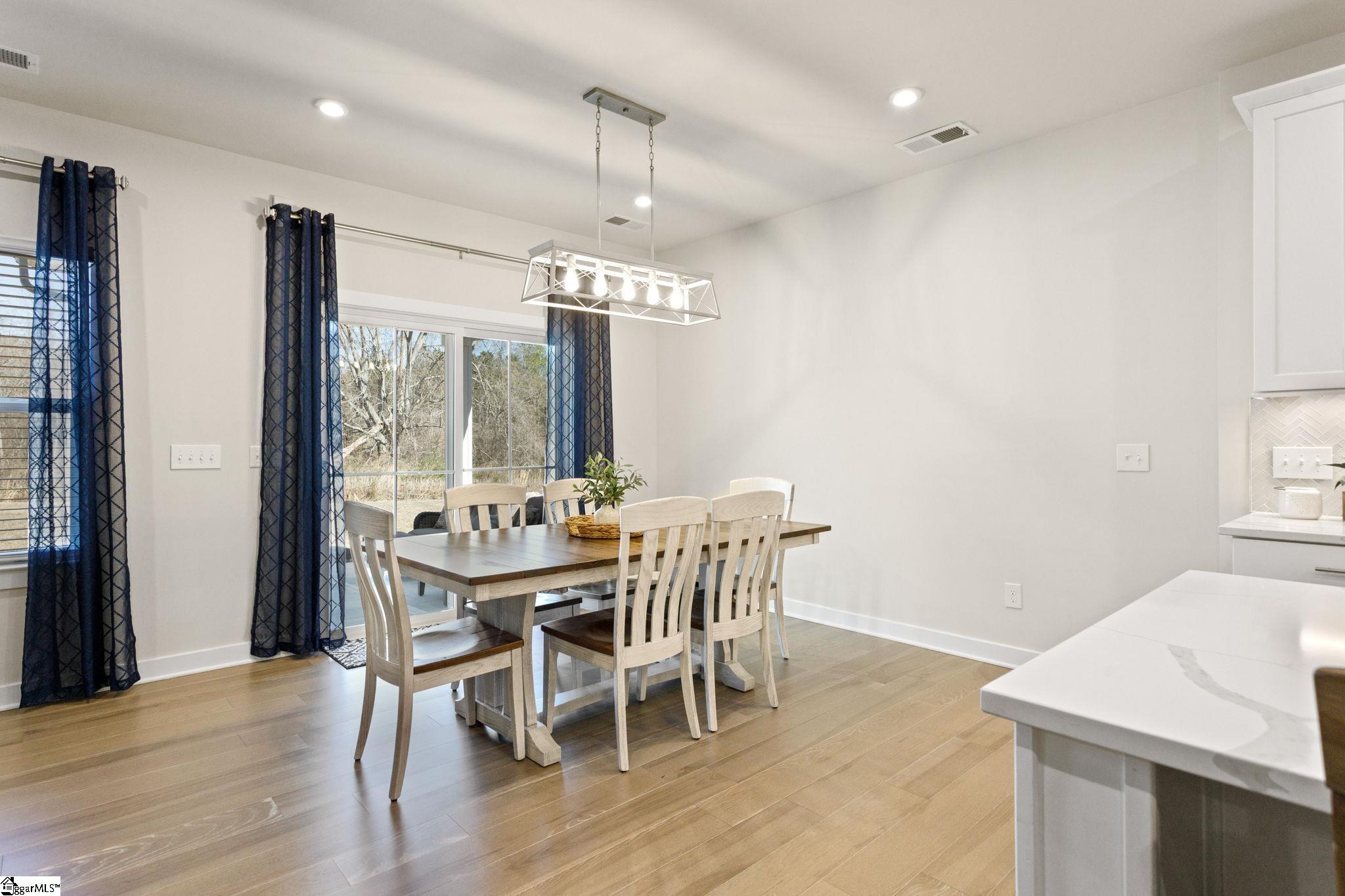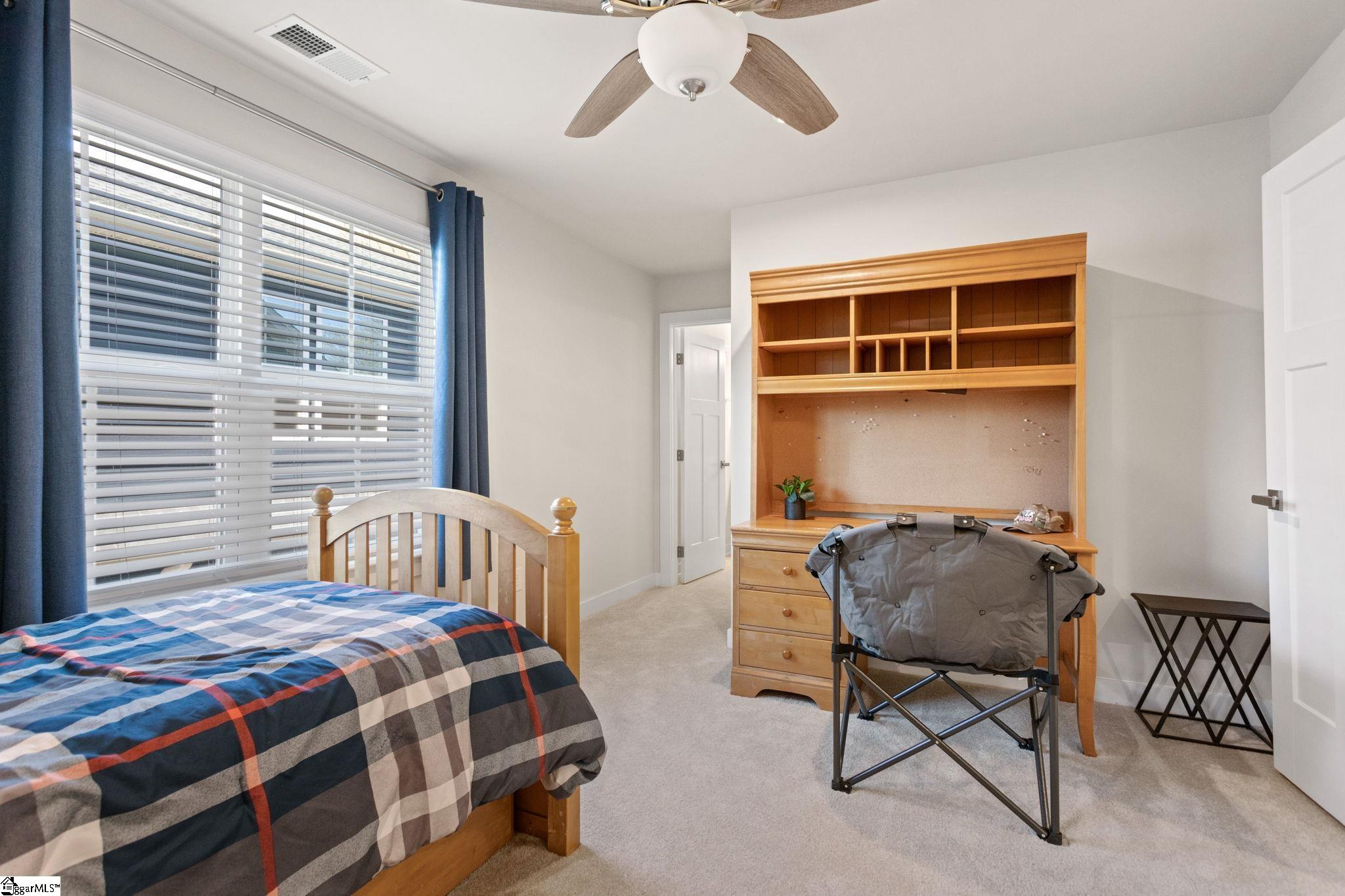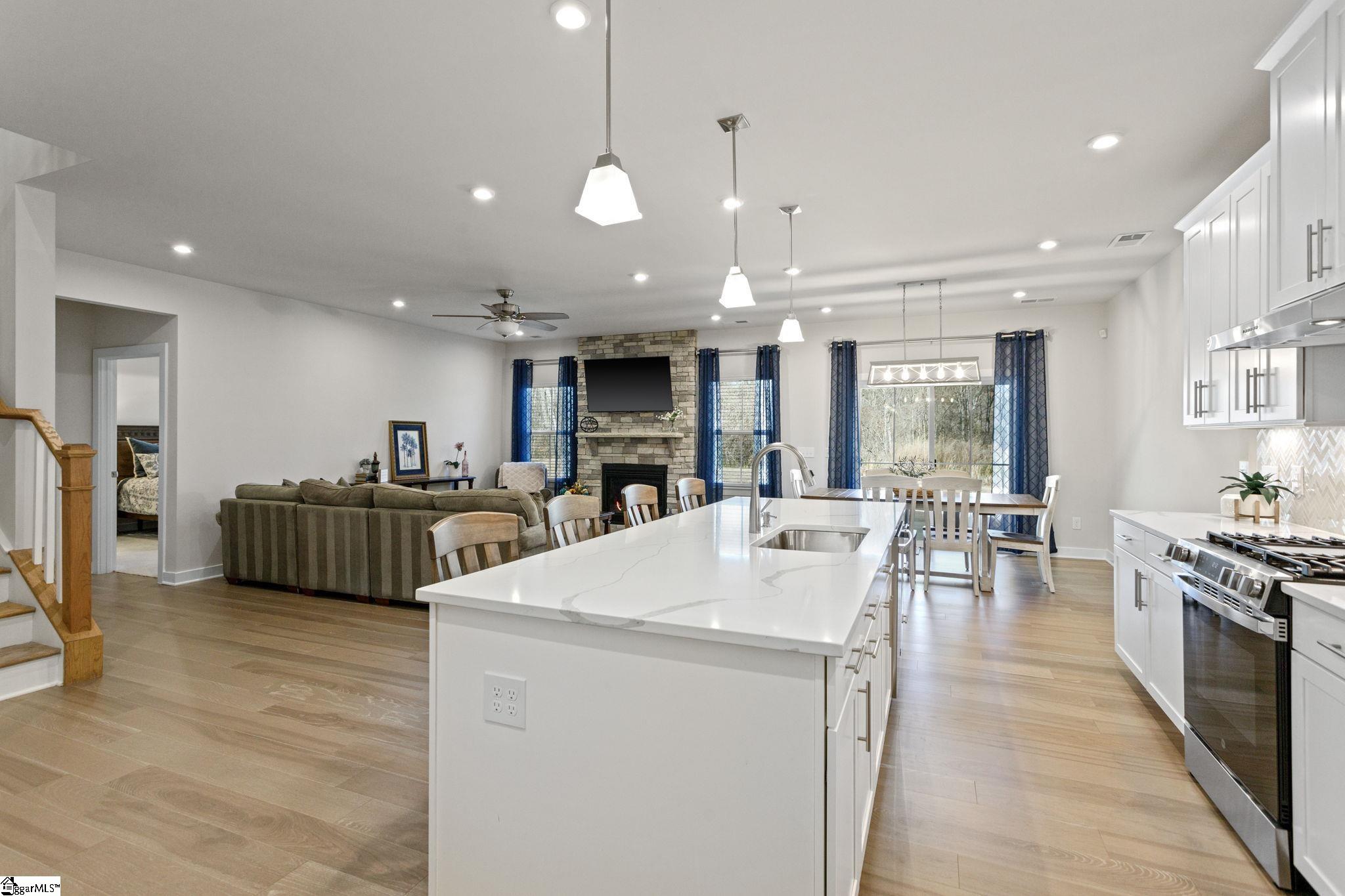 You arrive at 356 Hollythrope Lane and immediately notice something special. Tucked against the quiet green space of the neighborhood, the setting feels private and peaceful, with no backyard neighbors and room to breathe. Step inside and the home welcomes you with intention. Just off the entry, a bright flex room sits behind French doors, perfect for a home office, reading space, or quiet retreat. The flooring flows seamlessly, guiding you into the heart of the home. The main living area opens up in a way that feels both spacious and inviting. The kitchen, dining, and living spaces come together effortlessly, creating a natural place to gather. Whether it’s a busy weekday morning or a weekend with friends, everything feels connected. The kitchen is designed to impress and function at the same time. Quartz countertops with a custom finish catch the light, while the herringbone backsplash adds texture and style. A gas range, built-in microwave, second oven, and walk-in pantry make everyday living easy. The oversized island becomes the center of it all, perfect for casual meals or hosting. Just beyond, the living room offers a cozy place to unwind, anchored by a gas fireplace that makes the space feel warm and welcoming. The dining area sits nearby, ready for everything from simple dinners to holiday gatherings. One of the most desirable features of this home is found on the main level. The primary suite is thoughtfully placed for comfort and privacy, something rarely offered in this community. Inside, a trey ceiling adds dimension, while the ensuite bath creates a spa-like feel with a tiled shower, double sinks, and a comfort-height vanity topped with quartz. Upstairs, the home continues to offer flexibility. A spacious loft can become a second living area, game room, or creative space. Three additional bedrooms provide plenty of room, including one with its own private bath. Two full bathrooms and a walk-in attic with generous storage complete the upper level. Step outside and you’ll understand what makes this home truly stand out. The covered patio invites you to slow down and enjoy the view of the open green space behind you. It’s the kind of setting that’s hard to find and easy to love. Thoughtful upgrades, including a central vacuum system, add convenience and value throughout the home. And the location makes daily life even easier: • 2.3 miles to Heritage Park and Amphitheater • 2.2 miles to Downtown Fountain Inn • 4 miles to Fairview Road shopping and dining • About 25 minutes to Downtown Greenville 356 Hollythrope Lane offers a rare combination of privacy, thoughtful design, and everyday comfort. It’s a home that truly lives as beautifully as it looks. Schedule your private showing and come experience it for yourself.