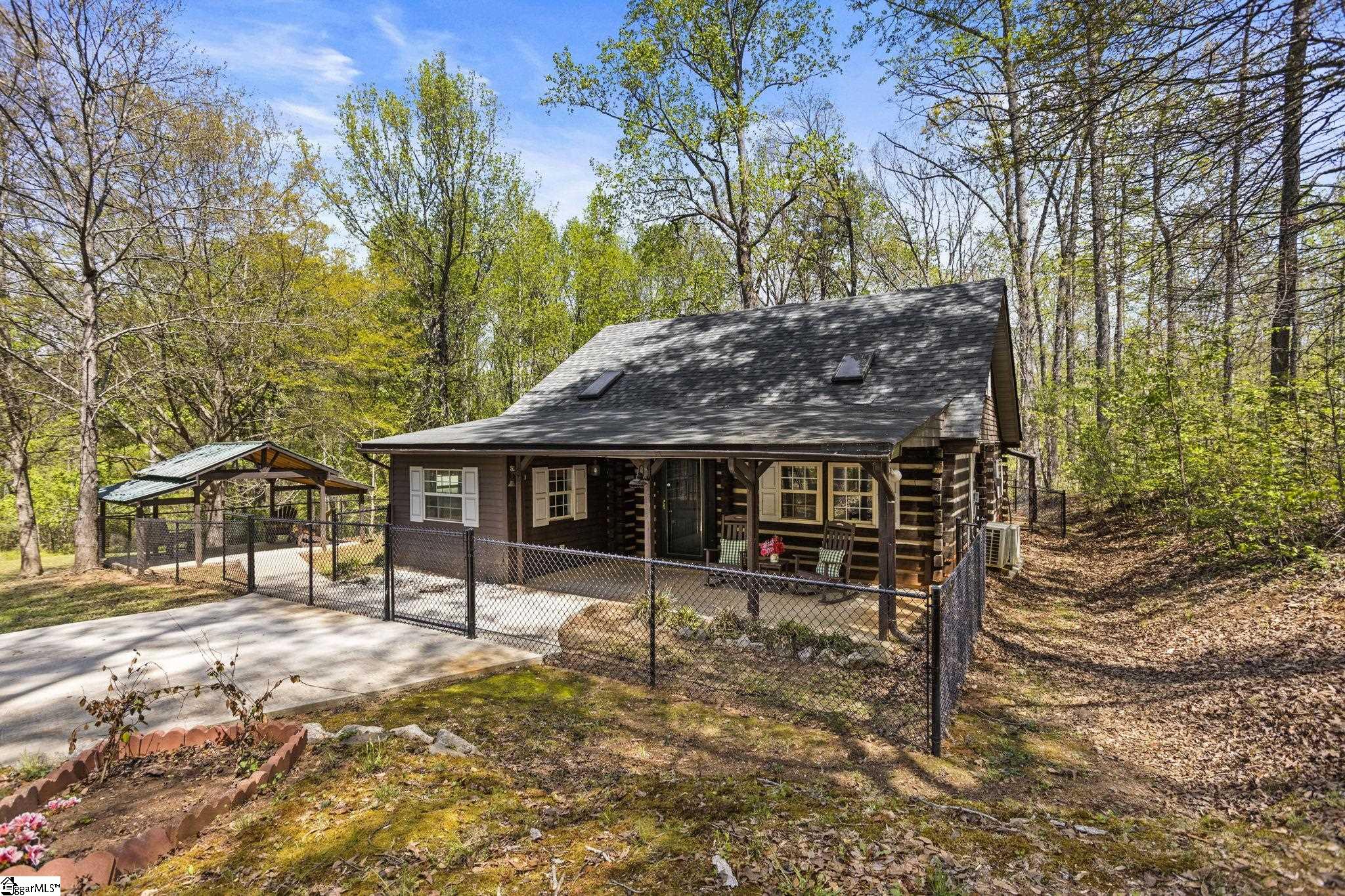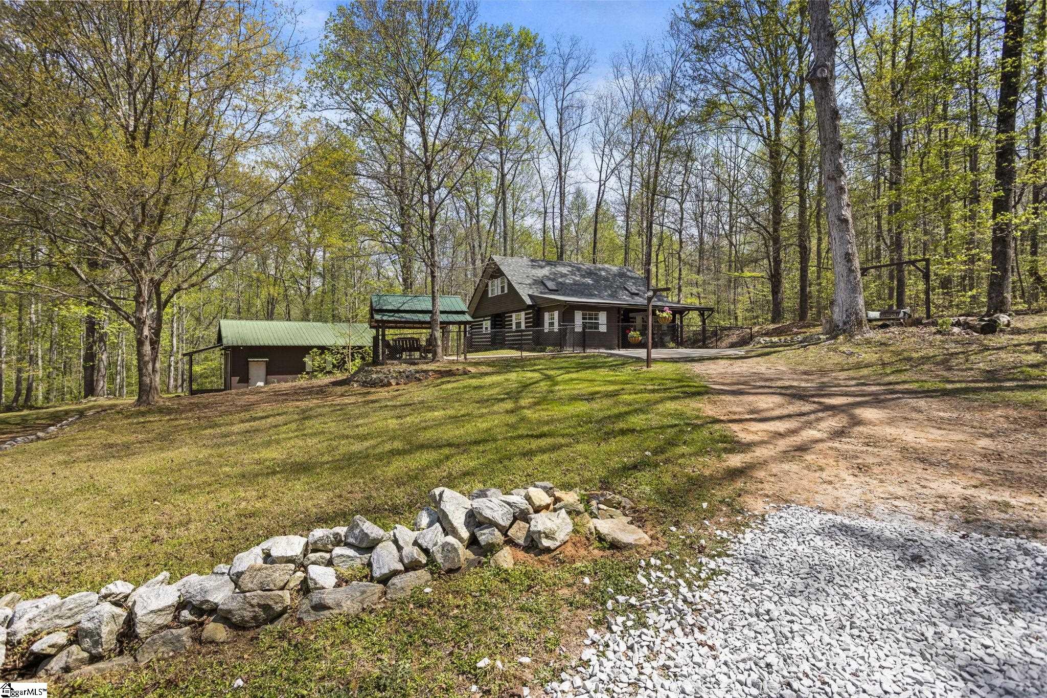 **Multiple Offers. Highest and Best deadline 6pm, April 14th, 2026. Pinch yourself! Your dream property has finally come on the market! Private, peaceful unrestricted acreage just 10 minutes from thriving downtown Travelers Rest. This storybook property has it all: quaint log cabin, outdoor pavilion area, 26 x 26 workshop with electricity, a running creek, pond views and views of the mountains in the winter. This home has been dearly loved since it was built in 2000. New roof in 2023 and on city water! The bones are good and are ready for you to bring your new life and creativity into it! **fun fact: this is only 1 minute from a thriving, year-round, fully booked wedding venue. The opportunity to use this as an airbnb for wedding guests should be noted!!! The long driveway is an official easement and is not part of the 2.1 acre parcel. Owner is responsible for upkeep of driveway. While inspections are welcomed, seller is selling this ‘as-is’ (and priced accordingly!)
