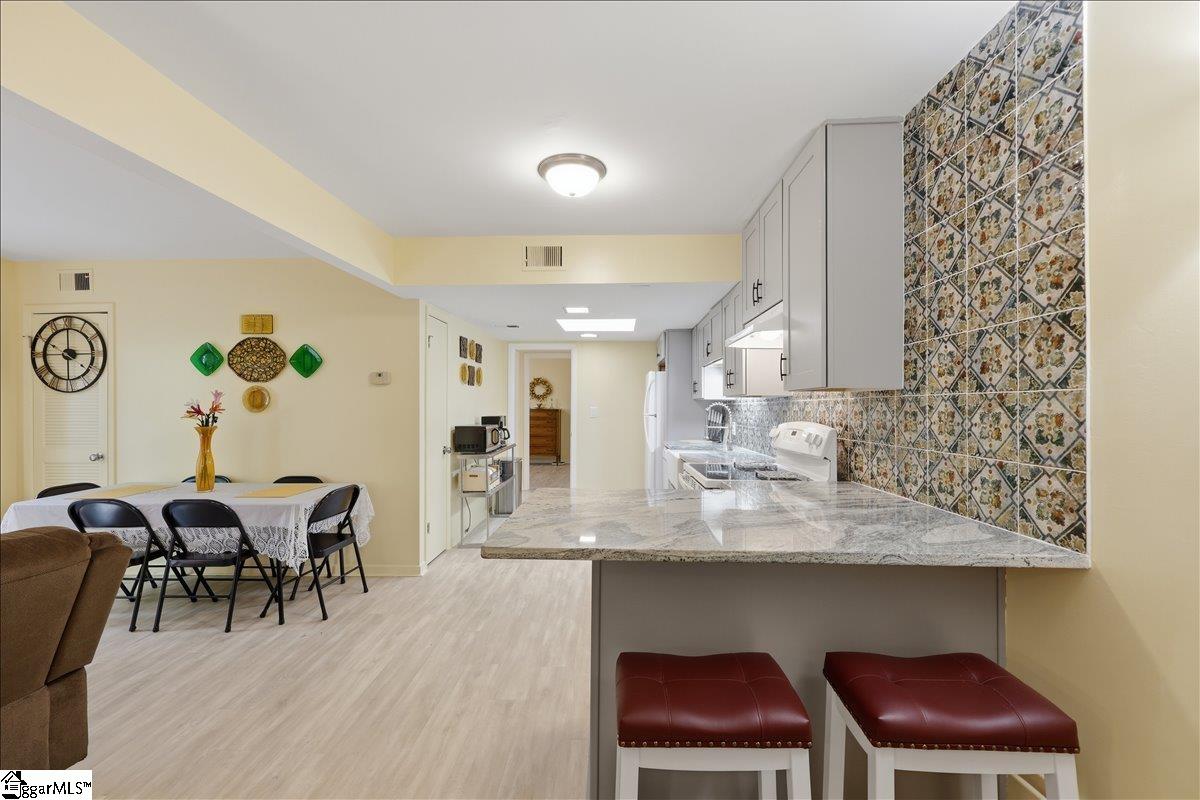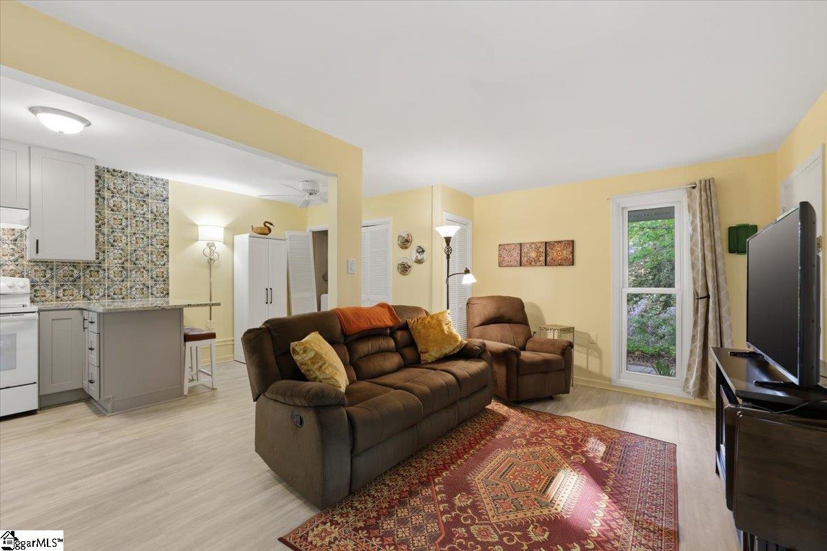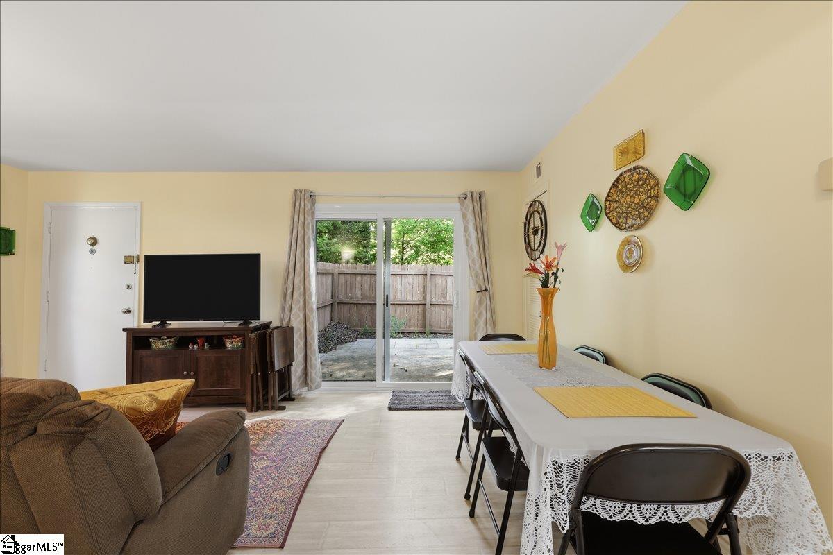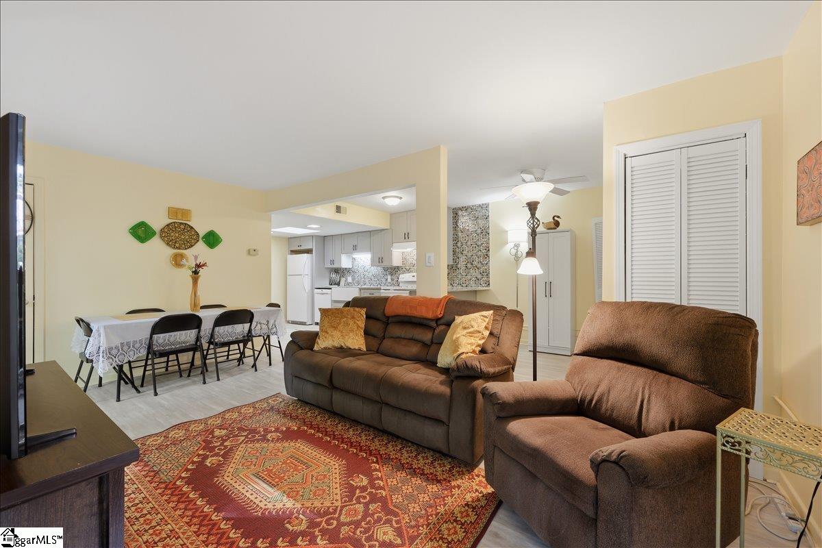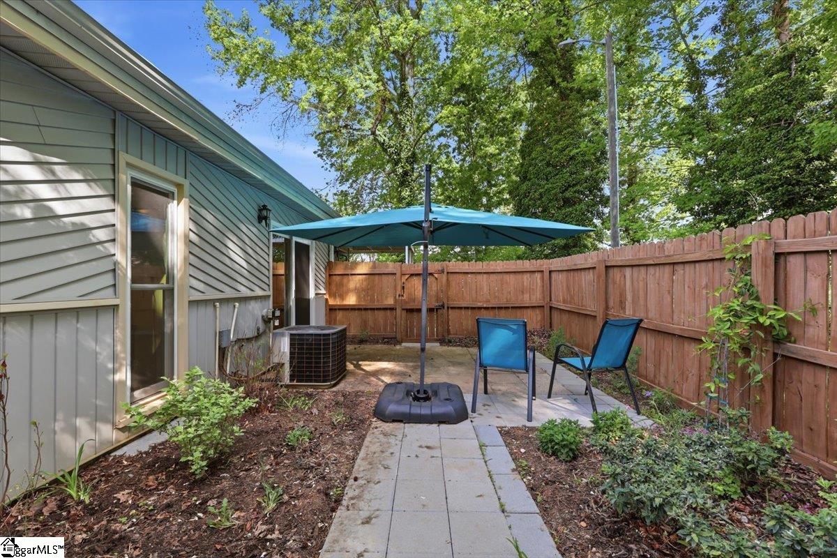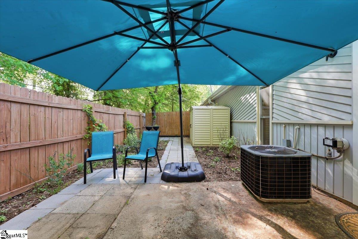Tucked quietly at the back of a walkway, this end-unit condo offers a rare sense of privacy—creating a peaceful retreat that feels set apart from the everyday. Thoughtfully remodeled throughout, the home showcases a refreshing departure from the expected, with warm, inviting tones and carefully selected finishes that add character without overwhelming the space. The kitchen features custom mosaic tile work that brings texture and visual interest, complemented by updated surfaces and a functional layout designed for both daily living and easy entertaining. This same attention to detail continues into the bathroom, where a custom backsplash adds a distinctive, elevated touch. Outside, the fully fenced patio extends your living space, offering a private setting ideal for relaxing or hosting. A dedicated storage shed adds convenience and versatility—perfect for bikes, seasonal items, or everyday extras. Designed for easy living, the HOA covers lawn care and exterior maintenance, allowing for a truly low-maintenance lifestyle. Residents also enjoy access to a community pool and clubhouse, offering additional space to relax, gather, and enjoy the neighborhood. With two bedrooms and one bath, this condo is well-suited as a low-maintenance primary residence, a convenient crash pad, or an excellent investment opportunity. Its central location provides easy access to nearby hospitals, shopping, and dining, making everyday living both simple and connected. A home with personality, privacy, and thoughtful updates—this is one you won’t want to miss.