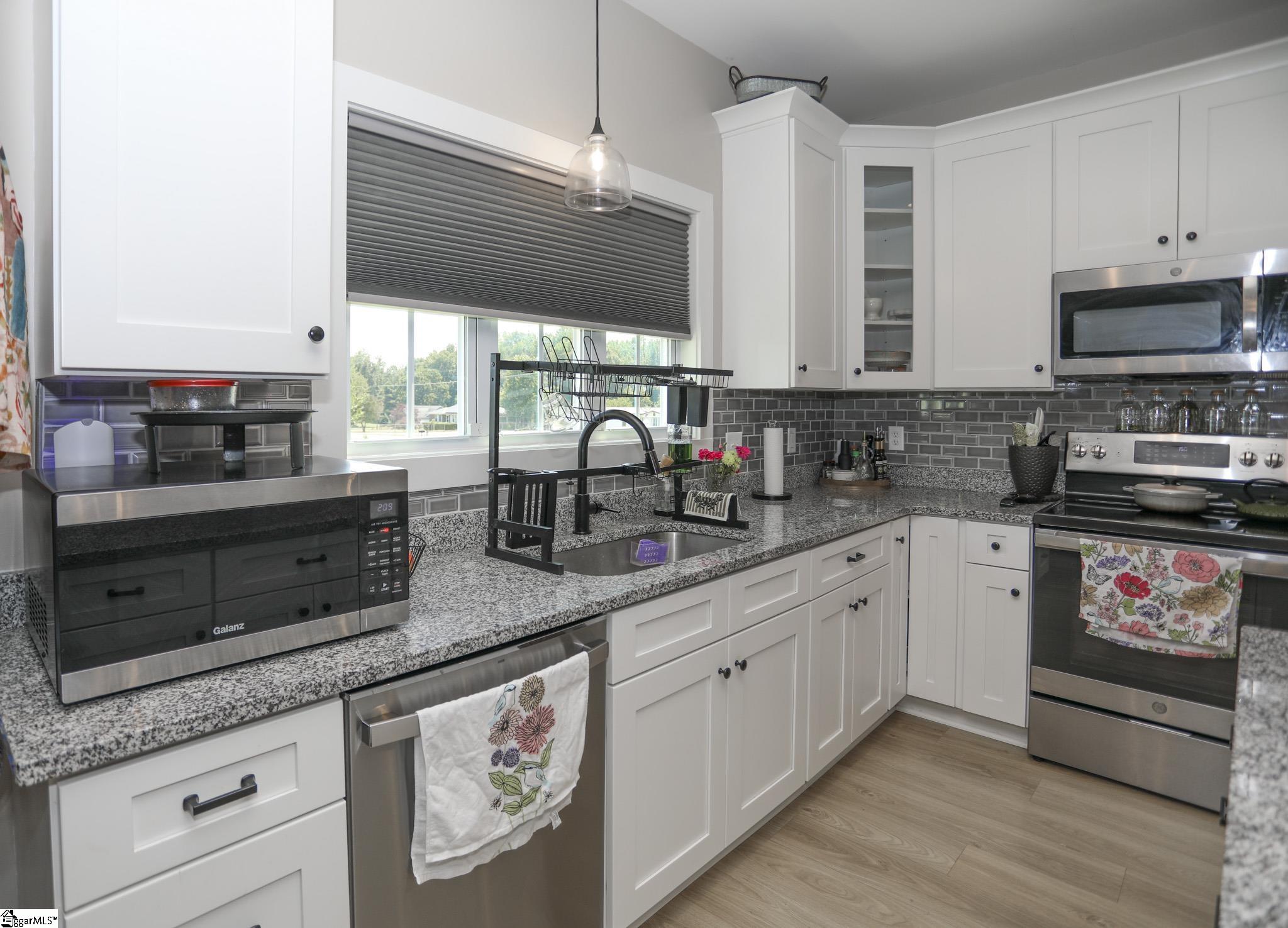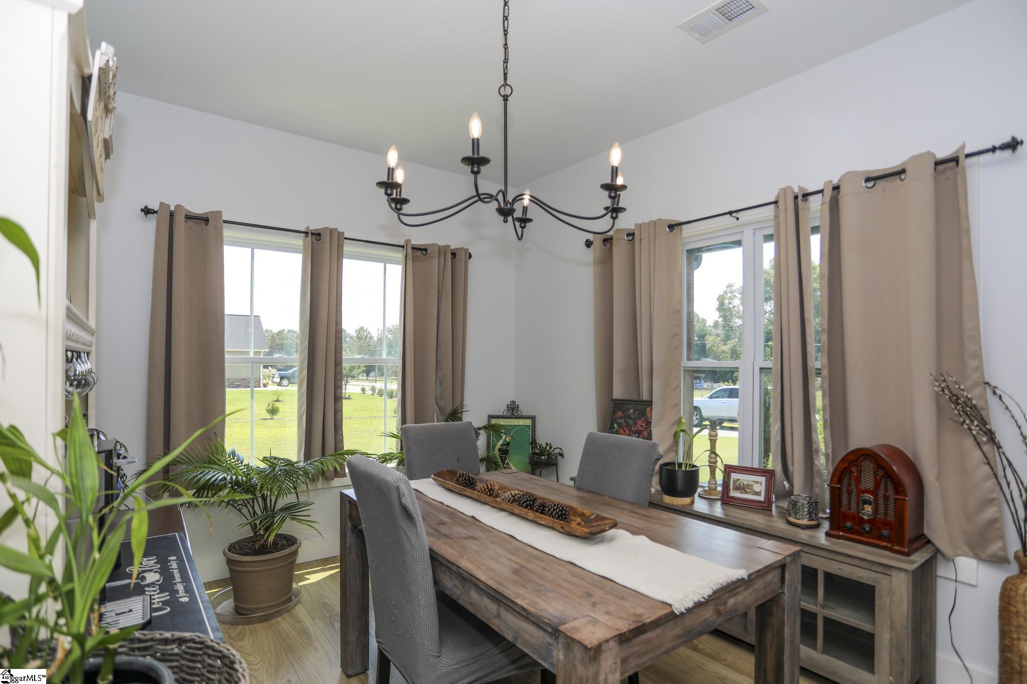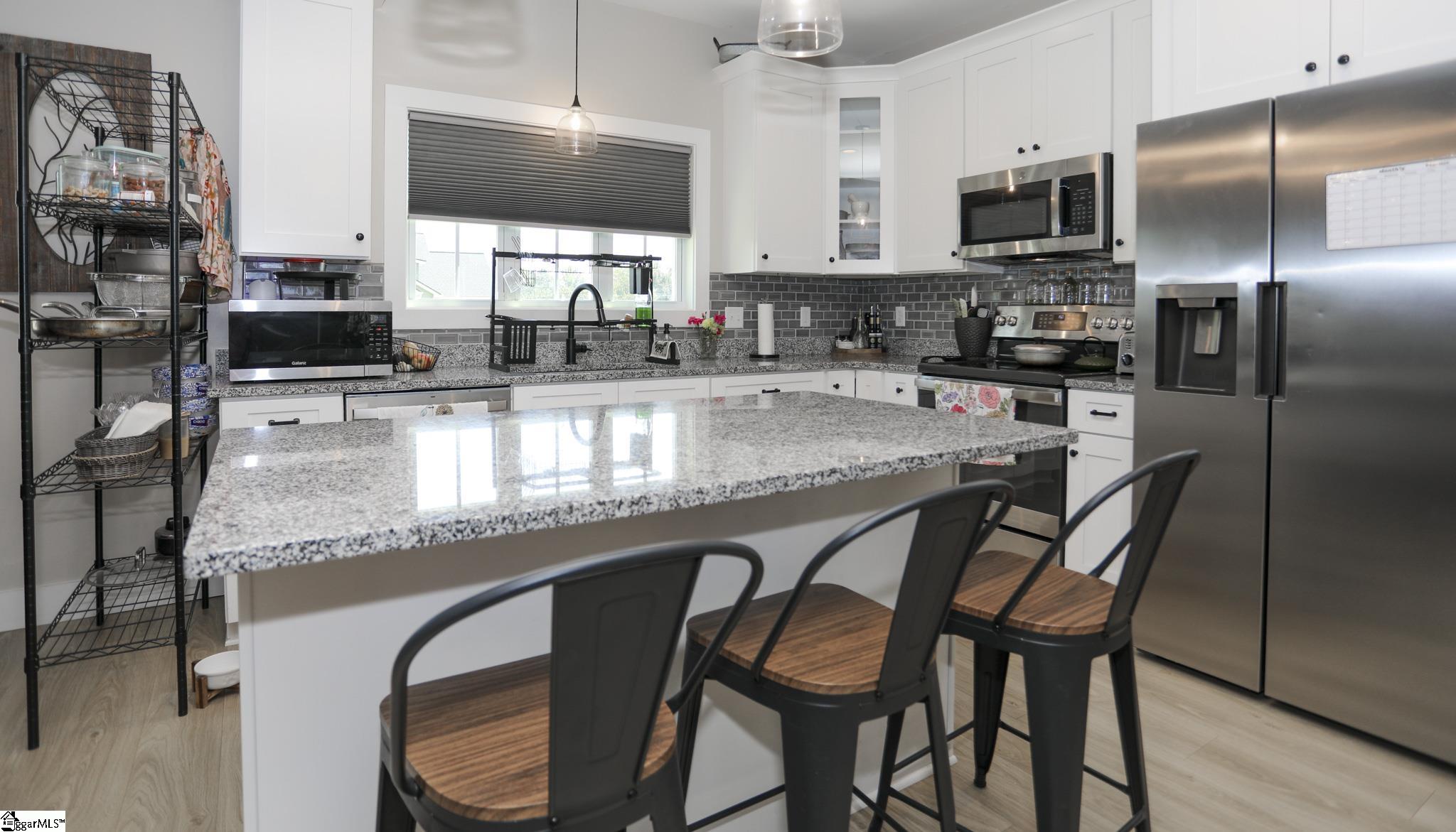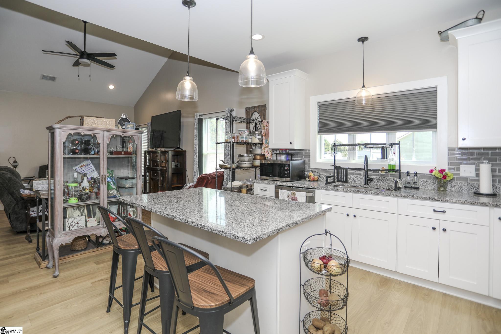 Welcome to 3796 Camp Road, a 3-bedroom, 2-bath ranch-style home on over an acre of level land with no HOA! Located in the heart of Greer, this single-level residence blends functionality, modern finishes, and wide-open space both inside and out. As you arrive, you’ll be greeted by a charming front porch and a 2-car garage with a yard door for added convenience. Step inside to discover an open floor plan with smooth ceilings, luxury laminate flooring in the main areas, and natural light throughout. The spacious living room seamlessly connects to the kitchen, which features granite countertops, soft-close cabinetry, stainless steel appliances, a walk-in pantry, and a center island perfect for gathering. The split-bedroom layout ensures privacy for the spacious primary suite, which includes a walk-in closet, dual sinks, a tiled shower, and a separate soaking tub. Two additional bedrooms and a full bath are positioned on the opposite side of the home, ideal for guests or family. Enjoy peaceful evenings on the covered back porch overlooking your expansive backyard with endless possibilities. Add a garden, pool, or workshop with no restrictions. Located just 15 minutes to Downtown Greer and 25 minutes to GSP Airport, this home is move-in ready and waiting for you!