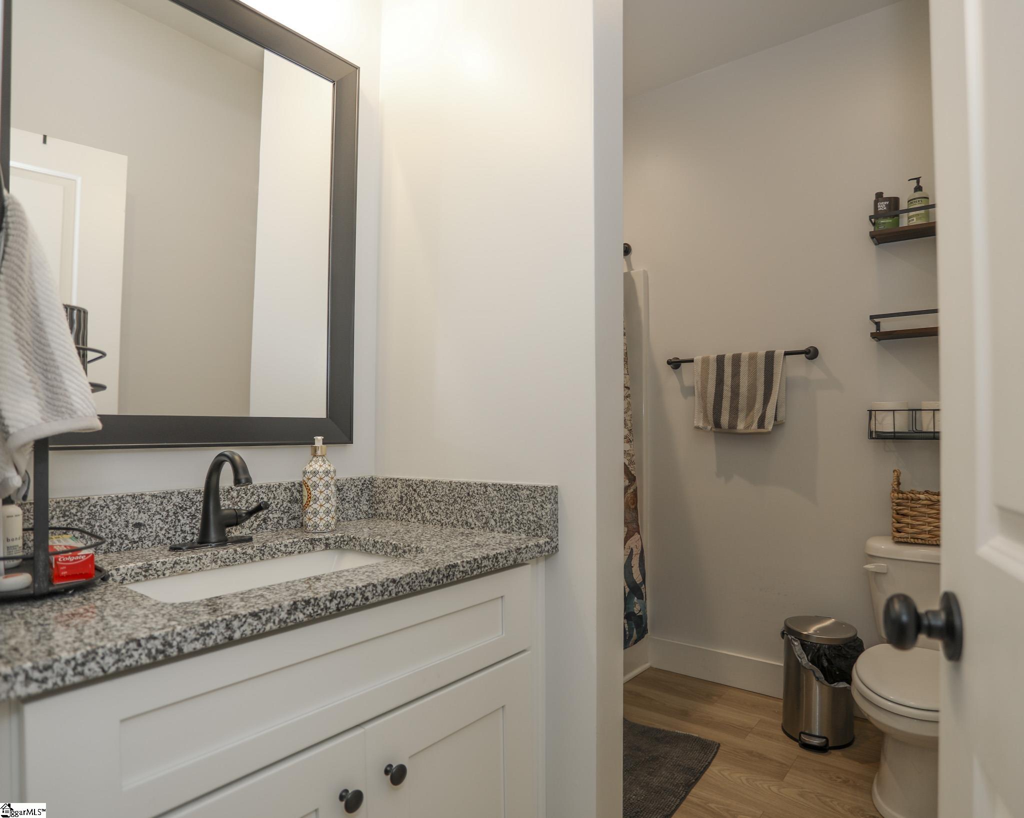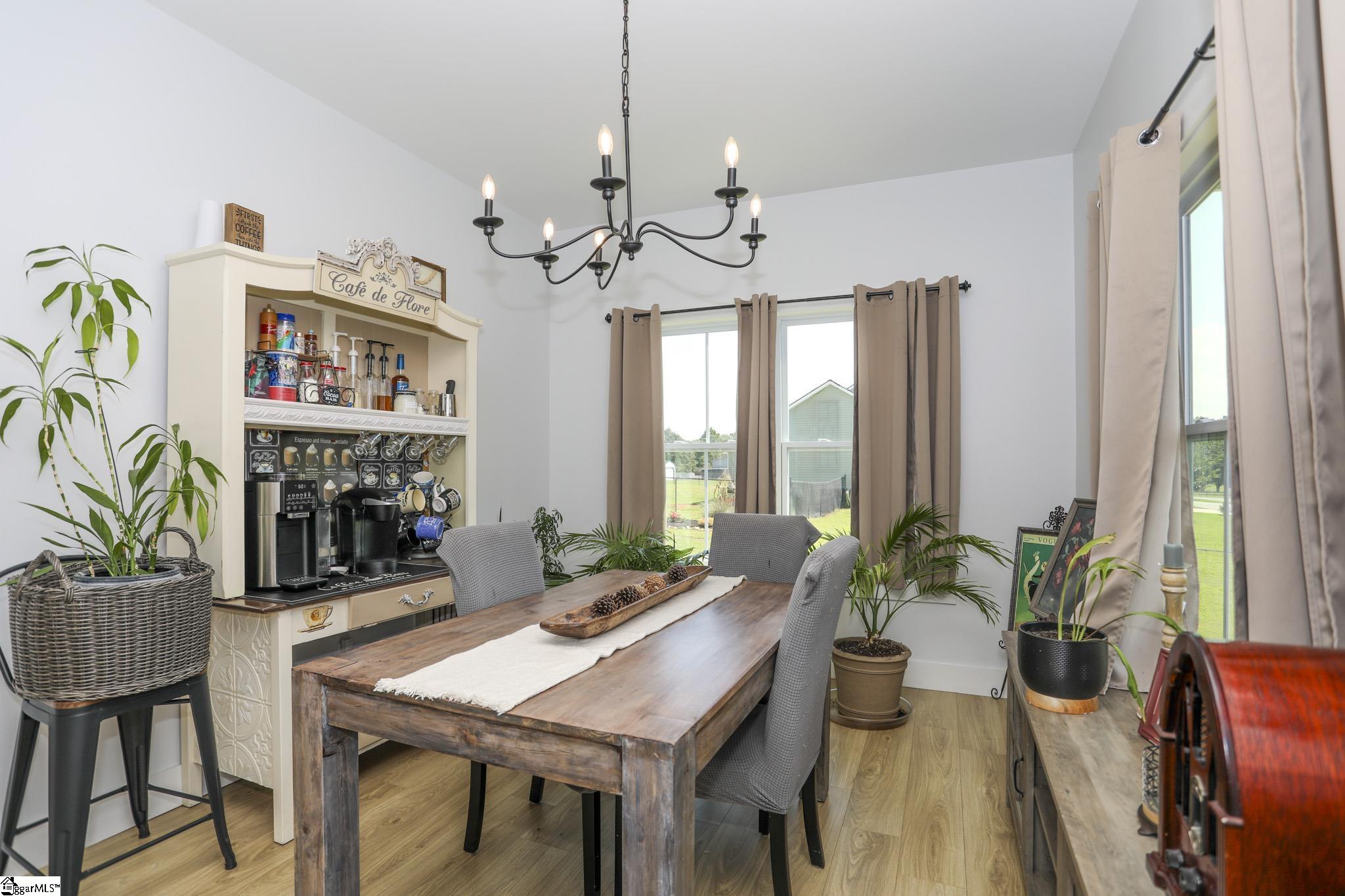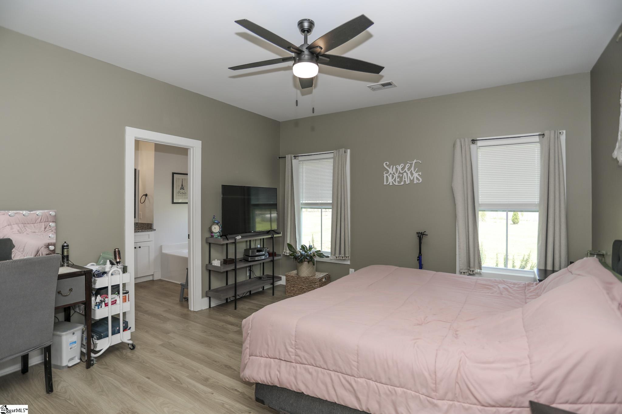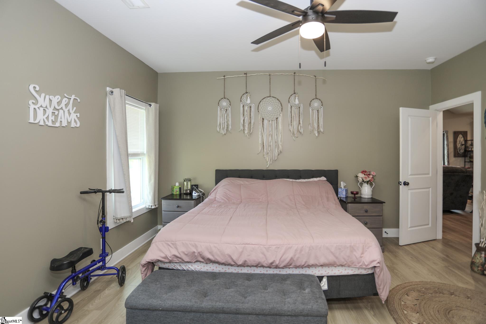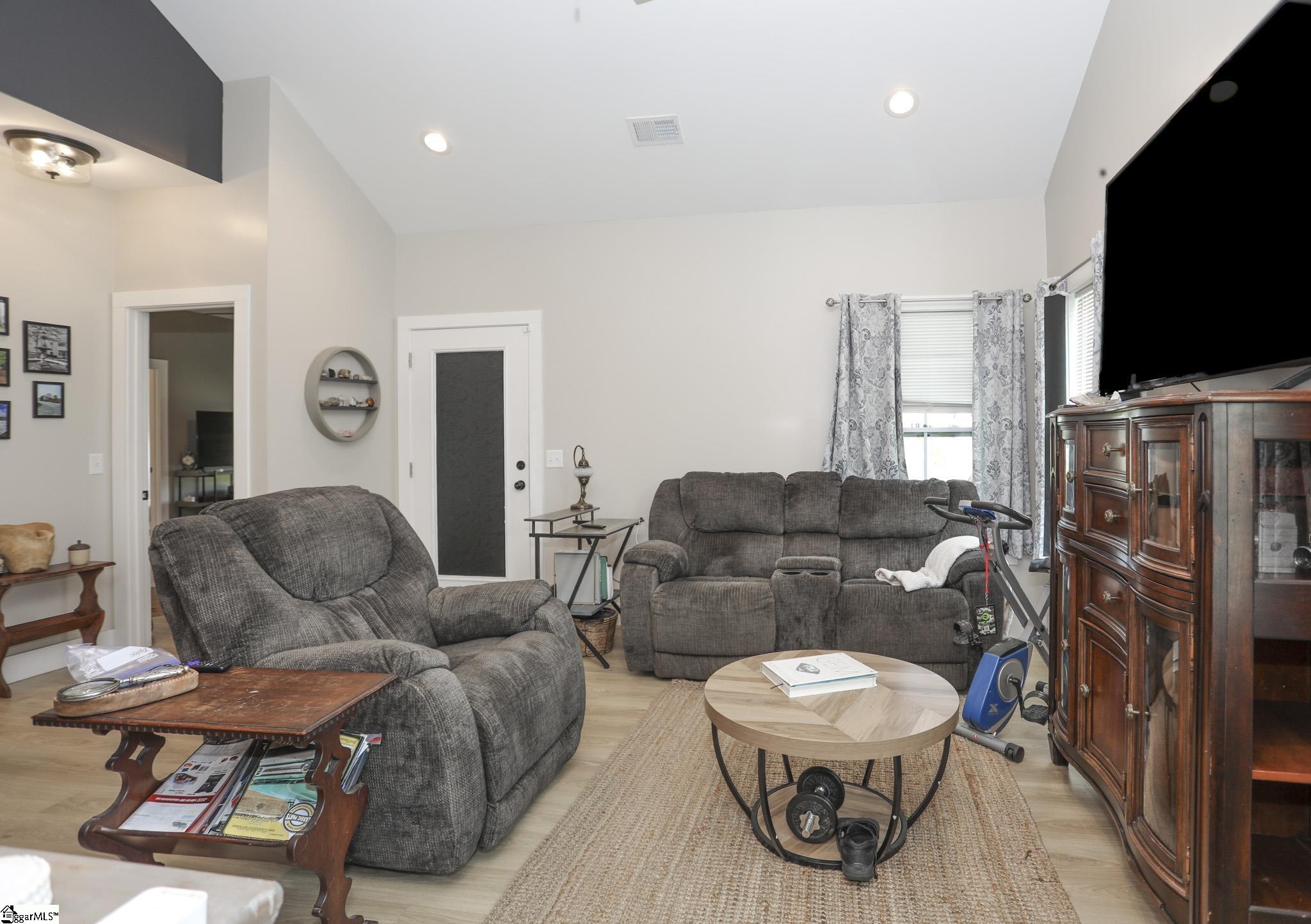 Welcome to 3796 Camp Road, a 3-bedroom, 2-bath ranch-style home on over an acre of level land with no HOA! Located in the heart of Greer, this single-level residence blends functionality, modern finishes, and wide-open space both inside and out. As you arrive, you’ll be greeted by a charming front porch and a 2-car garage with a yard door for added convenience. Step inside to discover an open floor plan with smooth ceilings, luxury laminate flooring in the main areas, and natural light throughout. The spacious living room seamlessly connects to the kitchen, which features granite countertops, soft-close cabinetry, stainless steel appliances, a walk-in pantry, and a center island perfect for gathering. The split-bedroom layout ensures privacy for the spacious primary suite, which includes a walk-in closet, dual sinks, a tiled shower, and a separate soaking tub. Two additional bedrooms and a full bath are positioned on the opposite side of the home, ideal for guests or family. Enjoy peaceful evenings on the covered back porch overlooking your expansive backyard with endless possibilities. Add a garden, pool, or workshop with no restrictions. Located just 15 minutes to Downtown Greer and 25 minutes to GSP Airport, this home is move-in ready and waiting for you!