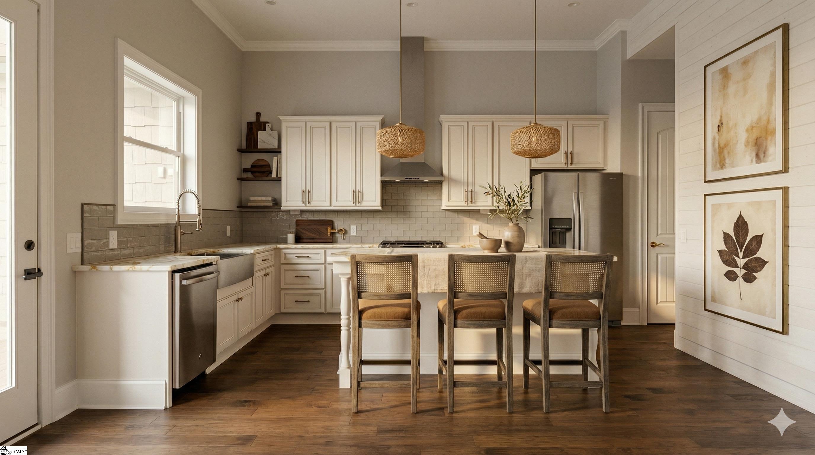 Morning light filters through tall windows, settling softly across wide-plank floors as the fire begins to glow—an everyday moment that quietly defines life along this private half-acre within The Cliffs at Glassy. Here, architecture is not about excess, but intention. A refined 2018 Craftsman silhouette, grounded by stone and softened by its natural surroundings, unfolds into interiors where volume, light, and proportion are carefully balanced. Ceilings rise just enough to create presence without losing warmth, while the home’s open plan is shaped with a sense of rhythm—spaces flowing easily, yet never without purpose. At its center, the great room serves as both gathering place and anchor. A floor-to-ceiling stone fireplace introduces texture and permanence, while expansive windows invite the outdoors in, shifting with the seasons and the changing mountain light. The kitchen is quietly confident—designed for use rather than display. A substantial granite island becomes the natural place to gather, while the farmhouse sink frames views beyond the glass. Gas cooking, a vented hood, and layered storage—including a walk-in pantry and additional coffee bar—create a space that supports both daily rituals and unhurried entertaining. Subtle details—shiplap, tailored millwork, and clean transitions—lend a sense of craftsmanship without distraction. The home’s single-level design is perhaps its greatest luxury. The primary suite is set apart, offering a sense of retreat defined by space, light, and calm. Dual closets and a well-appointed bath—complete with soaking tub and separate shower—create a setting that feels restorative rather than routine. Guest accommodations are equally considered. Two bedrooms with private ensuite baths allow for comfort and independence, while a fourth room adapts easily as a study, reading room, or quiet escape. Outdoors, the experience continues with intention. A covered rear porch overlooks a lush, irrigated landscape—private, peaceful, and alive with possibility. There is space here for gardening, for long evenings spent grilling and dining, or simply for stillness. The wraparound front porch offers a second vantage point, extending the home’s connection to its setting. Life within Glassy moves at its own pace. A short walk leads to the clubhouse and golf course, while the nearby chapel—set high along the ridgeline—becomes a place for sunset views and quiet reflection. At an elevation above 2,500 feet, the air feels cooler, the seasons more pronounced, and the pace intentionally slower. For those who choose to engage more fully, membership opportunities connect this home to all seven Cliffs communities—linking mountain, lake, valley, and vineyard experiences into a broader lifestyle defined by access, variety, and place. This is not simply a home—it is a setting for a more deliberate way of living.
