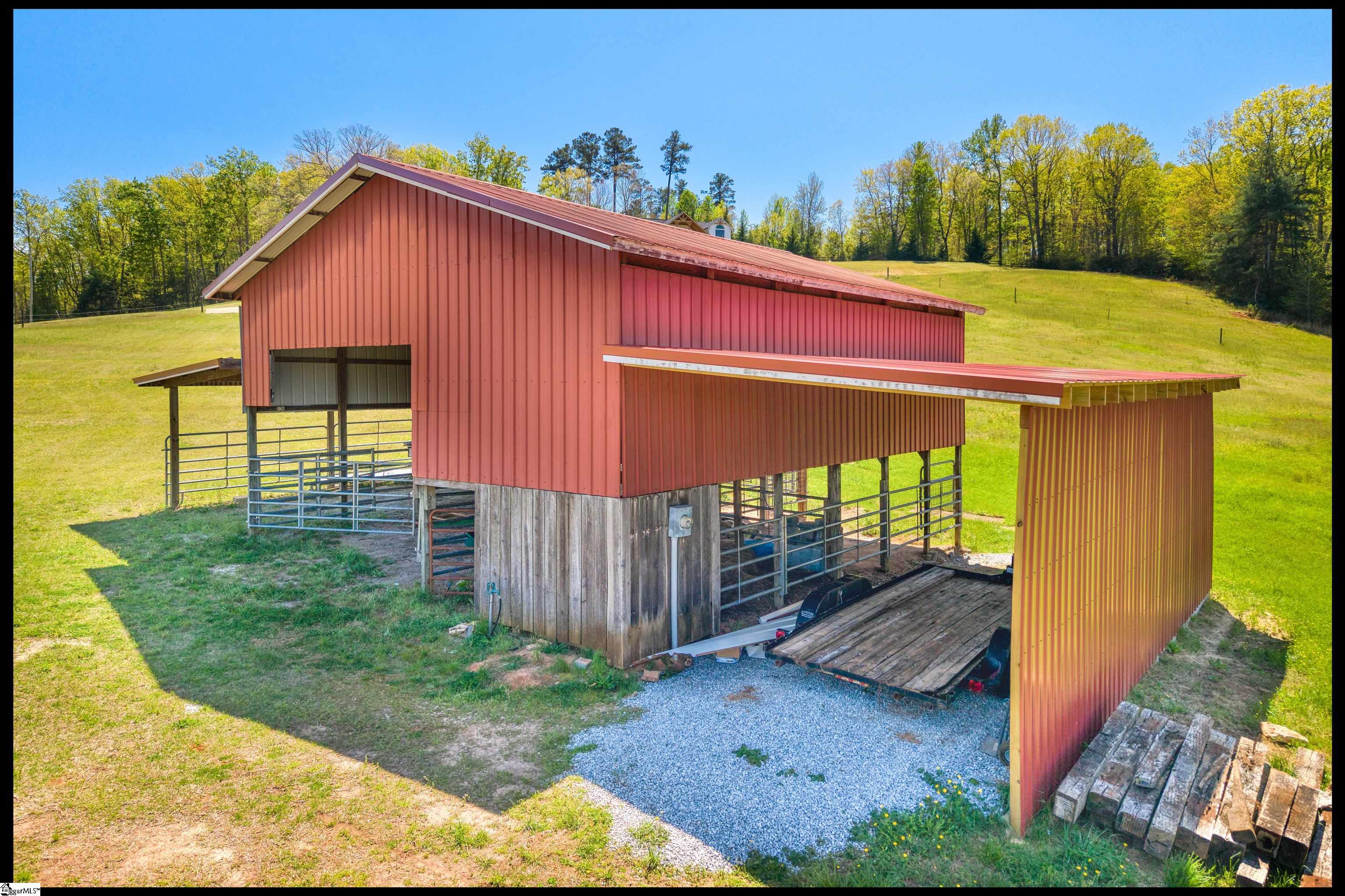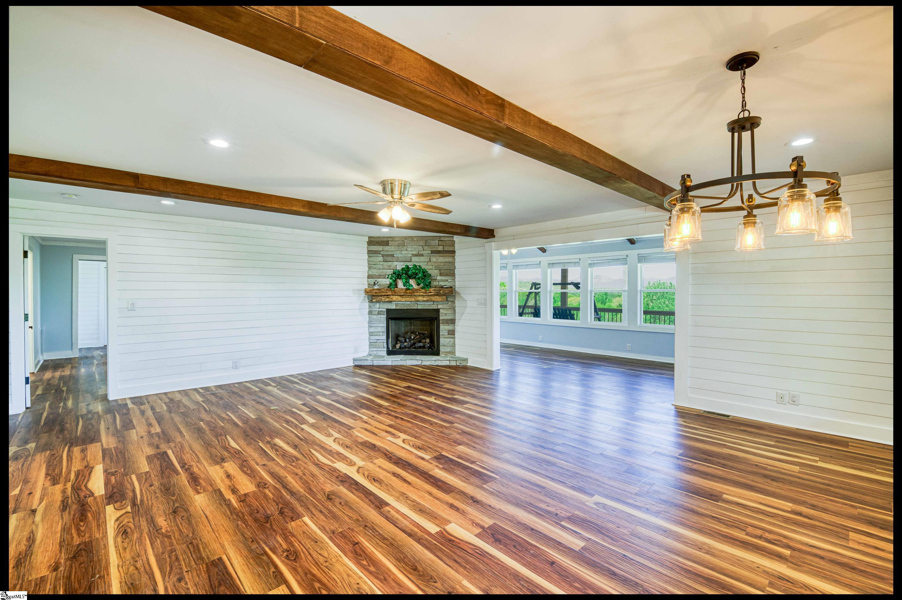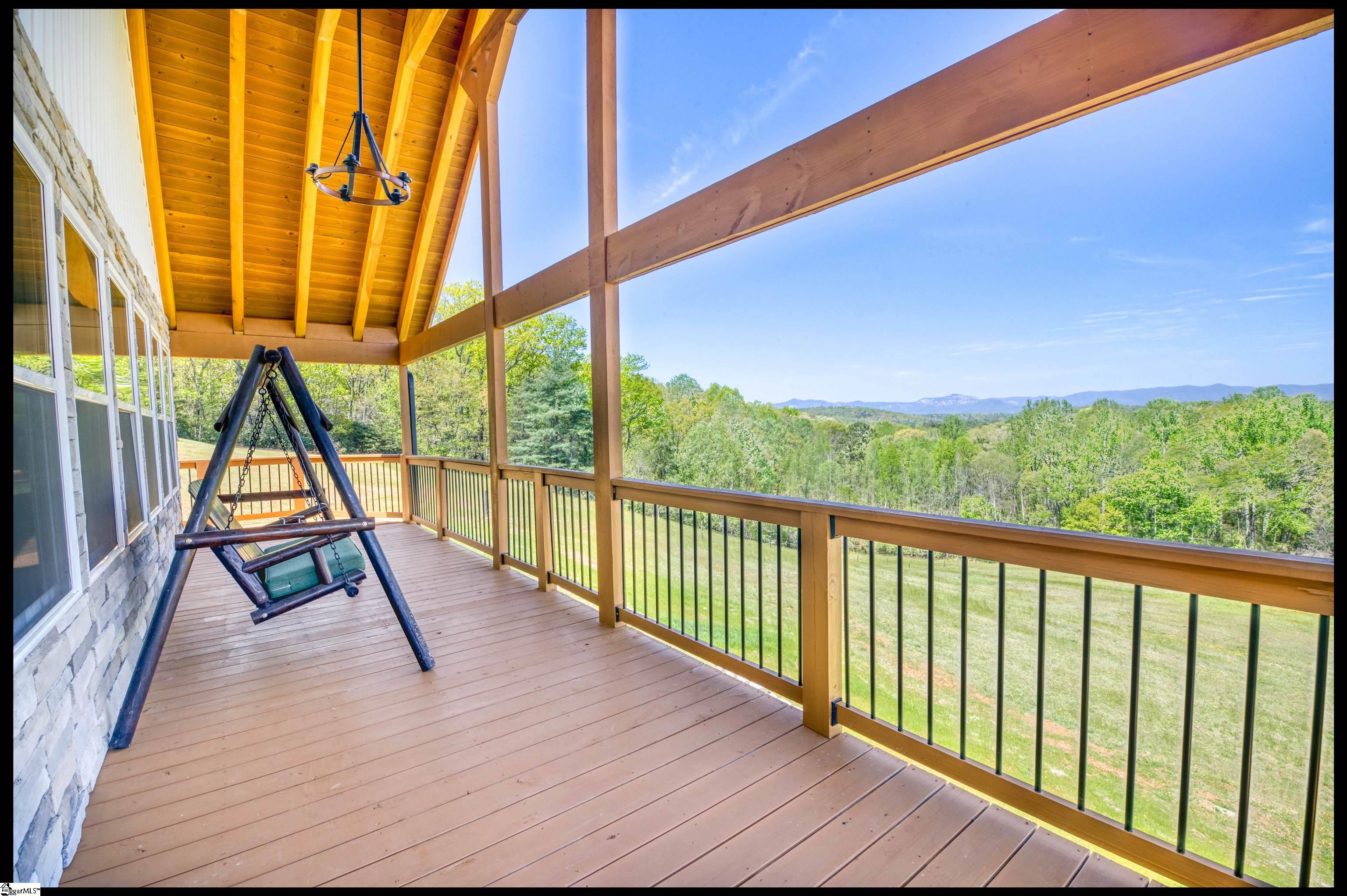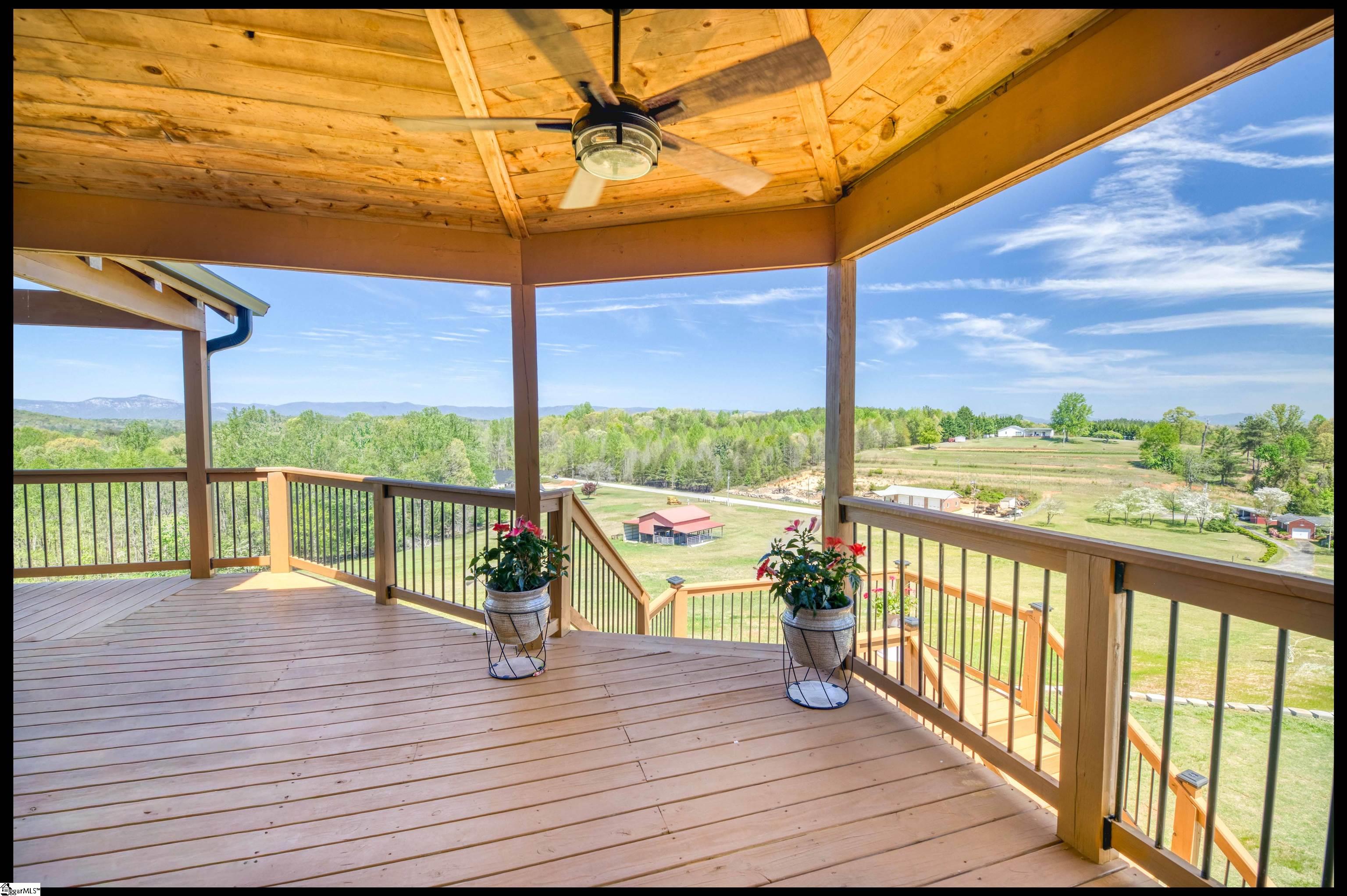 Welcome to 3803 Dacusville Highway, where rustic farmhouse charm meets modern comfort on approximately 11.2 acres of beautiful rolling pasture land in Easley, South Carolina. Perched atop a scenic hill, this thoughtfully remodeled home offers breathtaking mountain views, peaceful surroundings, and the perfect balance of privacy and functionality. A welcoming wraparound porch spans much of the home, providing the ideal setting to enjoy panoramic views of the mountains, pasture, and unforgettable sunsets. Inside, rich hardwood floors and abundant natural light create a warm and inviting atmosphere throughout the main level. The open concept living area features exposed wood beams, shiplap accents, and a gas stone fireplace that serves as a cozy focal point while seamlessly connecting the living, dining, and kitchen spaces. The kitchen is designed for both everyday living and entertaining, offering white cabinetry, granite countertops, built in appliances including a wall oven and microwave, a decorative tile backsplash, and a dedicated pantry for convenient storage. A bright sunroom filled with natural light showcases stunning views of the surrounding landscape and provides direct access to the porch, creating a peaceful space to relax and unwind. The main level primary suite offers a spacious retreat with hardwood flooring and private access to the sunroom. The luxurious en suite bathroom features dual vanities, marble style tile flooring, a frameless glass walk in rain shower with bench, a freestanding soaking tub, and two large walk in closets. An additional flex room on the main level provides versatility for a home office, nursery, or fitness space. Upstairs, you will find two additional bedrooms along with a full bathroom and a bonus room attached to one of the bedrooms, offering flexible space for a sitting area, office, or recreational use. The oversized garage is designed with both convenience and functionality in mind, providing space for up to four vehicles along with a half bath, sink, durable finished flooring, and ample electrical outlets. An electric lift offers easy access between the garage and main living area. Outside, the property features open pastureland and a spacious barn with loft, power, and water already in place, making it well suited for horses, livestock, or hobby farming. Portions of the pasture fencing are currently installed, and the owner is willing to consider an allowance for completion of fencing along the front of the property and driveway as illustrated in photos. Originally an older farmhouse, the home has been carefully expanded and updated while preserving elements of its historic character. The result is a unique property that combines timeless farmhouse style with modern amenities and comfortable living. With scenic views, functional acreage, and room to grow, 3803 Dacusville Highway offers a rare opportunity to enjoy peaceful country living just minutes from Easley, Greenville, and the natural beauty of the Upstate.