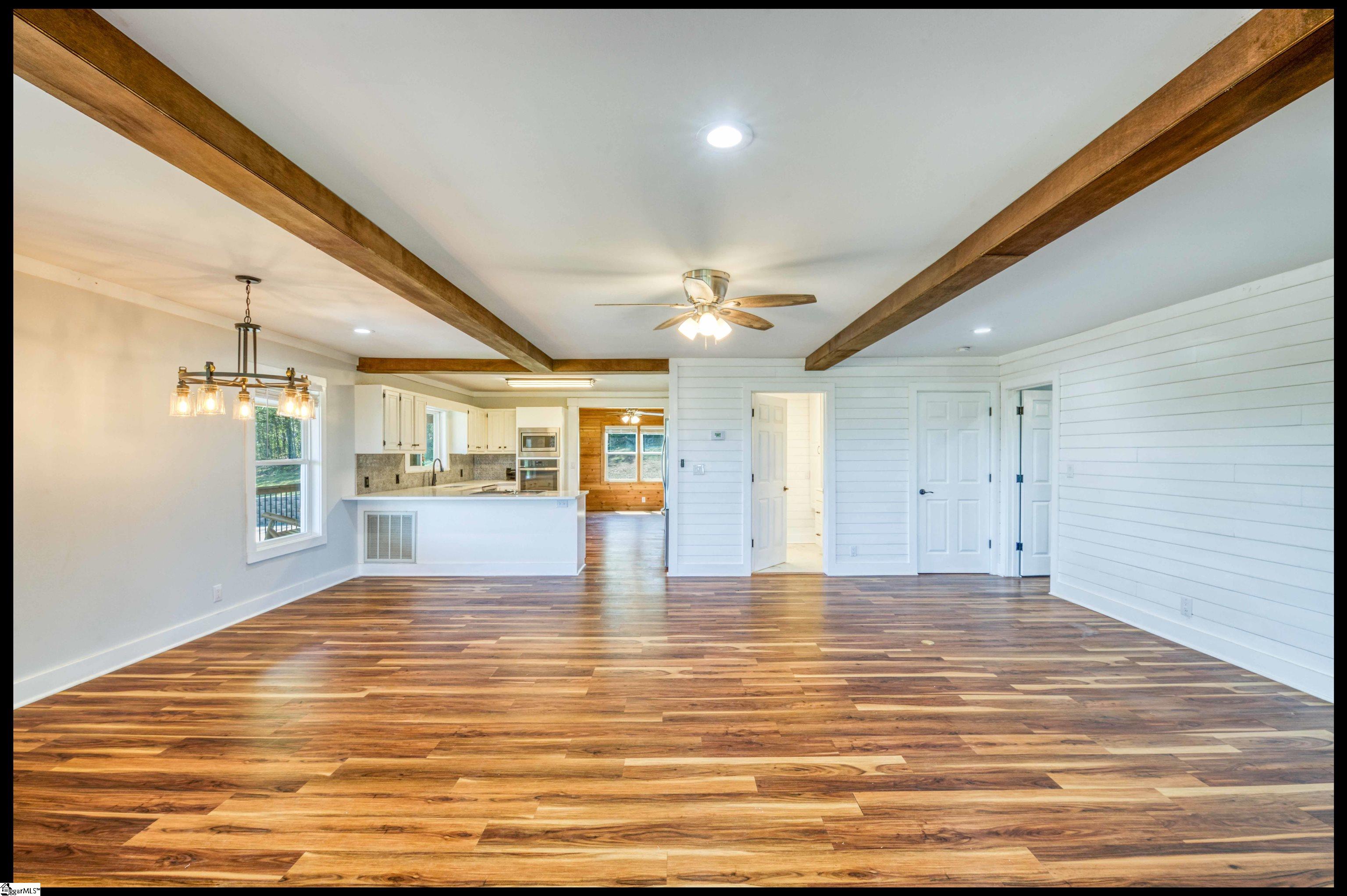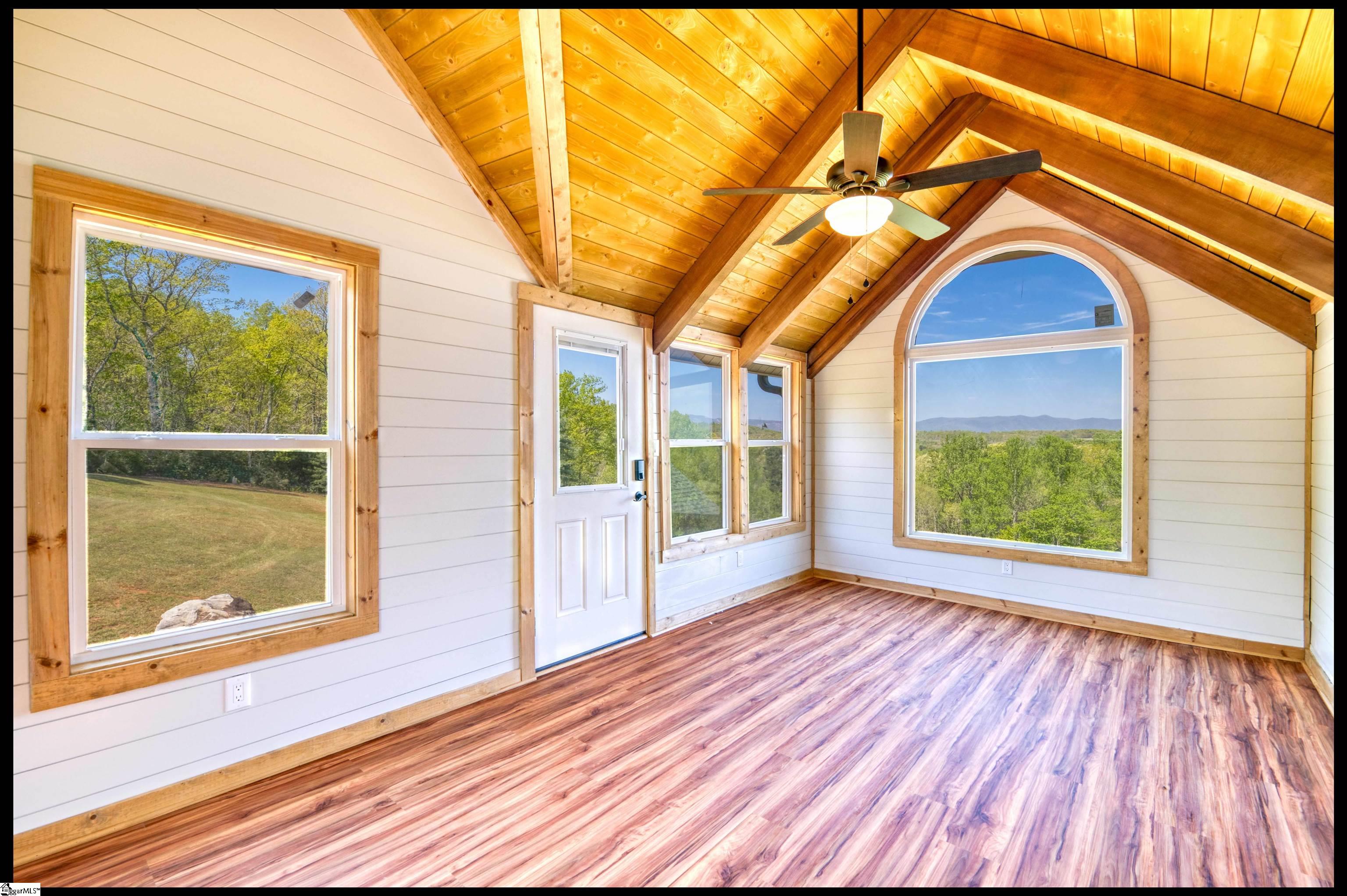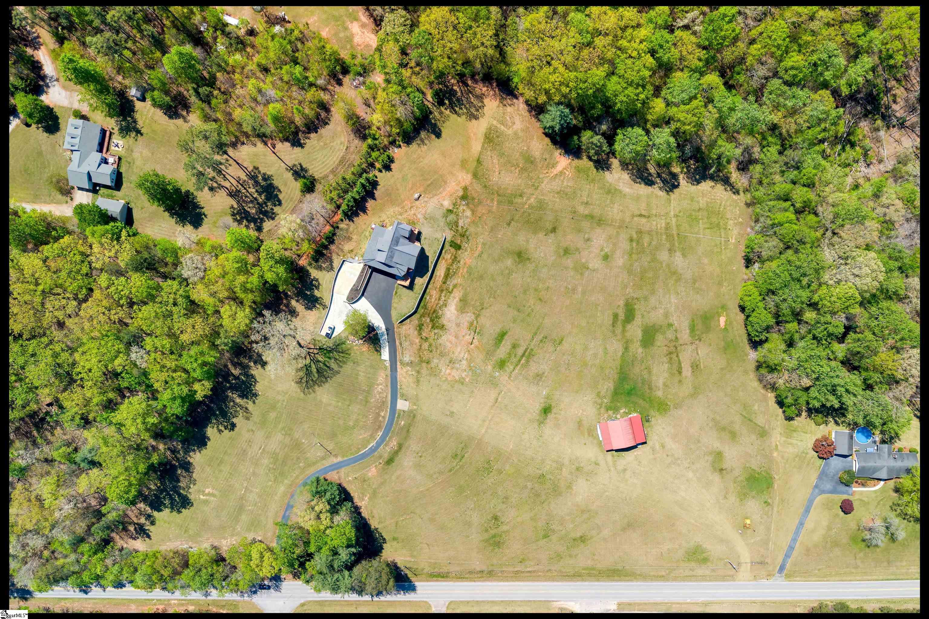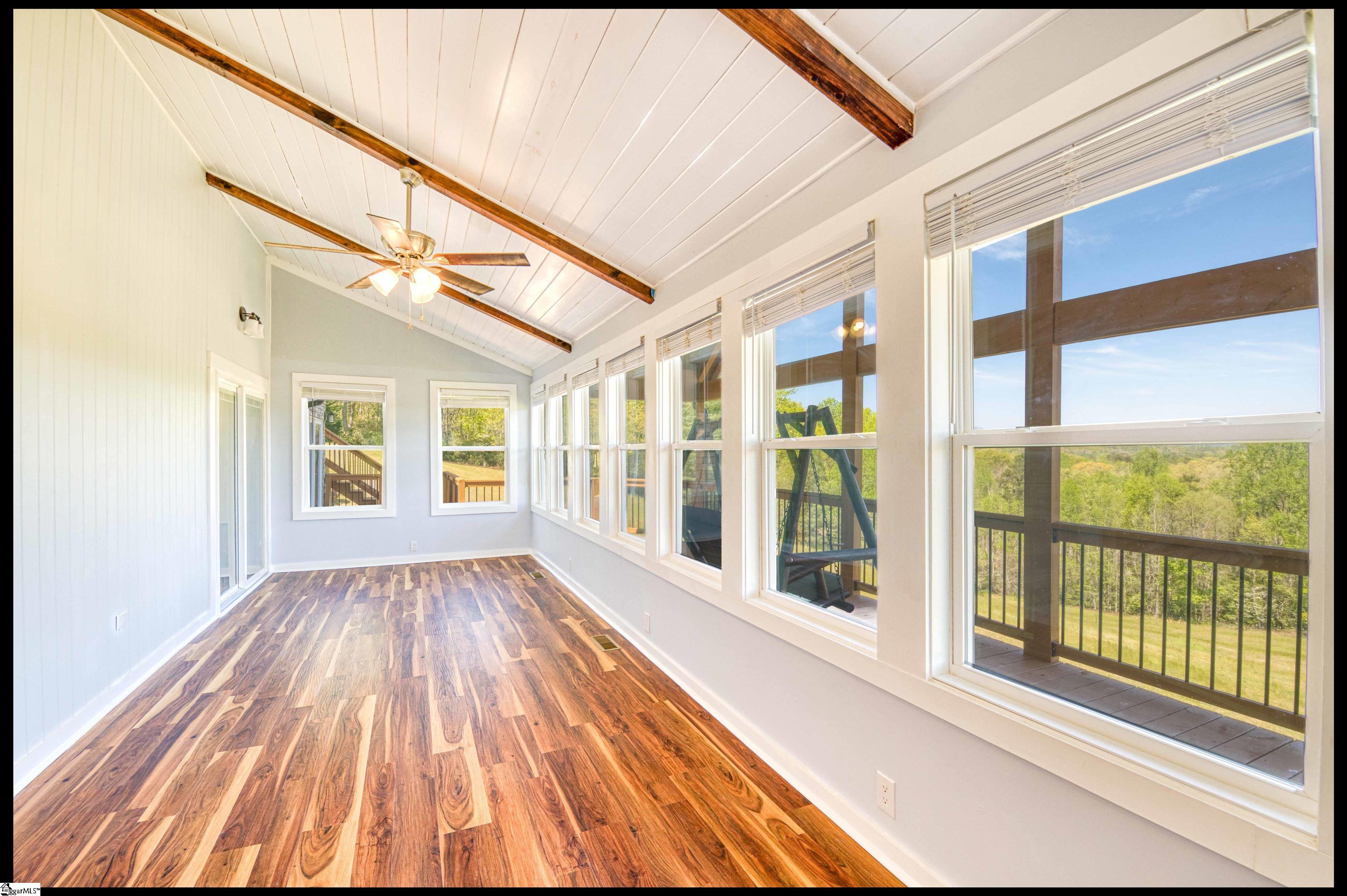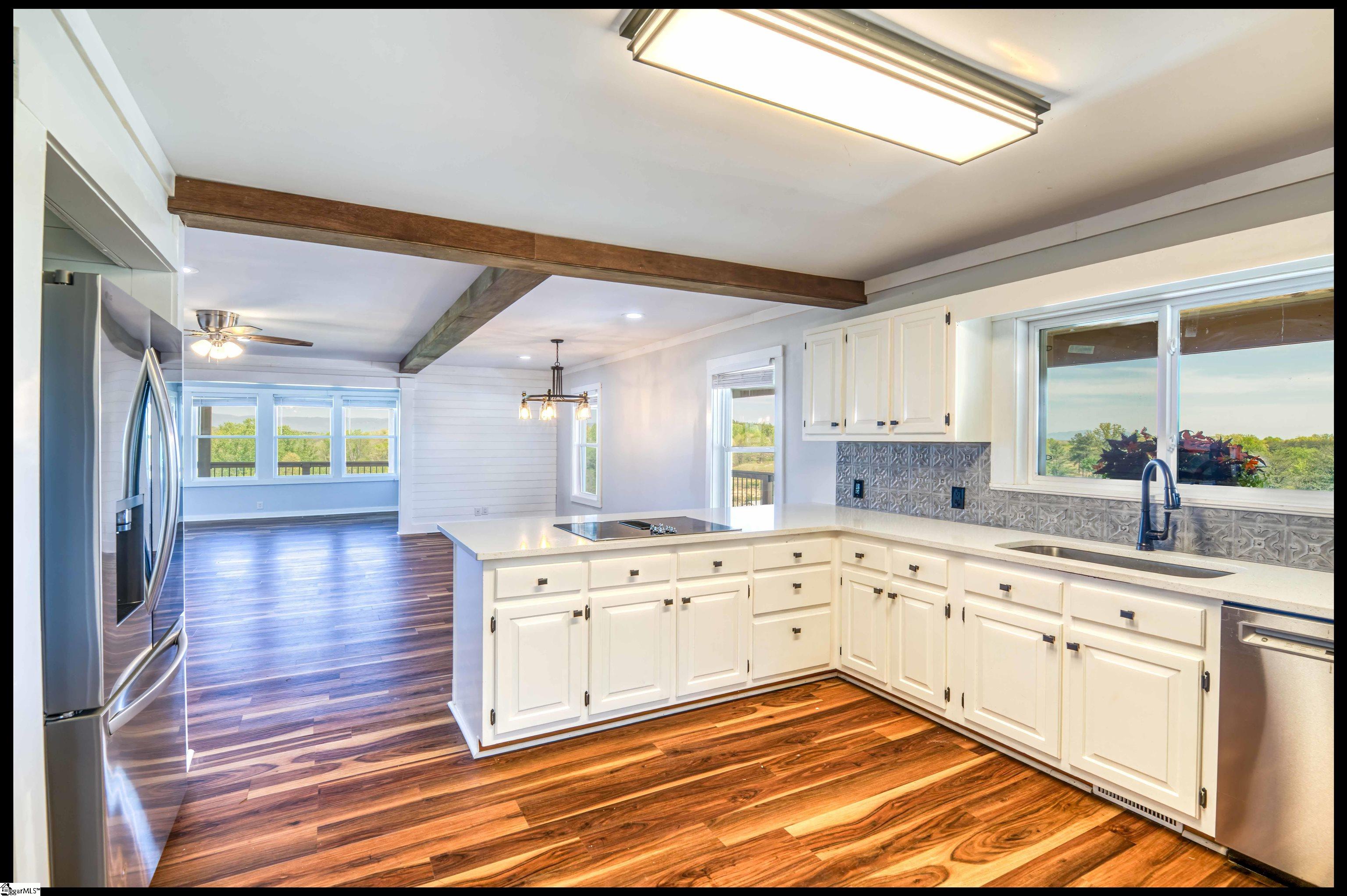 Welcome to 3803 Dacusville Highway, where rustic farmhouse charm meets modern comfort on approximately 11.2 acres of beautiful rolling pasture land in Easley, South Carolina. Perched atop a scenic hill, this thoughtfully remodeled home offers breathtaking mountain views, peaceful surroundings, and the perfect balance of privacy and functionality. A welcoming wraparound porch spans much of the home, providing the ideal setting to enjoy panoramic views of the mountains, pasture, and unforgettable sunsets. Inside, rich hardwood floors and abundant natural light create a warm and inviting atmosphere throughout the main level. The open concept living area features exposed wood beams, shiplap accents, and a gas stone fireplace that serves as a cozy focal point while seamlessly connecting the living, dining, and kitchen spaces. The kitchen is designed for both everyday living and entertaining, offering white cabinetry, granite countertops, built in appliances including a wall oven and microwave, a decorative tile backsplash, and a dedicated pantry for convenient storage. A bright sunroom filled with natural light showcases stunning views of the surrounding landscape and provides direct access to the porch, creating a peaceful space to relax and unwind. The main level primary suite offers a spacious retreat with hardwood flooring and private access to the sunroom. The luxurious en suite bathroom features dual vanities, marble style tile flooring, a frameless glass walk in rain shower with bench, a freestanding soaking tub, and two large walk in closets. An additional flex room on the main level provides versatility for a home office, nursery, or fitness space. Upstairs, you will find two additional bedrooms along with a full bathroom and a bonus room attached to one of the bedrooms, offering flexible space for a sitting area, office, or recreational use. The oversized garage is designed with both convenience and functionality in mind, providing space for up to four vehicles along with a half bath, sink, durable finished flooring, and ample electrical outlets. An electric lift offers easy access between the garage and main living area. Outside, the property features open pastureland and a spacious barn with loft, power, and water already in place, making it well suited for horses, livestock, or hobby farming. Portions of the pasture fencing are currently installed, and the owner is willing to consider an allowance for completion of fencing along the front of the property and driveway as illustrated in photos. Originally an older farmhouse, the home has been carefully expanded and updated while preserving elements of its historic character. The result is a unique property that combines timeless farmhouse style with modern amenities and comfortable living. With scenic views, functional acreage, and room to grow, 3803 Dacusville Highway offers a rare opportunity to enjoy peaceful country living just minutes from Easley, Greenville, and the natural beauty of the Upstate.