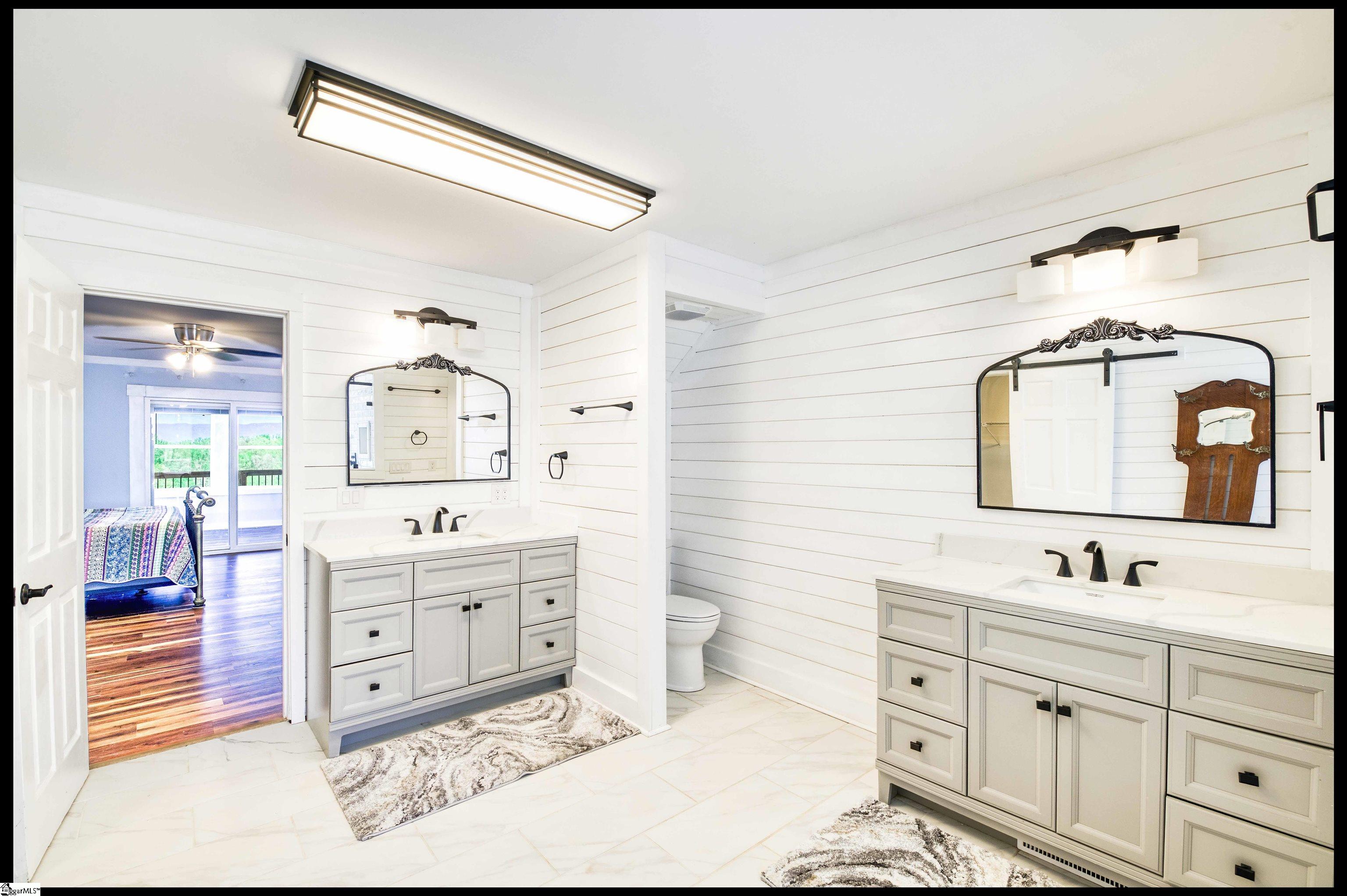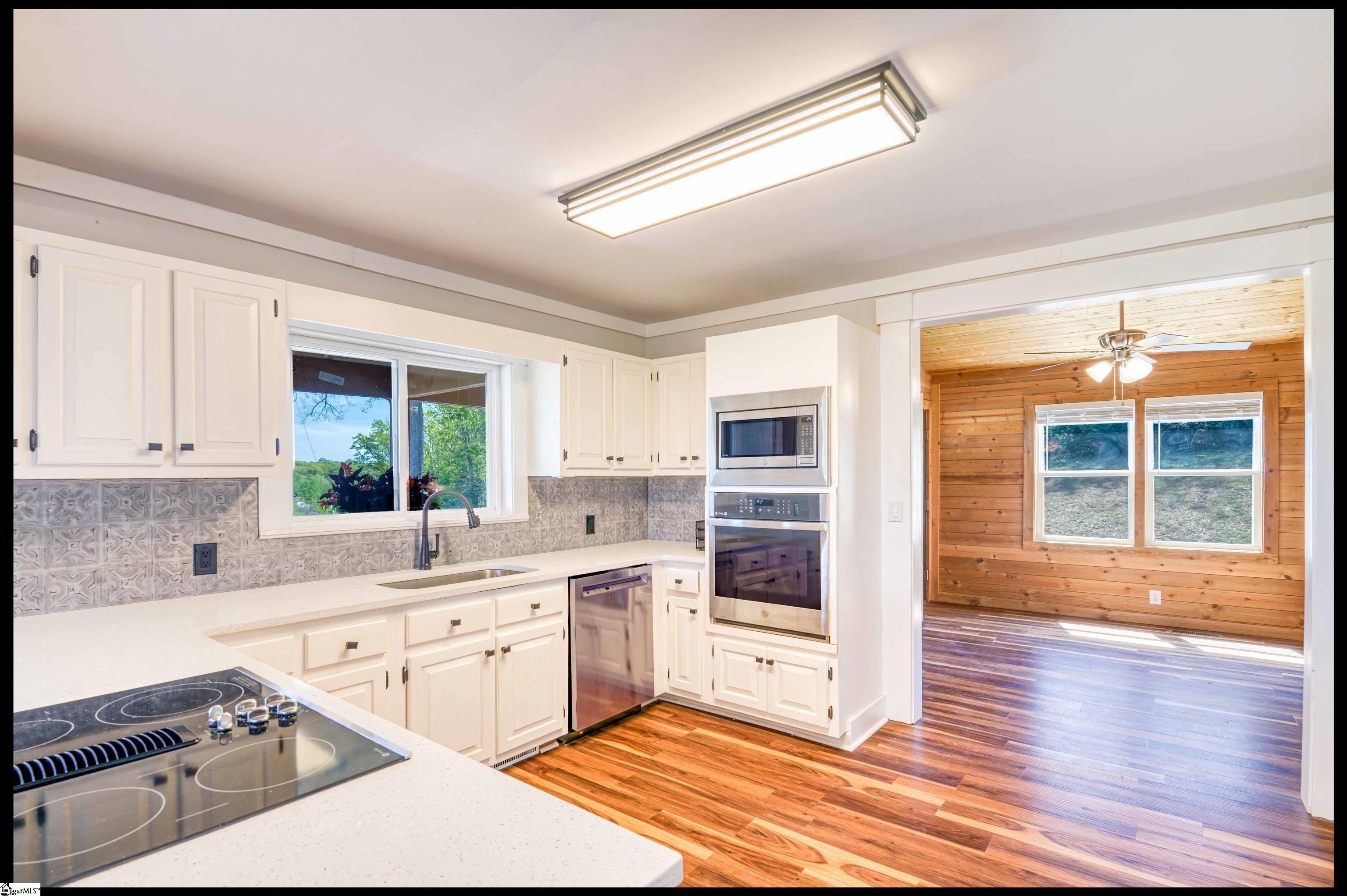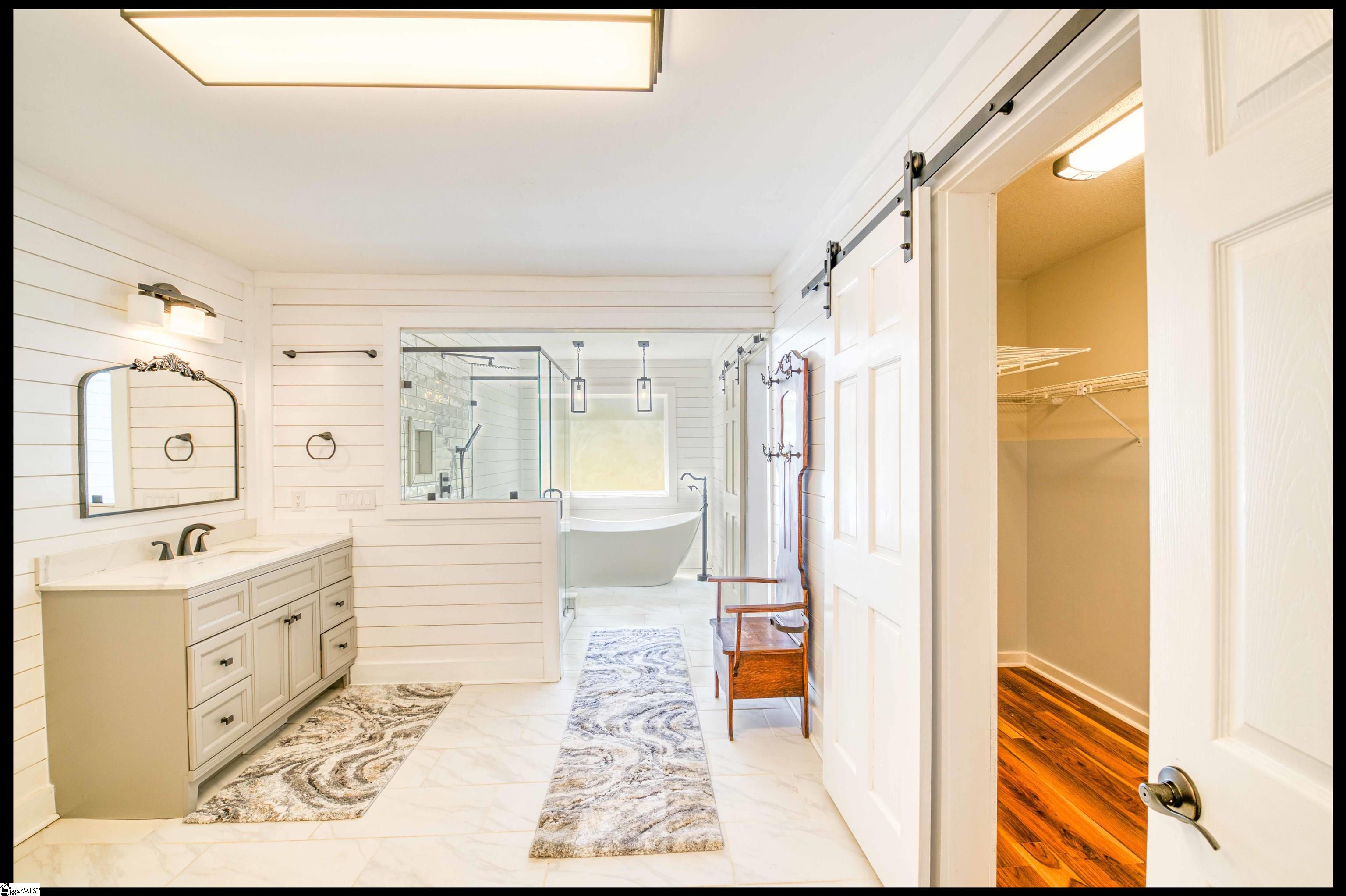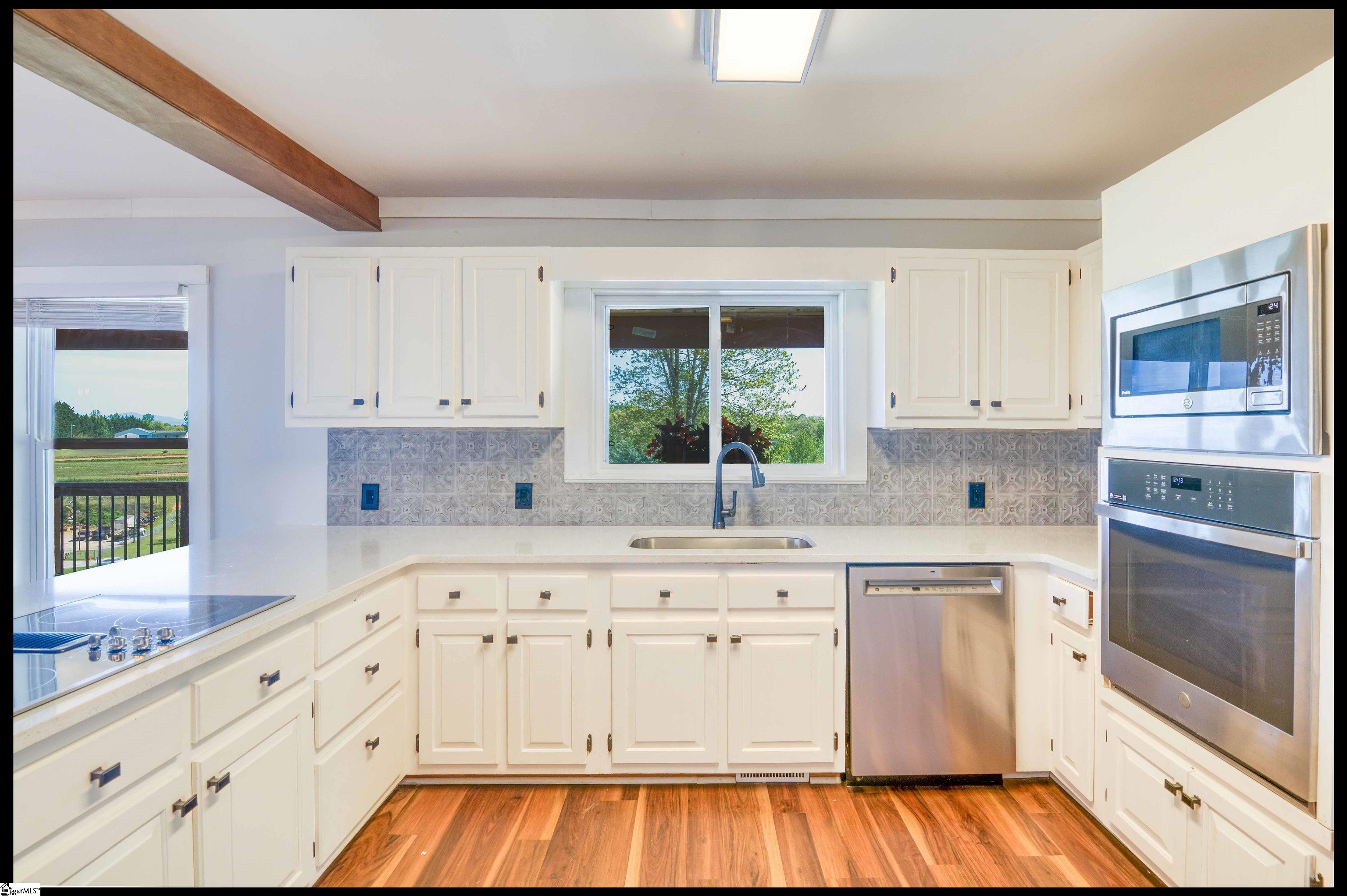 Welcome to 3803 Dacusville Highway, where rustic farmhouse charm meets modern comfort on approximately 11.2 acres of beautiful rolling pasture land in Easley, South Carolina. Perched atop a scenic hill, this thoughtfully remodeled home offers breathtaking mountain views, peaceful surroundings, and the perfect balance of privacy and functionality. A welcoming wraparound porch spans much of the home, providing the ideal setting to enjoy panoramic views of the mountains, pasture, and unforgettable sunsets. Inside, rich hardwood floors and abundant natural light create a warm and inviting atmosphere throughout the main level. The open concept living area features exposed wood beams, shiplap accents, and a gas stone fireplace that serves as a cozy focal point while seamlessly connecting the living, dining, and kitchen spaces. The kitchen is designed for both everyday living and entertaining, offering white cabinetry, granite countertops, built in appliances including a wall oven and microwave, a decorative tile backsplash, and a dedicated pantry for convenient storage. A bright sunroom filled with natural light showcases stunning views of the surrounding landscape and provides direct access to the porch, creating a peaceful space to relax and unwind. The main level primary suite offers a spacious retreat with hardwood flooring and private access to the sunroom. The luxurious en suite bathroom features dual vanities, marble style tile flooring, a frameless glass walk in rain shower with bench, a freestanding soaking tub, and two large walk in closets. An additional flex room on the main level provides versatility for a home office, nursery, or fitness space. Upstairs, you will find two additional bedrooms along with a full bathroom and a bonus room attached to one of the bedrooms, offering flexible space for a sitting area, office, or recreational use. The oversized garage is designed with both convenience and functionality in mind, providing space for up to four vehicles along with a half bath, sink, durable finished flooring, and ample electrical outlets. An electric lift offers easy access between the garage and main living area. Outside, the property features open pastureland and a spacious barn with loft, power, and water already in place, making it well suited for horses, livestock, or hobby farming. Portions of the pasture fencing are currently installed, and the owner is willing to consider an allowance for completion of fencing along the front of the property and driveway as illustrated in photos. Originally an older farmhouse, the home has been carefully expanded and updated while preserving elements of its historic character. The result is a unique property that combines timeless farmhouse style with modern amenities and comfortable living. With scenic views, functional acreage, and room to grow, 3803 Dacusville Highway offers a rare opportunity to enjoy peaceful country living just minutes from Easley, Greenville, and the natural beauty of the Upstate.