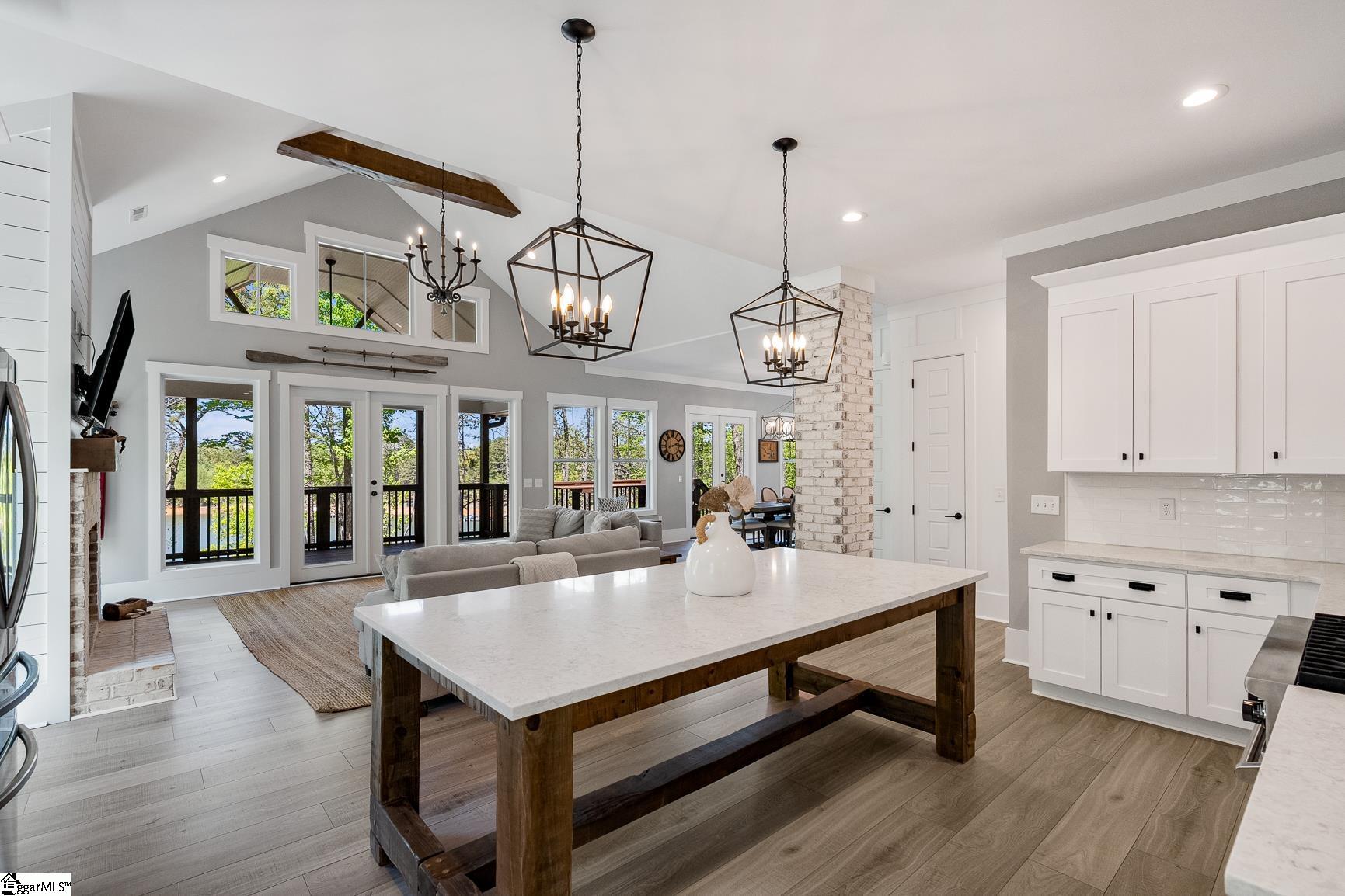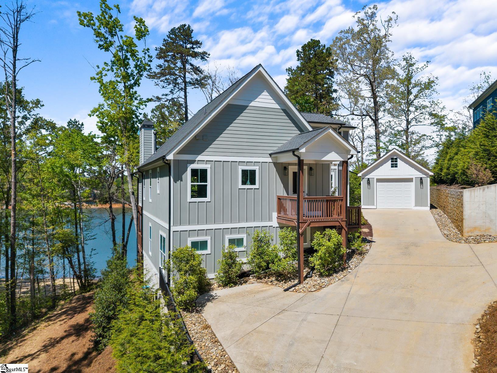 At 384 Lakemont, the lake life you’ve longed for is finally at your door. This is a lake home that’s actually ready. No projects, no punch list, no contractor’s timeline standing between you and the water. Fully furnished, this waterfront retreat is waiting for you. Leave the closing table and head straight to the dock. What makes this home exceptional is unseen in the photos. The builder who designed and constructed this home did it for his own family — this was always meant to be their retreat, and he built it accordingly. He worked with a structural engineer on everything from window placement and natural light to foundation footers well beyond what any code required, because he wasn’t building to satisfy an inspection — he was building for his peace of mind. Every behind-the-scenes decision reflects someone who had no reason to cut corners, and every reason not to. Five years later, with only twenty-five stays, this home has had time to prove the quality of its construction without accumulating the wear and tear that time typically brings. With two waterfront lots, a true rarity on Lake Hartwell, you can enjoy deep water from the dock or the sandy beach on the adjoining lot. A custom two-slip dock with boat lift features Trex decking & a stainless steel structure for longevity & stability. The outdoor living is set up & ready; sit by the firepit or lounge on a covered porch. Three barely-used grills convey and an outdoor shower on the lower deck means you’ll find little reason to go inside. Winters offer mountain views and a wood-burning outdoor fireplace on the upper porch. Inside, walls of windows keep you connected to the water — the grading of this lot was intentional, capturing the best views year-round. The primary level features a casual dining area with wet bar, mini fridge, & ice chest. The vaulted living room is anchored by a fireplace & overlooks the kitchen, complete with a custom island, a 6-burner Viking range & all the accoutrements. A room off the kitchen can become a butler’s pantry or utility space. There’s also a powder room on this level for guests. Up a few steps: a primary bedroom w/walk-in closet, en suite, and private observation balcony awaits you. The basement: with 10.5′ ceilings and expansive water views, it does NOT feel like most basements. You’ll find a den, large laundry room, a second primary bedroom with en suite, a 3rd bedroom, & a 4th bedroom with CUSTOM BUNK BEDS — 2 full beds on one side, 2 twins on the other, adjoined by a staircase. For the second-home owner: full camera coverage including the mechanical room and attic means eyes on what matters. A whole-home surge protector and smart water heater with remote capabilities make ownership simple. A detached garage handles gear and storage. A private driveway serves daily use; a construction road accommodates trailers — together, a natural circular drive. Create a cart path on the second lot for dual water access. No HOA. No short-term rental restrictions. A second lot offering privacy today and optionality tomorrow — keep it, build on it, or sell it. Close to the interstate, far enough from everything else to truly disconnect.