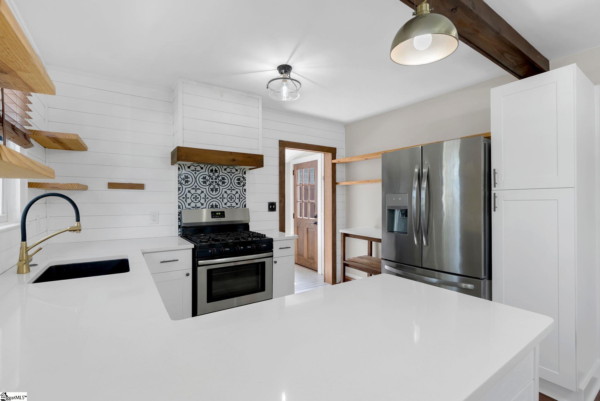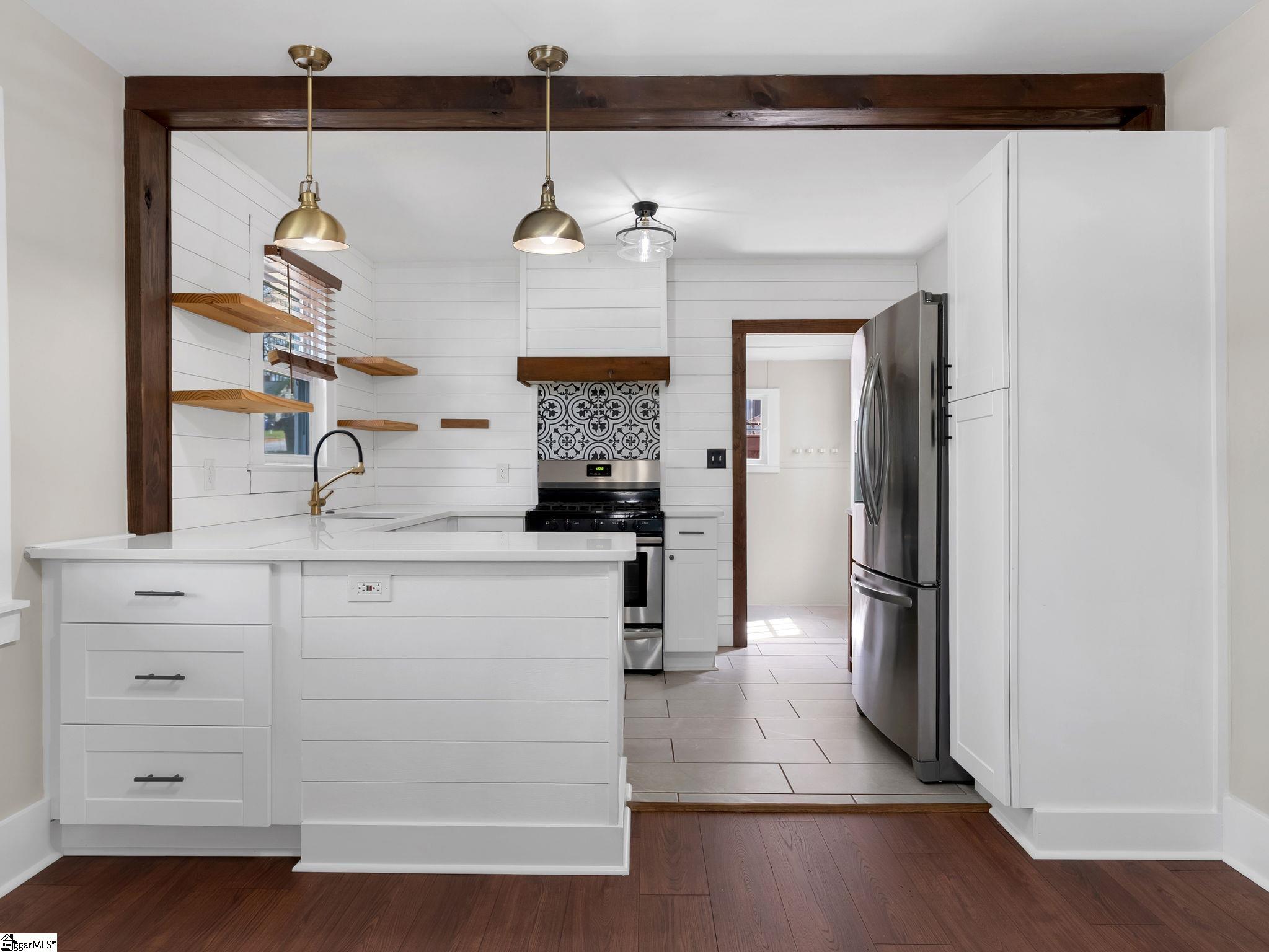 Welcome to 39 Gatling—an updated 2-bedroom, 1-bath home perfectly positioned in one of Greenville’s most desirable locations. Just minutes from downtown Greenville and with convenient access to the interstate, this home offers the ideal blend of charm, functionality, and accessibility. Inside, you’ll find a thoughtfully renovated interior featuring a comfortable living space, a dedicated office just off the living room—perfect for working from home, a nursery or a quiet retreat—and a completely redone bathroom with modern finishes. Step outside to enjoy a spacious deck overlooking a private backyard, ideal for entertaining or relaxing. The exterior has been completely refreshed with all-new landscaping, including pavers, slate chips, and outdoor lighting, creating a clean, low-maintenance, and inviting outdoor space. Whether you’re a first-time buyer, downsizing, or looking for an investment in a prime location, this Augusta Road gem checks all the boxes.