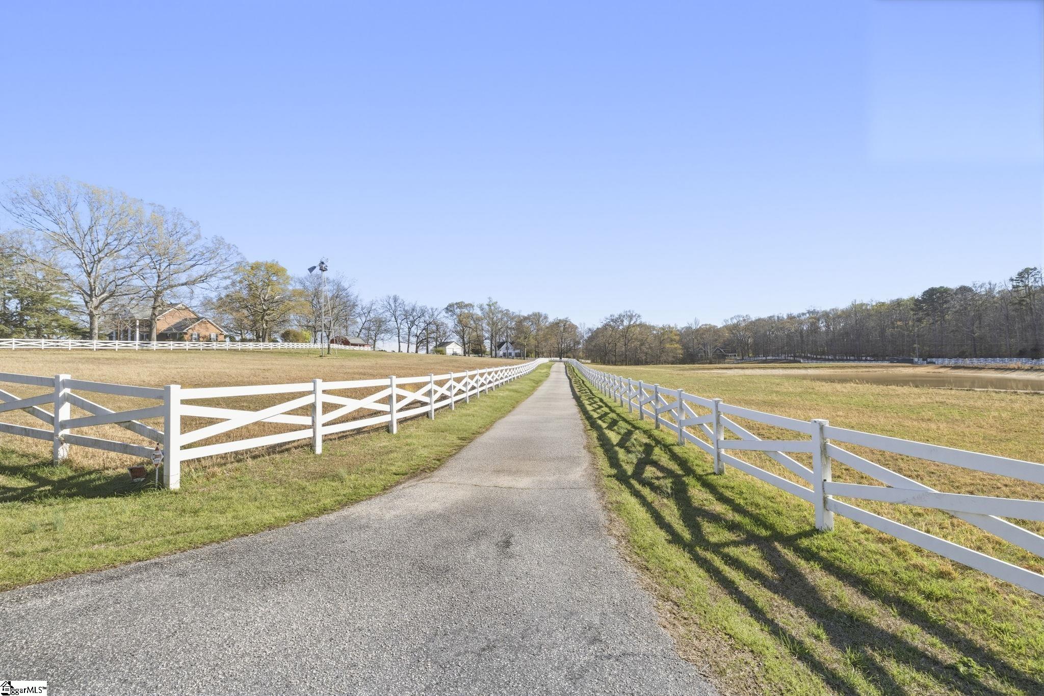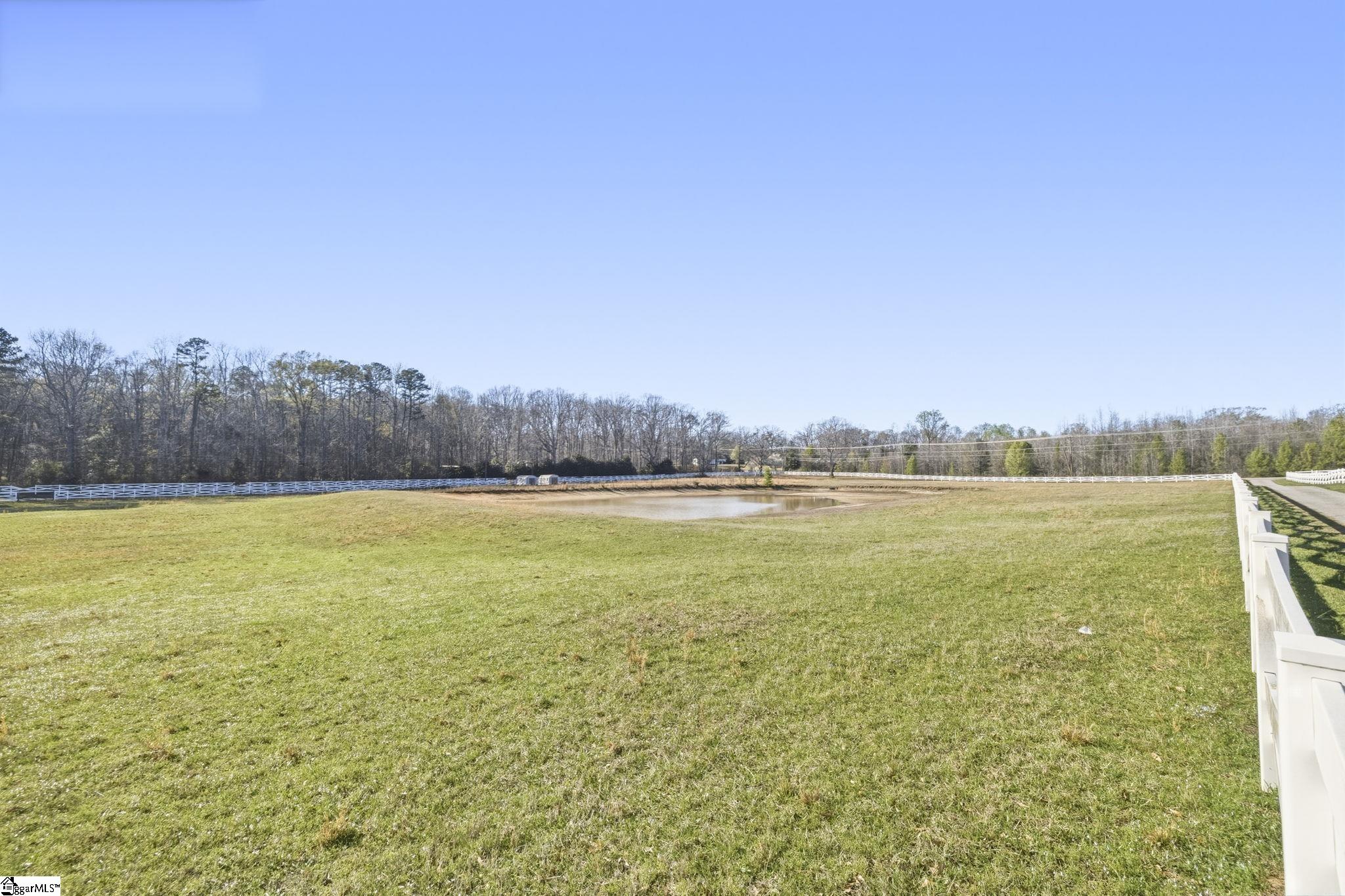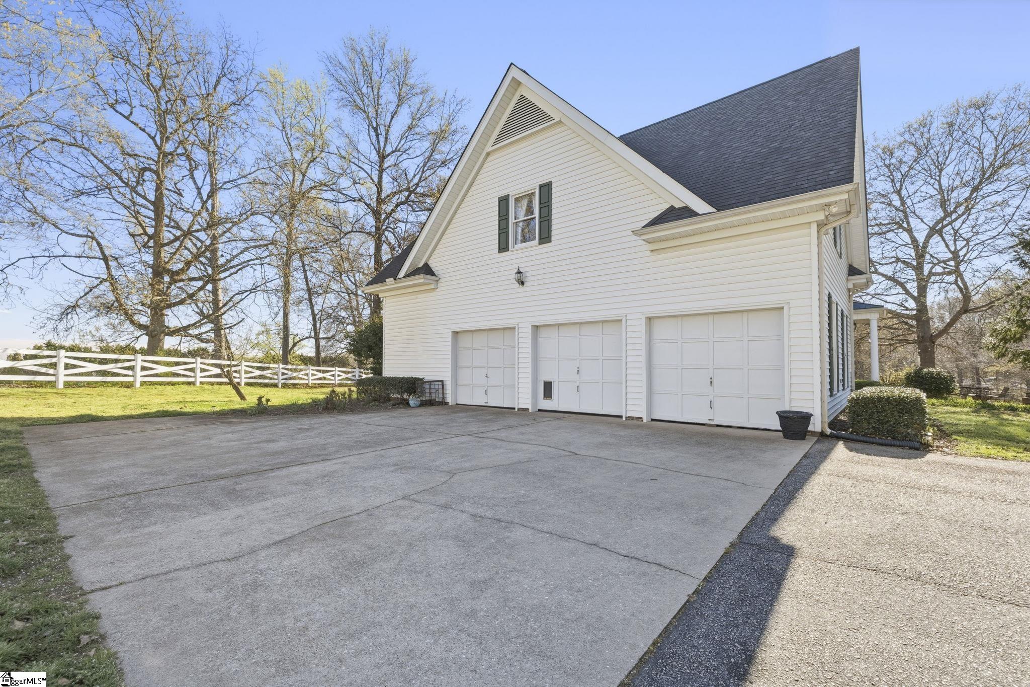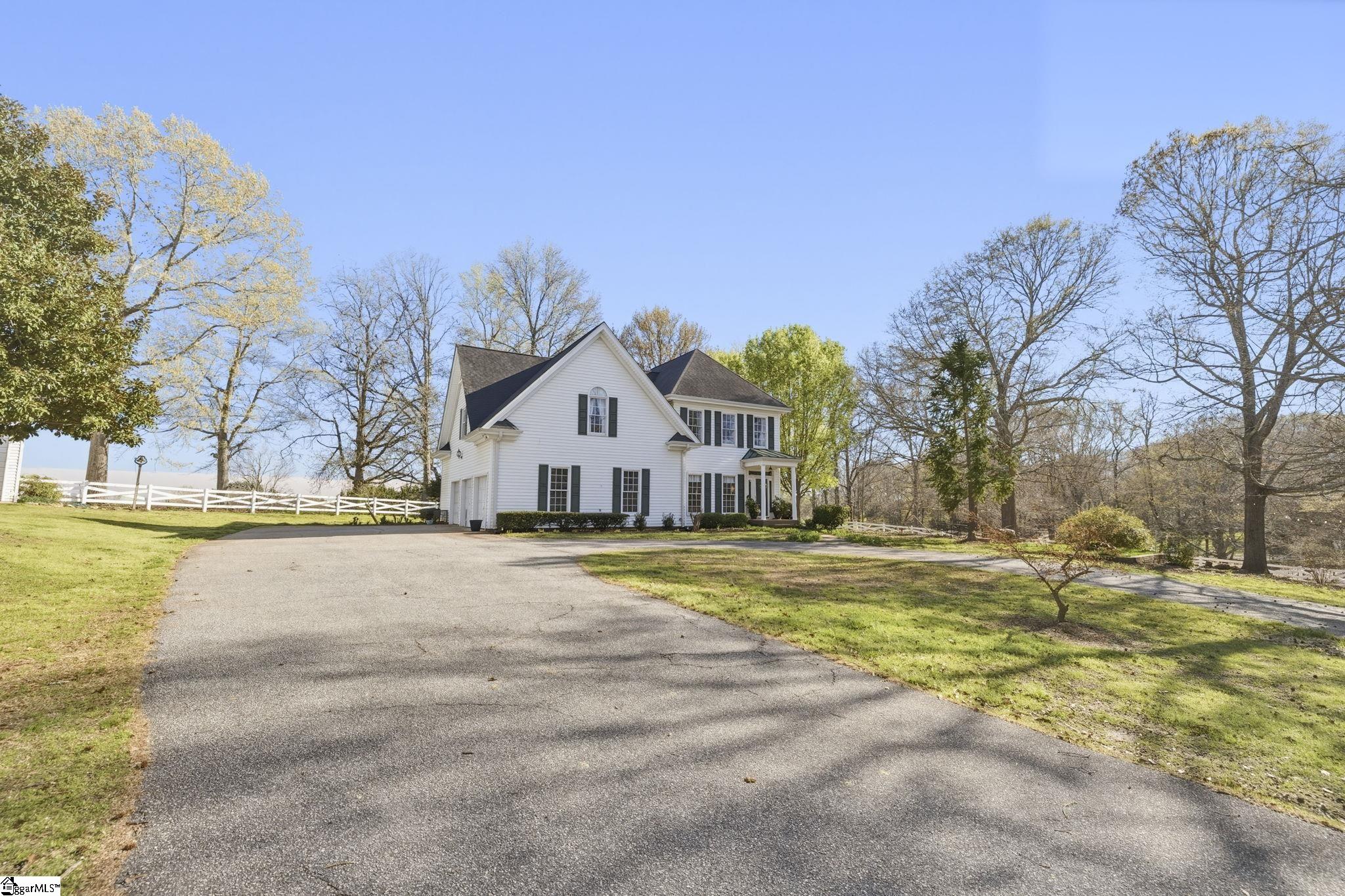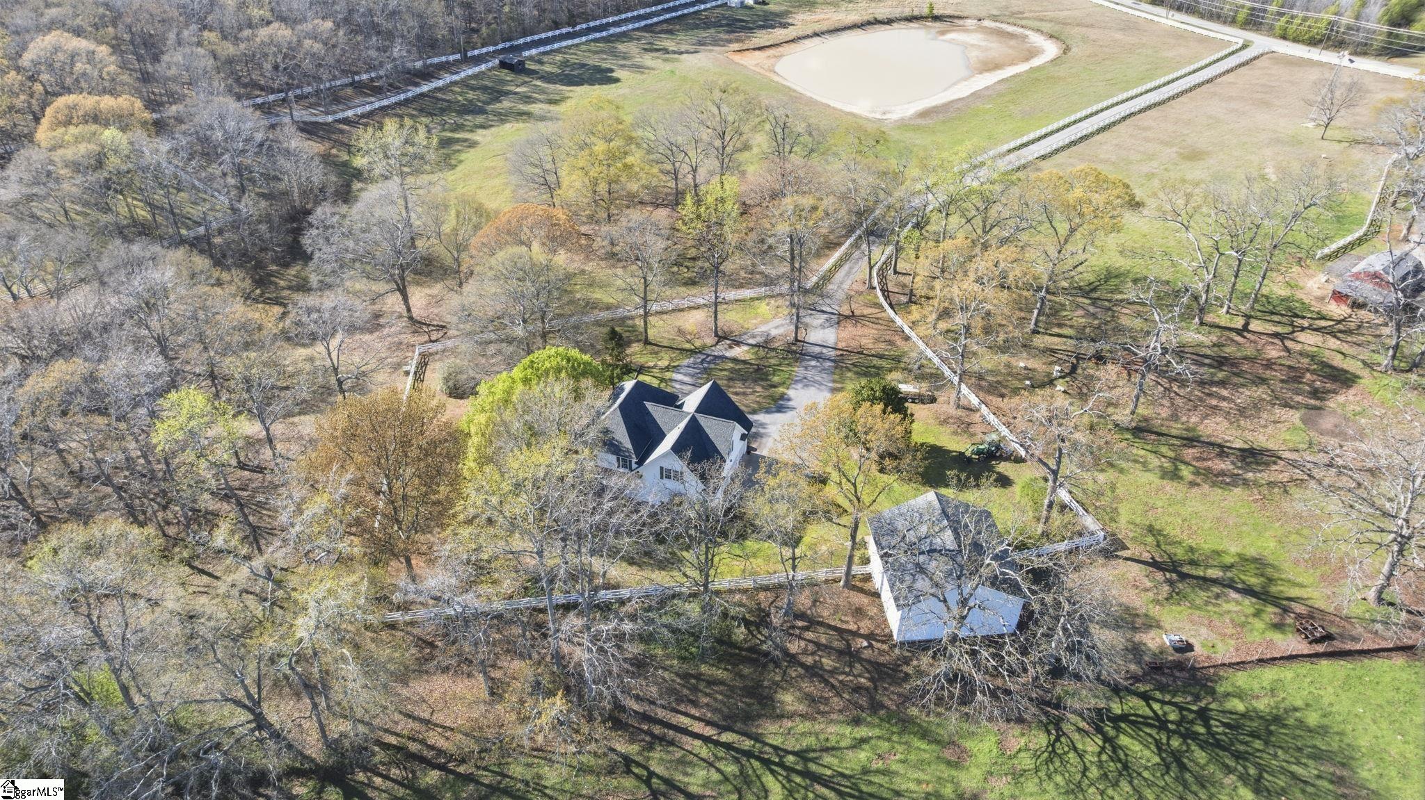 Gorgeous estate on over 8 acres featuring a pond, creek, and peaceful pastureland. Originally the site of Henderson’s Dairy Farm, this property blends history, privacy, and natural beauty. A long driveway flanked by white picket fencing leads you to the home, perfectly nestled among mature trees and lush landscaping with serene views of the pond and rolling pasture. A columned front porch welcomes you into the warm, spacious interior. The living room offers a cozy gas-log fireplace, while the large kitchen features quartz countertops, a full appliance package including a stove with warming drawer, walk in pantry with custom shelving, and abundant prep and storage space. The kitchen transitions easily into an expansive dining area—large enough to include a casual seating space—and highlights a stunning stained-glass window dating back over 100 years from England. Gorgeous hardwood floors flow throughout the main level. The dining area opens to a covered porch with ample room for grilling, dining, and relaxing. A generous laundry room includes storage, a sink, and outdoor access. A cleverly designed hidden door reveals under-stair storage, with the potential to add a second opening and create the perfect doggy den. A powder room rounds out the main floor. Access the second level via either the main staircase or the private back staircase. At the top of the back stairs, you’ll find the primary suite retreat, complete with a vaulted ceiling, sitting area, workspace nook, jetted tub, dual sinks, oversized tile-surround shower, and four walk-in closets—two ideal for storage, crafting, or even a small nursery. Using the main staircase, you’ll find two additional bedrooms, each with its own private bath and walk-in closet. This one-owner home was thoughtfully designed to maximize space, storage, and comfort—from water spigots in the insulated 3-car attached garage and on each side of the home, to electricity in the outside seating areas, to a well-planned workshop area with electricity, water and generator hookup. A detached garage offers soaring ceilings tall enough for an RV, boat, golf cart, and side-by-side, and/or room for up to four cars. The concrete has been poured thick enough to add a car lift. It includes a workshop area with a private room already plumbed for a sink and toilet, as well as water, electricity, and a yard door. As an added bonus, there is already an electric fence in place around the perimeter of the property if needed for pets! The property offers effortless access to the outdoors, with views of the picturesque grounds from virtually every window. A rare opportunity to own a thoughtfully crafted estate where privacy, history, and modern comfort come together in one extraordinary setting. Welcome Home.