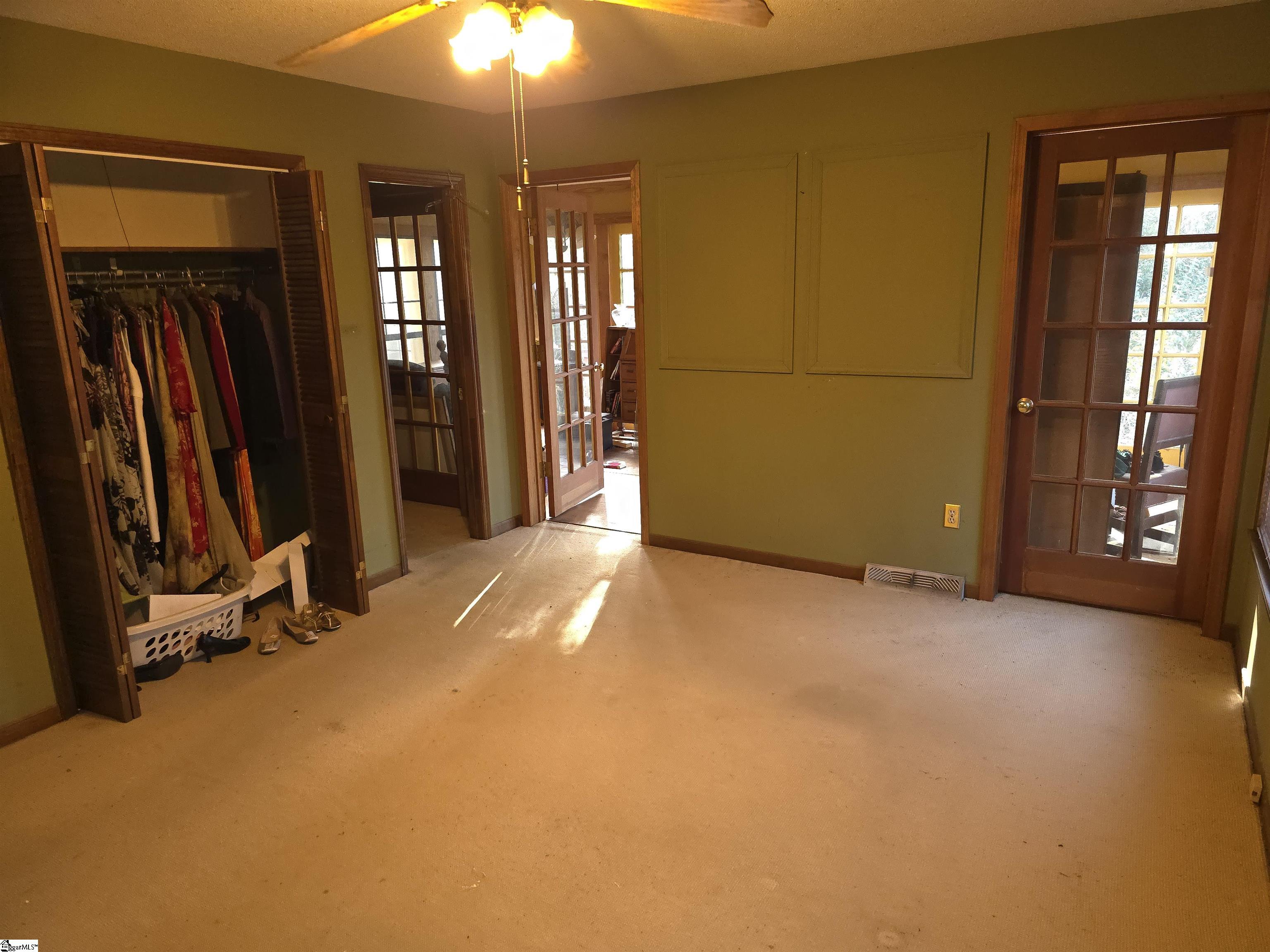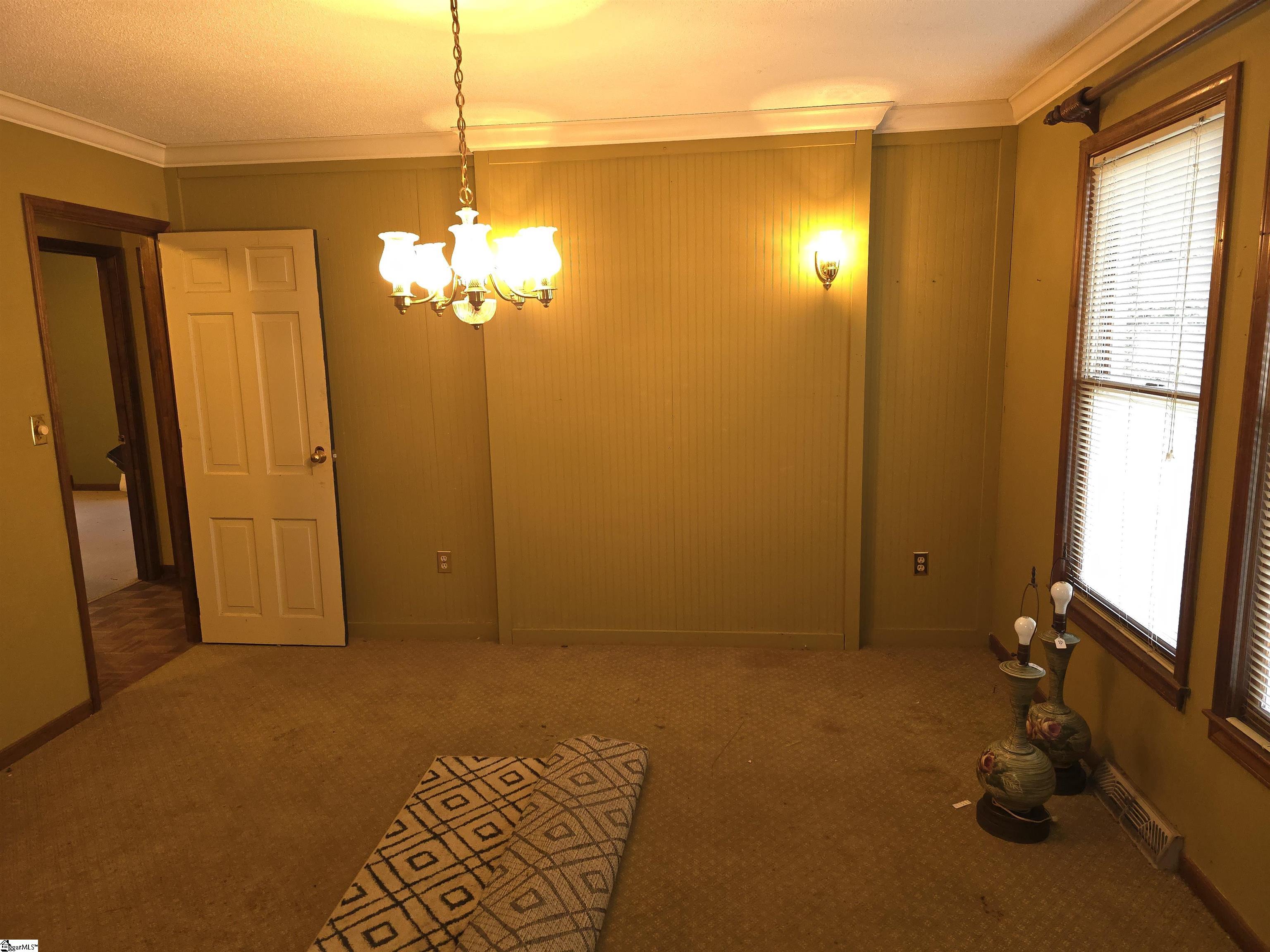 Discover the potential of 4 Cardinal Drive in Taylors—a spacious property offering character, flexibility, and room to customize. This home was originally designed as a 3-bedroom, 2-bath layout; however, one of the bedrooms has been converted into a formal dining room. With existing French doors at the entry, converting it back to a traditional bedroom with closet access can be easily accomplished if desired. The interior provides a versatile floor plan with multiple living spaces, including a private study, ideal for a home office, library, or flex space. The primary suite includes an adjoining sunroom/dressing room that brings in an abundance of natural light, creating a comfortable extension of the suite. The home also features a large bonus room that can function as an entertainment area, media room, or additional living space based on preference. The property sits on a wooded lot with mature trees that contribute to a sense of privacy. The oversized deck and broad backyard offer excellent opportunity for outdoor living, renovation, or future improvements. While the home will benefit from updates and repairs, it provides a solid foundation for buyers seeking a renovation project in an established and convenient location. Situated in an award-winning school district, this home is located within minutes of shopping, dining, and local amenities, and approximately 15 minutes from downtown Greenville. With no HOA restrictions, buyers have added flexibility for future plans or improvements. 4 Cardinal Drive represents a strong opportunity for buyers looking for a property with potential in a highly desirable area.