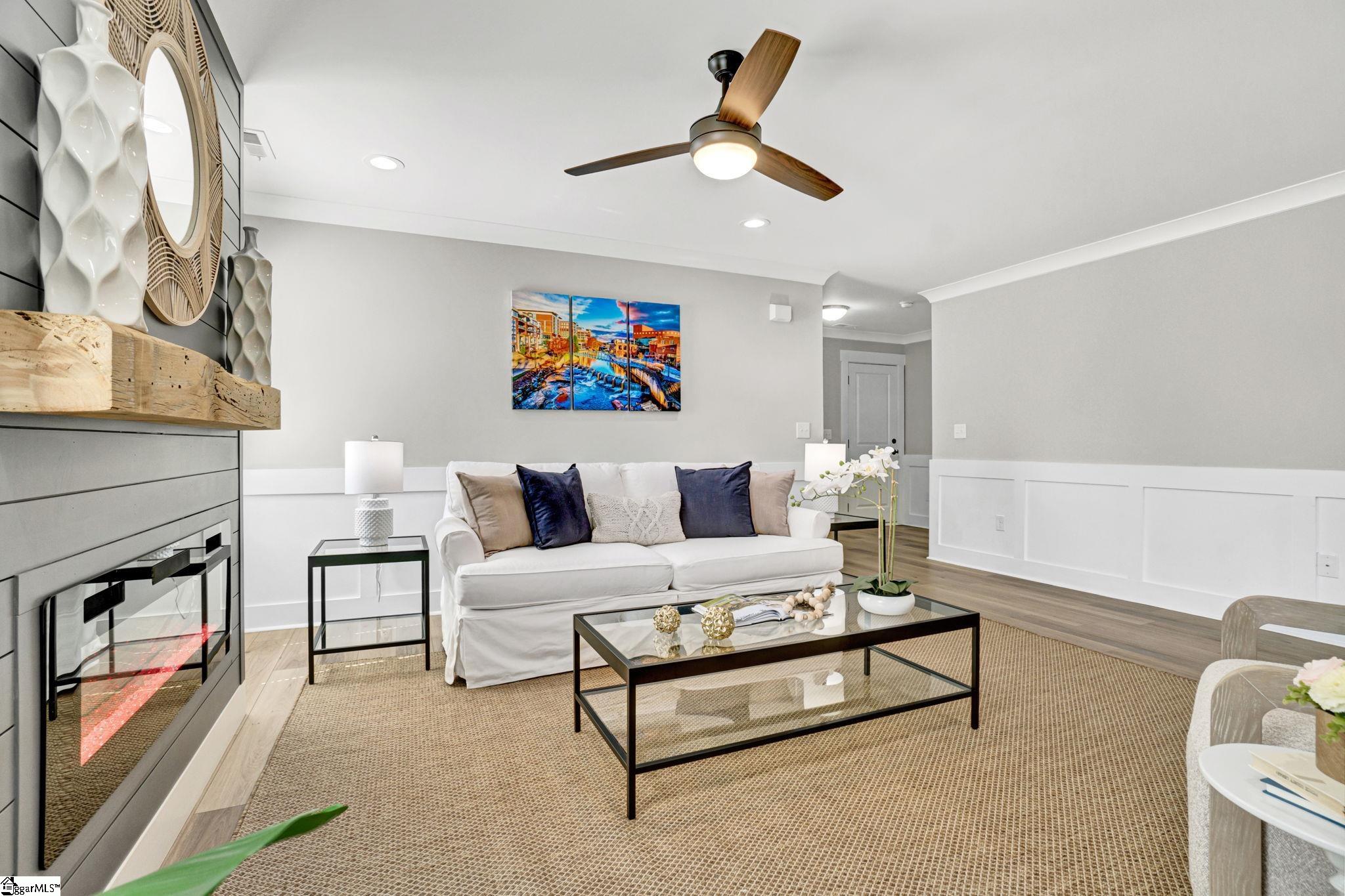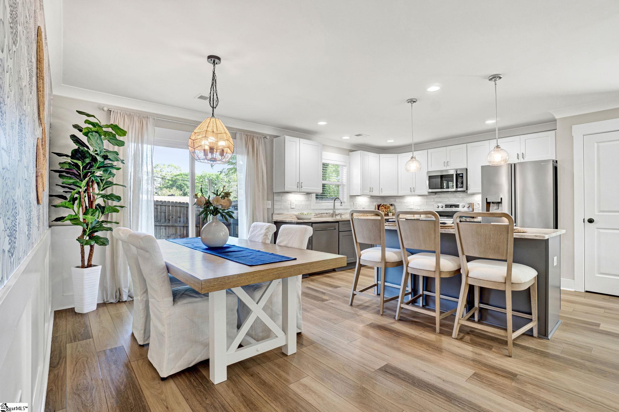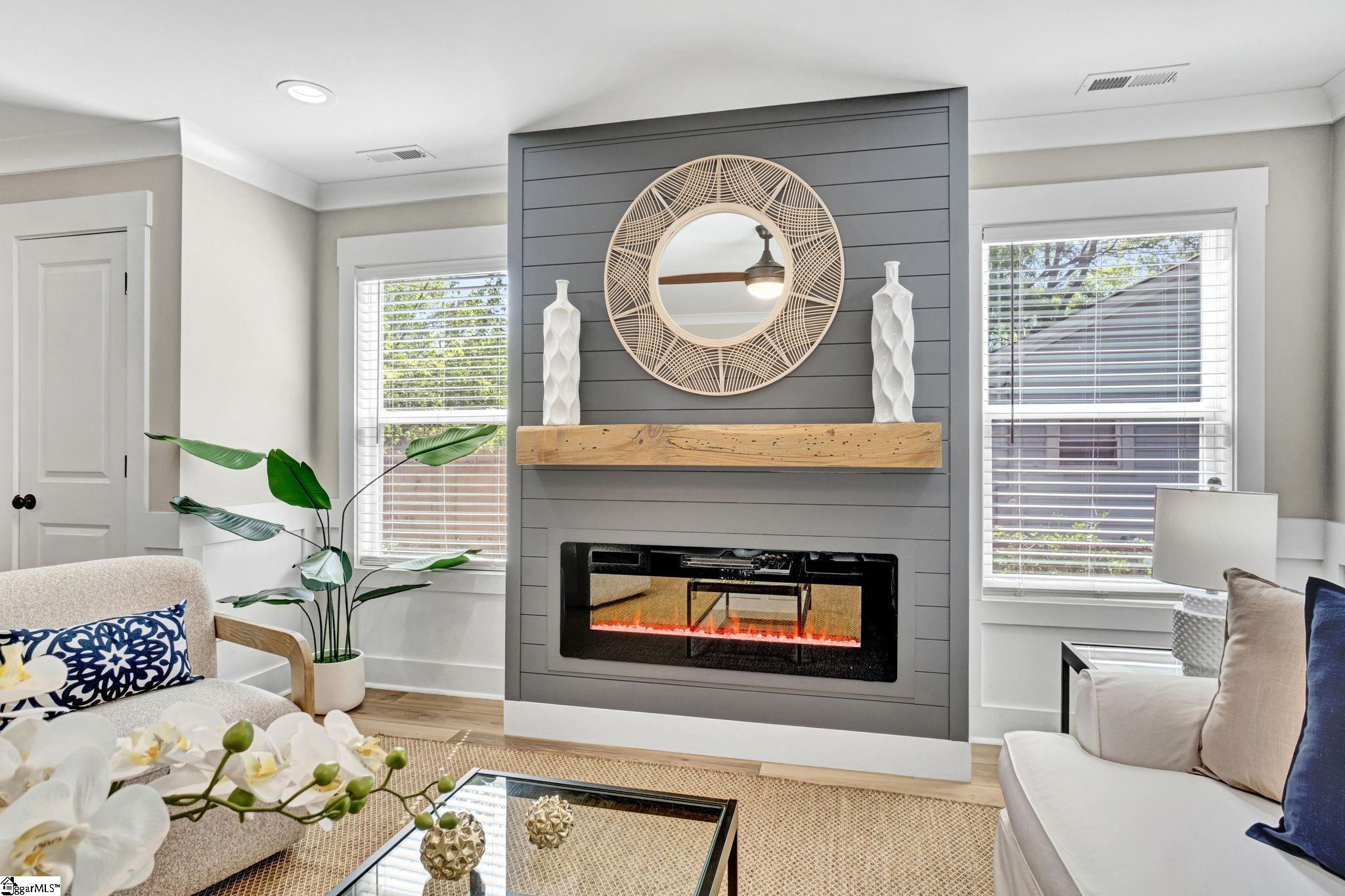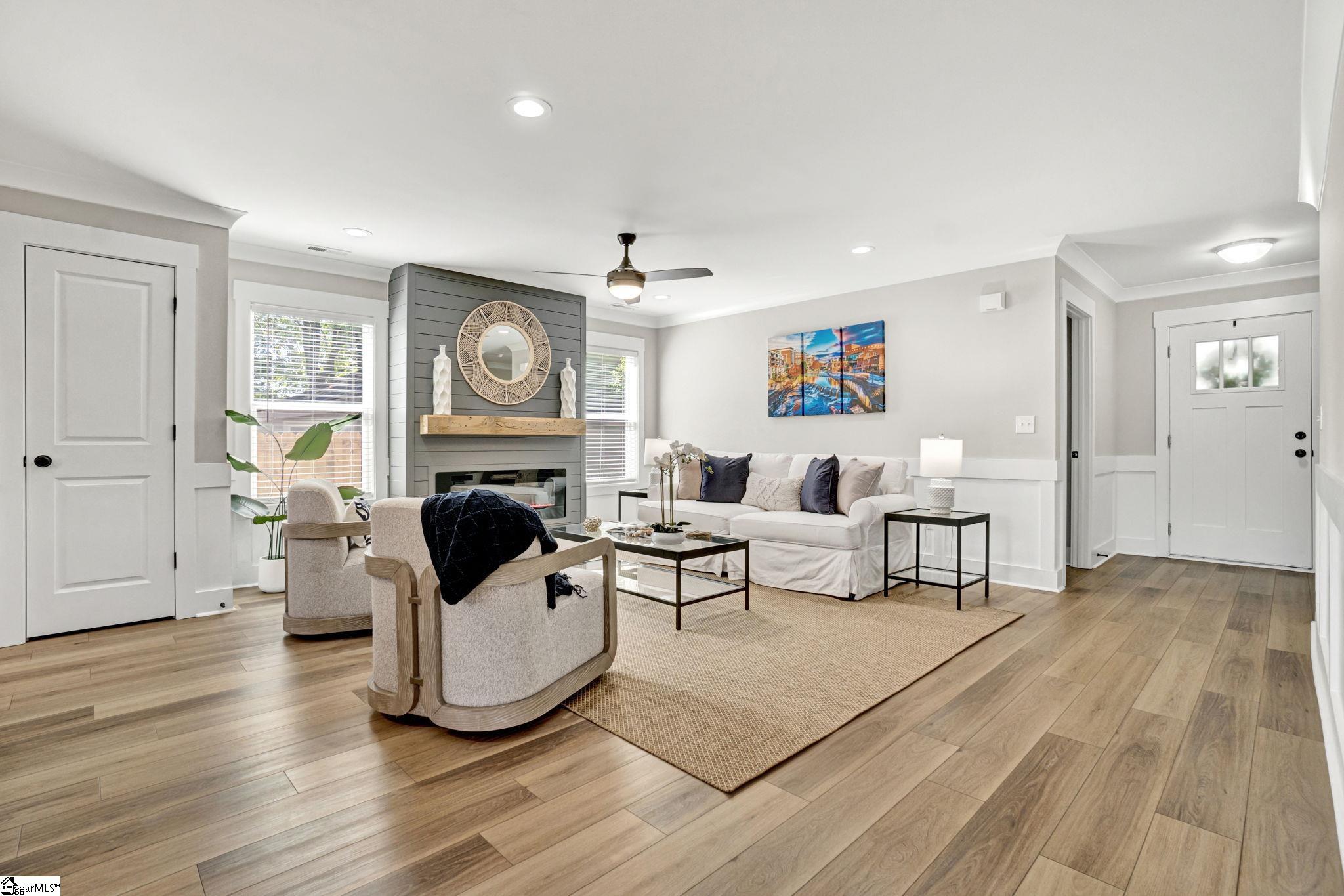 Welcome to 4 McArthur St, where modern design meets easy living just minutes from downtown Greenville. Built in 2023, this 3 bedroom, 2 bathroom home offers a clean, open layout that fits today’s lifestyle. Step inside to LVP flooring that runs throughout the entire home, giving the home a fresh look and low maintenance feel. The open concept design connects the living room, dining space, and kitchen, making it easy to stay connected whether you’re hosting friends or enjoying a quiet night in. A custom built fireplace anchors the living room and adds warmth and character. The kitchen is built to impress with quartz countertops, stainless steel appliances, a large island for prep and seating, and a pantry for added storage. The layout is both functional and inviting, ideal for everyday living and entertaining. The primary suite offers a calm retreat with custom closet shelving that keeps everything organized. Two additional bedrooms provide flexibility for guests, a home office, or hobbies. Outside, enjoy a fenced yard and a patio space perfect for grilling, relaxing, or gathering with friends. The hardi board exterior offers durability and easy upkeep, while the extended driveway provides extra parking. With no HOA and a location that puts you close to the Village of Greenville and just minutes from downtown, this home offers both freedom and convenience. Enjoy walkable access to local spots while still having your own private space to unwind. This is a great fit for those looking for newer construction, low maintenance living, and a location that keeps you connected to everything Greenville has to offer.
