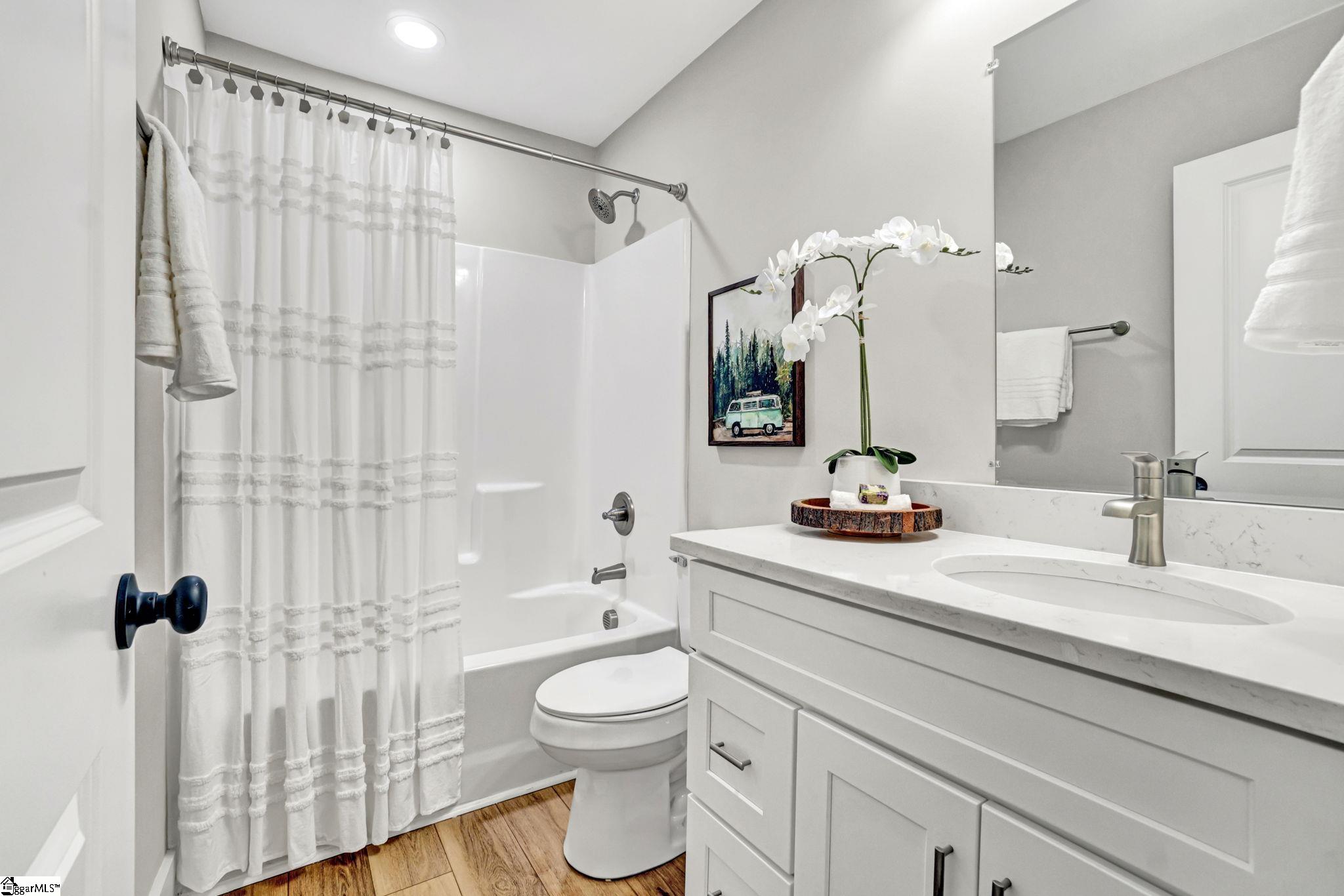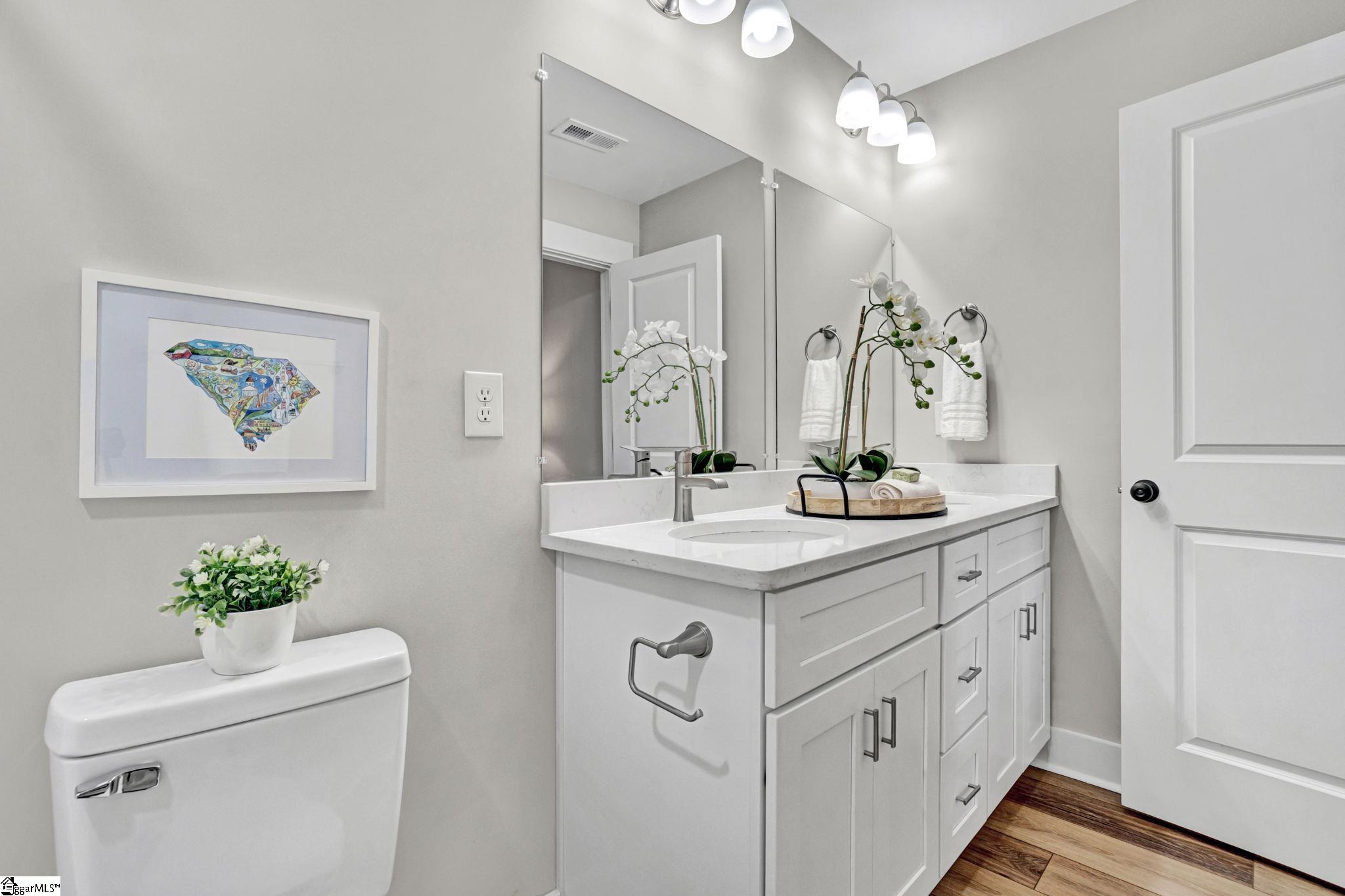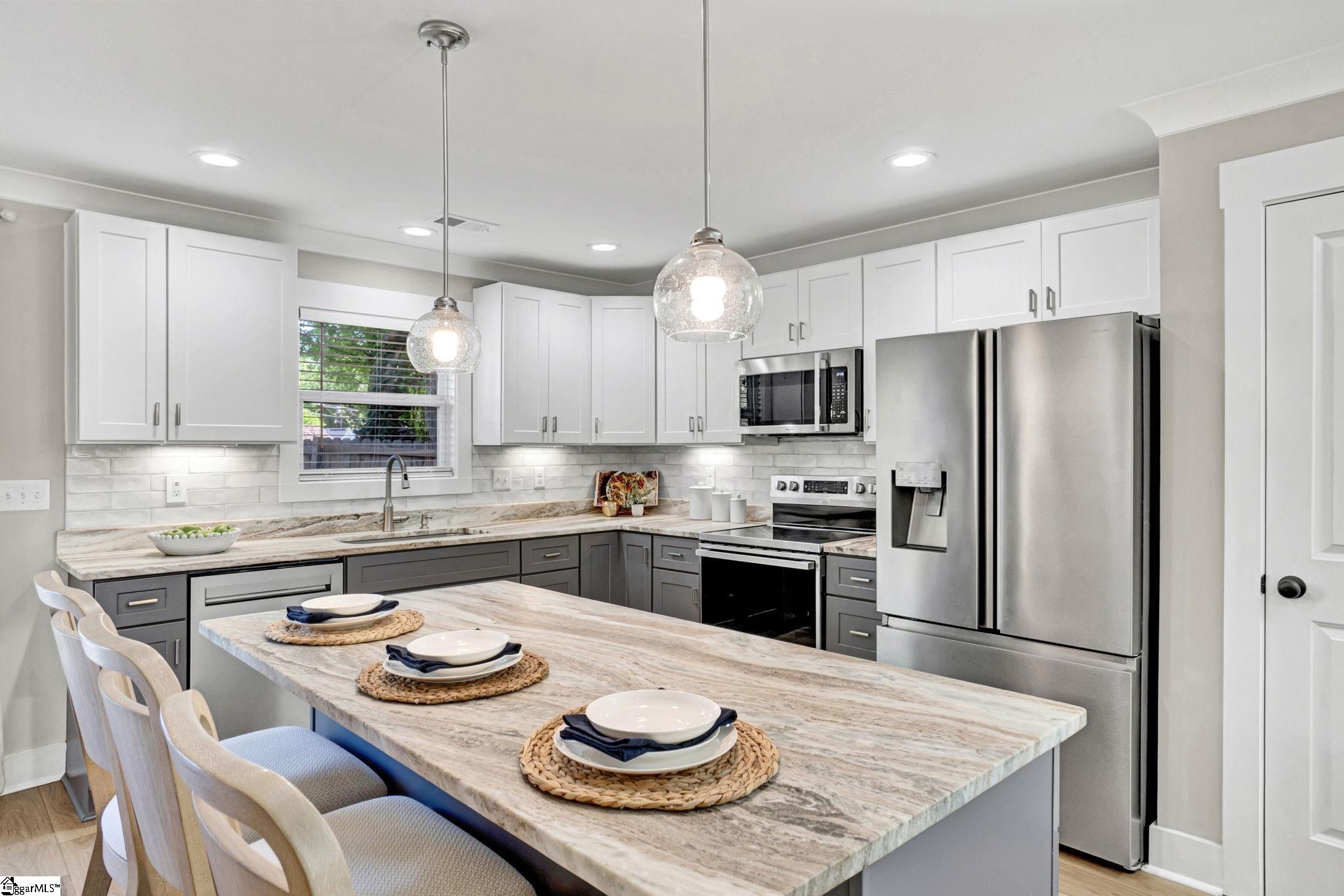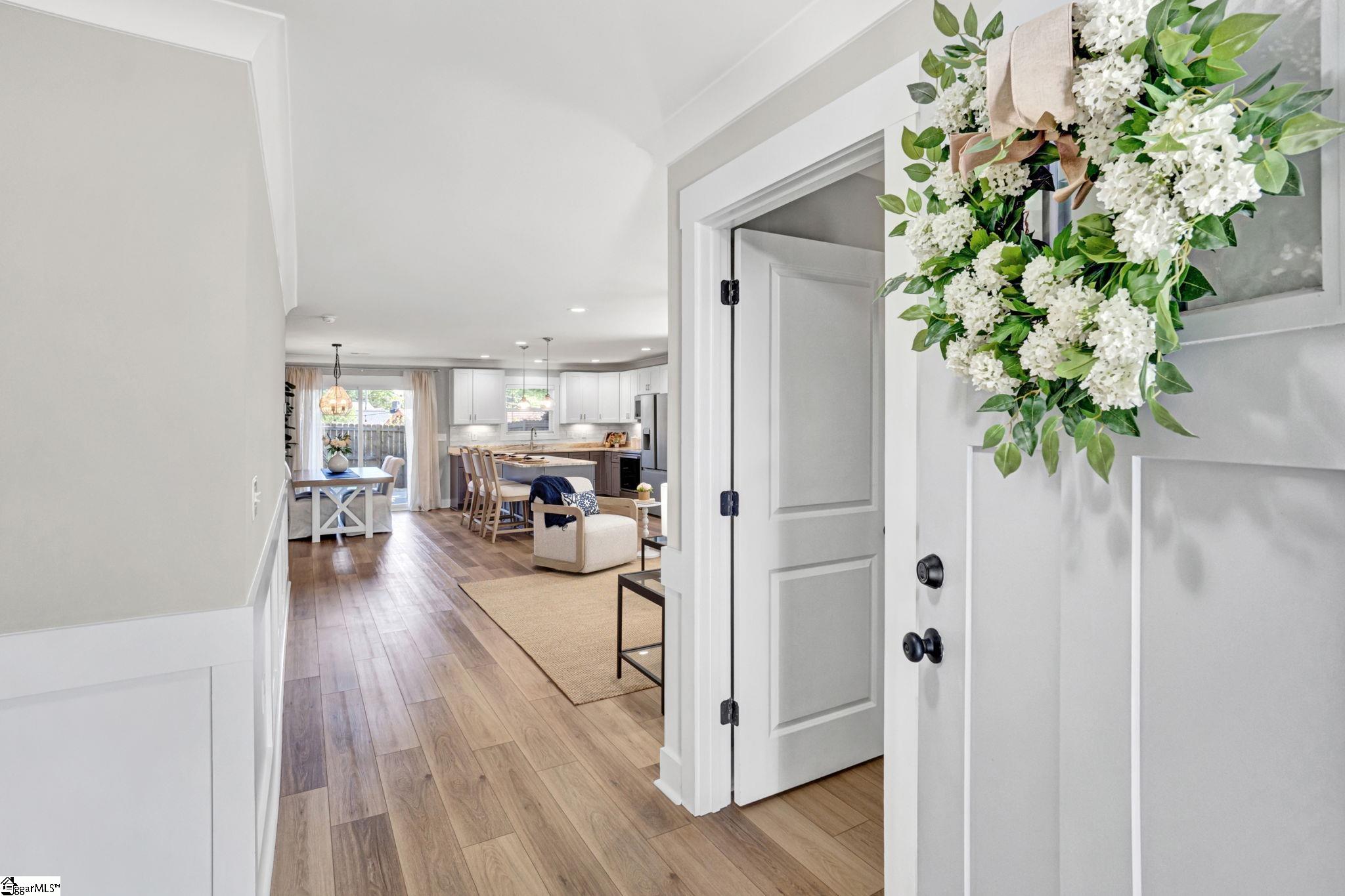Welcome to 4 McArthur St, where modern design meets easy living just minutes from downtown Greenville. Built in 2023, this 3 bedroom, 2 bathroom home offers a clean, open layout that fits today’s lifestyle. Step inside to LVP flooring that runs throughout the entire home, giving the home a fresh look and low maintenance feel. The open concept design connects the living room, dining space, and kitchen, making it easy to stay connected whether you’re hosting friends or enjoying a quiet night in. A custom built fireplace anchors the living room and adds warmth and character. The kitchen is built to impress with quartz countertops, stainless steel appliances, a large island for prep and seating, and a pantry for added storage. The layout is both functional and inviting, ideal for everyday living and entertaining. The primary suite offers a calm retreat with custom closet shelving that keeps everything organized. Two additional bedrooms provide flexibility for guests, a home office, or hobbies. Outside, enjoy a fenced yard and a patio space perfect for grilling, relaxing, or gathering with friends. The hardi board exterior offers durability and easy upkeep, while the extended driveway provides extra parking. With no HOA and a location that puts you close to the Village of Greenville and just minutes from downtown, this home offers both freedom and convenience. Enjoy walkable access to local spots while still having your own private space to unwind. This is a great fit for those looking for newer construction, low maintenance living, and a location that keeps you connected to everything Greenville has to offer.