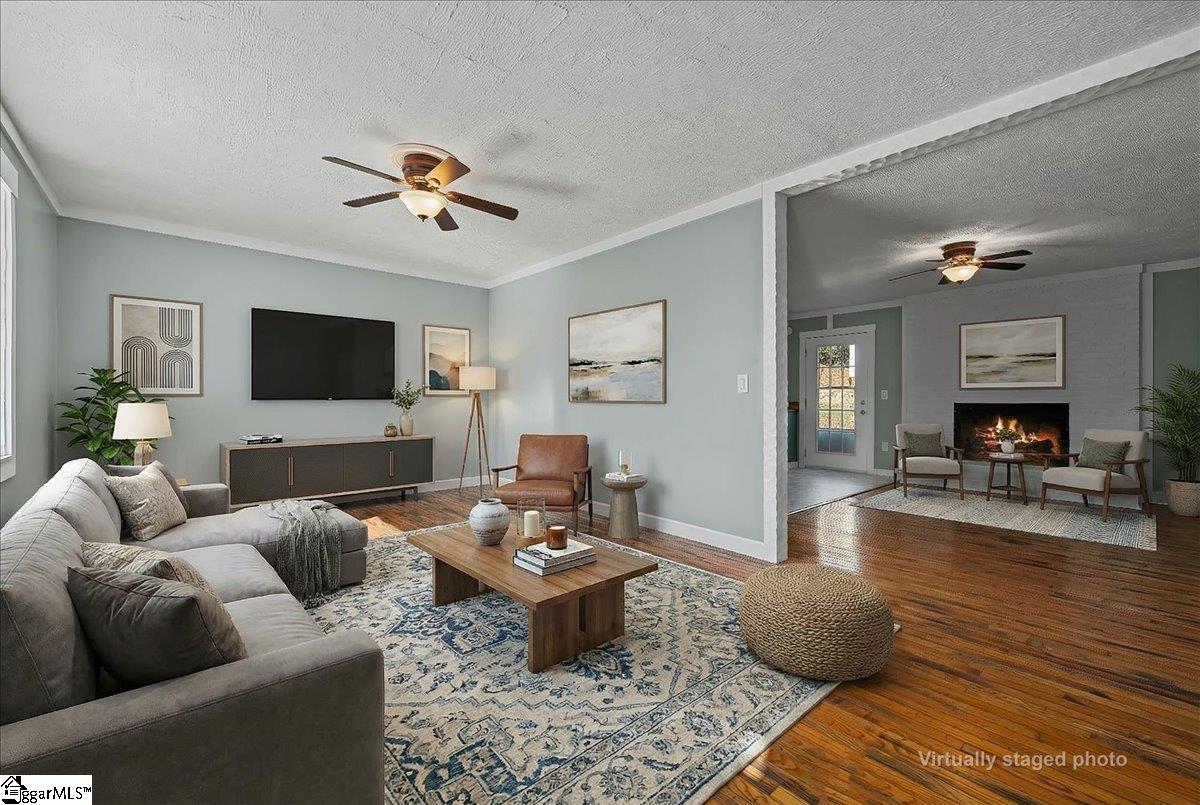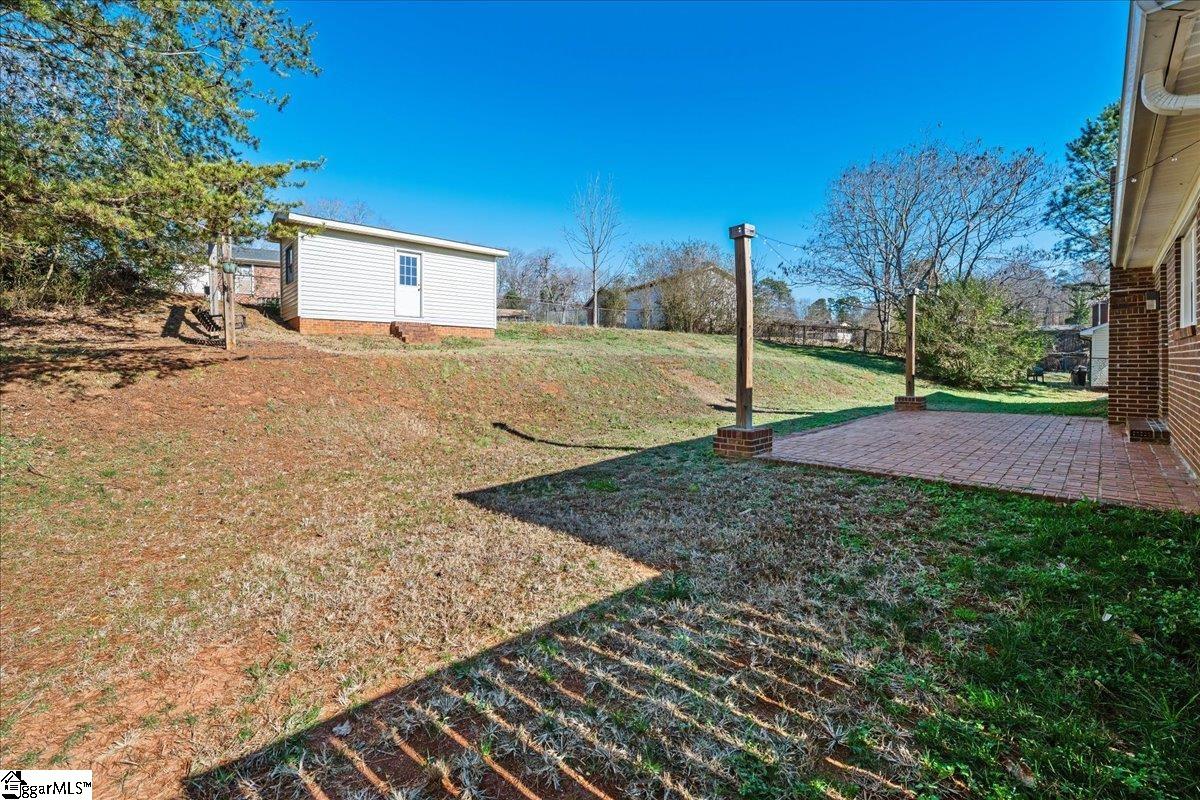 New Year, New Price—don’t miss this updated Greenville charmer. Move-in ready with a bright, open feel, this home features a welcoming living room with a cozy fireplace and abundant natural light. The kitchen flows into the dining space, making everyday routines and entertaining effortless. Retreat to the primary suite with dual closets and a private bath, plus two additional bedrooms that work perfectly for family, guests, or a home office. Recent improvements include brand-new carpet in all bedrooms, hardwood floors, and new flooring in the kitchen and baths for a fresh, turnkey finish. The oversized laundry room offers extra storage and can double as pantry space. Out back, you’ll love the fenced yard, large patio, and a handy outbuilding ready for storage, a workshop, or hobbies. Minutes to I-85, Augusta Road, White Horse Road, downtown Greenville, the Swamp Rabbit Trail, Falls Park, the Peace Center, and the Saluda River.