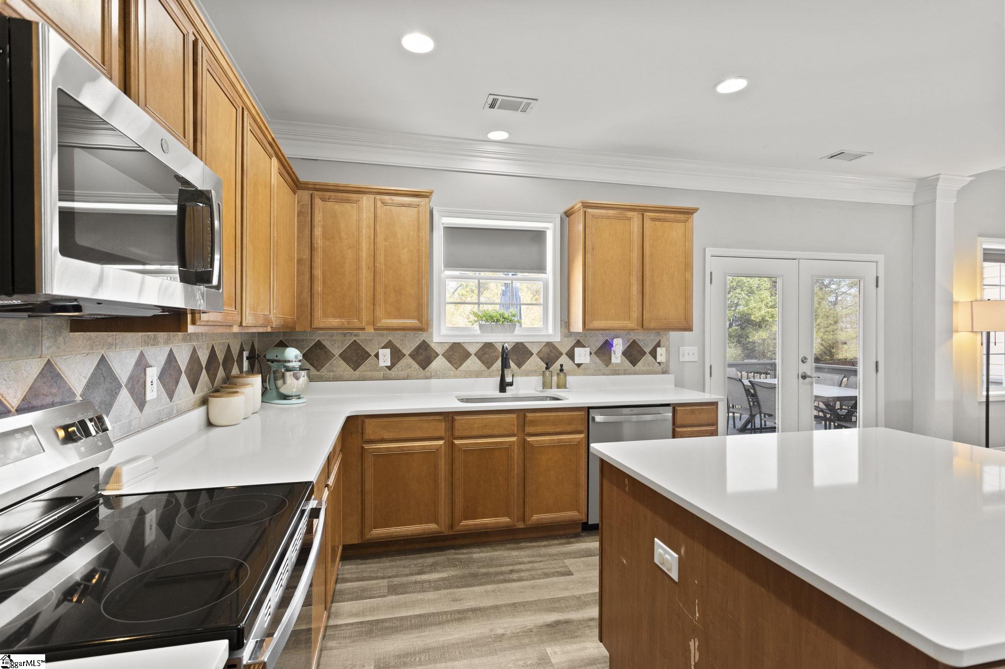 With approximately 2,800 finished square feet, plus over 1,300 square feet of unfinished walkout basement, this home provides both comfort today and room to grow. Step inside to a bright, open layout featuring updated LVP flooring on the main level and a stunning two-story living room anchored by a custom fireplace wall that creates a true focal point. The kitchen has been refreshed with new quartz countertops and stainless appliances including the dishwasher, range, and microwave installed in December 2025, and flows seamlessly into the main living spaces and out to the deck. Upstairs, the spacious primary suite offers a private retreat with a tray ceiling, custom accent wall, and electric fireplace. Additional custom trim details throughout the home add character and elevate the overall design. Major updates include a new roof in 2021, HVAC replaced on the main level in 2021 and upstairs in 2024, and a new water heater installed in December 2025. The walkout basement is already framed for a bedroom, bathroom, large living area, and storage, offering an excellent opportunity to add significant finished space. Outdoor living is a standout feature with a rebuilt deck overlooking a large fenced backyard, plus a custom paver patio and fire pit that create the perfect space for entertaining. Located in the desirable Morning Mist neighborhood with convenient access to shopping, dining, and major roadways, this home delivers the space, updates, and the lifestyle you’ve been looking for.
