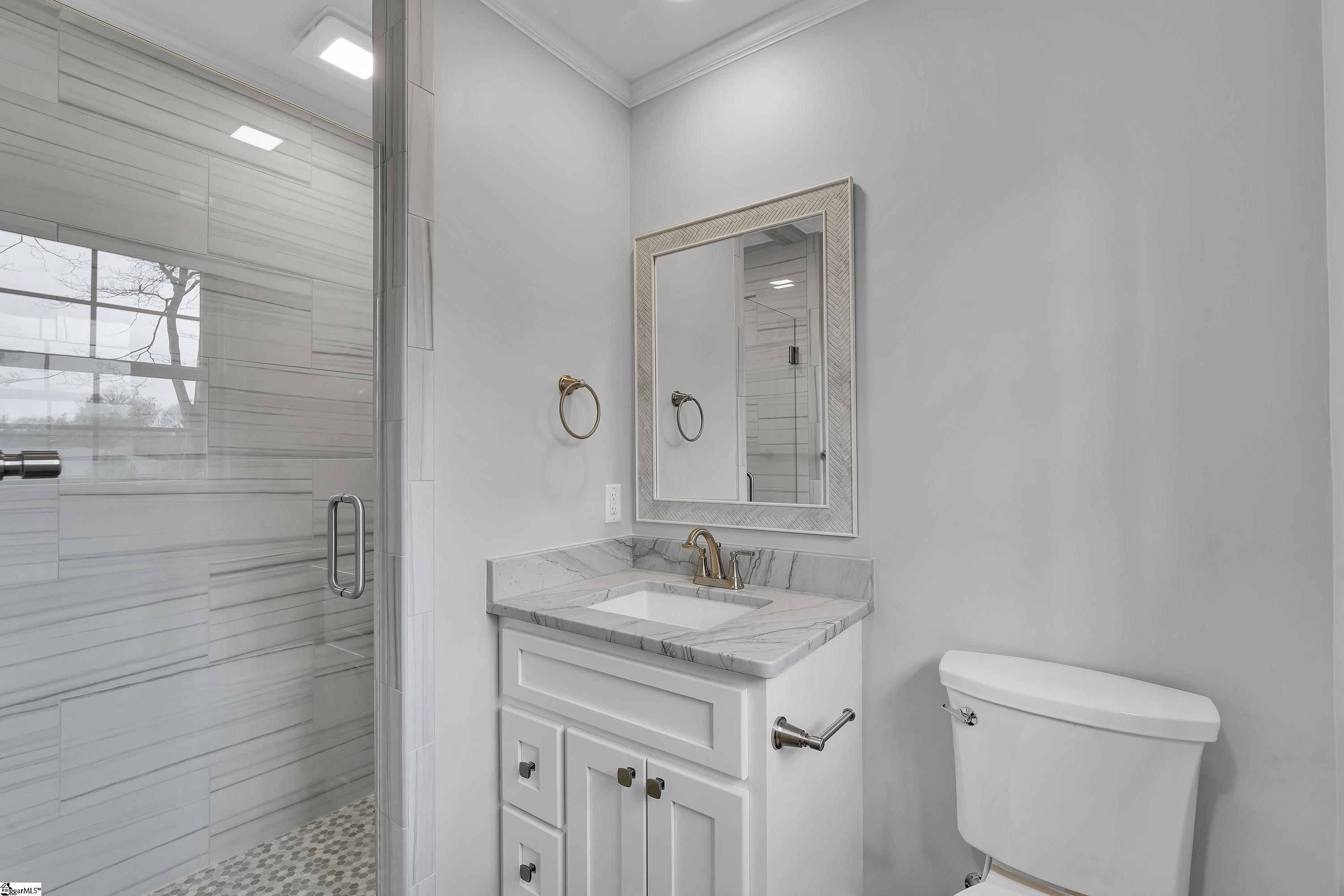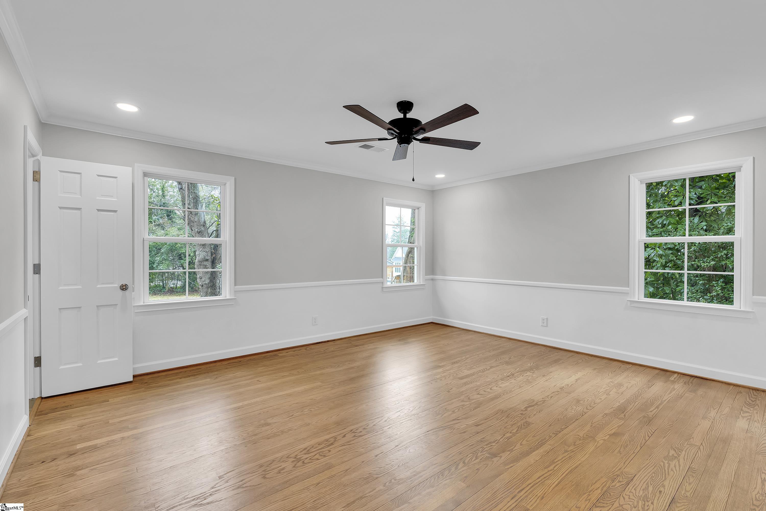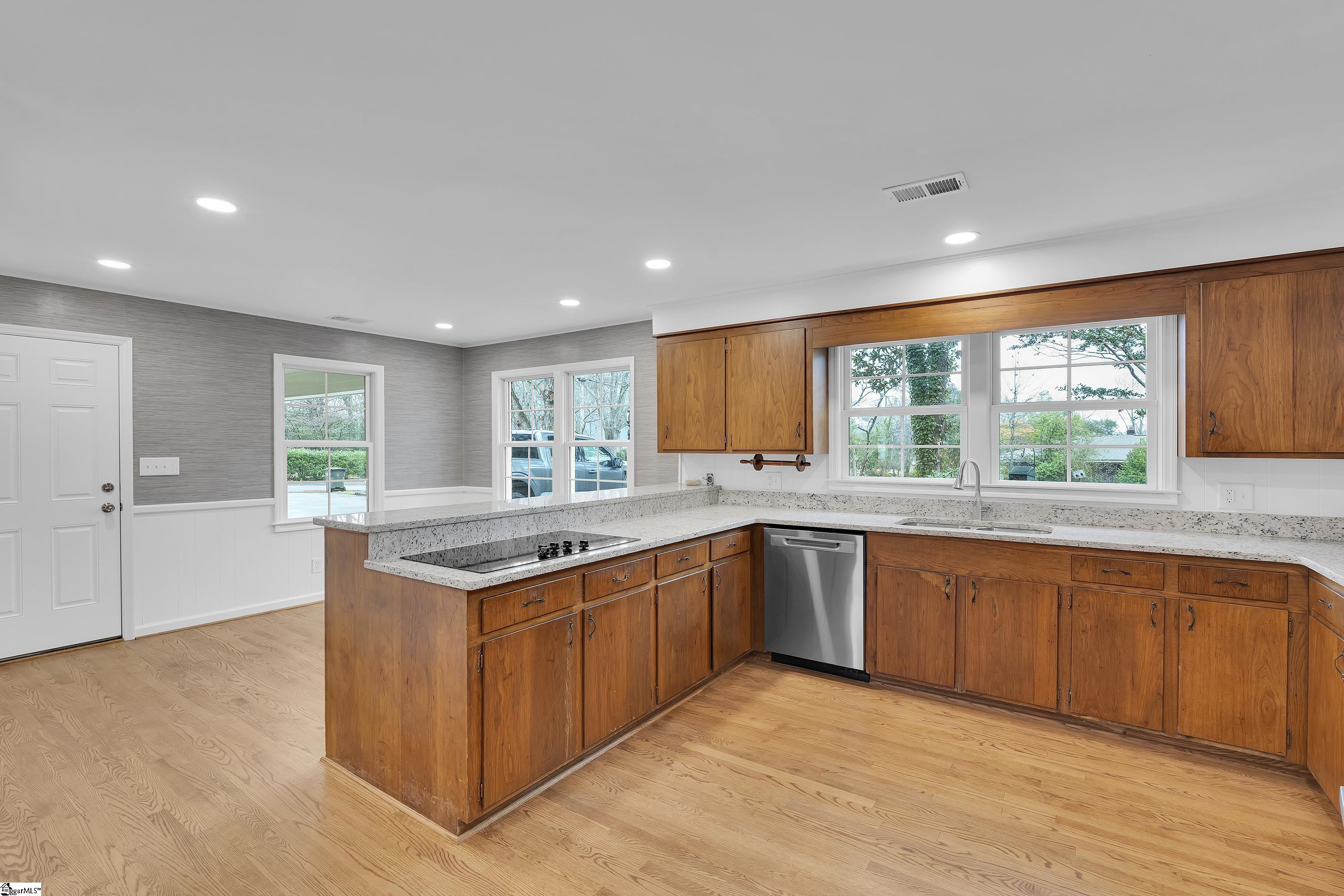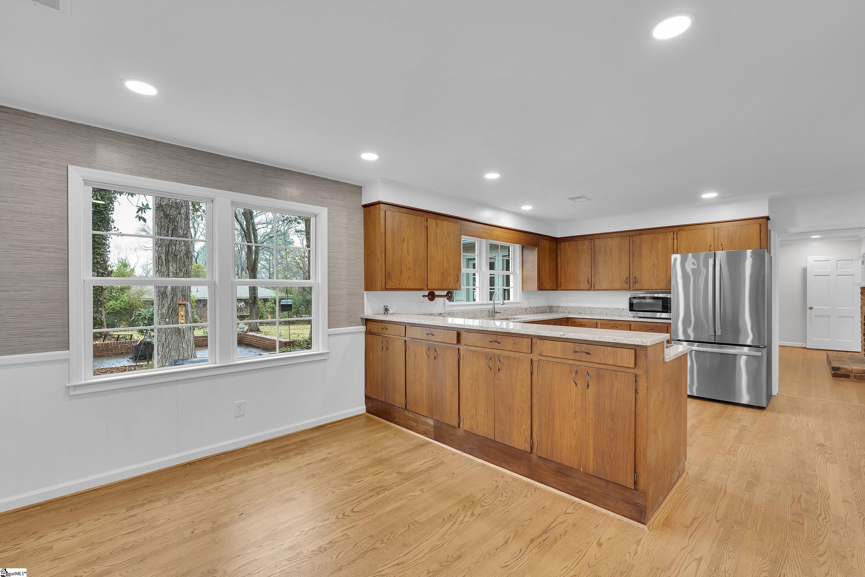 Completely renovated traditional brick ranch, stately positioned on a desirable corner lot just minutes from Downtown Easley. This home exemplifies refined one-level living, offering both elegance and functionality with formal dining and living rooms, a sunroom, den, breakfast area, and a slate foyer. The residence features three bedrooms and two-and-a-half baths and has been thoughtfully updated inside and out. Major improvements include all-new electrical and plumbing, a new roof, HVAC system, windows, and a tankless water heater, providing peace of mind and modern efficiency. Elevated selections throughout showcase the home’s timeless appeal, including real hardwood floors, a neutral color palette, stylish wallpaper, curated light fixtures, custom built-in bookcases, and beautifully tiled bathrooms. Additional highlights include a walk-up floored attic and a 538 square foot partially finished basement with fireplace, offering endless possibilities for additional living, recreation, or storage space. Set on a spacious .89-acre lot, the outdoor setting features a brick patio, circular driveway, mature trees, and ample room for privacy and future transformation. A two-car carport with heated and cooled storage completes the home’s thoughtful design and everyday convenience. Ideally located just minutes from Highway 123, shopping, dining, and Downtown Easley, with easy access to Clemson University and Downtown Greenville, this home offers a rare blend of traditional luxury, extensive updates, and prime location. **Total square footage of the home is approximately 3482. Finished first floor is 2944 square feet and partially finished basement is 538 square feet.**