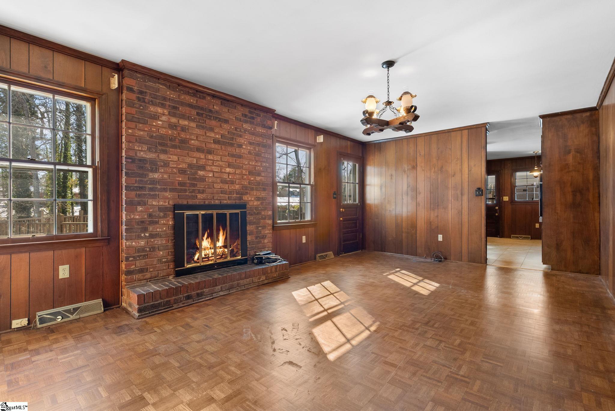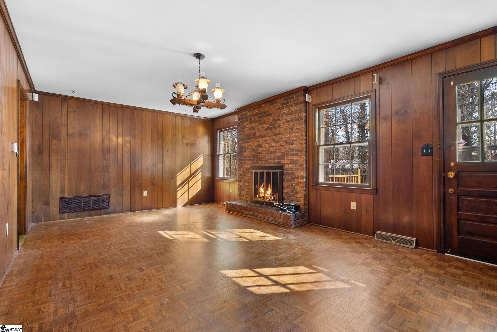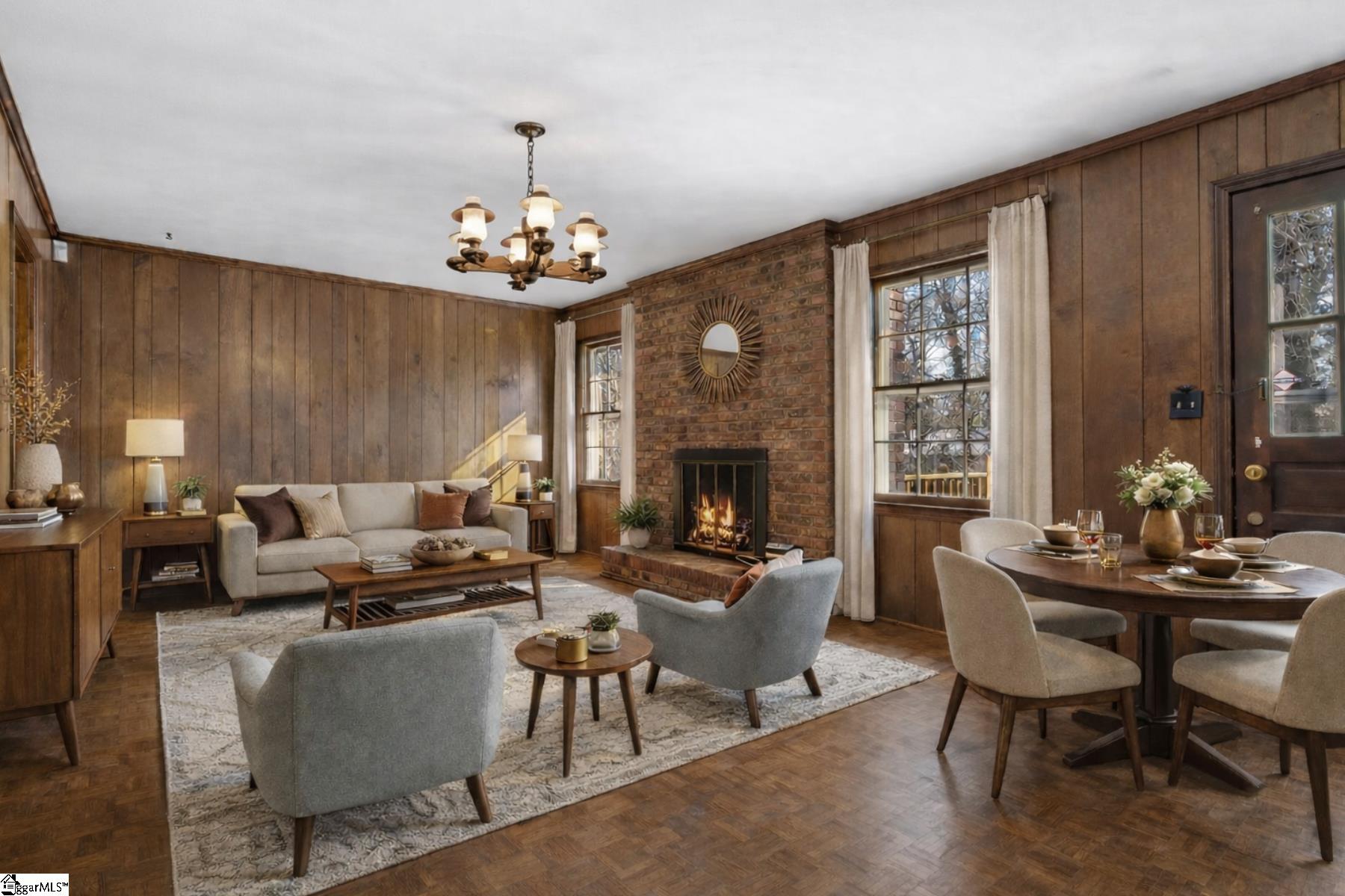 Well Built Brick Ranch in Established Neighborhood! 402 Pearle Drive is the home you’ve been waiting for. 3 bedrooms, 2 full baths, classic charm, and a layout that instantly feels like home. Stunning wood parquet floors welcome you into the living room, anchored by a brick wood burning fireplace. A comfortable den/family room offers the extra space and flexibility today’s living calls for. In the kitchen, generous cabinet storage pairs beautifully with a dedicated laundry and mudroom, making daily routines easy and efficient. Three well-sized bedrooms and two full baths maintain the home’s original character and provide a wonderful canvas for personal touches. Out back, a sprawling deck overlooks a tree-lined setting, creating a peaceful backdrop for relaxing evenings or entertaining guests. Parking and storage are thoughtfully designed, with a two-car brick carport that could easily be enclosed to create an attached garage, along with a large enclosed storage room or workshop offering exceptional versatility. A covered rocking-chair front porch adds charm and invites you to sit and enjoy views of the spacious, mature lot filled with established trees. Set within a quiet, well-kept neighborhood with mature landscaping and peaceful streets, this home offers a true sense of community. Its location is hard to beat, directly across from Ingles on Highway 8, just 3 minutes to Highway 123, and only 5 minutes from downtown Easley. From the moment you step inside, this home simply feels right.