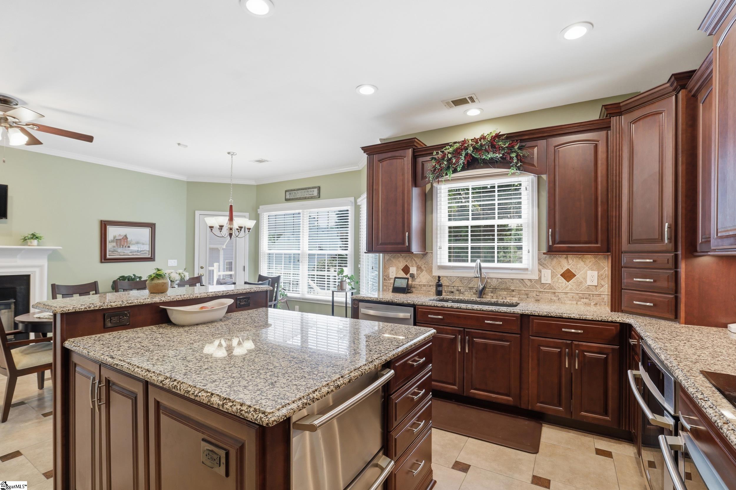 Spacious and thoughtfully designed, this nearly 5,000 square foot home offers the flexibility and features today’s buyers are looking for. The main living area is highlighted by soaring two-story ceilings, creating an open and inviting feel ideal for both everyday living and entertaining. The walk-out basement features a fully functional second living quarters with its own private driveway, offering excellent potential for multi-generational living, guest space, or extended stays. A tiered movie theater provides a true at-home entertainment experience, while the hot tub offers a relaxing retreat. The primary suite is designed with comfort in mind, featuring separate vanities and dual walk-in closets. Residents also enjoy access to neighborhood amenities including a clubhouse, playground, pool, and tennis courts. Conveniently located on the edge of Mauldin with easy access to Woodruff Road, Butler Road, and I-385, and just a short drive to downtown Greenville and Simpsonville, this home combines space, versatility, and location.