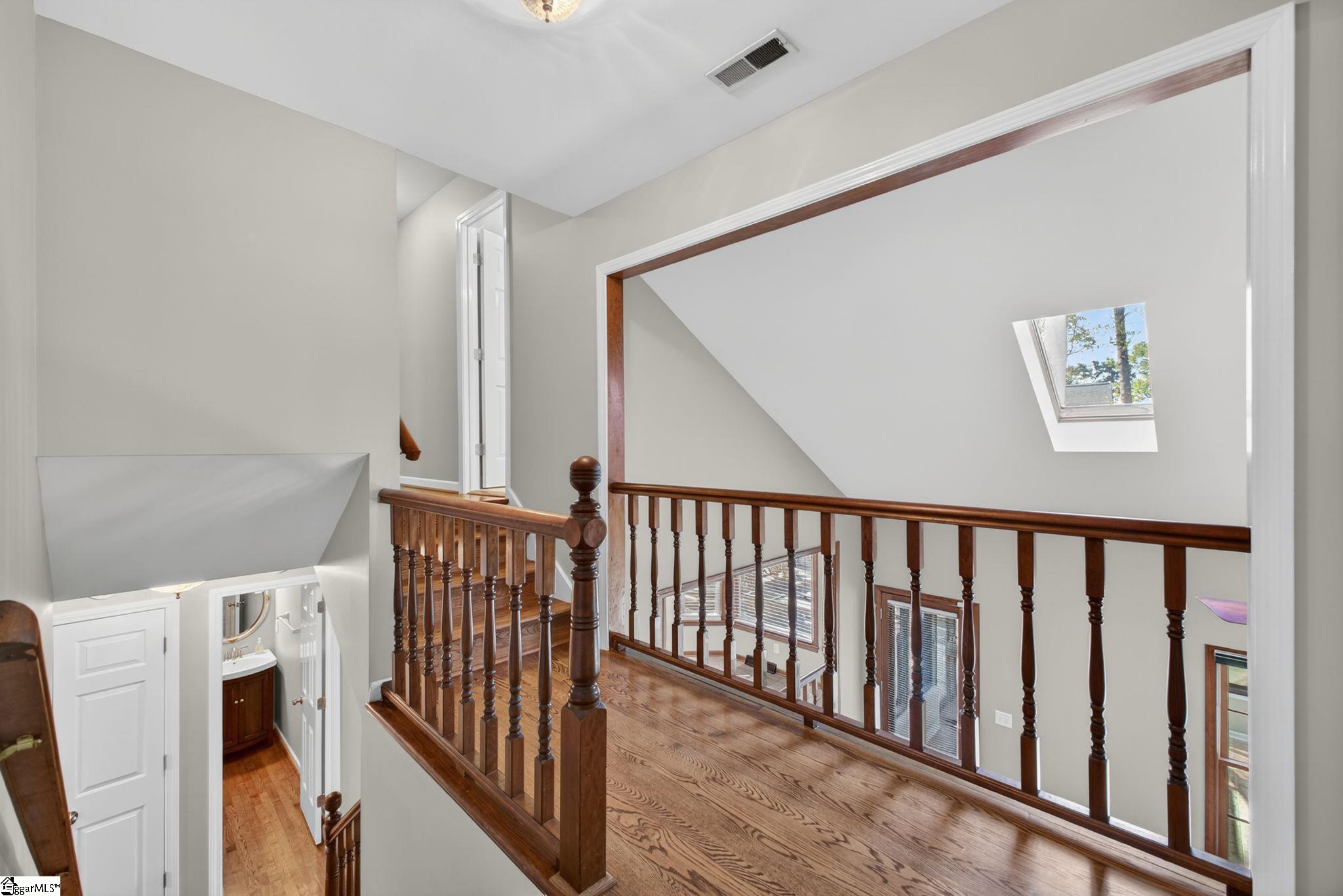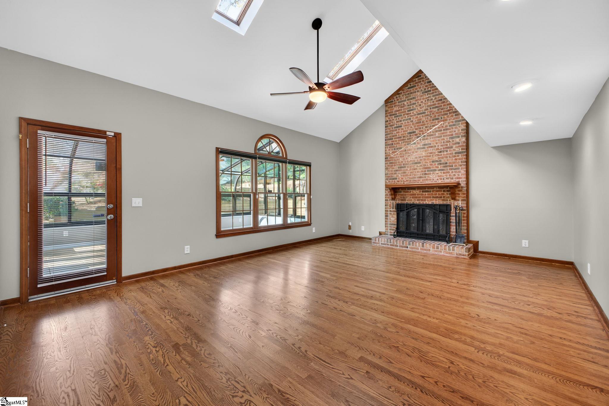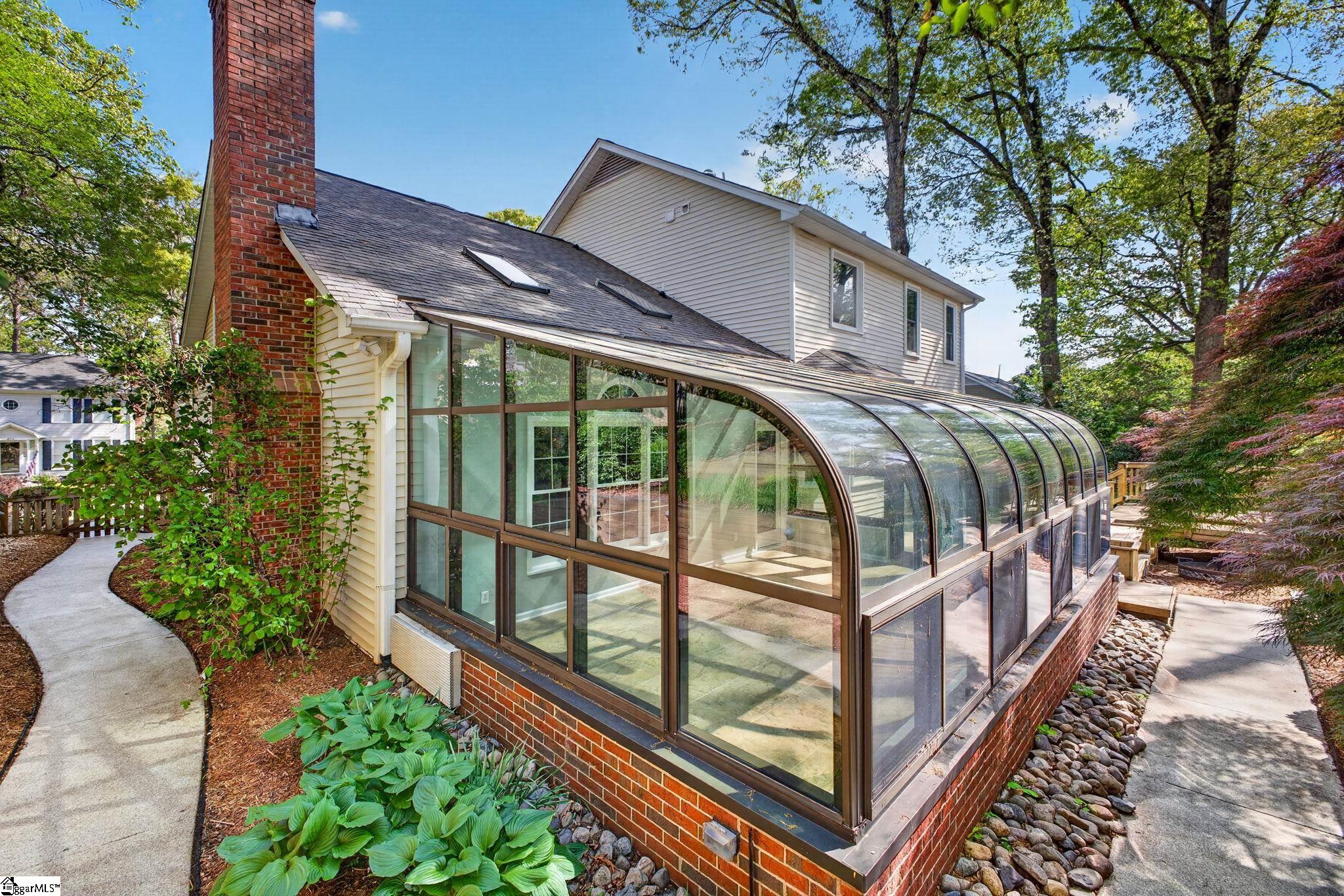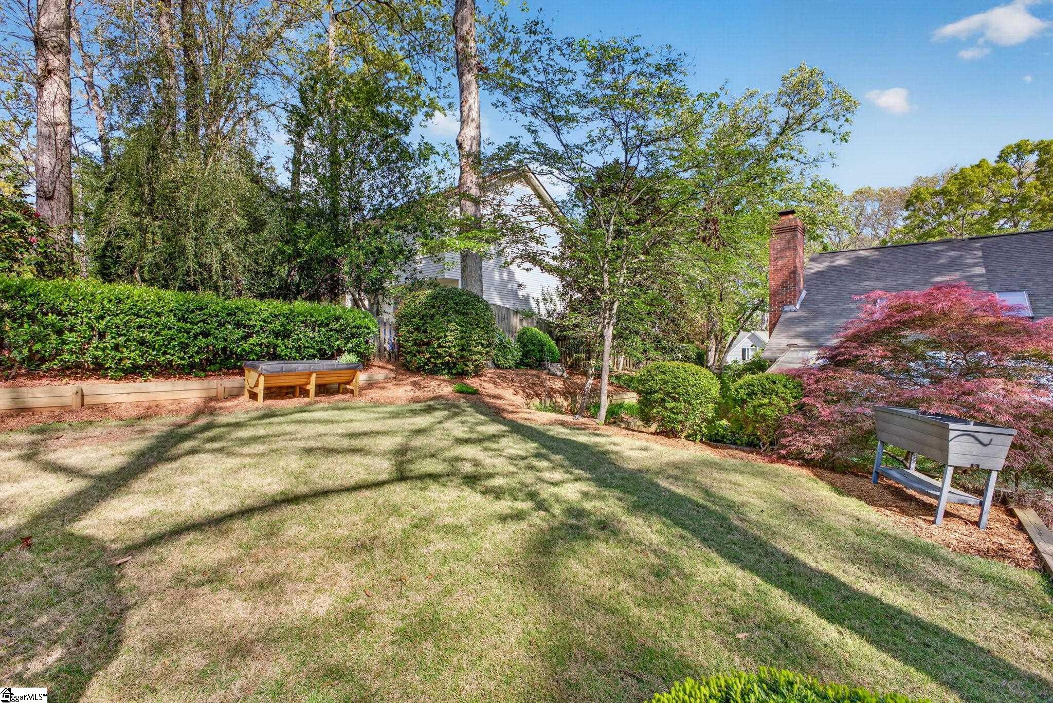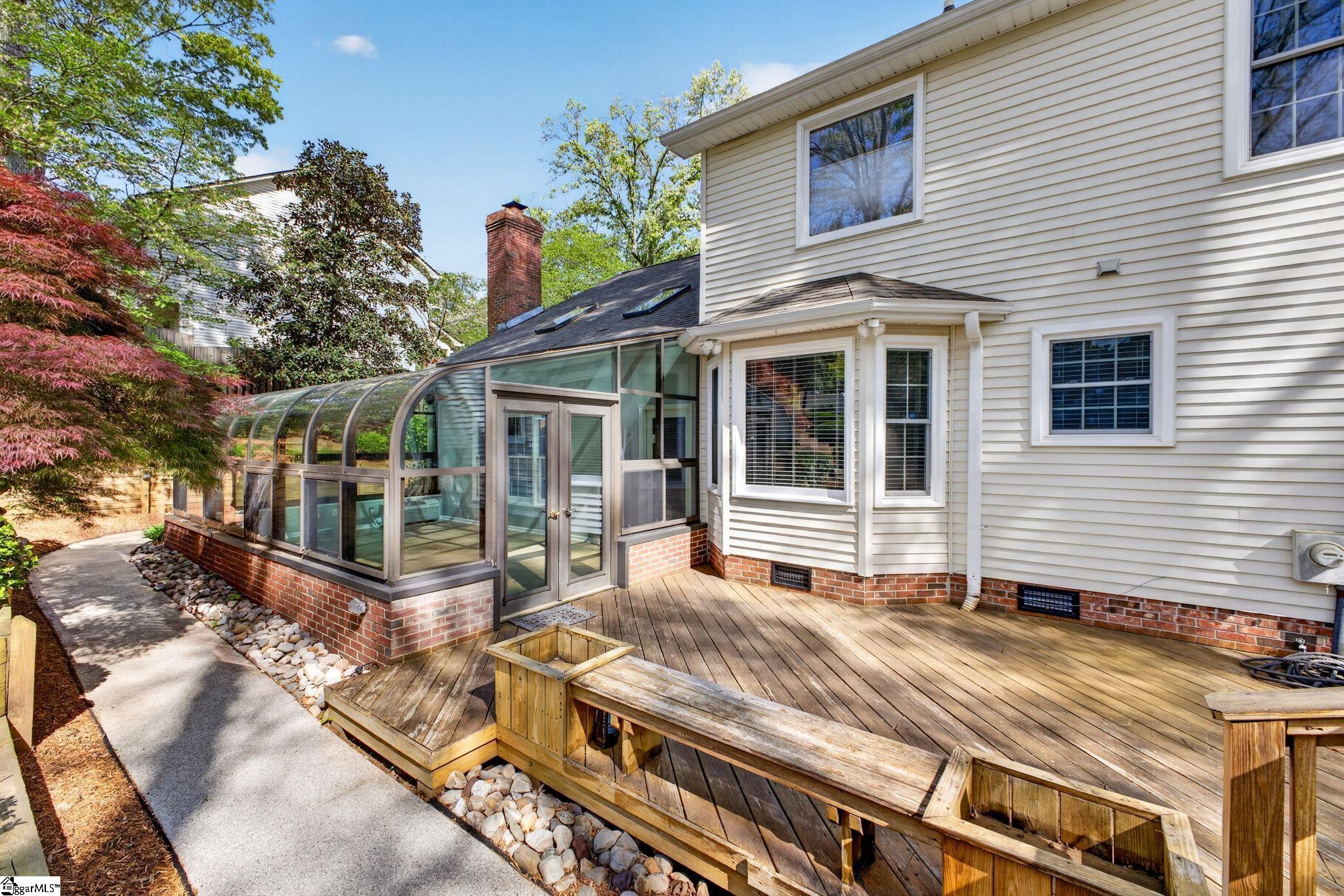 Welcome to your Pelham Falls retreat, offering five bedrooms and two and a half baths with a layout designed for both comfort and flexibility. This spacious home features a formal dining room, a cozy sunken living room, and a bright solarium just off the main living space, along with a dedicated den or office on the main level. The fifth bedroom includes built-in bookshelves and a desk, making it an ideal home office or a perfect space for a studious child. The kitchen is both functional and stylish, featuring custom cabinetry, granite countertops, and a gas range, while gorgeous hardwood floors extend throughout the entire main level, complemented by rich wood trim and beautiful moldings that add warmth and character. The living room is a true focal point with its floor-to-ceiling brick fireplace and skylights that fill the space with natural light, seamlessly flowing into the sunroom for year-round enjoyment. The primary suite offers a peaceful retreat with an updated full bath, walk-in shower, and custom closet shelving, while four additional bedrooms provide the flexibility needed for family, guests, or hobbies. Step outside to a backyard oasis designed for relaxation and entertaining, complete with terraced landscaping, planters, a dedicated hot tub deck, grilling deck, and a multi-level yard that offers endless possibilities, all beautifully overlooked by the sunroom. The home has been freshly painted in 2025 and is truly move-in ready, showcasing superb landscaping and meticulous care throughout. Additional features include a tankless water heater, an epoxy-coated garage floor and front walkway completed in 2024, a convenient garage yard door and leaf guards for easy maintenance. Exquisitely maintained with detailed records of updates, maintenance, and repairs, this home offers peace of mind along with timeless charm. Located in the highly sought-after Pelham Falls community and zoned for Riverside High School, Riverside Middle, and Woodland Elementary, residents enjoy access to exceptional neighborhood amenities including two pools, tennis courts, athletic fields, a playground, clubhouse, and scenic walking trails along the river, offering a lifestyle that is as active as it is relaxing. While the carpet upstairs is not in bad shape, the sellers understand that buyers sometimes prefer to personalize that element and are offering a $5000 carpet allowance. Make your appointment to see this one soon, as it is unlikely to last!