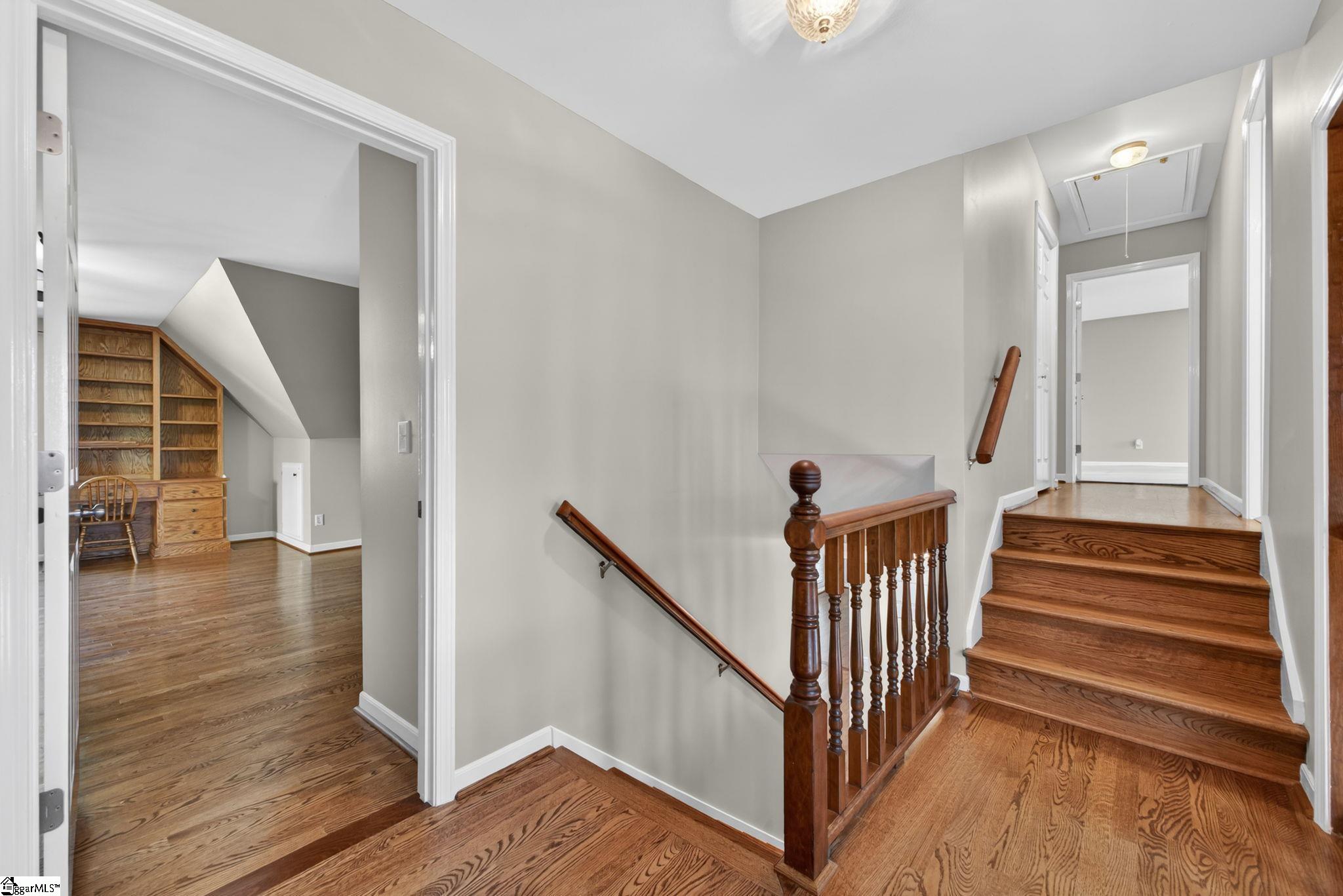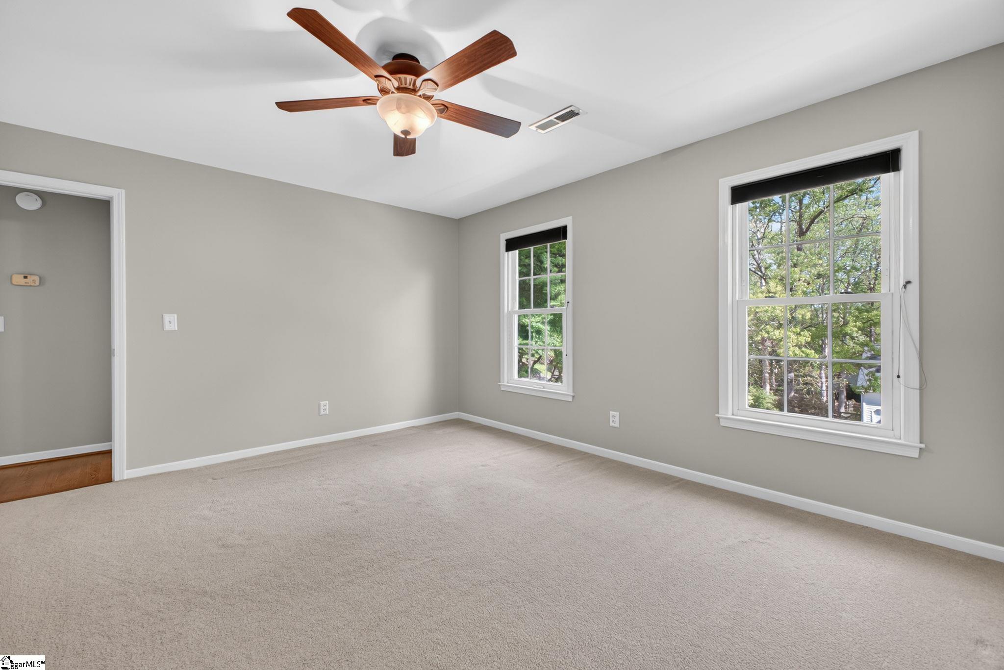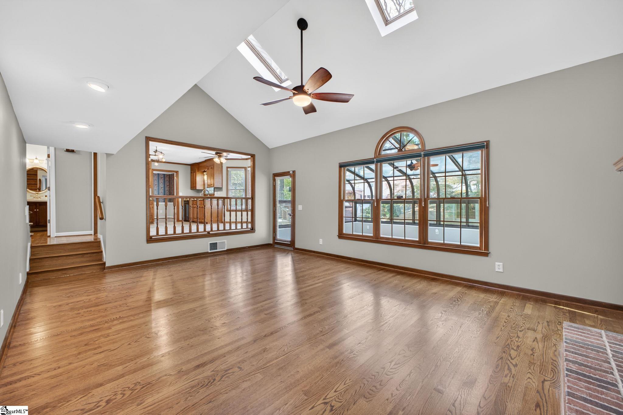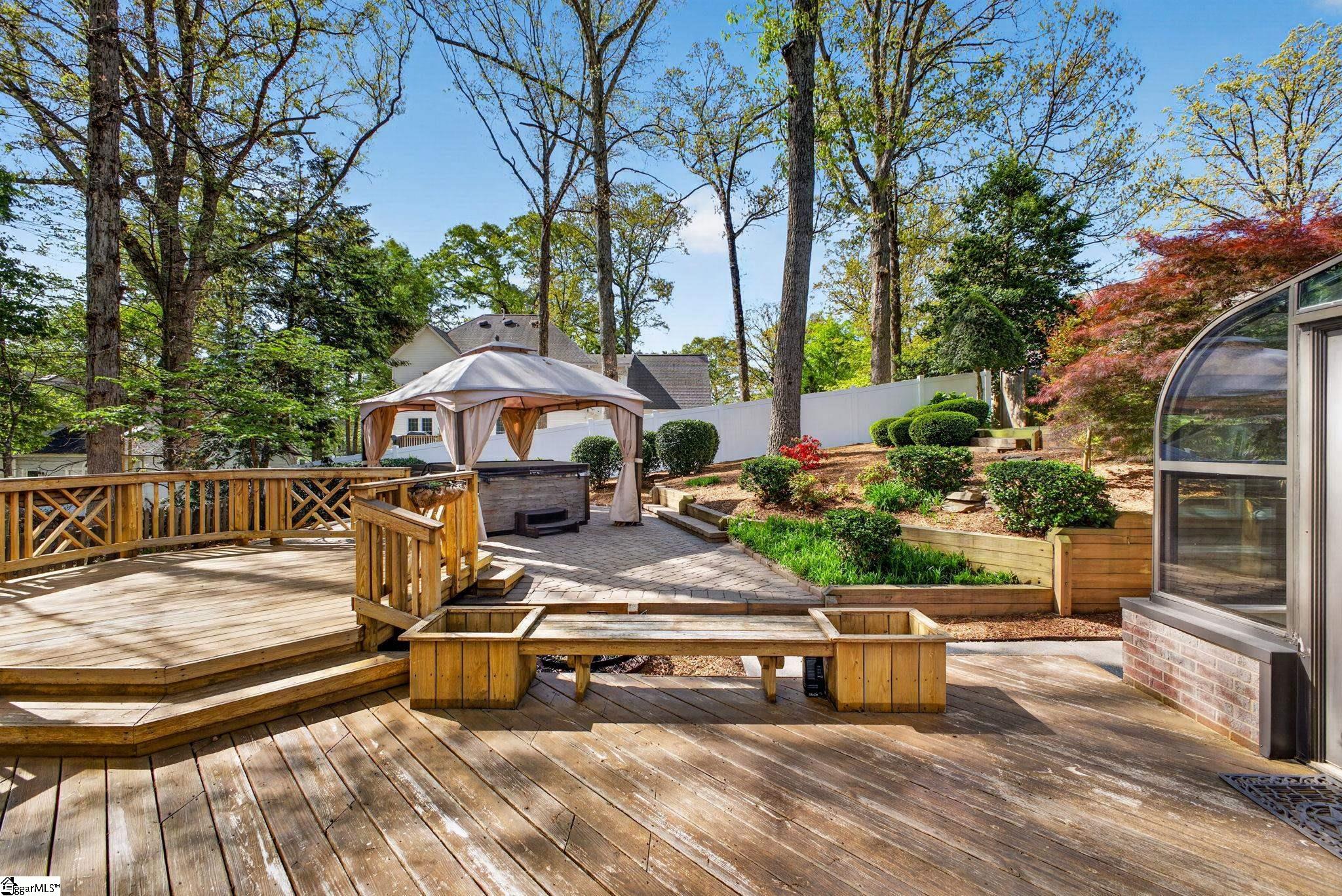 Welcome to your Pelham Falls retreat, offering five bedrooms and two and a half baths with a layout designed for both comfort and flexibility. This spacious home features a formal dining room, a cozy sunken living room, and a bright solarium just off the main living space, along with a dedicated den or office on the main level. The fifth bedroom includes built-in bookshelves and a desk, making it an ideal home office or a perfect space for a studious child. The kitchen is both functional and stylish, featuring custom cabinetry, granite countertops, and a gas range, while gorgeous hardwood floors extend throughout the entire main level, complemented by rich wood trim and beautiful moldings that add warmth and character. The living room is a true focal point with its floor-to-ceiling brick fireplace and skylights that fill the space with natural light, seamlessly flowing into the sunroom for year-round enjoyment. The primary suite offers a peaceful retreat with an updated full bath, walk-in shower, and custom closet shelving, while four additional bedrooms provide the flexibility needed for family, guests, or hobbies. Step outside to a backyard oasis designed for relaxation and entertaining, complete with terraced landscaping, planters, a dedicated hot tub deck, grilling deck, and a multi-level yard that offers endless possibilities, all beautifully overlooked by the sunroom. The home has been freshly painted in 2025 and is truly move-in ready, showcasing superb landscaping and meticulous care throughout. Additional features include a tankless water heater, an epoxy-coated garage floor and front walkway completed in 2024, a convenient garage yard door and leaf guards for easy maintenance. Exquisitely maintained with detailed records of updates, maintenance, and repairs, this home offers peace of mind along with timeless charm. Located in the highly sought-after Pelham Falls community and zoned for Riverside High School, Riverside Middle, and Woodland Elementary, residents enjoy access to exceptional neighborhood amenities including two pools, tennis courts, athletic fields, a playground, clubhouse, and scenic walking trails along the river, offering a lifestyle that is as active as it is relaxing. While the carpet upstairs is not in bad shape, the sellers understand that buyers sometimes prefer to personalize that element and are offering a $5000 carpet allowance. Make your appointment to see this one soon, as it is unlikely to last!